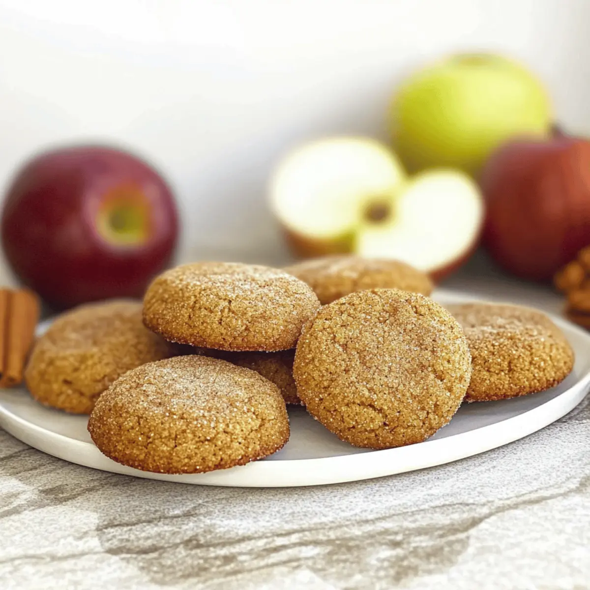 Jump to Recipe Print RecipeThe air is crisp, and everything around me seems to shimmer in autumnal hues—the perfect backdrop for baking something truly special. These Chewy Apple Butter Snickerdoodle Cookies bring together the comforting essence of fall with the irresistible warmth of spices and sweet apple goodness. Using rich apple butter as the star ingredient, this recipe transforms a classic cookie into an inviting treat that’s sure to melt in your mouth. Not only are these cookies easy to whip up and perfect for sharing, but they also wrap each bite in cozy nostalgia, making them an excellent addition to your autumn baking repertoire. Curious about how to create this delightful fall dessert? Let’s dive in! Why Are These Cookies So Irresistibly Good? Unique Flavor: The rich apple butter infuses these cookies with a comforting depth that pairs beautifully with warm spices. Chewy Texture: Each bite offers a delightful chewiness, reminiscent of classic snickerdoodles but with a fresh twist. Autumn Appeal: Perfectly embodying fall, these cookies are the ultimate seasonal treat that encapsulates cozy vibes and reminds you of home-baked goodness. Quick to Make: With simple prep and a quick bake time, you can whip up a batch in no time—ideal for satisfying unexpected cravings. Crowd-Pleasing Delight: Whether shared with family or friends, these cookies are sure to be a hit, adding joy to your autumn gatherings. Don’t forget to pair them with a hot chocolate or serve alongside Apple Crumble Cheesecake for an indulgent dessert spread! Apple Butter Cookies Ingredients For the Dough Apple Butter – Provides moisture and a unique flavor; substitute with pumpkin puree for a different twist. Unsalted Butter – Adds creaminess; salt can be adjusted if using salted butter. Sugar – Sweetens the cookies; try brown sugar for added moisture. Egg – Binds the ingredients; replace with a flax egg or applesauce for an egg-free option. Vanilla Extract – Enhances flavor; maple extract can offer a different twist. All-Purpose Flour – Provides structure; gluten-free flour blends can be used, though it may alter texture. For the Leavening Baking Soda and Baking Powder – Ensure they are fresh for a fluffy cookie texture. Cream of Tartar – Adds tanginess for chewy cookies; can be omitted but may affect texture. For the Coating Cinnamon and Sugar Mixture – Provides a flavorful coating; adjust cinnamon to match your taste preferences. These apple butter cookies are destined to fill your kitchen with warm, sweet aromas, inviting everyone to indulge in the soft, chewy goodness that is quintessentially autumn! Step‑by‑Step Instructions for Chewy Apple Butter Snickerdoodle Cookies Step 1: Preheat the Oven Begin by preheating your oven to 350°F (175°C). While the oven warms, line a baking sheet with parchment paper, ensuring your baking surface is ready for those delightful Chewy Apple Butter Cookies. A properly prepared surface will help them bake evenly and prevent sticking. Step 2: Cream the Wet Ingredients In a large mixing bowl, cream together the apple butter, unsalted butter, and sugar until smooth and well combined. This process should take about 2-3 minutes using an electric mixer set to medium speed. You’re aiming for a light and fluffy mixture, which will enhance the texture of your final cookies. Step 3: Add Egg and Vanilla Next, incorporate the egg and vanilla extract into the creamed mixture, mixing gently until just combined. Take care not to overmix; you want to maintain that airy texture. This will add richness and depth to your Chewy Apple Butter Snickerdoodle Cookies, marrying the flavors beautifully. Step 4: Whisk Dry Ingredients In a separate bowl, whisk together the all-purpose flour, baking soda, baking powder, cream of tartar, and cinnamon. This step is crucial for evenly distributing the leavening agents and spices throughout the cookie dough. Make sure to combine them thoroughly, setting the stage for perfectly risen cookies. Step 5: Combine Wet and Dry Mixtures Gradually add the dry ingredients to the wet mixture, stirring gently until a dough forms. This should take about 1-2 minutes. Be careful not to overmix, as this can result in denser cookies. Once your dough comes together, it’s ready for the next step in creating these flavorful apple butter cookies. Step 6: Chill the Dough For thicker cookies, chill your dough in the refrigerator for approximately 1 hour. This step helps to solidify the fats, reducing spreading during baking. If you’re short on time, you can skip this step, but the cookies may be thinner than desired without chilling. Step 7: Roll and Coat the Dough Once the dough is chilled, scoop small portions and roll them into balls, about 1 inch in diameter. Next, generously coat each cookie ball in the cinnamon and sugar mixture, ensuring an even layer. This not only adds flavor but also a lovely finishing touch to your Chewy Apple Butter Snickerdoodle Cookies. Step 8: Arrange on Baking Sheet Place the coated cookie balls on the lined baking sheet, spacing them about 2 inches apart. This will allow for proper spreading during baking. Aim for a neat arrangement to ensure even cooking and perfect aesthetics, enhancing the joy of serving these delicious autumn treats. Step 9: Bake the Cookies Bake the cookies in your preheated oven for 12–15 minutes. Look for an outer edge that is set and tops that crack slightly; this will be your cue that they are done. The warmth and aroma of the baking Chewy Apple Butter Cookies will start to fill your kitchen with delightful anticipation. Step 10: Cool Before Serving Once baked, allow the cookies to cool on the baking sheet for about 5 minutes before transferring them to a wire rack. This cooling time helps them set while still warm, adding to that perfect chewy texture. After cooling, they are ready to be enjoyed! Expert Tips for Chewy Apple Butter Cookies Measure Flour Correctly: Use the spoon-and-lev