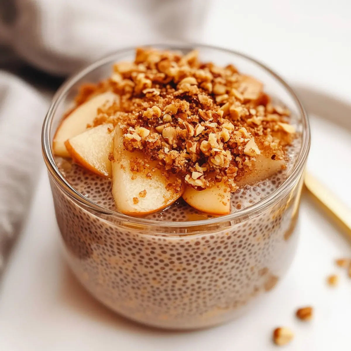 Jump to Recipe Print RecipeThe first hint of autumn brings an irresistible pull towards cozy, comforting flavors. With that warmth in mind, I’ve created this delightful Apple Crumble Chia Pudding—your new favorite vegan, high-fiber breakfast delight. This recipe not only captures the essence of fall with its sweet apple butter and warming spices, but it also simplifies your morning routine with meal prep-friendly convenience. Imagine waking up to a nutritious breakfast that’s just as satisfying as a decadent dessert. You can indulge your cravings while getting a healthy start to your day! So, are you ready to layer up some mouthwatering goodness and enjoy a wholesome breakfast that’s bursting with flavor? Why Choose Apple Crumble Chia Pudding? Indulgent Yet Healthy: This Apple Crumble Chia Pudding offers the perfect balance of indulgence and nutrition, letting you enjoy flavors reminiscent of fall desserts while packing in high fiber. Customizable Delight: Easily adapt this recipe by swapping walnuts for pecans or changing up the yogurt type, ensuring it fits your taste preferences. Meal Prep Magic: Experience the convenience of meal prep as this pudding keeps well in the fridge, making busy mornings a breeze. Crowd-Pleasing Appeal: Impress family and friends with its vibrant layers that not only look stunning but taste divine, making breakfast an occasion! Quick to Prepare: In just minutes, you can whip up this pudding, providing a stress-free start to your day. Pair it with a side of fresh fruit or even try the delightful Apple Zucchini Bread for a complete breakfast spread! Apple Crumble Chia Pudding Ingredients Unlock the cozy flavors of fall with this delightful recipe! For the Pudding Chia Seeds – A powerhouse of soluble fiber to aid digestion; blend with milk for a smoother texture. Miso Paste – Adds a unique depth and balances sweetness; yellow or white miso works well. Medjool Dates – Naturally sweeten your pudding; dried apricots can also be a great substitute. Cinnamon & Cardamom – Speaks to the essence of autumn; swap for apple pie spice if desired. Soy Milk – This protein-rich liquid forms the base; feel free to use your favorite plant-based alternative. Soy Yogurt – Provides creaminess; any preferred yogurt can be used if you like. For the Crumble Oats – Build the crunchy crumble; gluten-free oats are great for a gluten-free option. Walnuts – Adds a lovely crunch; substitute with pecans or almonds, or simply omit for nut allergies. For the Topping Apples – Cues natural sweetness and texture; fresh bananas can be a delicious alternate. Apple Butter – Infuses flavor and sweetness; substitute with sautéed apples for variety. Give this Apple Crumble Chia Pudding a try, and watch how it transforms your breakfast routine into something truly special! Step‑by‑Step Instructions for Apple Crumble Chia Pudding Step 1: Blend Base In a blender, combine soy yogurt, apple butter, Medjool dates, miso paste, vanilla extract, cinnamon, cardamom, salt, and soy milk. Blend on high for about 1-2 minutes or until the mixture is smooth and creamy. This vibrant blend will serve as the base for your Apple Crumble Chia Pudding, offering a warm and comforting flavor profile. Step 2: Combine Chia Pour the blended mixture over chia seeds in a bowl or a container. Whisk well for about one minute to ensure the chia seeds are evenly coated. Allow the mixture to sit for 5 minutes, then whisk again to prevent clumping. Once smoothly combined, refrigerate the chia pudding for at least one hour, allowing it to thicken and achieve the perfect pudding-like texture. Step 3: Make Crumble In a food processor, pulse the oats, walnuts (or your chosen substitutes), and a pinch of salt until the mixture resembles coarse crumbs. This step will create the crunchy topping for your Apple Crumble Chia Pudding, adding texture and contrast. Transfer the crumble to a bowl and set it aside while you prepare the stewed apples. Step 4: Stew Apples Heat a skillet over medium heat and add diced apples along with maple syrup, an extra sprinkle of cinnamon, a pinch of salt, and a splash of water. Sauté for 3-4 minutes until the apples soften, stirring occasionally. If the mixture begins to stick, add a little more water to create a saucy consistency. The goal is to have tender apples that will beautifully complement your pudding. Step 5: Assemble In serving jars, layer the chia pudding, followed by the warm stewed apples, and finish with a generous sprinkle of the crumble on top. This beautiful layering creates a delightful presentation and ensures each bite of your Apple Crumble Chia Pudding includes all the delicious components. For an extra touch, consider drizzling additional apple butter or maple syrup over the top before serving. What to Serve with Apple Crumble Chia Pudding Bring the perfect balance of flavors to your breakfast table with delightful pairings to enhance this delicious dish. Fresh Fruit Salad: Vibrant and juicy, a side of mixed fresh fruits brightens your plate, adding a refreshing contrast to the creamy pudding. Smoothie Bowl: Creamy and nutritious, a smoothie bowl made from bananas and spinach complements your pudding while delivering a nutrient punch. This combo makes breakfast colorful and satisfying! Cinnamon Toast: The cozy flavors of cinnamon toast bring an inviting crunch that beautifully echoes the warm spices in the pudding. Chai Latte: Offering warmth and spice, this aromatic drink enhances the cozy vibe, bringing each bite of pudding to life with every sip. Yogurt Parfait: Layering yogurt and granola creates a delightful textural contrast while adding a creamy component that pairs wonderfully with the pudding’s flavors. Maple Almond Milk: A glass of this sweet, nutty beverage highlights the flavors of the Apple Crumble Chia Pudding without overwhelming it. Pumpkin Muffins: With their autumnal essence, these hearty muffins add a delightful twist to your breakfast 