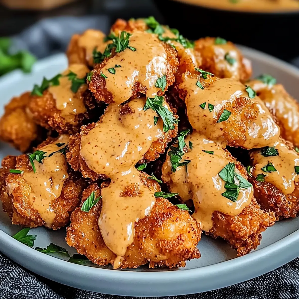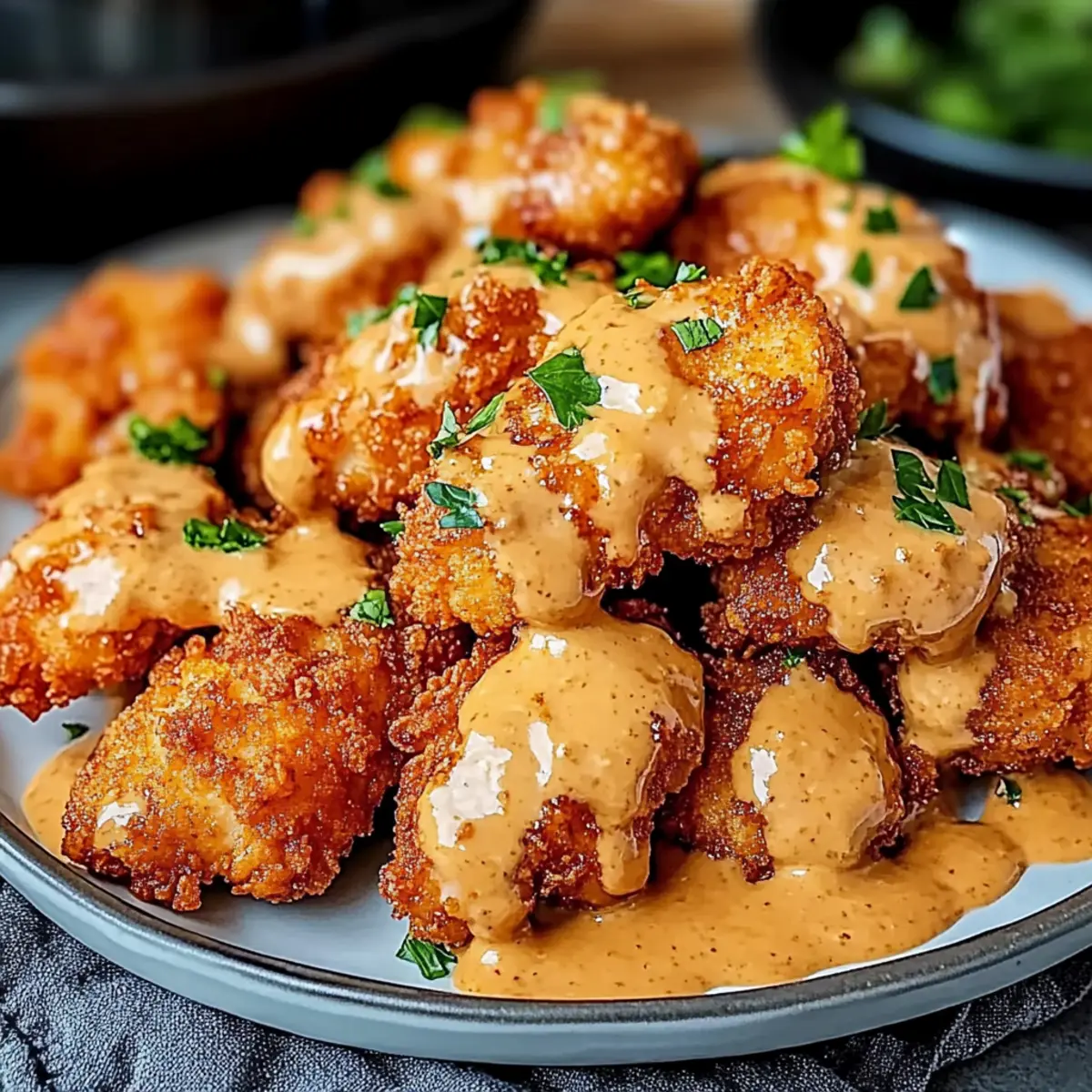 Jump to Recipe Print RecipeThe sound of sizzling chicken fills the air, creating both anticipation and hunger that draws family and friends into the kitchen. Today, I’m excited to share my Crispy Bang Bang Chicken recipe, a Westernized twist on a beloved Sichuan classic. This dish not only features a delightful crunch but also offers a creamy and spicy sauce that can be easily personalized. Whether you’re hosting a dinner party or preparing a cozy family meal, this crispy chicken is sure to be a hit. Its adaptable nature allows you to swap in shrimp, tofu, or even cauliflower, ensuring no one misses out. Plus, with a prep time that won’t eat up your day, you’ll find yourself whipping it up over and over again. Ready to dive into this delicious adventure? Let’s get cooking! Why Is Bang Bang Chicken So Irresistible? Crispy Texture: The double coating of panko breadcrumbs ensures a satisfying crunch with every bite. Creamy Sauce: The blend of mayo, sweet chili, and Sriracha creates a rich, creamy sauce that perfectly balances heat and sweetness. Versatile Options: Easily substitute chicken with shrimp, tofu, or cauliflower, catering to diverse dietary preferences. Quick Prep: With just a short marinating time and fast frying, you can have this meal ready in under 30 minutes! Crowd-Pleaser: Perfect for gatherings, this dish will leave your guests raving and coming back for seconds. For a delightful twist, consider pairing it with Garlic Parmesan Chicken or exploring the flavors of Honey Butter Chicken for more exciting options! Bang Bang Chicken Ingredients • The essentials for your crispy delight. For the Sauce Mayonnaise – Base of the sauce; provides creaminess. Use Greek yogurt for a healthier option. Thai Sweet Chili Sauce – Adds sweetness and mild heat. Honey can be used for a homemade alternative. Sriracha Sauce – Offers spiciness; can adjust heat level. Red pepper flakes can replace Sriracha for a different heat. Honey – Adds natural sweetness. Maple syrup can be used as a vegan option. For the Chicken Boneless Skinless Chicken Tenderloins – Main protein, tender and easy to handle. Chicken breasts or thighs work well; shrimp or tofu are good alternatives. Buttermilk – Tenderizes chicken and helps the batter stick. Milk with vinegar or yogurt can be used as a substitute. For the Coating All-Purpose Flour & Cornstarch – Create a crispy coating. Gluten-free flour may be used for gluten-free options. Large Egg – Binds the coating. A flax egg can be used for a vegan option. Panko Breadcrumbs – Provides a crunchy texture. Regular breadcrumbs can be used, but panko yields a crunchier result. For Frying Canola Oil – For frying; high smoke point and neutral flavor. Vegetable or peanut oil can be used. For Garnish Chopped Parsley – For garnish; adds freshness. Green onions can substitute for a different flavor profile. Step‑by‑Step Instructions for Bang Bang Chicken Step 1: Make the Bang Bang Sauce In a medium bowl, whisk together 1/2 cup mayonnaise, 1/4 cup Thai sweet chili sauce, 2 tablespoons Sriracha, and 1 tablespoon honey until the mixture is smooth and well combined. The sauce should be creamy with a slight sheen. Cover it with plastic wrap and set it aside to allow the flavors to meld while you prepare the chicken. Step 2: Chicken Marinade In a large bowl, combine 1 cup of buttermilk, 1/2 cup flour, 1/4 cup cornstarch, 1 large egg, 1 tablespoon Sriracha, 1 teaspoon garlic powder, and a pinch of salt and pepper. Whisk until you achieve a smooth batter. Add the boneless skinless chicken tenderloins, ensuring each piece is fully coated. Allow the chicken to marinate for 10 minutes, enhancing its tenderness. Step 3: Coat the Chicken On a plate, spread out 1 cup of panko breadcrumbs. One by one, take the marinated chicken tenders from the batter and dredge them in the breadcrumbs, pressing gently to ensure an even coating. The panko should adhere well, giving a beautiful, textured surface that will crisp up nicely during frying. Step 4: Fry the Chicken Heat about 1 inch of canola oil in a skillet over medium-high heat until it reaches 365°F. Carefully add the coated chicken tenders to the hot oil in batches, avoiding overcrowding. Fry each piece for 2-3 minutes on each side until golden brown and crispy, checking that the internal temperature reaches 165°F for safety. Drain cooked chicken on paper towels. Step 5: Toss and Serve In a large bowl, add the hot, fried chicken and drizzle it with the prepared Bang Bang sauce, tossing gently to coat each piece thoroughly. Transfer the coated chicken to a serving platter, sprinkle with chopped parsley for a fresh touch, and enjoy your delicious Bang Bang Chicken warm for the best flavor experience! Bang Bang Chicken Variations & Substitutions Feel free to let your culinary creativity shine and personalize this scrumptious dish with these fun twists and swaps! Seafood Delight: Use shrimp for a lighter alternative; just adjust frying time for perfectly tender bites. Vegetarian Option: Swap in firm tofu or cauliflower. Both will soak up flavors beautifully while offering a delightful texture. Gluten-Free: Replace all-purpose flour and panko with gluten-free alternatives for a similar crispy coating that everyone can enjoy. Heat Up: Add more Sriracha or a pinch of cayenne to the sauce for an extra kick that spice lovers will adore. Cool It Down: Incorporate a cool cucumber and yogurt dip alongside the main sauce for a refreshing counterbalance to the spice. Herbaceous Flavor: Mix fresh herbs like cilantro or basil into the sauce for an aromatic lift that adds a unique twist. Crunch Factor: Try adding crushed nuts to the breading mix or as a topping for an unexpected crunch and nutty flavor. Baking Bliss: Bake the chicken instead of frying. Coat with a light spray of oil for that needed crispy finish, and you have a healthier baked version! For more flavor masterpieces, consider pairing with Chicken Etouffee Savory