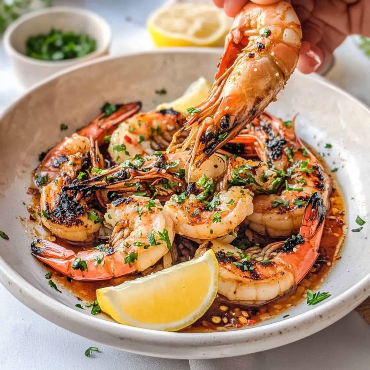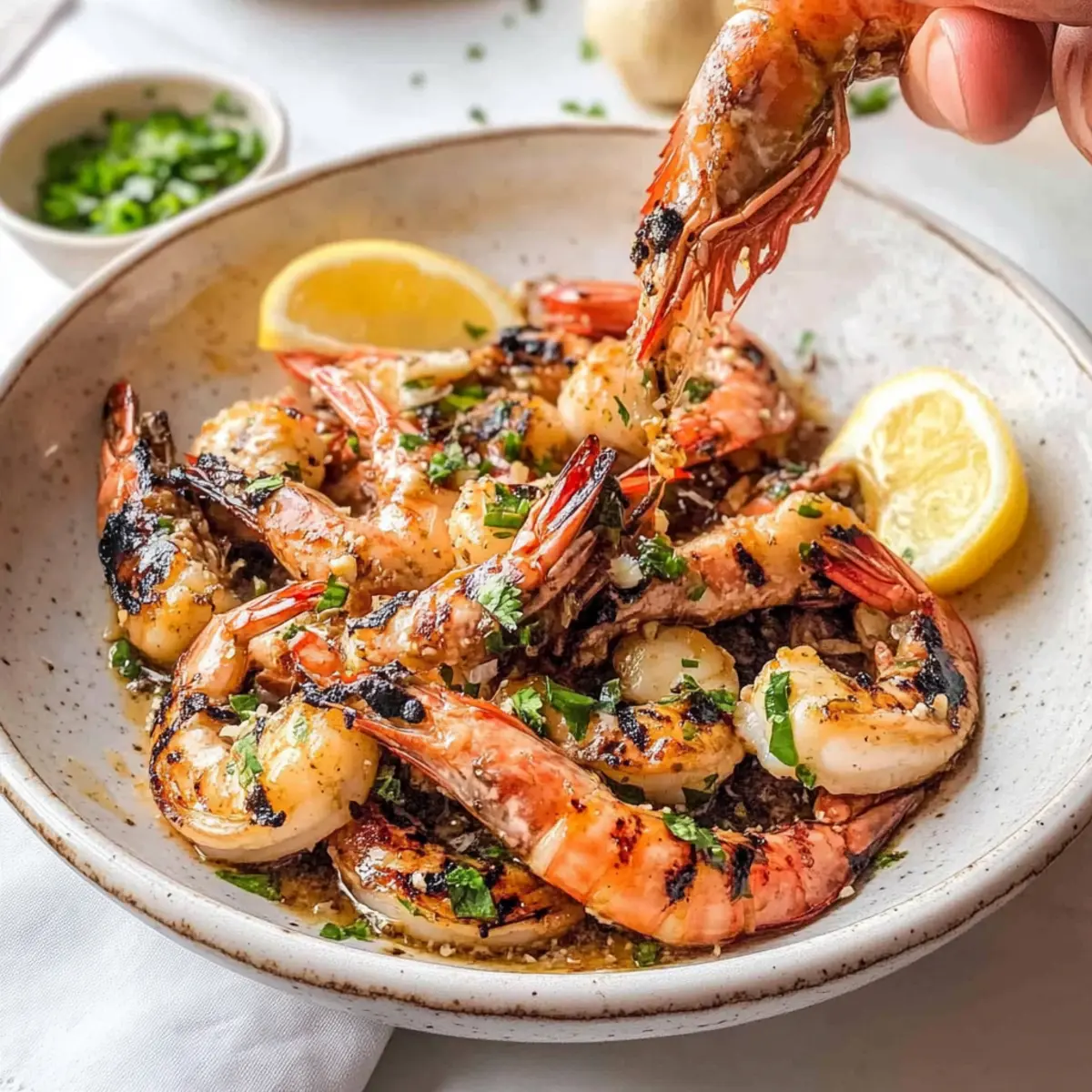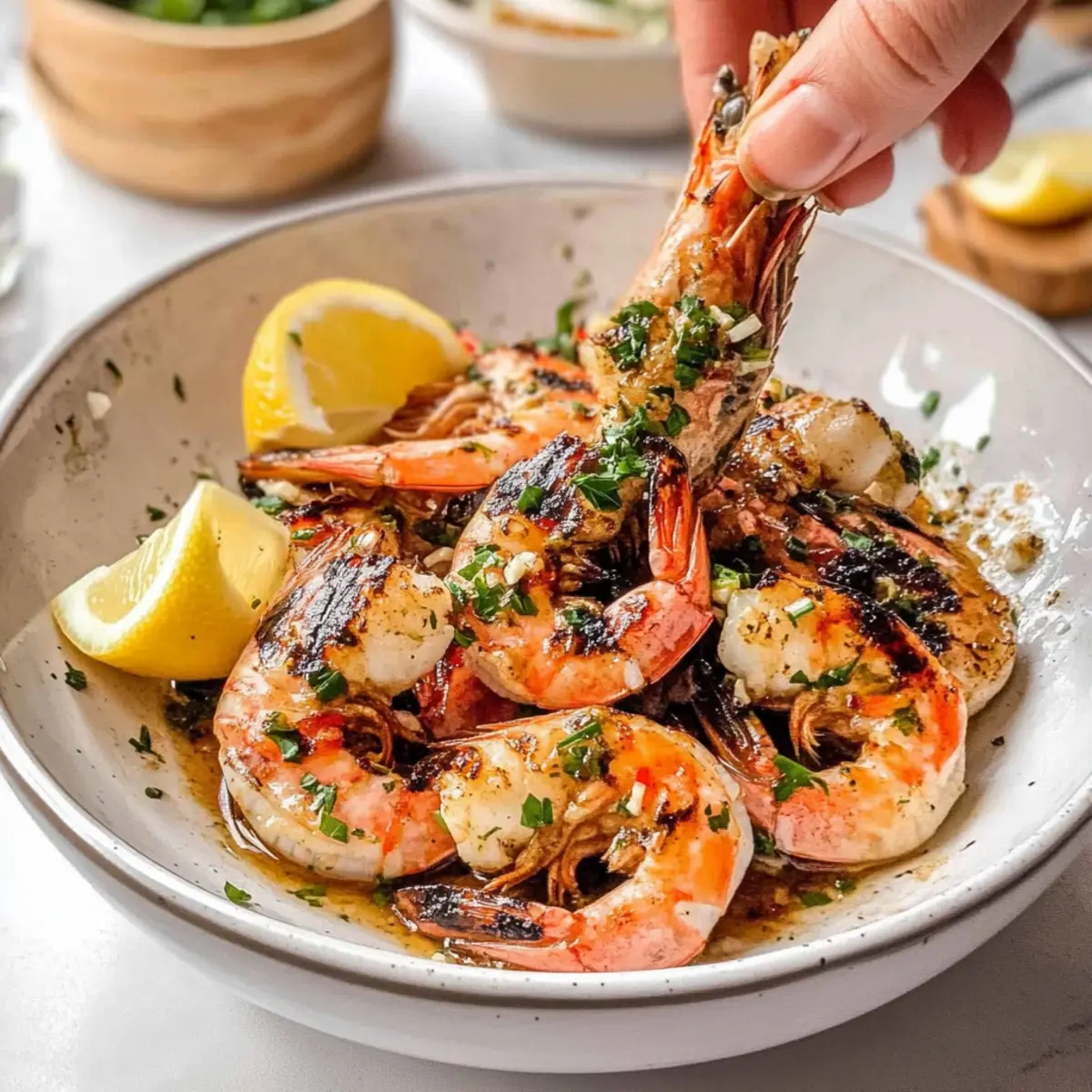 Jump to Recipe Print RecipeThe sizzle of prawns on the grill signals the start of summer, and there’s no better way to celebrate than with BBQ Prawns with Garlic, Lemon & Chilli! This recipe transforms ordinary prawns into a vibrant dish bursting with zesty flavor, perfect for those balmy evenings when you want to impress your friends. Not only is it quick—taking just 30 minutes from prep to plate—but it’s also a healthy option that’s naturally gluten-free and full of fresh ingredients. With only five simple components, you can whip up a crowd-pleaser that pairs beautifully with crusty bread to soak up that delightful garlic-lemon sauce. Ready to be the star of your next BBQ? Let’s dive into this mouthwatering adventure together! Why are BBQ Prawns a must-try? Irresistibly Flavorful: The contrast of zesty lemon and garlicky warmth perfectly complements the prawns, delivering an unforgettable taste experience. Quick & Easy: In just 30 minutes, you can create a dish that feels gourmet, ideal for busy weeknights or spontaneous summer gatherings. Healthy Choice: Naturally gluten-free and packed with nutrients, these prawns align with your health goals without sacrificing flavor. Crowd-Pleaser: Impress your friends and family with this delectable dish that blends simplicity with sophistication—perfect for any summer BBQ. Pair it with Bbq Chicken Sweet for a full spread that everyone will love! Versatile: Feel free to customize with herbs or spice levels—whether you add more heat or stick to the classic garlic and lemon, it’s a winner every time! BBQ Prawns Ingredients For the Prawns • Prawns – The star ingredient, plump and succulent, choose the freshest available for the best texture in your BBQ prawns. • Garlic – Fresh garlic adds a robust flavor; it complements the prawns beautifully, enhancing that irresistible aroma. • Chilli – A touch of heat and vibrant color; adjust the amount based on your spice preference for the BBQ prawns. • Lemon (Zest & Juice) – Bright and zesty, the acidity from lemon elevates the dish and balances the flavors of the prawns. • Extra Virgin Olive Oil – A quality oil enriches the marinade, ensuring each bite of BBQ prawns is full of flavor. Step‑by‑Step Instructions for BBQ Grilled Prawns with Garlic, Lemon & Chilli Step 1: Prep Prawns Begin by cleaning and deveining the prawns if they have not been prepped. Rinse them under cold water, ensuring they are free from any grit or shell fragments. Pat dry with a paper towel to remove excess moisture, which helps in achieving a lovely texture when grilling. Setting the stage with clean, fresh BBQ prawns is the key to a delicious dish. Step 2: Make the Garlic-Lemon Sauce In a small saucepan, heat ¼ cup of extra virgin olive oil over medium-low heat. Add 4 minced garlic cloves, and sauté until they turn golden brown, about 2-3 minutes, ensuring they don’t burn for optimal flavor. Immediately stir in 1 chopped chili, along with the zest and juice of 1 lemon. Allow the mixture to simmer gently for another minute, filling your kitchen with aromatic goodness. Step 3: Marinate Prawns In a large bowl, pour the garlic-lemon sauce over the cleaned prawns, and toss them well to coat. Ensure each prawn is evenly dressed in the zesty marinade for a burst of flavor when grilled. Let the prawns marinate for about 15 minutes at room temperature, allowing the flavors to meld beautifully, enhancing the delicious BBQ experience. Step 4: Preheat the Grill While the prawns are marinating, preheat your grill to a high heat, aiming for approximately 280°C (or 550°F). This high temperature is essential for achieving that perfect char and smoky flavor on your BBQ prawns. Make sure the grill grates are clean and lightly oiled to prevent sticking, so you can easily flip them later. Step 5: Grill Prawns Once the grill is hot, place the marinated prawns directly onto the grill grates in a single layer, making sure they are not overcrowded. Grill for 2-4 minutes on each side, flipping them once, until the shells turn a vibrant pinky-orange and the prawns are opaque and pearly white. Keep an eye on them to avoid overcooking, which can lead to chewy texture. Step 6: Serve and Enjoy Carefully remove the grilled prawns from the grill and transfer them to a serving platter. Garnish with extra lemon wedges for an added zesty touch. Serve them hot right off the grill, allowing guests to savor the succulent flavors of your BBQ prawns. Pair with crusty bread to soak up the delicious garlic-lemon sauce—perfect for summer entertaining! BBQ Prawns Variations & Substitutions Feel free to get creative and make this BBQ prawns recipe your own with these delightful twists! Dairy-Free: Substitute butter with extra virgin olive oil for a rich flavor without dairy. Lime Zest & Juice: Swap out lemon for lime to introduce a tangy twist that brightens the flavor profile. Herbaceous Delight: Add fresh herbs like cilantro or parsley to the marinade for an aromatic boost. Sweet & Spicy: Mix in some honey or maple syrup alongside the garlic for a sweet glaze that balances the heat. Smoky BBQ Flavor: Incorporate a touch of smoked paprika to the garlic-lemon marinade for added depth. Coconut Milk: For a tropical flair, marinate the prawns in coconut milk with garlic and lime for a luscious twist. Chili Heat Levels: Adjust the amount of fresh chili based on your spice tolerance, or use red pepper flakes for an easy alternative. Garnish Choices: Top with sesame seeds or crushed peanuts for an extra layer of texture and flavor. Pair these delicious BBQ prawns with a refreshing salad or alongside Bbq Chicken Sweet for a fantastic summer meal! What to Serve with BBQ Grilled Prawns with Garlic, Lemon & Chilli Elevate your summer gathering with delightful accompaniments that enhance the zesty allure of grilled prawns. Crusty Bread: Perfect for mopping up the savory garlic-lemon sauce, crusty bread adds a satisfying texture to each bi