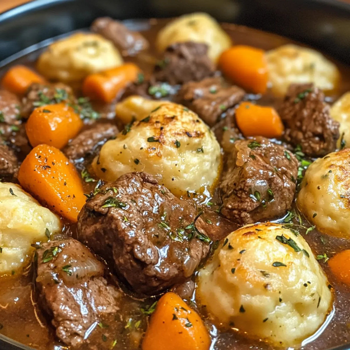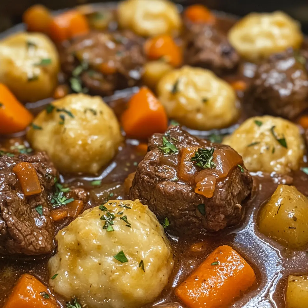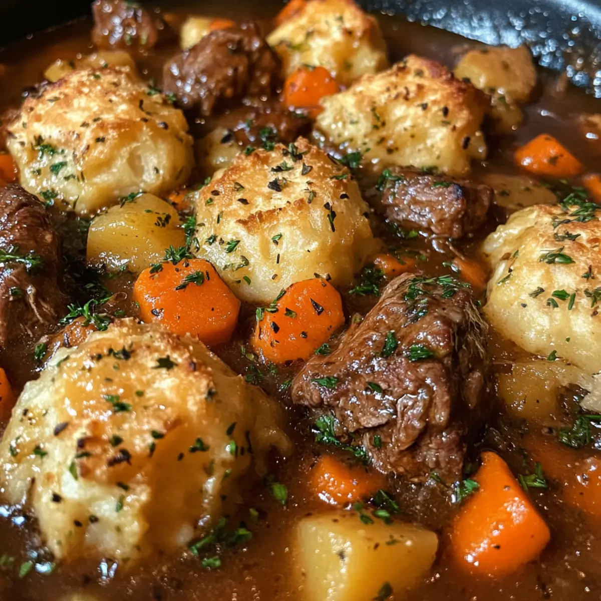 Beef Stew with Cheddar Herb Dumplings is a perfect comfort food for chilly nights, featuring tender beef and fluffy dumplings.