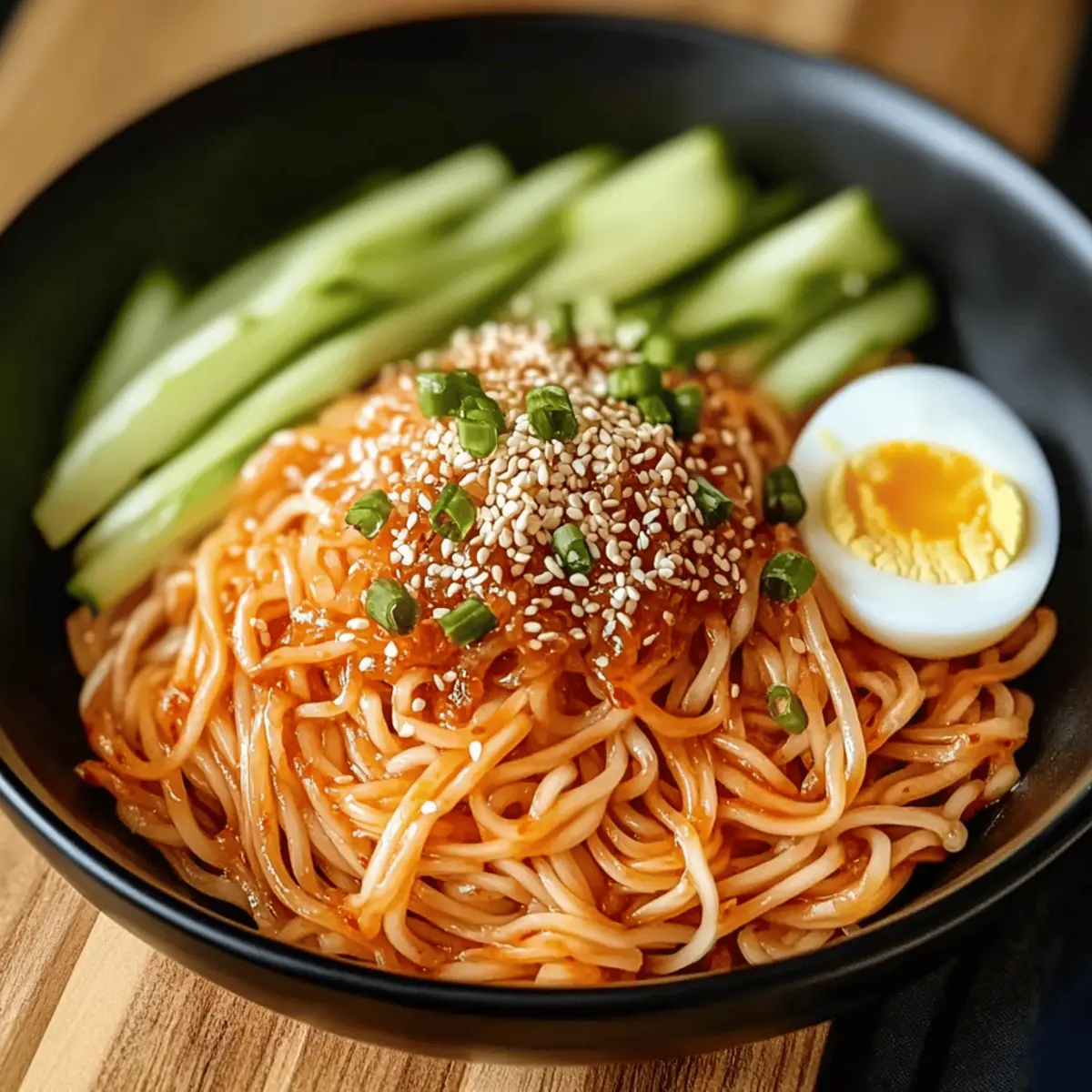 As I stood in my kitchen, the sweltering summer heat made me crave something cool and refreshing without turning on the stove. That’s when I remembered the vibrant beauty of Bibimmyeon, a Korean favorite that offers a delightful contrast of textures and flavors. This spicy cold noodle dish, with chewy noodles tossed in a zesty sauce, is a quick meal that’s bursting with freshness. Perfect for busy evenings or leisurely weekends, Bibimmyeon is not only easy to whip up, but it’s also a crowd-pleaser that can be tailored to your spice preferences. Packed with crisp vegetables and topped with a hard-boiled egg, it’s a beautiful, satisfying dish to enjoy any time of the day. Curious how to make this tantalizing meal a reality in your own kitchen? Let’s dive in!