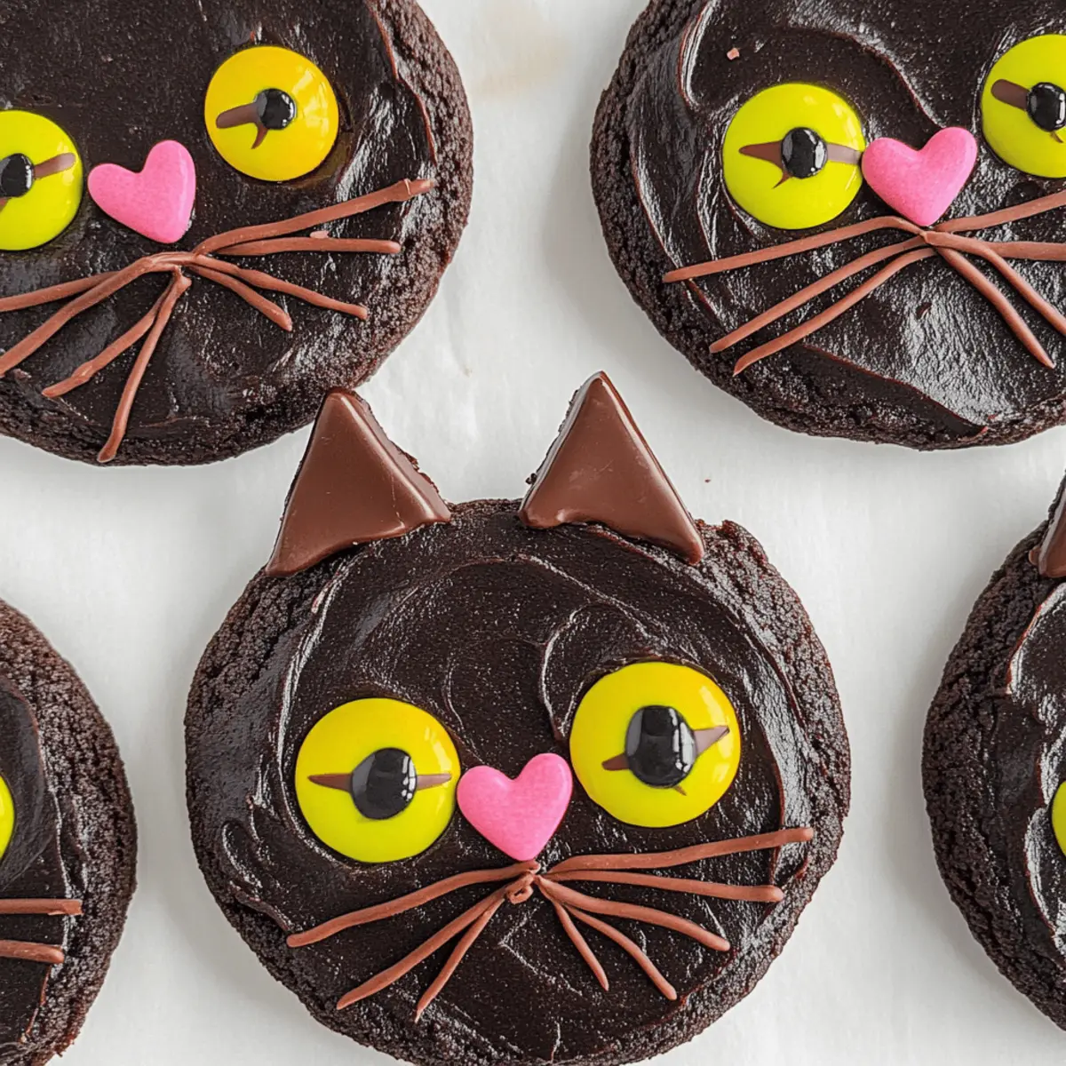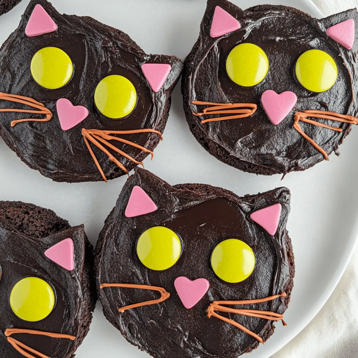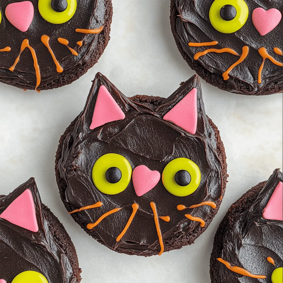 Jump to Recipe Print RecipeAs I stood in my kitchen, flour dusting the air like a soft Halloween mist, the idea for Black Cat Cookies struck me like a spell. These adorable treats are not only a whimsical addition to any Halloween gathering, but they also serve as a wonderful way to bond with your kids in the kitchen. With easy-to-follow steps, even novice bakers can create these charming cookies that flaunt a rich chocolaty flavor and cute, playful designs. Plus, they’re semi-homemade, making them the perfect festive solution for busy parents and enthusiastic home chefs alike. Ready to conjure up some magic in your kitchen? Let’s dive into this delightful baking adventure! Why are Black Cat Cookies a Must-Bake? Irresistible for Halloween: These Black Cat Cookies are not just delectable; they’re a fun way to celebrate the spooky season! Kid-Friendly: Get your little ones involved in the baking process. The easy-to-follow steps make it a fantastic family bonding experience. Semi-Homemade: With the use of Devil’s Food Cake Mix, you’ll save time without sacrificing flavor, making these a quick yet impressive treat. Versatile Design: Customize with different candy decorations for various occasions—think Halloween parties or school events! Deliciously Rich: The combination of chocolate cookies and creamy frosting is sure to win over both kids and adults alike. If you’re looking for more exciting flavors, check out our Lemon Raspberry Cookies or Chocolate Chip Cookies. Black Cat Cookies Ingredients For the Cookie Dough Devil’s Food Cake Mix – This chocolatey base simplifies the process; you can also substitute with a homemade chocolate cookie recipe. Eggs – Essential for binding the ingredients together and providing structure. Canola or Vegetable Oil – Adds moisture and richness to the dough; if using a smaller cake mix, consider reducing the amount slightly. Black Food Coloring – Optional, for a deeper hue; this enhances the festive appearance. For the Frosting Unsalted Butter – Aim for it to be softened to ensure smooth mixing and creamy texture. Powdered Sugar – Sweetens and thickens the frosting for the perfect consistency. Black Cocoa Powder – The star ingredient for a rich chocolate flavor; you can use regular cocoa powder for a lighter color if preferred. Vanilla Extract – Adds warmth and enhances the overall flavor profile. Milk – Use to adjust the frosting consistency as needed. For the Decoration M&Ms (Green or Yellow) – Perfect for the cat’s eyes; feel free to substitute with other small candies for a creative twist. Heart-Shaped Sprinkles – Create the cat’s adorable nose; swap with colored candies if desired. Black Licorice – Ideal for whiskers; alternatives like fruit leather or even pretzel sticks work well too. Hershey’s Chocolate Bars – Cut into triangles for the cat’s ears; any plain chocolate will do! These delectable Black Cat Cookies will surely delight your family and friends this Halloween! Step‑by‑Step Instructions for Black Cat Cookies Step 1: Preheat the Oven Begin your baking adventure by preheating your oven to 350°F (175°C). While it warms up, take out two baking sheets and line them with parchment paper to prevent your adorable Black Cat Cookies from sticking. This step is crucial for ensuring even baking and easy removal later on. Step 2: Mix the Dough In a large mixing bowl, combine the Devil’s Food Cake Mix, eggs, and canola or vegetable oil. Stir together with a spatula or hand mixer until everything is well blended; the dough should be thick and slightly glossy. If you’re using black food coloring, add a few drops to achieve a richer, darker hue in your cookies. Step 3: Shape the Cookies Scoop out 1.5 tablespoons of dough and roll it into balls between your palms. Space these dough balls evenly on your prepared sheets, leaving some room for expansion—they should sit unflattened to maintain their round shape. You should have about 12 cookies per sheet, ready for baking. Step 4: Bake the Cookies Place the baking sheets in the preheated oven and set a timer for 8 to 10 minutes. Watch carefully; the edges should set and look firm while the centers may appear slightly soft. Once done, remove the sheets from the oven and allow the cookies to cool for 5 minutes on the sheets before transferring them to wire racks to cool completely. Step 5: Make the Frosting While the cookies cool, prepare the frosting by beating the softened unsalted butter in a mixing bowl until creamy. Gradually add powdered sugar, black cocoa powder, vanilla extract, and a splash of milk, mixing until smooth. If the frosting is too thick, add more milk; it should be spreadable but hold its shape well for decorating your Black Cat Cookies. Step 6: Decorate the Cookies Once your cookies are completely cool, use a spatula or a piping bag to frost the tops generously with your creamy chocolate frosting. Let your creativity flow by placing M&M candies for the cat’s eyes, heart-shaped sprinkles for the nose, and pieces of black licorice for whiskers. Add chocolate triangles for ears to complete the delightful appearance. Step 7: Allow to Set After decorating the cookies, let them sit at room temperature for about 30 minutes to an hour. This allows the frosting to harden slightly, making it easier to transport and serve. Your festive Black Cat Cookies will be ready to impress at Halloween gatherings or to enjoy during a cozy night in! Expert Tips for Black Cat Cookies Use a Stiff Frosting: Ensure your frosting is thicker for better shape retention while decorating, avoiding a runny mess that can lose design features. Cool Completely: Allow cookies to cool entirely before frosting. This prevents the frosting from melting and maintains their adorable black cat design. Flash-Freezing Trick: If you’re freezing cookies, flash-freeze them first. Add M&M eyes just before serving to keep them looking vibrant and fresh. Check Cookie Doneness: Loo