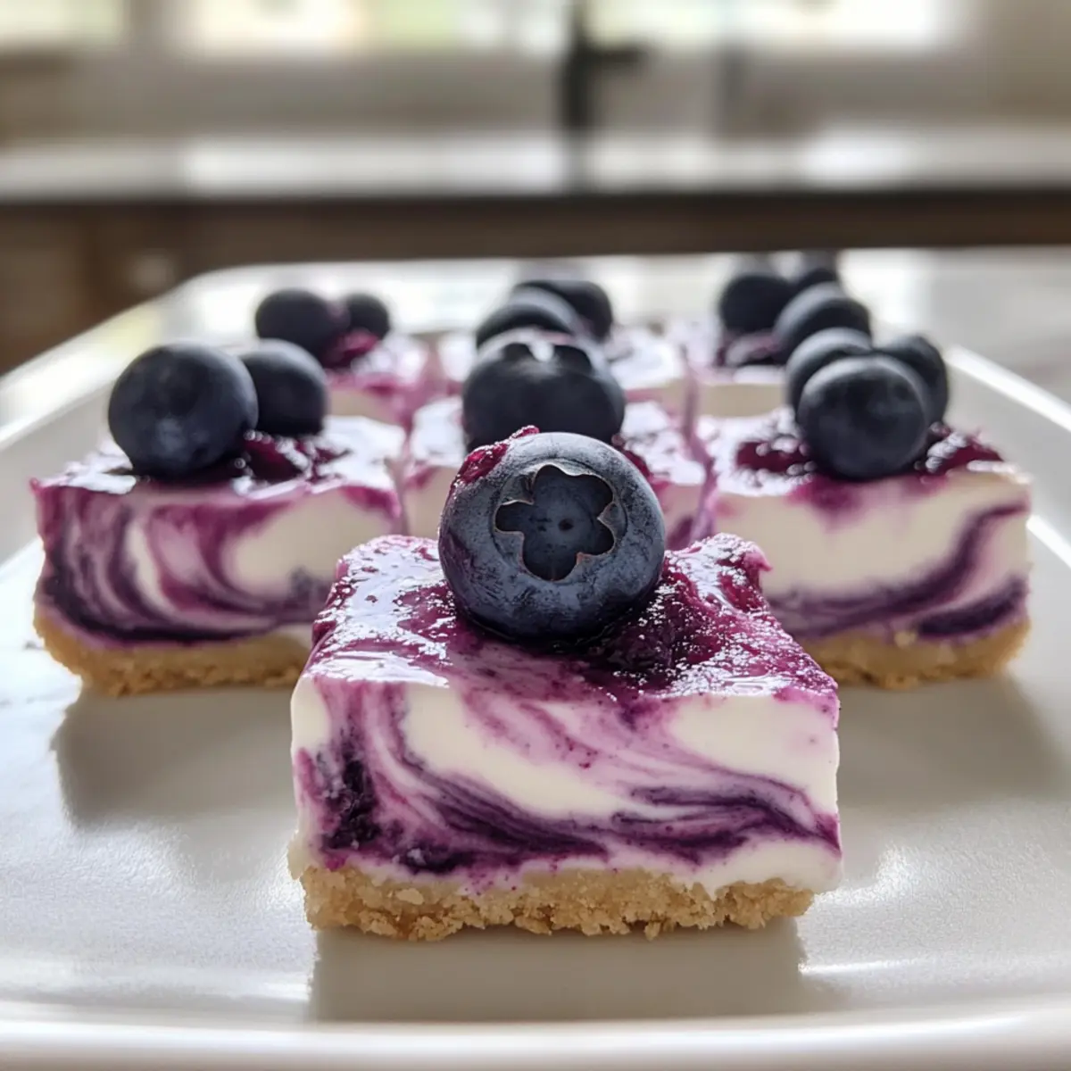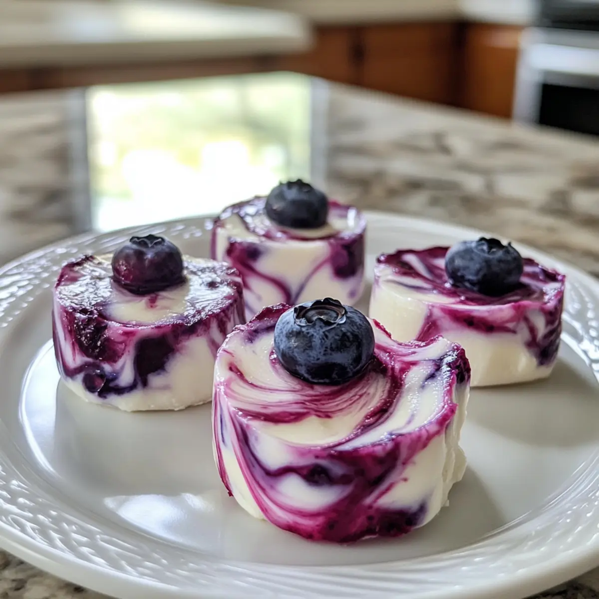 Jump to Recipe Print RecipeAs summer heat sets in, I find myself craving something cool and refreshing—especially when snack time rolls around. That’s when these Blueberry Greek Yogurt Bites come into play, offering a creamy, protein-packed treat that’s perfect for any time of day. They’re not only quick to prep but also freezer-friendly, making them a stellar option for meal prep and those busy afternoons when you’re in need of a guilt-free snack. With their delightful balance of tangy yogurt and luscious blueberry compote, these bites are sure to win over even the pickiest eaters. Whether you’re looking for a healthful breakfast on the go or a satisfying dessert, I can’t wait for you to try these little gems. Ready to whip up a batch? Why are Blueberry Greek Yogurt Bites amazing? Quick and Easy: Preparing these bites takes just minutes, making them a hassle-free option when you’re short on time. Nutrient-Packed: With Greek yogurt as a base, they’re rich in protein, keeping you full and satisfied throughout the day. Kid-Friendly: These bites are a fun and tasty treat for kids—they won’t even realize they’re eating something healthy! Freezer-Friendly: Perfect for meal prepping, you can whip up a batch and store them for a week, ensuring you always have a delicious snack on hand. Flavor Versatility: Feel free to mix it up with different fruits or toppings; the possibilities are endless! Try pairing them with some Blueberry Cake Donuts for an indulgent yet wholesome treat. Blueberry Greek Yogurt Bites Ingredients • This section is all about the essentials you’ll need to create these delightful treats! For the Blueberry Compote Blueberries – Full of antioxidants and naturally sweet, they give a vibrant flavor to the compote. Honey – This natural sweetener adds a touch of sweetness; you can also use erythritol or stevia for keto options. Lemon Juice – Enhances the blueberry taste and balances sweetness beautifully. Chia Seeds – These tiny seeds add fiber and a gel-like consistency when mixed; omit for a simpler texture. For the Yogurt Base Greek Yogurt – The creamy base that’s high in protein; plain yogurt can be a lower-fat substitute. Vanilla Extract – Adds depth to the yogurt flavor; opt for pure vanilla for the best results. These ingredients will come together to create your amazing Blueberry Greek Yogurt Bites, a treat that brings together health and flavor seamlessly! Step‑by‑Step Instructions for Blueberry Greek Yogurt Bites Step 1: Make Blueberry Compote In a small saucepan, combine fresh or thawed blueberries, lemon juice, and honey over medium heat. Stir gently and bring the mixture to a simmer, allowing it to cook for about 5-6 minutes until the blueberries soften and the consistency resembles a jam. Once ready, stir in chia seeds for added texture. Remove from heat and let the compote cool completely before using. Step 2: Prepare Yogurt Base In a medium mixing bowl, whisk together Greek yogurt, honey, and vanilla extract until smooth and creamy. This creamy base is essential for your Blueberry Greek Yogurt Bites, so make sure all ingredients are well combined. Taste the mixture and adjust the sweetness if necessary by adding more honey or a keto-friendly sweetener. Set aside for assembly. Step 3: Combine & Fill Molds Grab your mini silicone muffin molds, which are perfect for making Blueberry Greek Yogurt Bites. Spoon about 1 tablespoon of the yogurt mixture into each cavity, filling them approximately ¾ full. Then, add ½ teaspoon of the cooled blueberry compote on top of each yogurt layer. Use a toothpick or a small knife to swirl the compote gently into the yogurt, creating a lovely marbled effect. Step 4: Freeze Bites Carefully place the filled tray flat in the freezer. Allow the Blueberry Greek Yogurt Bites to freeze for at least 2 hours or until they are completely solid and firm to the touch. This step is crucial for achieving the perfect bite-sized frozen treat that will hold its shape when served. Step 5: Serve & Store Once frozen, gently pop the Blueberry Greek Yogurt Bites out of the silicone molds. Store them in an airtight container in the freezer to maintain their freshness. When you’re ready to indulge, let them thaw for about 2-4 minutes at room temperature. Enjoy these delightful bites as a nutritious snack or dessert option! How to Store and Freeze Blueberry Greek Yogurt Bites Fridge: Store in an airtight container in the fridge for up to 3 days if you prefer to enjoy them fresh; however, they will lose their frozen texture. Freezer: Keep the Blueberry Greek Yogurt Bites in an airtight container or freezer bag for up to 2 weeks. This ensures they remain fresh and delicious for whenever you crave a treat. Serving: When you’re ready to enjoy, let the bites thaw at room temperature for about 2-4 minutes for the best texture. Avoid Refreezing: Once thawed, it’s best not to refreeze the bites, as this can alter their creamy texture and flavor. Expert Tips for Blueberry Greek Yogurt Bites Choose Your Yogurt: Opt for full-fat Greek yogurt for creaminess; low-fat Greek yogurt works too but may be less rich. Cool the Compote: Always allow the blueberry compote to cool completely before mixing it into the yogurt to prevent melting. Silicone Molds: Using silicone molds makes removing the bites a breeze, but if using hard molds, let them sit out to soften slightly before popping them out. Serving Temperature: These Blueberry Greek Yogurt Bites can melt quickly, so handle them with care and serve them straight from the freezer. Add-Ins Options: Feel free to mix in flavor boosts like a scoop of protein powder or even different fruits to customize your bites. Make Ahead Options These Blueberry Greek Yogurt Bites are perfect for busy meal prep enthusiasts! You can prepare the blueberry compote and yogurt mixture up to 24 hours in advance. Simply follow the recipe up to the point of filling the molds, then cover and refrigera