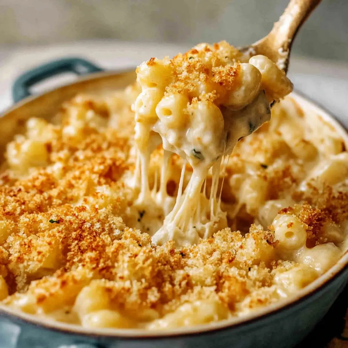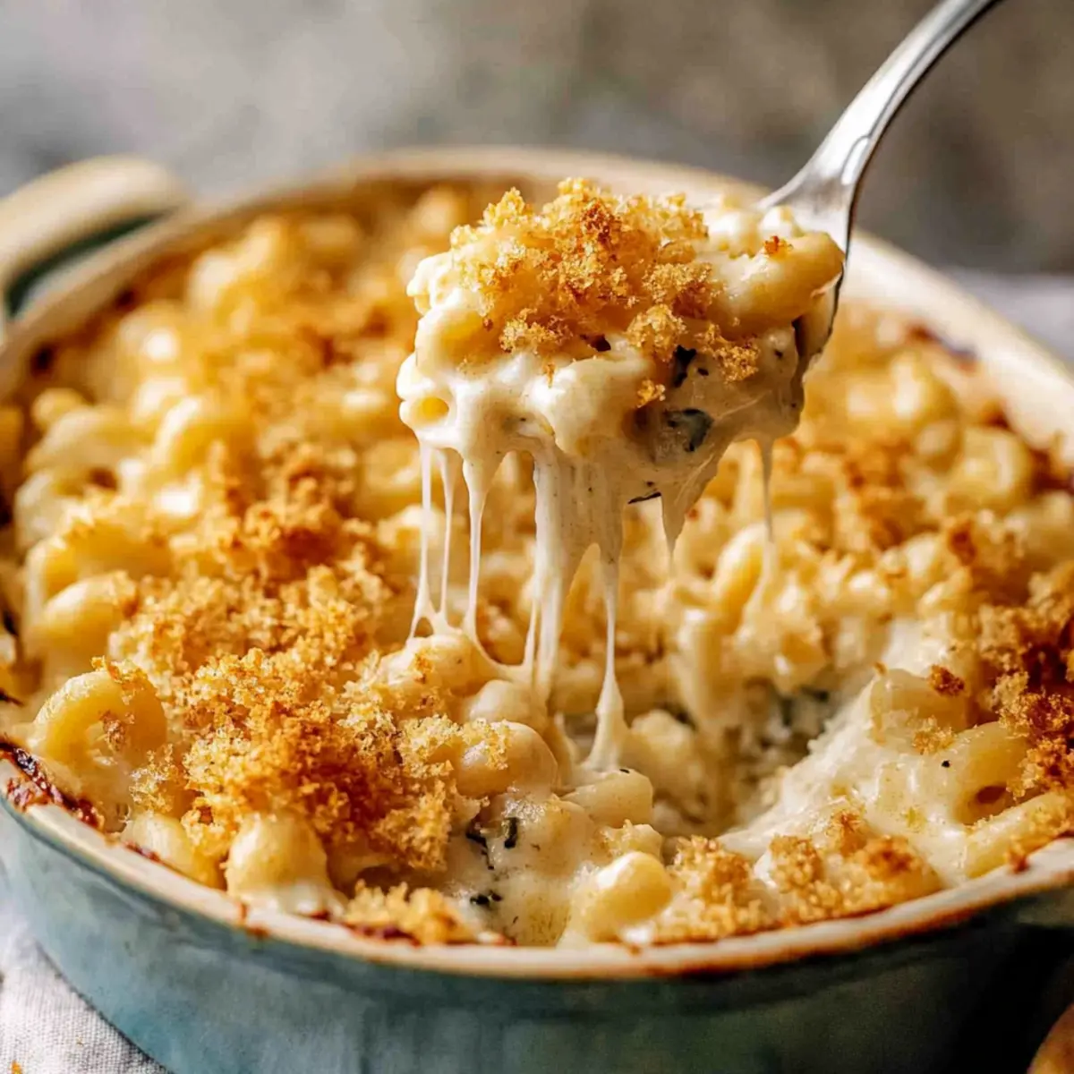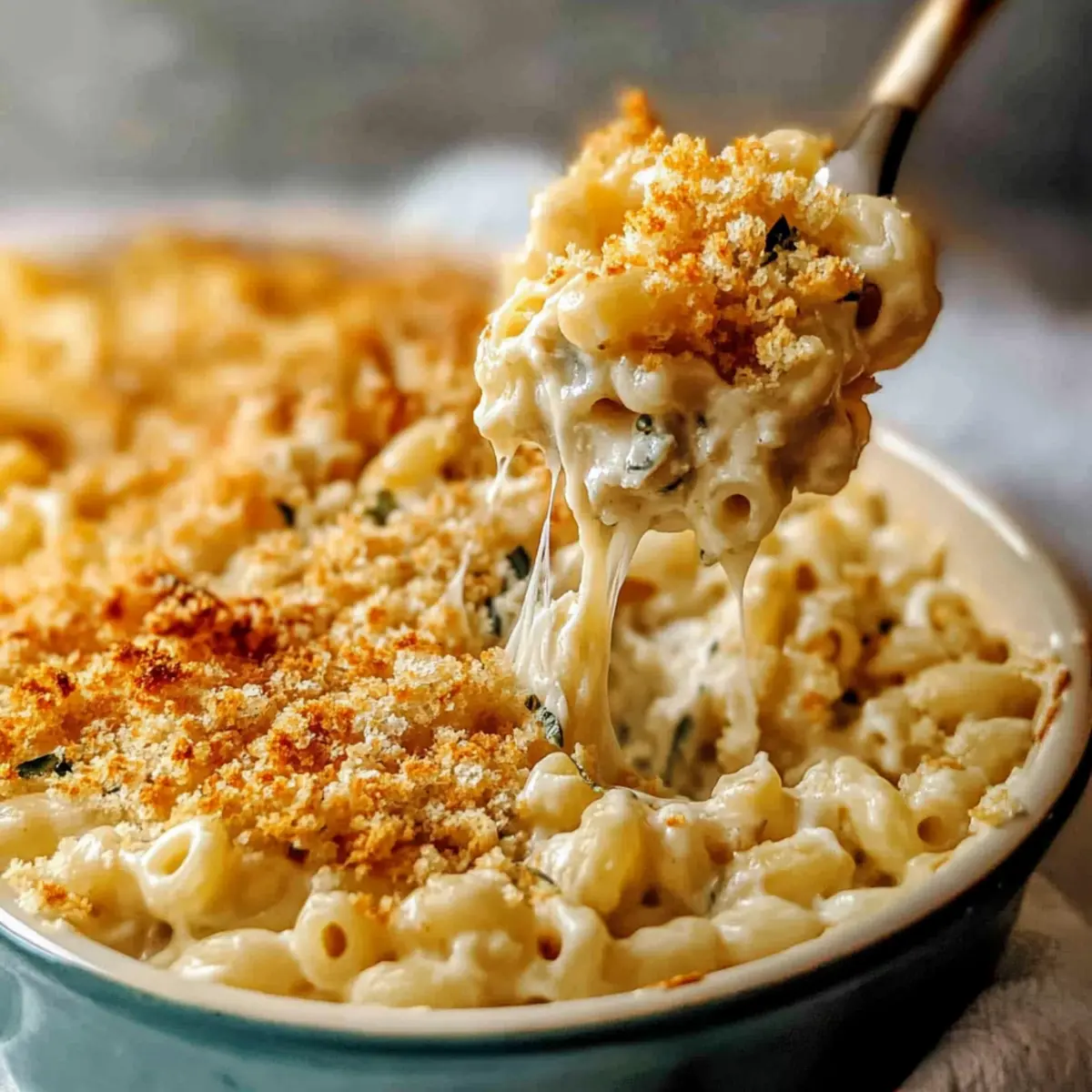 Jump to Recipe Print RecipeAs I stood in my kitchen, the rich aroma of melted Boursin cheese wafting through the air felt like a warm embrace. It’s astounding how a few simple ingredients can transform a classic dish into something extraordinary, and this Boursin Mac and Cheese is a true testament to that. Not only is it a quick and easy meal perfect for those busy weeknights, but the creamy sauce, enriched with the herbaceous notes of Boursin, turns this comfort food into an experience. Topped with a crunchy breadcrumb layer that adds the right amount of texture, it’s a dish that feels indulgent yet is deceptively simple to whip up. Are you ready to elevate your mac and cheese game? Let’s dive into this delicious recipe! Why is Boursin Mac and Cheese So Special? Creamy Indulgence: This recipe elevates your traditional mac and cheese with the luxurious creaminess of Boursin cheese, creating a rich flavor profile that comforts the soul. Quick to Prepare: With simple ingredients, you can whip this up in under 30 minutes—perfect for busy weeknights! Endless Adaptability: Feel free to customize with your favorite vegetables or proteins; think steamed broccoli or grilled chicken for extra nutrition. Impressive Texture: The crispy breadcrumb topping provides a delightful crunch, balancing the velvety sauce, making it an exciting dish for family and guests alike. Crowd-Pleasing Appeal: This Boursin Mac and Cheese is bound to be a hit at your dinner table, reminiscent of gourmet dishes for a fraction of the effort! If you’re looking for other comforting options, check out my delicious Garlic Parmesan Cheeseburger or Crock Pot Cheeseburger Soup for a satisfying twist! Boursin Mac and Cheese Ingredients This creamy dish comes together with a few simple ingredients that pack a flavor punch! For the Pasta • Short Pasta – Essential for the base; use macaroni or shells for optimal sauce adherence. For the Cheese Sauce • Boursin Cheese – Provides the creamy and flavorful base; can substitute with other cream cheeses, but flavor may change. • White Cheddar Cheese – Enhances richness and sharpness; any melting cheese can be used if needed. • Heavy Cream – Adds creaminess and body to the sauce; half-and-half can be a lighter option. • Milk – Adjusts sauce consistency; try almond milk for a plant-based version. • Salt – Enhances flavor; adjust according to your taste preference. • Unsalted Butter – Used for roux and breadcrumb topping; margarine or vegan butter works as a substitute. • All-Purpose Flour – Thickens the cheese sauce; gluten-free flour can be used for a gluten-free variant. For the Topping • Plain Breadcrumbs – Provides a crunchy topping; panko breadcrumbs will give extra crunch and texture. With these ingredients, you’ll be well on your way to creating an unforgettable Boursin Mac and Cheese experience! Step‑by‑Step Instructions for Boursin Mac and Cheese Step 1: Cook Pasta Begin by bringing a large pot of salted water to a rolling boil. Add your choice of short pasta, like macaroni or shells, and cook according to package instructions until al dente, typically about 8–10 minutes. Once done, drain the pasta and reserve about half a cup of the starchy pasta water for later use. Step 2: Make Cheese Sauce In the same pot used for the pasta, melt 4 tablespoons of unsalted butter over medium heat. Whisk in 1/4 cup of all-purpose flour for about 1 minute until bubbly, then gradually pour in 1 cup of heavy cream while whisking constantly until the mixture is smooth and thickens slightly, about 2–3 minutes. Slowly add in 8 ounces of Boursin cheese and 1 cup of white cheddar, mixing until completely melted and creamy. Step 3: Combine Pasta and Sauce Gently fold the drained pasta into the cheese sauce, ensuring each piece is well coated. If the mixture appears too thick, add a splash of the reserved pasta water or a bit more milk until you achieve your desired creaminess. This combination transforms your pasta into a luscious Boursin Mac and Cheese that’s hard to resist. Step 4: Prepare Breadcrumb Topping In a separate skillet, melt an additional 2 tablespoons of butter over medium-low heat. Once melted, add 1 cup of plain breadcrumbs and toast them, stirring frequently for about 3–5 minutes or until they turn golden brown and fragrant. This step enhances the dish’s texture, giving the mac and cheese a delightful crunch. Step 5: Assemble Dish Spoon the creamy Boursin Mac and Cheese into individual serving dishes or a large casserole dish. Generously sprinkle the toasted breadcrumb mixture on top to create a crispy layer. For a fresh touch, consider garnishing with chopped herbs like parsley or chives before serving. Step 6: Serve Immediately Enjoy your Boursin Mac and Cheese while it’s hot for the most delightful experience. The creamy sauce, combined with the crunchy topping, makes for a comforting dish that’s perfect for any family dinner or cozy night in! Expert Tips for Boursin Mac and Cheese Cheese Quality Matters: Use freshly grated cheese to achieve that ultra-smooth melt. Pre-shredded cheese contains anti-caking agents that can affect your creamy sauce. Adjust Creaminess: If your sauce is too thick, add reserved pasta water gradually until you reach the desired consistency, ensuring your Boursin Mac and Cheese stays luscious. Breadcrumb Caution: When broiling the breadcrumb topping, keep a close eye on it! It can burn quickly—2-3 minutes is all you need for a perfect golden color. Cook Additionally: Ensure you cook your roux for at least 2-3 minutes to eliminate any raw flour taste, enhancing the overall flavor of your cheese sauce. Versatile Substitutions: Don’t hesitate to swap Boursin with other cream cheeses or gourmet blends. This flexibility allows you to customize your Boursin Mac and Cheese based on what you have! What to Serve with Easy Boursin Mac and Cheese Nothing completes a wholesome dinner like perfect pairing