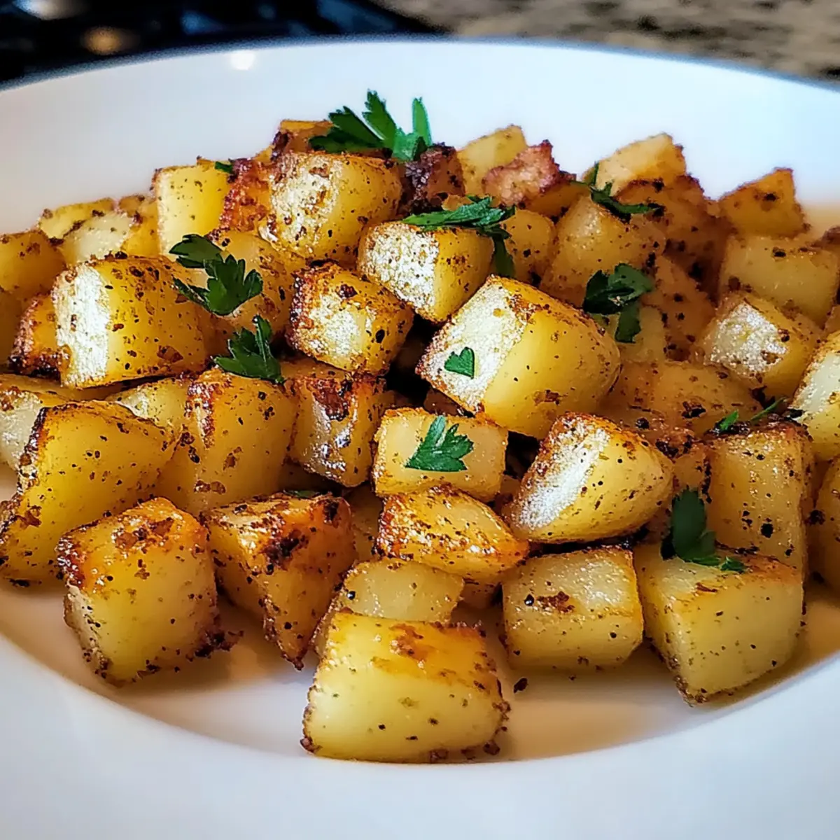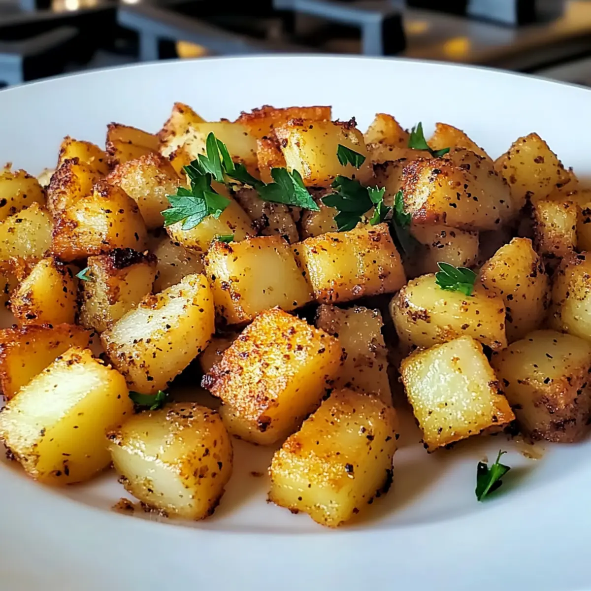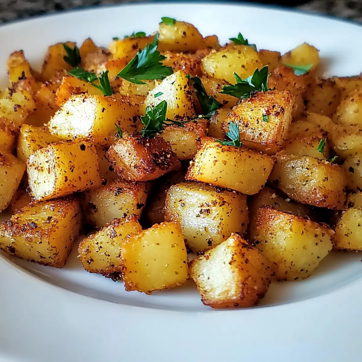 Jump to Recipe Print RecipeThe aroma of sizzling potatoes has a magical way of slicing through the morning routine, doesn’t it? This is where my Quick and Crispy Breakfast Potatoes come into play—a perfect dish to elevate your breakfast game. With just 20 minutes of your time, you can whip up these crunchy, golden potato morsels that are not only gluten-free but also incredibly versatile. Whether you’re serving them as a comforting side or making them the star of your plate—topped with eggs, herbs, or even hot sauce—they promise to bring joy and satisfaction to your mornings. Plus, the customization options allow you to add your personal flair, ensuring every batch feels uniquely yours. Are you ready to turn your morning into a feast? Let’s dive into how to create these irresistible breakfast potatoes! Why Make These Breakfast Potatoes? Crispy Perfection: These breakfast potatoes achieve an unbeatable golden-brown crunch that transforms any morning. Quick Prep: Ready in under 20 minutes, they fit perfectly into your busy schedule. Versatile: Serve them alongside fluffy scrambled eggs, crispy bacon, or even on top of avocado toast for a nutritious kick! Customization Galore: Easily adapt the recipe with your favorite spices or vegetables, like adding diced peppers for extra flavor. Crowd-Pleasing: Ideal for family breakfasts or brunch gatherings, these potatoes are sure to impress your guests. Delicious Leftovers: Enjoy them as a snack throughout the day or pair with a fresh salad for a tasty lunch. Consider making these alongside Muffin Breakfast Pizza for a fun and varied brunch menu! Breakfast Potatoes Ingredients • Get ready to whip up a flavorful batch! For the Potatoes • Potatoes – Firm varieties like Russet or red yield the best results; feel free to use any variety you have on hand. • Unsalted Butter (1 tablespoon) – Adds richness; switch to salted if you prefer a different flavor profile. • Oil (1 tablespoon) – Essential for frying; use high smoke point oils like olive or canola. For Seasoning • Salt (1 teaspoon) – Elevates flavor; sea salt adds a gourmet touch. • Black Pepper (1 teaspoon) – Adds warmth; use freshly cracked for a delightful kick. • Garlic Powder (1 teaspoon) – Introduces deep savory notes; fresh garlic can amplify the flavor even more. • Onion Powder (1 teaspoon) – Contributes sweetness and aroma; substitute with fresh onion for an added crunch. For Garnish • Chopped Parsley (2 tablespoons) – Freshens up the dish; opt for chives or cilantro if you’re looking for variation. Embrace the joy of making these breakfast potatoes, and enjoy the endless possibilities they bring to your morning table! Step‑by‑Step Instructions for Quick and Crispy Breakfast Potatoes Step 1: Prepare the Potatoes Begin by washing, peeling, and cutting your chosen firm potatoes into uniform ½-inch cubes to ensure even cooking. This step is essential for achieving the perfect texture in your breakfast potatoes. Once diced, set the potatoes aside in a bowl while you prepare the skillet. Step 2: Heat the Skillet Place a large skillet over medium-high heat for about 2-3 minutes until it’s hot. Carefully add 1 tablespoon of unsalted butter and 1 tablespoon of cooking oil, like olive or canola. As the butter melts and combines with the oil, it forms a flavorful base that will help achieve that crispiness we love in breakfast potatoes. Step 3: Add the Potatoes Toss the diced potatoes into the heated skillet, spreading them out in a single layer. Allow them to sizzle for approximately 30 seconds without stirring. This initial contact with the hot surface is crucial for developing that sought-after golden-brown layer in your breakfast potatoes. Step 4: Season the Potatoes Generously season the potatoes with 1 teaspoon each of salt, black pepper, garlic powder, and onion powder. Gently toss everything together to ensure the potatoes are evenly coated with the seasoning. The aromatic blend will enhance the flavors as they cook and provide a delightful aroma in your kitchen. Step 5: Steam the Potatoes Cover the skillet with a lid and steam the potatoes for about 3-4 minutes. This steaming process helps to soften the potatoes while maintaining their moisture. You’ll know they are ready when you can smell the rich combination of garlic and onion wafting through your kitchen! Step 6: Crisping the Potatoes After steaming, carefully remove the lid and stir the potatoes gently to redistribute them. Continue cooking uncovered for 8-10 minutes, allowing them to sauté until they turn deliciously golden and crispy. Check occasionally and give them a stir to prevent sticking, ensuring all sides get that perfect crunch. Step 7: Garnish and Serve Once the breakfast potatoes are crispy on the outside and tender on the inside, remove them from the heat. Garnish with freshly chopped parsley for a pop of color and freshness. Serve hot alongside your favorite breakfast dishes, and enjoy the satisfying crunch of these delightful breakfast potatoes! Make Ahead Options These Crispy Breakfast Potatoes are perfect for meal prep, ensuring your busy mornings are a breeze! You can chop the potatoes and store them in cold water for up to 24 hours to prevent browning. Alternatively, season them in advance and keep the spices separate—this way, you can save precious time before cooking. When you’re ready to serve, simply drain, pat dry, and fry them according to the original instructions for those deliciously crispy results. By prepping ahead, you’ll not only cut down your cooking time significantly but also enjoy the comforting crunch of freshly made breakfast potatoes without the hassle! Expert Tips for Crispy Breakfast Potatoes Uniform Cuts: Ensure your potatoes are cut into ½-inch cubes for even cooking. This prevents some pieces from being undercooked while others are overly crispy. Preheat Properly: Allow your skillet to heat adequately before adding the potatoe