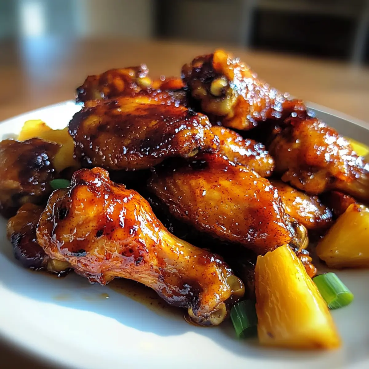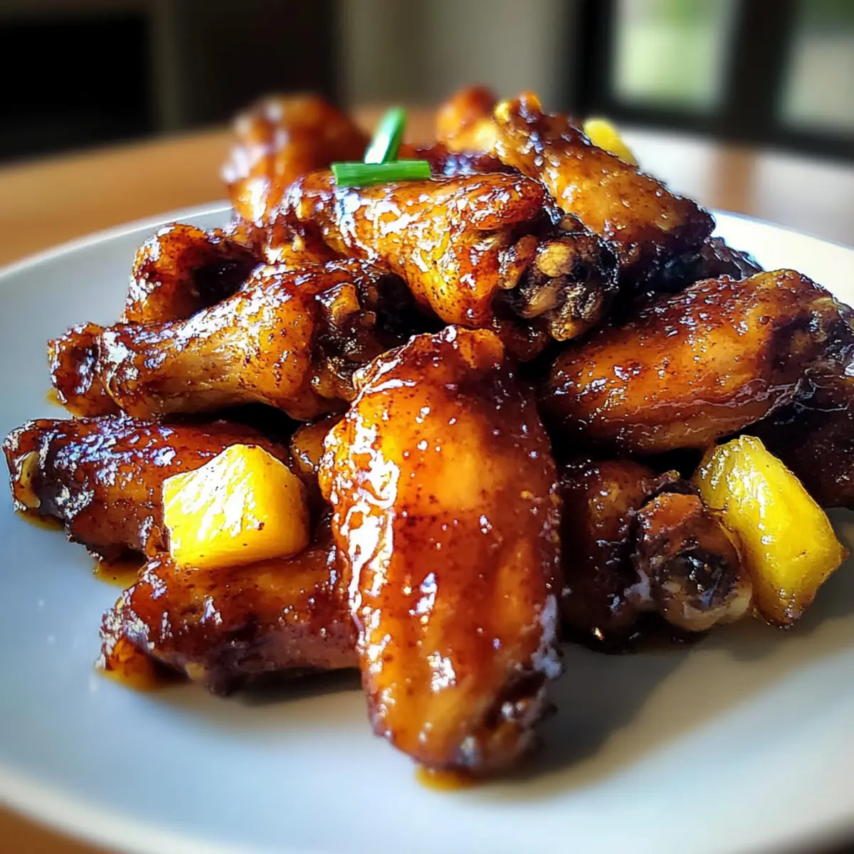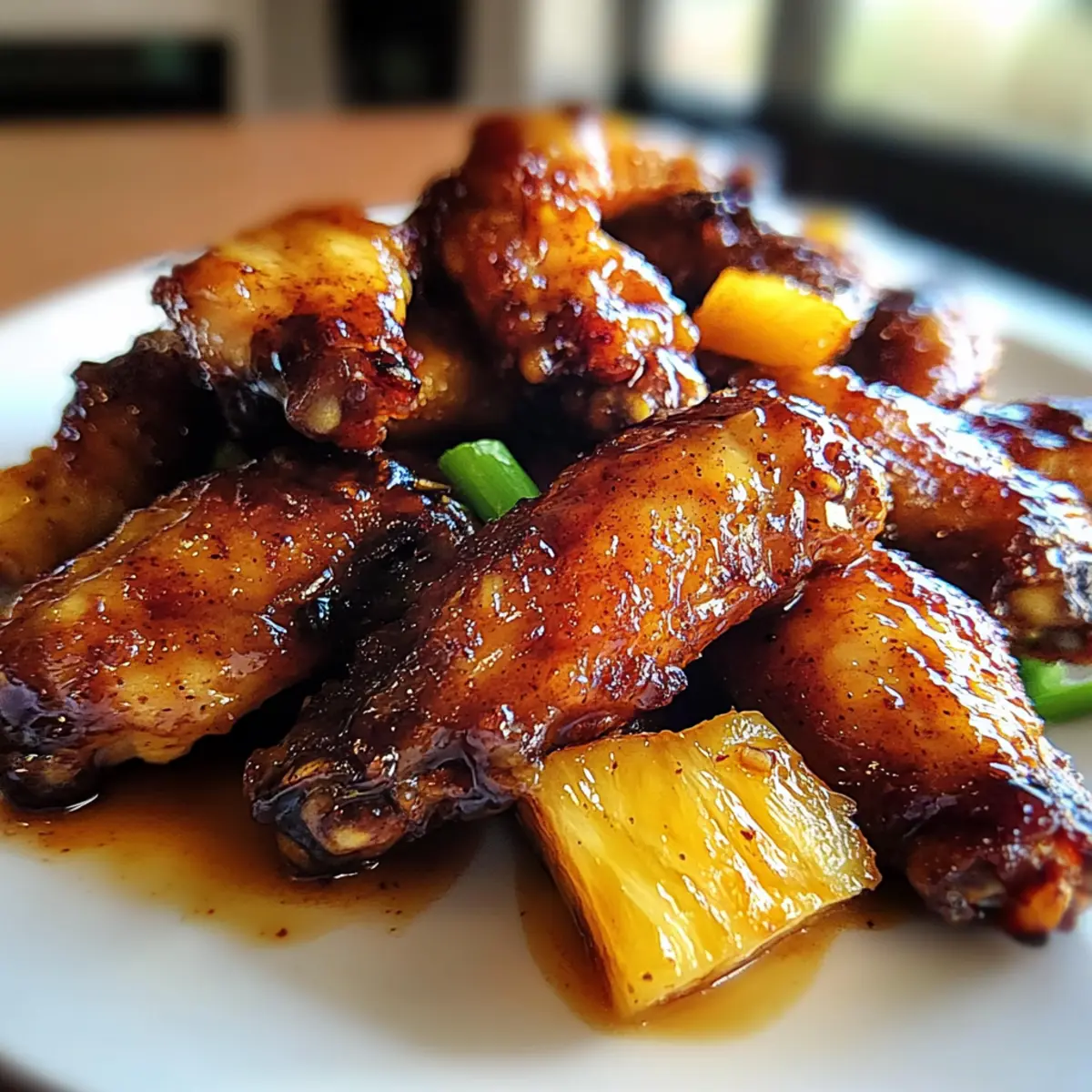 Jump to Recipe Print RecipeAs I savored the last sticky morsel of my latest kitchen experiment, it hit me—there’s nothing like a delightful twist to elevate a classic dish. Enter my Brown Sugar Pineapple Wings Chicken! These wings are a true crowd-pleaser, marrying the caramel-rich sweetness of brown sugar with the vibrant tang of pineapple. Not only are they easy to whip up, but they’re also a guaranteed hit for game day or any gathering with friends. The best part? You can adapt this recipe to suit your dietary needs, making it effortlessly gluten-free with just a simple substitution. Ready to impress your guests and tantalize your taste buds with a tropical escape? Keep scrolling as I share the steps to create these irresistible wings! Why Are These Wings So Irresistible? Flavor Fusion: The blend of brown sugar and pineapple creates a sweet and tangy experience that’s simply unforgettable. Each bite is like a trip to the tropics! Effortless Preparation: This recipe is designed for quick assembly, making it ideal for game day or last-minute gatherings. Simply toss, bake, and enjoy! Versatile Twist: Whether you prefer classic chicken or want to try cauliflower wings, this glaze is flexible enough to satisfy your cravings. Crowd-Pleasing Appeal: Perfect for gatherings, these wings are sure to be the star of any spread alongside sides like sweet potato fries or grilled pineapple rings, enticing even the pickiest eaters. Easy Adjustments: With simple substitutions for gluten-free diets, everyone can enjoy this delight—no need to stress about meal options! Brown Sugar Pineapple Wings Chicken Ingredients For the Wings • Chicken Wings – The main ingredient, providing protein and structure; use frozen wings, thawed and dried for an extra crunch. • Oil – Essential for coating wings and enhancing crispness; any cooking oil will do just fine. • Garlic Powder – Adds a savory undertone that beautifully complements the glaze; fresh garlic can be used for a pungent kick. • Ground Ginger – Brings warmth and depth; feel free to swap it with fresh ginger for more potency. • Black Pepper – Adds a touch of spice; adjust to taste for personal preference. For the Glaze • Brown Sugar – Provides that delightful sweetness and aids in caramelization; can be substituted with honey or maple syrup for a different twist. • Pineapple Juice – Infuses tanginess and moisture; for a change, substitute with orange juice mixed with a teaspoon of vinegar. • Soy Sauce – Delivers umami flavor; opt for tamari if you need a gluten-free alternative. • Optional Spices (Sriracha/Cayenne) – Perfect for adding a spicy kick; adjust the amount based on your heat preference. These Brown Sugar Pineapple Wings Chicken are an effortless way to bring tropical vibes to your table! Step‑by‑Step Instructions for Brown Sugar Pineapple Wings Chicken Step 1: Preheat the Oven Begin by preheating your oven to 400°F (200°C). This temperature will ensure that your Brown Sugar Pineapple Wings Chicken gets that perfect crispy texture. While the oven is warming up, prepare your baking sheet by lining it with foil for easy cleanup later. Step 2: Season the Wings In a large mixing bowl, toss the thawed chicken wings with a drizzle of oil, ensuring each wing is evenly coated. Add garlic powder, ground ginger, and black pepper, mixing thoroughly to enhance the flavor. This step is crucial, as massaging the seasoning into the wings will elevate your dish. Step 3: Bake the Wings Arrange the seasoned wings in a single layer on the lined baking sheet. Place them in the preheated oven and bake for 15 minutes, allowing the skin to crisp up. You’ll know they’re ready to flip when they have a lovely golden-brown color and a delicious aroma fills your kitchen. Step 4: Flip and Continue Baking Carefully flip each wing over using tongs to ensure even cooking, then return them to the oven for another 15 minutes. Watch closely as they bake until they are beautifully cooked through and golden, perfect for the next step in your Brown Sugar Pineapple Wings Chicken adventure. Step 5: Prepare the Glaze While the wings are baking, grab a saucepan and combine brown sugar, pineapple juice, and soy sauce over medium heat. Stir the mixture until the sugar dissolves, letting it bubble for about 3-5 minutes. You’ll want it to thicken slightly, so you get that rich, sticky glaze to coat your wings. Step 6: Coat the Wings Once your glaze is ready, take each wing from the oven and dunk it into the luscious sauce to coat evenly. Make sure each wing is generously covered for that perfect sweet-tangy flavor. After coating, return all the glazed wings to the baking sheet. Step 7: Final Bake Bake the glazed wings for an additional 10 minutes, allowing the caramelization process to occur. Keep an eye on them, as the sugars will start to bubble and provide that signature stickiness that makes Brown Sugar Pineapple Wings Chicken so irresistible. Step 8: Optional Broil for Crispiness For an extra crispy finish, you can broil the wings for the last 2-3 minutes of cooking. Watch them closely during this step, as they can quickly go from crispy to burnt. This finishing touch will enhance the visual appeal and texture of your wings. Step 9: Cool and Serve Once done, remove your wings from the oven and let them cool slightly. This resting period allows the glaze to set a bit more on the wings. Serve your Brown Sugar Pineapple Wings Chicken warm, and watch them disappear at your next gathering! What to Serve with Irresistible Brown Sugar Pineapple Wings These delightful wings will elevate your meal and make your taste buds dance with joy. Crispy Garlic Fries: The crunch of golden fries pairs perfectly with the sticky sweetness of the wings, creating a satisfying contrast. Tropical Fruit Salad: Bright and refreshing, this salad featuring pineapple, mango, and mint adds a zesty tone that complements the wings beautifully. Asian Slaw: A tangy 