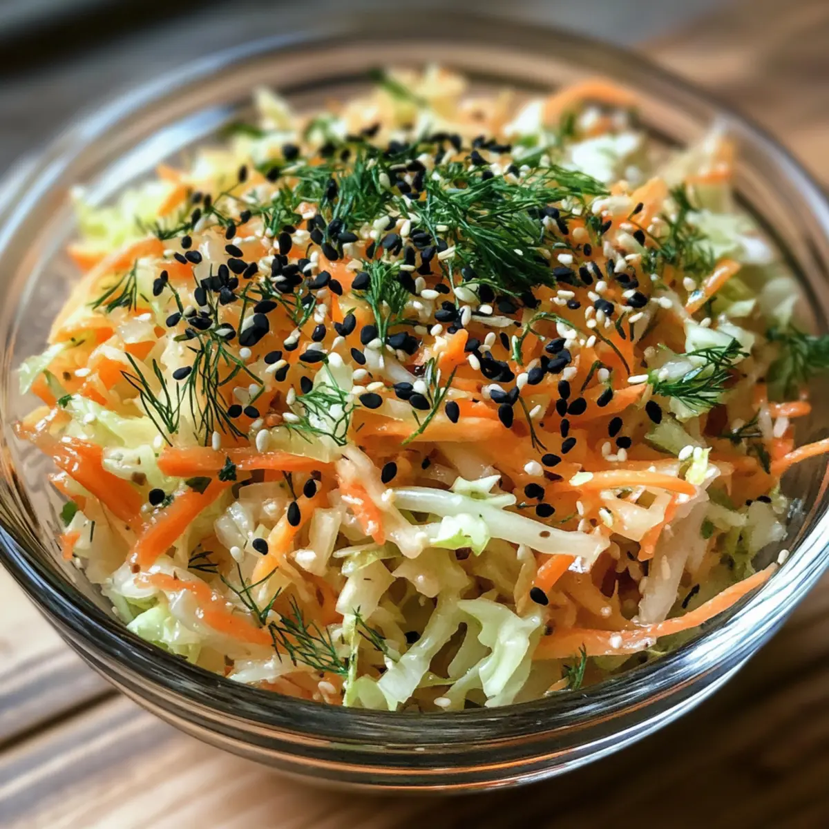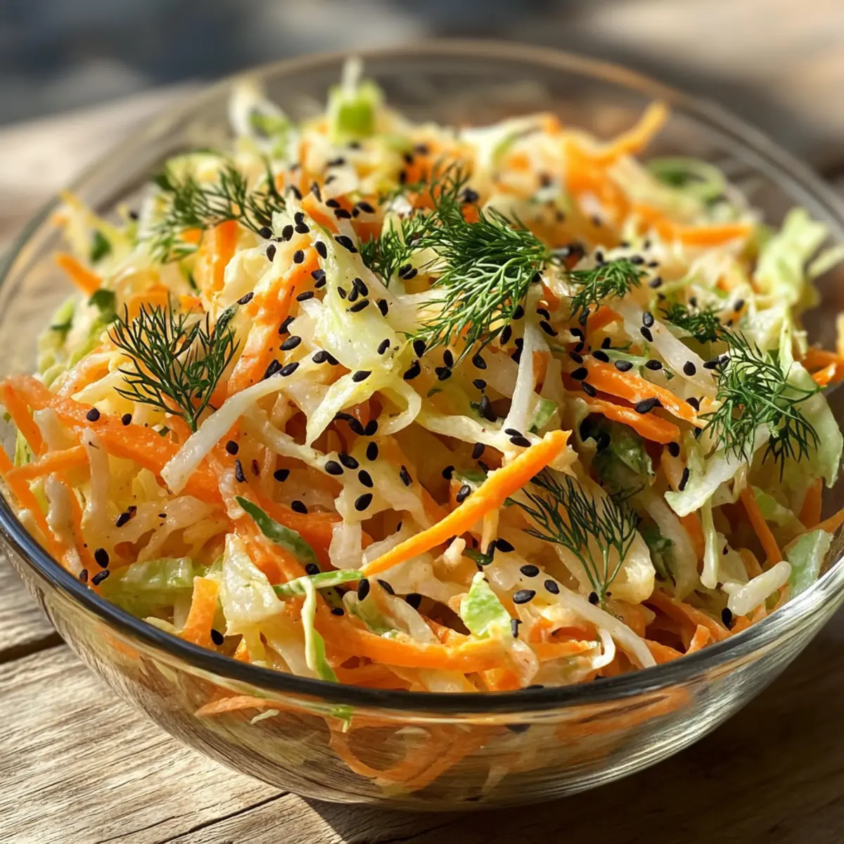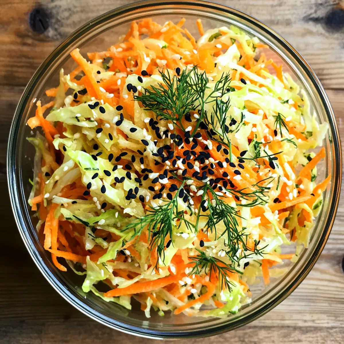 Jump to Recipe Print RecipeIn the midst of a busy day, I found myself craving something alive and vibrant—enter the Simple Easy Cabbage and Carrot Salad. This refreshing creation dances on your palate with its crunchy texture, balancing sweet julienned carrots against the crispness of shredded cabbage, all tied together by a creamy mustard dressing. It’s gluten-free, dairy-free, and perfect for anyone seeking a clean, healthy bite without sacrificing flavor. Plus, it’s incredibly quick to prepare, making it a fantastic ally for weeknight meals or gatherings. Whether you serve it alongside grilled meats, heaped on tacos, or enjoy it as a meal by itself, this salad is sure to delight. Ready to dive into a bowl of colorful goodness? Why is this salad a must-try? Nutrient-packed: This Cabbage and Carrot Salad is loaded with vitamins and fiber, making it a perfect choice for health-conscious eaters. Easy to Prepare: With just a few simple steps, you can whip up this vibrant dish in no time! Burst of Flavor: The creamy mustard dressing adds a zesty kick that elevates the fresh ingredients, creating a delightful harmony. Versatile: Great as a side for grilled meats or even on tacos, it caters to all occasions. Plus, consider adding elements from recipes like Radish Salad Roasted or Cucumber Shrimp Salad for varied flavor profiles! Crowd Pleaser: Perfect for gatherings, its colorful presentation and fresh taste will impress friends and family alike. Cabbage and Carrot Salad Ingredients For the Salad • Shredded Green Cabbage – The base of the Cabbage and Carrot Salad, adding a satisfying crunch and plenty of fiber. • Julienned Carrots – These sweet strips bring vibrant color and a touch of natural sweetness; aim for about 3 medium carrots. • Fresh Dill – This herb provides aromatic freshness; if you don’t have dill, fresh parsley is a tasty substitute. • Onion (Sliced) – Adds a sharp bite; consider using green onions for a milder flavor profile. • Black Sesame Seeds – Not just for visual appeal, they also contribute a nutty essence; feel free to swap with regular sesame seeds if preferred. For the Creamy Dressing • Creamy Mustard (Dijon or Yellow) – The star ingredient for that zesty tang in the dressing. • Honey or Maple Syrup – Bring in some sweetness; choose maple syrup for a vegan-friendly option. • Sour Cream – Adds creaminess; switch to a non-dairy version to keep it vegan. • Apple Cider Vinegar – This adds acidity that perfectly balances the dressing’s flavors. • Sea Salt – A little bit enhances every ingredient in the salad. • Garlic Granules – Infuses a subtle garlic flavor; you can opt for fresh minced garlic for a stronger punch. Step‑by‑Step Instructions for Cabbage and Carrot Salad Step 1: Prepare the Vegetables Begin by finely shredding about 4 cups of green cabbage using a mandoline or sharp knife, aiming for thin, even slices to achieve that delightful crunch. Next, julienne 3 medium carrots, ensuring they are vibrant and sweet. Finally, slice half an onion and chop a handful of fresh dill. Gather all the ingredients in a large mixing bowl, creating a colorful base for your Cabbage and Carrot Salad. Step 2: Mix the Salad In the large bowl with your prepared vegetables, add the shredded cabbage, julienned carrots, chopped dill, sliced onion, and two tablespoons of black sesame seeds. Toss the mixture gently but thoroughly until everything is well-distributed and the colors beautifully blend. This vibrant assembly provides a fresh and crunchy foundation, setting the stage for the delicious dressing to come. Step 3: Make the Dressing In a small bowl, combine 1/4 cup of creamy mustard (such as Dijon or yellow mustard), 2 tablespoons of honey or maple syrup for vegan options, and 1/2 cup of sour cream, or a non-dairy alternative for a vegan dressing. Add 2 tablespoons of apple cider vinegar, a pinch of sea salt, and 1/2 teaspoon of garlic granules. Whisk vigorously until the dressing is smooth and creamy, with a tantalizing tang that complements the Cabbage and Carrot Salad. Step 4: Combine Salad and Dressing Pour the prepared dressing over the bowl of vegetables. Using salad tongs or a large spoon, gently mix everything together, ensuring each piece of cabbage and carrot is coated in that creamy mustard goodness. Take a moment to taste, adjusting the seasoning or adding a touch more dressing if desired; the balance of flavors should be both zesty and refreshing. Step 5: Serve and Enjoy Once combined, your Cabbage and Carrot Salad is ready to be served! For an immediate burst of freshness, enjoy it right away. Alternatively, for enhanced flavor melding, refrigerate the salad for up to 2 hours before serving. Remember to keep the dressing separate until you’re ready to serve if you prefer optimal texture. This salad is perfect as a side dish, a topping for tacos, or enjoyed on its own! How to Store and Freeze Cabbage and Carrot Salad Fridge: Store the salad in an airtight container for up to 2 days. For the best flavor and texture, keep the dressing separate until you’re ready to serve. Freezer: It’s not recommended to freeze this salad due to its fresh ingredients; freezing may result in an undesirable texture once thawed. Reheating: Enjoy the salad cold or at room temperature. If desired, you can slightly warm it in a microwave, but avoid overheating to maintain the crispness of the veggies. Preparation Tip: To retain the crunchiness of the Cabbage and Carrot Salad, it’s best to prepare the dressing just before serving. This way, every bite remains fresh and delightful! Make Ahead Options This Cabbage and Carrot Salad is perfect for meal prep enthusiasts looking to save time during busy weeknights! You can prepare the vegetables—shredded cabbage, julienned carrots, sliced onions, and chopped dill—up to 24 hours in advance. Store them in an airtight container in the refrigerator to maintain their crispness. The dress