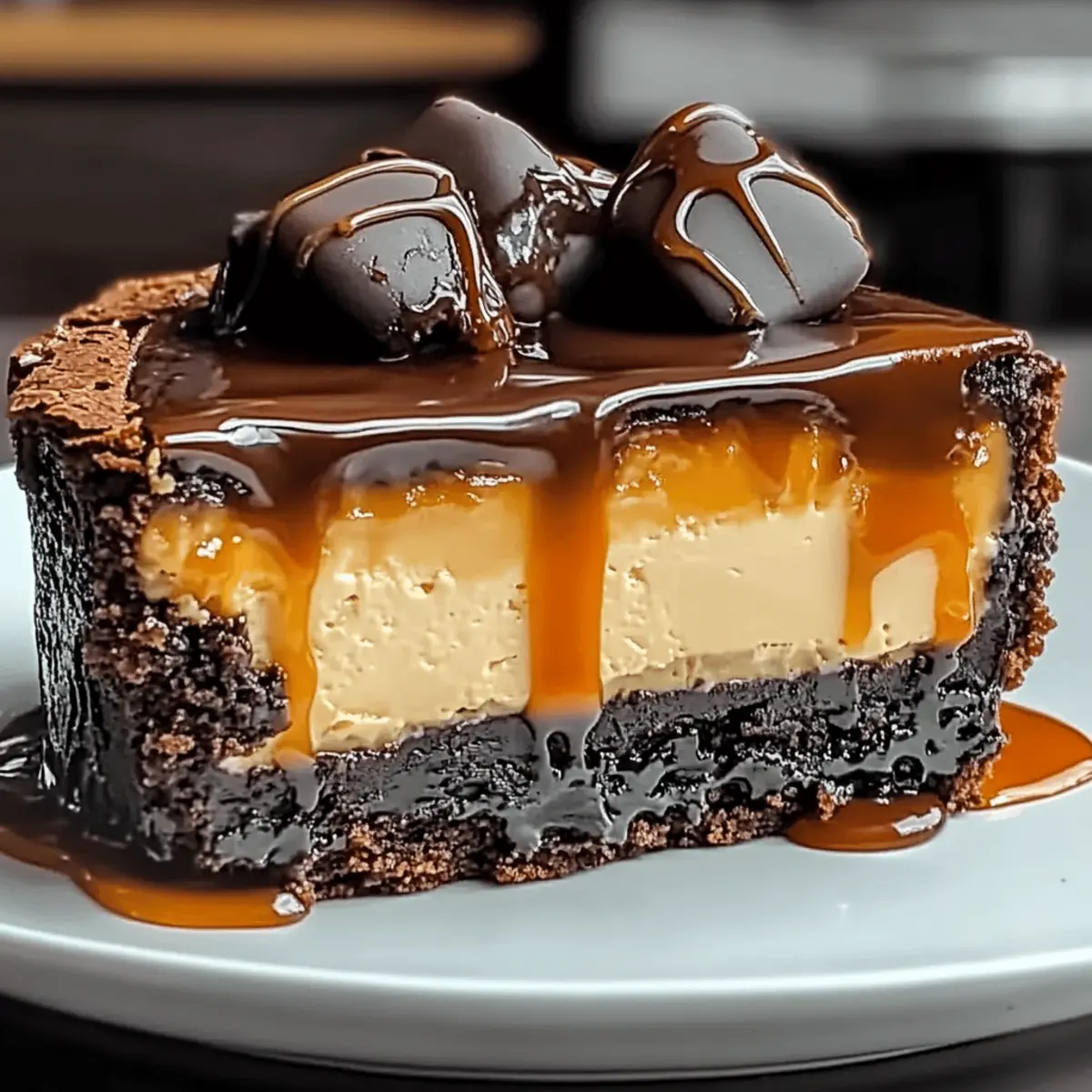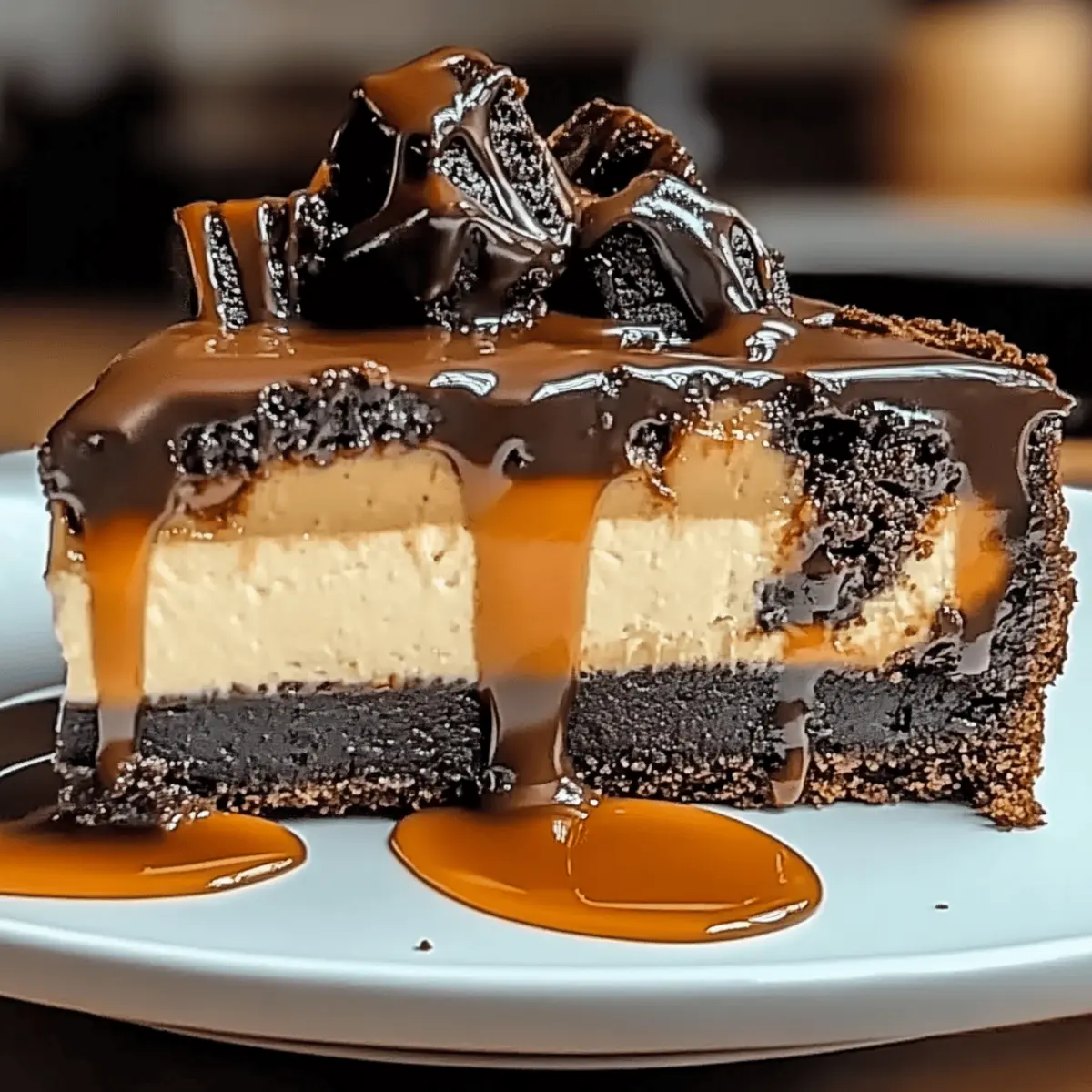 Jump to Recipe Print RecipeA delightful aroma wafts through the air, instantly transporting me to memories of cozy coffee shops with decadent desserts. This is the magic of my Caramel Brownie Cheesecake, where fudgy brownies meet a creamy cheesecake layer, all crowned with a rich caramel drizzle. As I prepare this indulgent dessert, I can’t help but think how perfect it is for any occasion, from intimate dinners to festive gatherings. Not only is this treat incredibly versatile—offering options for dairy-free, gluten-free, and no-added-sugar variations—but it’s also incredibly easy to whip up at home. Imagine impressing your friends and family with this show-stopping dessert that feels gourmet yet effortlessly made in your kitchen. Are you ready to dive into the world of rich flavors and smooth textures? Let’s get started! Why Is This Cheesecake a Must-Try? Indulgent Layers: The rich contrast of fudgy brownies and creamy cheesecake makes every bite a heavenly experience. Customizable Options: This dessert is versatile, allowing you to easily adapt it for dietary preferences—whether it’s dairy-free or gluten-free. Simple and Convenient: With straightforward instructions, it’s surprisingly easy to make at home, perfect for any skill level. Crowd-Pleasing Delight: It’s the kind of dessert that can turn an ordinary gathering into a celebration, leaving everyone asking for seconds. Savory and Sweet: The caramel drizzle on top adds the perfect finishing touch, balancing sweetness with depth—one taste and you’ll be hooked! Plus, if you’re in the mood for more delightful variations, don’t forget to check out our Strawberry Cheesecake Sandwiches or the refreshing Lime Mousse Cheesecake options! Caramel Brownie Cheesecake Ingredients For the Brownie Base • Unsalted Butter – Provides richness and moisture. Substitution: Use coconut oil for a dairy-free option. • Granulated Sugar – Sweetens and enhances the texture. Note: Brown sugar can deepen flavor. • Large Eggs – Binds ingredients; adds richness. Substitution: Flaxseed meal and water for a vegan option. • Vanilla Extract – Adds depth of flavor. Note: Almond extract for a different twist. • All-Purpose Flour – Provides structure to the brownie base. Substitution: Gluten-free flour for gluten-sensitive diets. • Cocoa Powder – Introduces deep chocolate flavor. Use unsweetened for best results. For the Cheesecake Layer • Cream Cheese – Main component of the cheesecake layer, contributing creaminess. Substitution: Dairy-free cream cheese for a vegan version. • Sour Cream – Adds tanginess and moistness. Substitution: Greek yogurt for a healthier choice. • Large Eggs – Essential for binding the filling. You can skip if making a no-bake version. • Granulated Sugar – Sweetens the cheesecake. Consider using a sugar substitute for a no sugar added version. • Vanilla Extract – Enhances the overall flavor profile of the cheesecake. For the Caramel Drizzle • Granulated Sugar – Base for the caramel; allow it to melt until golden amber. Note: Be patient; stirring can cause crystallization. • Unsalted Butter – Adds richness to the caramel sauce. Substitution: Use vegan butter for a dairy-free choice. • Heavy Cream – Enriches the caramel sauce. Substitution: Coconut cream for a dairy-free alternative. • Sea Salt – Enhances the overall flavor. Note: Himalayan salt can be used for a unique touch. Step‑by‑Step Instructions for Caramel Brownie Cheesecake Step 1: Preheat the Oven Begin by preheating your oven to 350°F (175°C). While it warms, take a 9-inch springform pan and grease it thoroughly with unsalted butter. This will ensure that your Caramel Brownie Cheesecake releases easily later on. Keep an eye on the oven as it heats, ready for baking the decadent brownie base. Step 2: Prepare the Brownie Batter In a medium saucepan, melt unsalted butter over low heat, stirring continuously. Once it’s melted, remove it from the heat and whisk in granulated sugar until the mixture is smooth. Next, add eggs and vanilla extract, blending thoroughly. Carefully fold in the dry ingredients—flour, cocoa powder, and a pinch of sea salt—until just combined to maintain a fudgy texture. Step 3: Bake the Brownie Layer Pour the brownie batter into your prepared springform pan, spreading it evenly with a spatula. Place the pan into the preheated oven and bake for 25–30 minutes; the edges should be set while the center remains slightly soft. When done, let it cool in the pan on a wire rack for about 30 minutes, allowing it to firm up before adding the cheesecake layer. Step 4: Create the Cheesecake Filling In a large mixing bowl, beat the cream cheese with an electric mixer until it’s smooth and creamy, about 2–3 minutes. Gradually add the sugar, eggs, vanilla extract, and sour cream, mixing until completely incorporated. Aim for a smooth consistency, avoiding over-mixing, which can introduce air and lead to cracks in your Caramel Brownie Cheesecake. Step 5: Bake the Cheesecake Layer Once the brownie base has cooled, pour the cheesecake filling over it, spreading it gently for an even layer. Return the pan to the oven and bake for an additional 30–35 minutes; the cheesecake should be set around the edges but have a slight jiggle in the center. Keep an eye on it to avoid overcooking and maintain that lovely creamy texture. Step 6: Make the Caramel Sauce While the cheesecake cools, prepare the caramel sauce. In a medium saucepan over medium heat, add granulated sugar and cook, stirring occasionally, until it melts into a golden amber color. Carefully add butter and heavy cream, continuing to stir until the caramel is smooth. Finish by mixing in a pinch of sea salt for a delightful contrast to the sweetness. Step 7: Assemble and Chill Once the cheesecake has been baking, cool it on a wire rack for about 1 hour. After cooling, drizzle the homemade caramel sauce generously over the top.