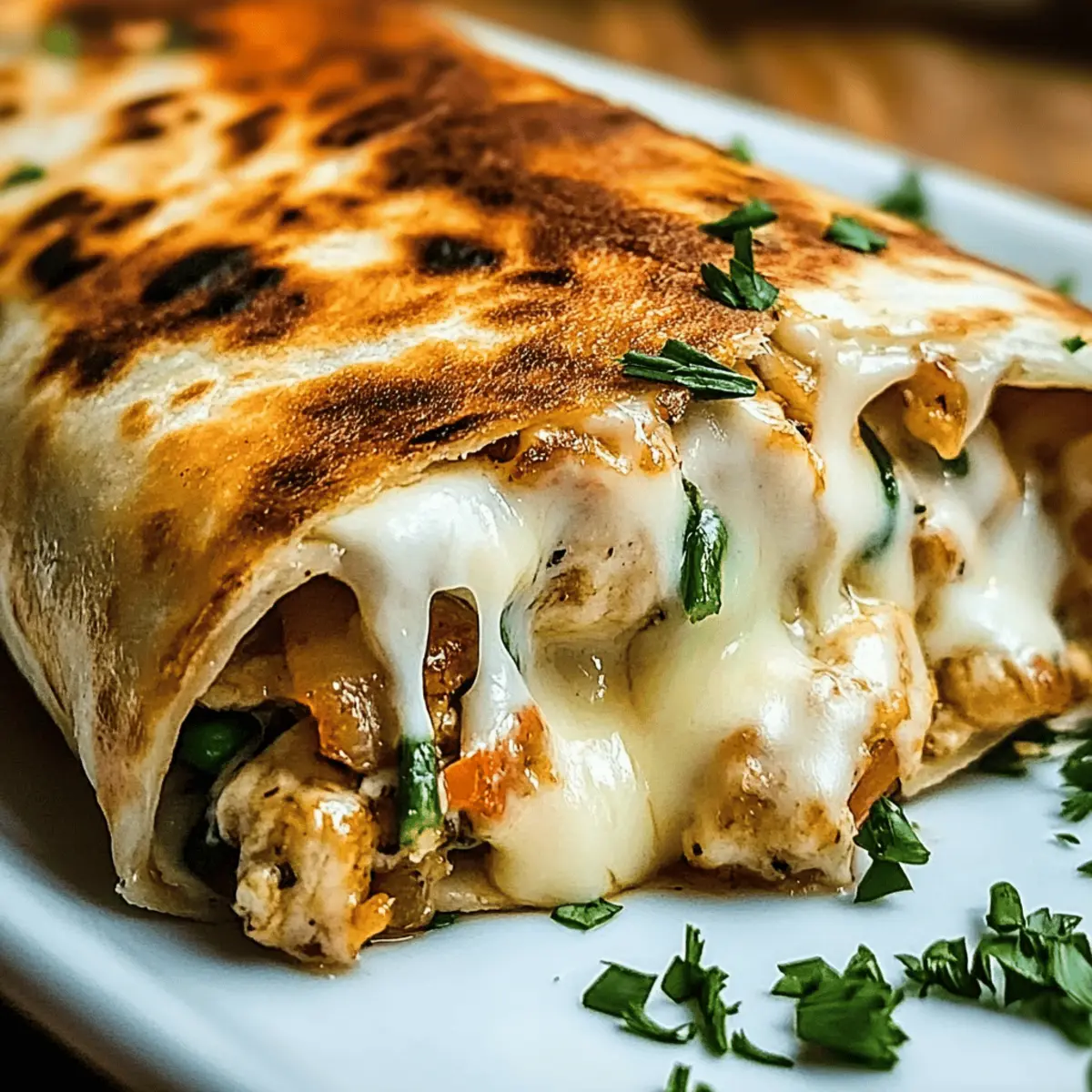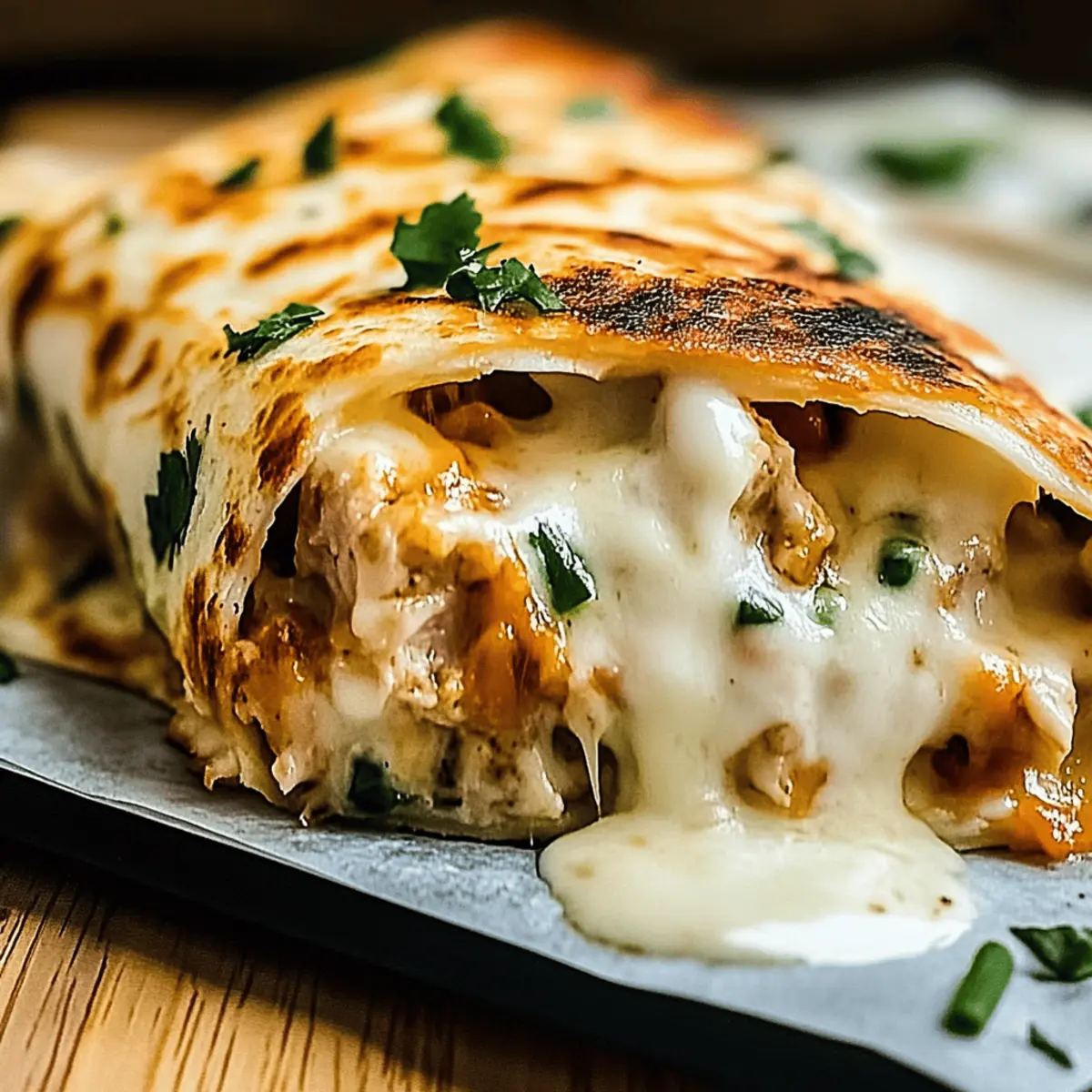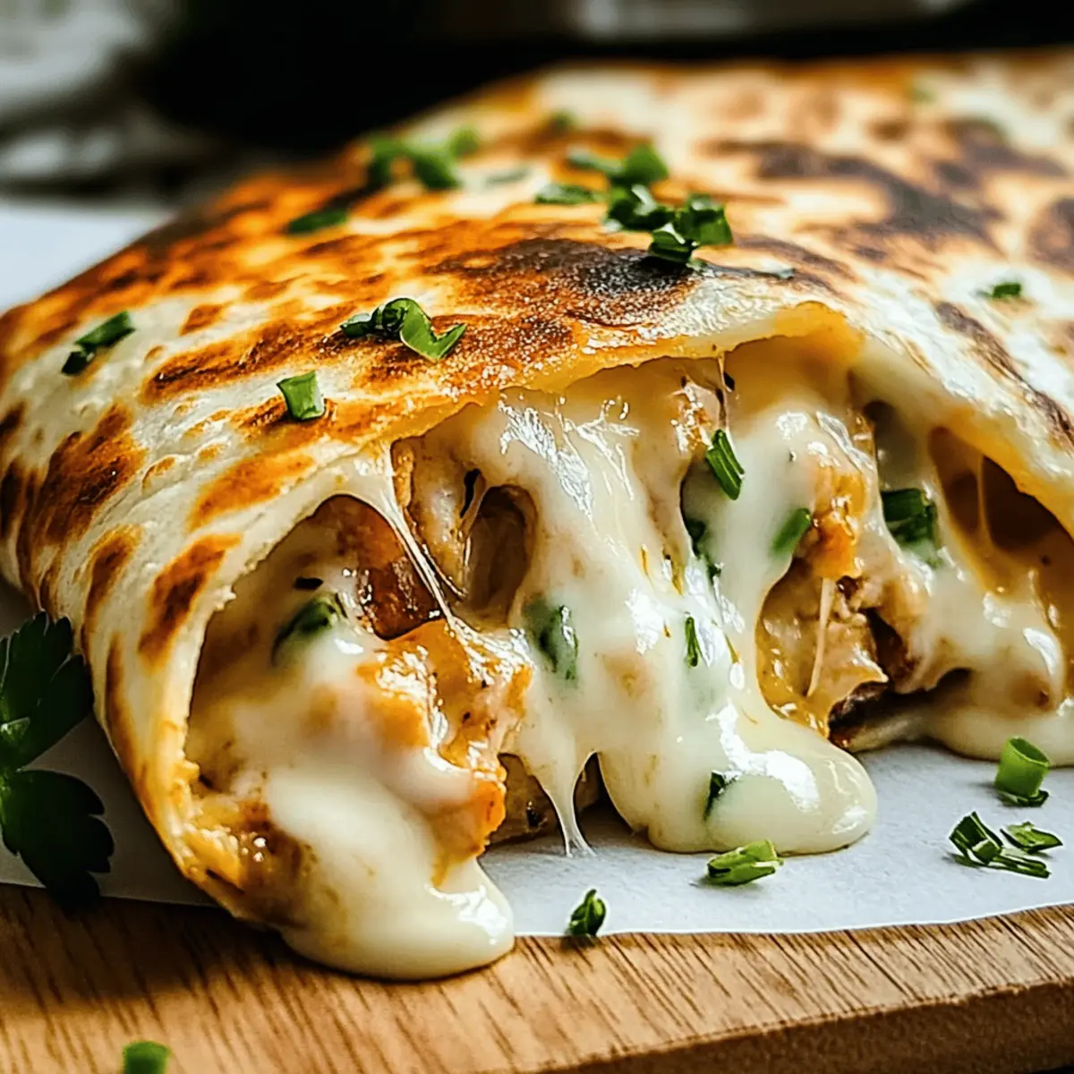 Jump to Recipe Print RecipeThe sizzle of seasoned chicken hitting a hot skillet instantly brings comfort, evoking evenings filled with laughter and delicious food. Today, I’m thrilled to share my recipe for Cheesy Garlic Chicken Wraps, which have quickly become a staple in our home. These wraps are not only a breeze to whip up, making them perfect for those busy nights, but they also deliver a satisfying crunch with gooey, cheesy goodness inside. What’s even better? You can personalize them with a range of delectable variations, whether you’re craving Mediterranean flavors or a spicy Southwest kick. With a little creativity, these wraps transform from a comforting classic into an adventure for your taste buds. Are you ready to dive into the scrumptious world of cheesy, garlicky goodness? Let’s get started! Why Are These Wraps a Must-Try? Deliciously Customizable: You can easily tweak these Cheesy Garlic Chicken Wraps to suit any taste. From zesty Southwest flavors to Mediterranean vibes, the possibilities are endless! Quick and Easy: With just a few simple ingredients, you can create a satisfying meal in no time, making it ideal for those hectic weekdays. Ultimate Comfort Food: The combination of gooey cheese and savory chicken is bound to make you feel all warm and cozy inside. Crowd-Pleasing Delight: Perfect for family dinners or gatherings, these wraps are sure to impress everyone and leave them asking for seconds! Nutritional Adaptability: Want a healthier alternative? Swap out for gluten-free tortillas or veggie options to cater to various dietary needs. Pair them with some Cheesy Garlic Breadsticks for a complete delightful meal, and you’ll see why these wraps are a staple in our home. Cheesy Garlic Chicken Wraps Ingredients For the Chicken Chicken Breast – Slice into thin strips for even cooking and to ensure a juicy bite. Extra Virgin Olive Oil – Use for sautéing chicken; adds richness and flavor. Garlic – Fresh garlic enhances the robust flavor profile of these wraps. Smoky Paprika – Adds depth and color; regular paprika can be used as a substitute. Chili Flakes – Customize the heat level to your preference; omit for a milder taste. Sea Salt and Black Pepper – Essential for enhancing all the flavors in your wraps. For the Vegetables Sweet Onion – Sweet flavor and texture; adds moisture to the filling. Red Bell Pepper – Adds a pop of sweetness and color; substitute with green bell pepper if desired. Fresh Spinach Leaves – Nutritional addition; they wilt beautifully to integrate into the filling. For the Cheesy Filling Mozzarella Cheese – Melts beautifully for that creamy texture; Chihuahua cheese is a great alternative. Sharp Cheddar – Adds tanginess and depth; American cheese can be used if preferred. Cream Cheese – Contributes creaminess to the filling; use dairy-free cream cheese for a vegan option. Sour Cream – Adds a tangy creaminess; Greek yogurt is a healthier substitute. Fresh Chives – Provides a lovely garnish and subtle onion flavor; green onions can be a great substitute. For the Wraps Flour Tortillas – Make sure they’re fresh for the best texture; use corn for a gluten-free option. Melted Butter – Brushing on tortillas adds richness; olive oil is a lighter alternative. Roasted Garlic Powder – Enhances the garlic flavor in the tortilla; regular garlic powder can work too. Olive Oil Cooking Spray – Ensures a crispy finish when toasting the wraps. With this delightful assembly of ingredients, you’ll soon experience the magic of Cheesy Garlic Chicken Wraps right in your kitchen! Step‑by‑Step Instructions for Cheesy Garlic Chicken Wraps Step 1: Cook Chicken In a large skillet, heat 2 tablespoons of extra virgin olive oil over medium-high heat. Once hot, add your sliced chicken breast in a single layer, ensuring even cooking. Season generously with sea salt, black pepper, smoky paprika, and chili flakes. Sauté for 6-7 minutes until the chicken turns golden brown and reaches an internal temperature of 165°F. Transfer the chicken to a plate and cover to keep warm. Step 2: Sauté Vegetables In the same skillet, add another splash of olive oil if needed and toss in the diced sweet onion and red bell pepper. Cook these for about 4-5 minutes, stirring occasionally, until they become soft and fragrant. Next, stir in the fresh spinach leaves, cooking just until wilted, around 1-2 minutes. Remove the skillet from heat and set aside to cool slightly. Step 3: Prepare Cheese Mixture In a mixing bowl, combine 1 cup of mozzarella cheese, ½ cup of sharp cheddar, 4 oz of cream cheese, and ¼ cup of sour cream. Use a spatula to mix until smooth and creamy; this delicious cheese mixture will add a rich, hearty filling to your Cheesy Garlic Chicken Wraps. Set this aside while you prepare the tortillas. Step 4: Prepare Tortillas In a small bowl, mix 2 tablespoons of melted butter with 1 teaspoon of roasted garlic powder. Lightly brush this garlic butter mixture on both sides of your flour tortillas, ensuring an even layer. For a healthier option, you can use olive oil instead of butter, which also enhances the flavor. Preheat a skillet over medium heat while you assemble the wraps. Step 5: Assemble Wraps Lay out your prepared tortillas on a clean surface. Begin by placing a generous amount of the cooked chicken in the center of each tortilla, followed by the sautéed vegetables and a good dollop of the cheesy mixture. Roll the tortillas tightly, folding in the sides as you go for an easy, secure wrap. Repeat this step until all of your ingredients are used up. Step 6: Toast Wraps With the skillet still on medium heat, lightly coat it with olive oil cooking spray. Place the wrapped tortillas seam-side down into the skillet. Toast the wraps for about 3-4 minutes per side until they become golden brown and crispy, flipping carefully using tongs. Once nicely toasted, remove from heat, slice, and serve immediately to enjoy the delightful fla