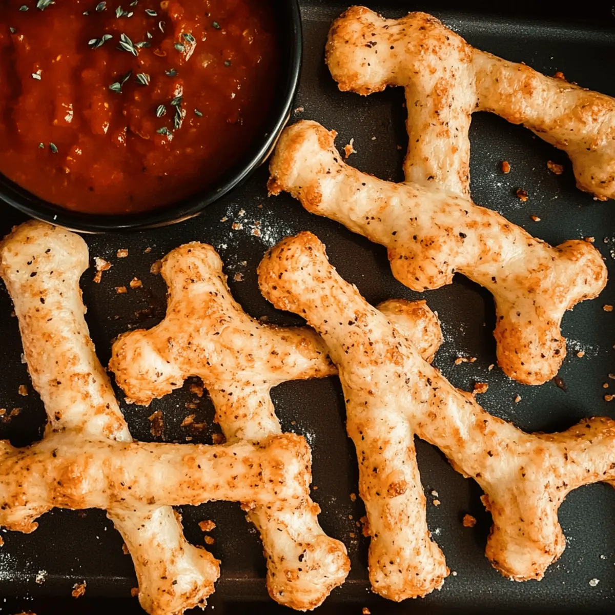 Jump to Recipe Print RecipeAs the autumn chill settles in and the leaves turn shades of orange, my thoughts drift to the thrilling spirit of Halloween. There’s something undeniably delightful about serving up spooky snacks, and these Spine-Chilling Cheesy Halloween Breadstick Bones make it a breeze! With just 32 minutes from kitchen to table, these fun treats are not only a quick prep solution for busy schedules but also an instant hit at any Halloween gathering. The crispy, cheesy exterior paired with a side of marinara “blood” creates a playful experience that kids and adults alike will adore. Are you ready to conjure up some Halloween fun in your kitchen? Let’s dive into this deliciously eerie recipe! Why Are These Halloween Breadsticks So Fun? Spooktacular presentation: These breadstick bones are guaranteed to wow your guests with their eerie shape and playful look, adding a festive flair to your Halloween celebrations. Quick and easy: In just 32 minutes, you’ll have a delicious snack ready for hungry trick-or-treaters or a haunted gathering. Kid-friendly appeal: With gooey cheese and a fun dipping sauce, these treats are sure to please even the pickiest eaters. Perfect for creativity: Get the little ones involved in shaping their own “bones” or experimenting with different cheeses for unique flavors! Deliciously versatile: Want to spice things up? Try adding garlic powder or using different cheese options for a twist—imagine them paired with Cheesy Garlic Breadsticks for an extra cheesy feast! Cheesy Halloween Breadstick Bones Ingredients Get ready to whip up some spooky delights with these festive breadstick bones! For the Dough All-purpose flour – Dust lightly for easy rolling and to keep the dough from sticking. Pizza dough (1 pound) – The base of our bones; you can grab store-bought for ease or make your own for extra flavor. For the Topping Unsalted butter (2 tablespoons, melted) – Adds richness and helps achieve that irresistible golden crust; can swap for olive oil if desired. Grated Parmesan cheese (½ cup) – Provides a sharp, delicious flavor; freshly grated for the best melt and taste. Shredded mozzarella cheese (1 cup) – Gives you that gooey, cheesy texture that everyone loves; feel free to use part-skim for a lighter version. For Dipping Marinara sauce – The perfect “blood” for your spooky breadsticks; homemade adds a personal touch, but store-bought is a real time-saver! These Cheesy Halloween Breadstick Bones will not only enchant your guests but also fill their bellies with deliciousness! Step‑by‑Step Instructions for Cheesy Halloween Breadstick Bones Step 1: Preheat the Oven Begin by preheating your oven to 375°F (190°C). While the oven heats, prepare two baking sheets by lining them with parchment paper to ensure easy cleanup and prevent sticking. This initial step is crucial as it prepares your cooking environment for the delightful Cheesy Halloween Breadstick Bones you’re about to create. Step 2: Shape the Dough Next, take your pizza dough and divide it into 10 equal portions. Roll each portion into 8-inch ropes, ensuring they are slightly thicker at the ends to resemble bone shapes. This step gives the Cheesy Halloween Breadstick Bones their fun appearance, making them perfect for your spooky gathering. Step 3: Snip the Ends Using kitchen scissors, carefully snip two cuts at each end of the dough ropes. These cuts will mimic the bone ends and enhance the visual appeal of your breadsticks. Aim for a clean cut to maintain the structure and shape, which adds to the Halloween charm of your Cheesy Halloween Breadstick Bones. Step 4: Brush and Bake With the shaped dough ready, brush each breadstick bone with the melted butter, allowing it to coat them evenly. Sprinkle a generous amount of grated Parmesan cheese on top before placing them in the oven. Bake the breadsticks for 15 minutes, or until they turn a lovely golden-brown color, signaling they are ready for the next step. Step 5: Add Mozzarella Topping Once the breadsticks are baked, take them out of the oven and generously top each one with shredded mozzarella cheese. Return the baking sheets to the oven and bake for an additional 5-7 minutes. Keep an eye on them until the cheese is bubbling and beautifully melted, creating that gooey texture everyone loves in Cheesy Halloween Breadstick Bones. Step 6: Serve Warm After the final bake, remove the deliciously eerie Cheesy Halloween Breadstick Bones from the oven and let them cool slightly. Serve warm alongside a bowl of marinara sauce for dipping, which adds a perfect splash of color and flavor. Enjoy these festive treats as a delightful snack at your Halloween festivities! Make Ahead Options These Spine-Chilling Cheesy Halloween Breadstick Bones are ideal for meal prep, making your Halloween festivities a breeze! You can shape the dough and store the unbaked bones in an airtight container in the refrigerator for up to 24 hours. When you’re ready to serve, simply brush them with melted butter, sprinkle with Parmesan, and bake according to the original instructions. To maintain their quality, ensure they’re well-wrapped to prevent drying out. If you prefer to make them even earlier, you can bake the breadsticks completely and refrigerate for up to 3 days. Just reheat in the oven until they’re warm and the cheese is gooey again! This way, you’ll enjoy deliciously spooky snacks with minimal effort. Storage Tips for Cheesy Halloween Breadstick Bones Room Temperature: Keep leftover breadstick bones at room temperature for up to 2 days. Store them in a breathable container to maintain crispness, but avoid airtight options to prevent softness. Fridge: For longer freshness, store in the refrigerator in an airtight container for up to 3 days. Reheat in the oven to restore crispiness before serving. Freezer: Freeze baked cheese breadsticks in a single layer on a baking sheet, then transfer to an airtight container. They can be 