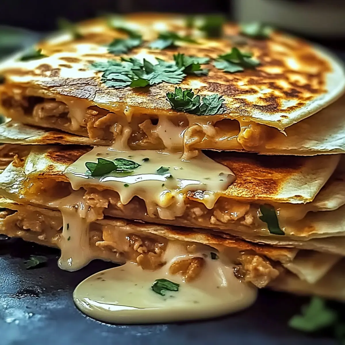 Jump to Recipe Print RecipeAs the sun sets and the kitchen fills with the warm aroma of sizzling goodness, I find myself excitedly gathering the ingredients for Cheesy Hot Honey Chicken Quesadillas. This dish is a delightful fusion of sweet honey and zesty jalapeño cream, and it comes together in just 30 minutes! Perfect for bringing friends together or cozying up at home after a long day, these quesadillas are not only quick and easy but also fully customizable to your taste. Whether you prefer succulent chicken, savory steak, or a hearty vegetarian twist, this recipe offers endless variations to keep your taste buds dancing. Are you ready to add a little excitement to your dinner routine? What makes these quesadillas special? Incredible Quick Prep: With just 30 minutes from start to finish, you can whip up these Cheesy Hot Honey Chicken Quesadillas on a busy weeknight. Flavor-Packed: The sweet honey combined with spicy jalapeño cream offers a delightful flavor contrast, making each bite an exciting experience. Customizable Delight: Choose between tender chicken, marinated steak, or hearty vegetarian options to tailor the filling to your preference, just like the diverse flavors in Tandoori Chicken Tikka for those craving a twist! Crowd Favorite: Perfect for dinner parties or family meals, these quesadillas will impress everyone at the table. Crispy Perfection: Expect a golden, crispy outer layer with ooey-gooey cheese inside—a texture combination that is simply irresistible. Meal Prep Friendly: Prepare the filling and jalapeño cream in advance for an effortless assembly when you’re ready to serve. Cheesy Hot Honey Chicken Quesadillas Ingredients For the Chicken Filling • Boneless, Skinless Chicken Breasts – Main protein for the quesadilla; feel free to swap with marinated steak or plant-based options like black beans. • Olive Oil – Perfect for sautéing chicken; you can use vegetable oil in a pinch. • Smoked Paprika – Adds a rich, smoky flavor; regular paprika works well if you don’t have smoked. • Garlic Powder – Enhances the overall flavor; use fresh minced garlic for a more robust taste. • Onion Powder – Balances the sweetness; consider using fresh diced onions for added texture. • Salt & Pepper – Essential for seasoning; adjust according to your taste preferences. • Honey – Provides a sweet glaze to the chicken; maple syrup is a tasty alternative. • Hot Sauce – Adds heat; adjust to your desired spice level. For the Jalapeño Cream Sauce • Sour Cream – Creates a creamy consistency; Greek yogurt is a good substitute for a lighter option. • Fresh Jalapeños – Delivers spice; deseed them for less heat if preferred. • Lime Juice – Brightens the sauce flavor; lemon juice can also work in a pinch. For Assembly • Large Flour Tortillas – The base for your cheesy delights; swap for corn tortillas for a gluten-free version. • Shredded Cheddar & Monterey Jack Cheese – Ensures melty goodness; feel free to mix in your favorite cheese varieties. • Butter – Helps achieve a crispy exterior; non-stick spray can work as an alternative. • Fresh Cilantro – An optional garnish that adds color and freshness to the dish. Step‑by‑Step Instructions for Cheesy Hot Honey Chicken Quesadillas Step 1: Cook Chicken Heat a tablespoon of olive oil in a large skillet over medium-high heat. Add the boneless, skinless chicken breasts, seasoned with smoked paprika, garlic powder, onion powder, salt, and pepper. Sauté the chicken for about 10 minutes, flipping occasionally until golden brown and cooked through (165°F). Remove the chicken from the pan and let it rest for a few minutes. Step 2: Prepare Hot Honey Mixture In a small bowl, whisk together honey and your favorite hot sauce to create a sweet and spicy glaze. Once the chicken has rested, chop it into bite-sized pieces and return it to the skillet. Drizzle the hot honey mixture over the cooked chicken, tossing to ensure that every piece is coated in this flavorful sauce. Step 3: Make Jalapeño Cream Sauce In a separate bowl, combine sour cream, diced fresh jalapeños, lime juice, garlic powder, and a pinch of salt. Stir until well mixed, then cover and chill in the refrigerator while you prepare the quesadillas. This creamy jalapeño sauce will add a zesty kick to each bite of your Cheesy Hot Honey Chicken Quesadillas. Step 4: Assemble Quesadillas On a large flour tortilla, sprinkle a layer of shredded cheddar and Monterey Jack cheese. Next, evenly distribute the hot honey chicken pieces over the cheese, then add another layer of cheese on top. Fold the tortilla in half to create a half-moon shape, ensuring the filling is sealed inside for a melty, gooey experience. Step 5: Grill Quesadillas Return the skillet to the heat and add a pat of butter. Once melted, place the quesadilla in the skillet and cook for 2-3 minutes until the bottom is golden brown and crispy. Carefully flip the quesadilla and grill the other side for another 2-3 minutes, or until the cheese is fully melted and the tortilla is nicely browned. Step 6: Serve Remove the quesadilla from the skillet and let it cool for a moment before slicing it into wedges. Serve warm with a generous dollop of the chilled jalapeño cream sauce on the side and garnish with fresh cilantro for an extra burst of color and flavor. Dive into your delicious Cheesy Hot Honey Chicken Quesadillas and enjoy! Cheesy Hot Honey Chicken Quesadilla Variations Feel free to get creative and make these quesadillas your own with delightful twists! Steak Swap: Replace chicken with marinated steak for a heartier and bolder flavor that adds depth. Vegetarian Delight: Use black beans or grilled vegetables as a filling instead of meat for a nutritious, plant-based option. Dairy-Free Option: Swap traditional cheese for a dairy-free alternative like nutritional yeast to keep it creamy while being kind to your tummy. Add Crunch: Incorporate fresh bell peppers or sweet