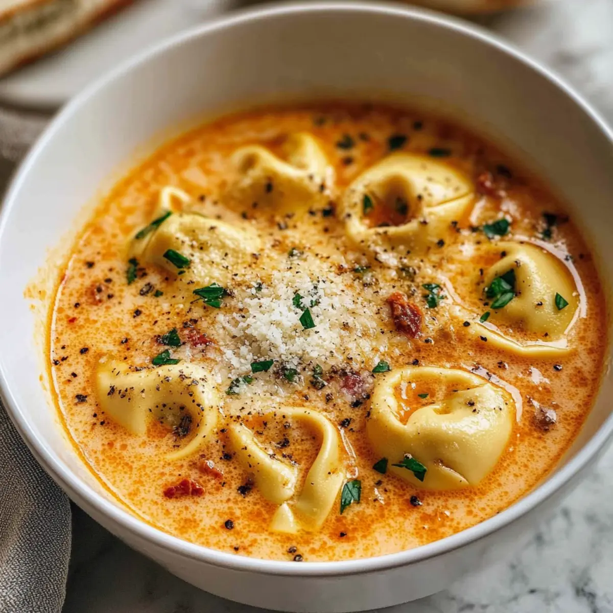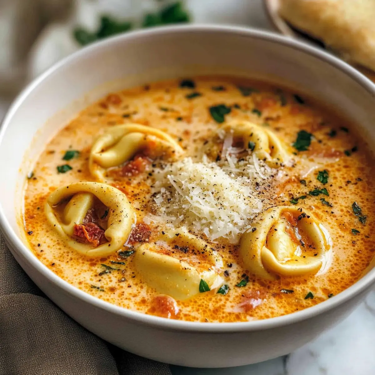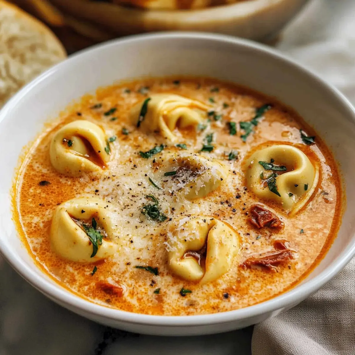 Jump to Recipe Print RecipeAs the evening chill starts to creep in, there’s nothing quite like a steaming bowl of delicious, homemade soup to warm the soul. Enter my Cheesy Tomato Tortellini Soup, the ultimate comfort food that brings family and friends together in a heartbeat. This quick meal combines tender cheese-filled tortellini in a rich tomato broth, making it both satisfying and simple enough for any busy weeknight dinner. With minimal prep time and plenty of opportunities for customization, it’s a dish that pleases even the pickiest eaters. Plus, you can easily make it vegetarian-friendly by swapping in vegetable broth! Intrigued to discover how to whip up this creamy delight? Let’s dive into the recipe! Why is this soup so comforting? Comforting, this Cheesy Tomato Tortellini Soup is like a warm hug in a bowl, perfect for chilly nights. Quick to prepare, you can have this delightful dish ready in under 30 minutes, making it a lifesaver for busy evenings. Versatile options allow you to swap in fresh tortellini or add your favorite veggies, ensuring there’s always something new to try. Crowd-pleasing flavor combines cheesy goodness with a vibrant tomato base, satisfying even the pickiest eaters. For a complete meal, why not serve it with some Cheesy Garlic Breadsticks or a side of Caesar Salad? You’ll find everyone coming back for seconds! Cheesy Tomato Tortellini Soup Ingredients • Gather all these delicious elements for your comfort dish! For the Soup Base Frozen Cheese Tortellini – The star ingredient; use fresh tortellini for a delightful twist! Tomato Soup – Base flavor and texture; canned varieties make for a speedy option. Chicken Broth – Adds hearty depth; swap for vegetable broth for a vegetarian version. Milk – Gives creaminess; skim milk works well, but whole milk enhances richness. Half and Half – Elevates the creamy texture; heavy cream can be substituted if needed. For the Flavor Boosters Chopped Sun-Dried Tomatoes – Infuses bold flavor; remember to rehydrate in warm broth if dried. Onion Powder – Savory depth enhancer; fresh onions can add a fresh burst of flavor. Garlic Powder – Brings essential aroma; fresh garlic is a great substitute, just adjust the amount. Dried Basil – Adds herbal notes; fresh basil can be used for a brighter flavor. Salt – Essential for seasoning; taste and adjust based on the broth’s saltiness. For the Creamy Finish Shredded Parmesan Cheese – Provides a rich finish; save some for garnishing when serving! Step‑by‑Step Instructions for Cheesy Tomato Tortellini Soup Step 1: Cook the Tortellini Bring a large pot of salted water to a rolling boil over high heat. Carefully add the frozen cheese tortellini and cook according to package instructions, usually about 3-5 minutes until they float and become tender. Once cooked, drain the tortellini in a colander and set aside, allowing any excess water to escape. Step 2: Prepare the Soup Base In a large stock pot over medium heat, combine the canned tomato soup, chicken broth, milk, and half and half. Stir well to mix and allow the mixture to heat gently until it becomes hot but not boiling, approximately 5 minutes. The creamy blend should come together smoothly, creating a vibrant base for the Cheesy Tomato Tortellini Soup. Step 3: Add Flavor Boosters Once the soup base is heated through, stir in the chopped sun-dried tomatoes, onion powder, garlic powder, dried basil, and a pinch of salt. Continue to cook for an additional 2-3 minutes to allow the flavors to meld together beautifully. You’ll notice the enticing aroma of herbs and tomato starting to fill your kitchen. Step 4: Combine with Tortellini Reduce the heat to low and gently add the drained tortellini to the soup, stirring softly to combine. Let the mixture simmer for about 3 more minutes, allowing the tortellini to soak up the delicious flavors while ensuring they’re warmed through. The soup should appear thick and creamy, inviting you to dig in. Step 5: Finish with Cheese Stir in the shredded Parmesan cheese gradually, mixing until it melts into the soup, adding a rich creaminess to the dish. Heat the soup for another minute on low heat without boiling, ensuring everything is heated through. The melted cheese should create a delectable texture that binds the ingredients together perfectly. Step 6: Serve the Soup Ladle the hot Cheesy Tomato Tortellini Soup into bowls, making sure to capture plenty of tortellini with each serving. If desired, sprinkle extra Parmesan on top for an added touch of flavor and creaminess. Serve immediately while hot, perhaps with a side of crusty bread or garlic breadsticks to complete your meal! Cheesy Tomato Tortellini Soup Variations Feel free to make this Cheesy Tomato Tortellini Soup your own with these delightful twists! Fresh Tortellini: Swap frozen tortellini for fresh ones, adjusting cooking time for a tender bite. Vegetable Boost: Incorporate chopped spinach or kale for an extra layer of flavor and nutrition. These leafy greens add a vibrant color and a slight earthiness that pairs beautifully with the creamy soup. Different Cheese: Try using a mix of cheeses like mozzarella or asiago to elevate the cheesy experience. The varied flavors will create a unique depth that your family will adore. Meat-Filled Tortellini: Opt for meat-filled tortellini such as sausage or chicken for a heartier meal. This swap will not only ramp up the protein but also make the dish even more filling. Spice It Up: Add a pinch of red pepper flakes or diced jalapeños for a touch of heat. The warmth from the spice offers a delightful contrast to the creamy base. Herb Variations: Fresh thyme or oregano can be substituted for dried basil to give the soup an aromatic flavor profile. These herbs infuse a fresh and zesty experience that will invigorate your senses. Creamy Extras: Consider adding a swirl of cream cheese or ricotta for an ultra-creamy texture. This addition can truly elevate th