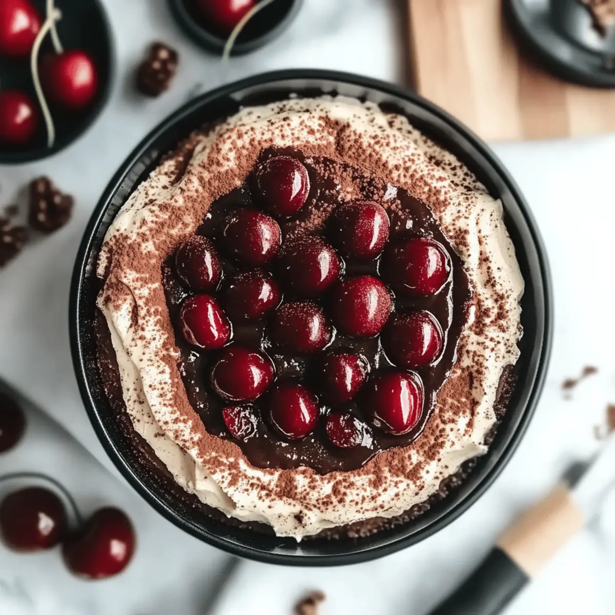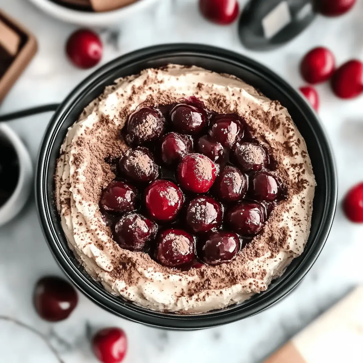 Jump to Recipe Print RecipeAs the sun sets, casting a golden hue across the kitchen, I find myself craving something sweet yet sophisticated. Enter the Cherry Amaretto Tiramisu—a delightful twist on the traditional Italian classic that I can’t resist. This easy dessert not only showcases luscious layers of creamy mascarpone but also dances with the fruity freshness of cherries and the distinct warmth of amaretto liqueur. The perks? It’s a showstopper for gatherings and an indulgent escape during cozy nights at home. With every bite, you’ll experience a rich, velvety texture that feels both luxurious and inviting. Ready to elevate your dessert game and impress your loved ones? Let’s dive into this enchanting recipe! Why is Cherry Amaretto Tiramisu irresistible? Decadent Layers: Each spoonful reveals rich mascarpone, fresh cherries, and a delightful hint of amaretto, making it a true showstopper. Simple Preparation: With just a few easy steps, you can create a stunning dessert that looks gourmet without the fuss. Versatile Options: Prefer a non-alcoholic treat? Swap amaretto for almond extract, and enjoy the same luscious layers. Crowd Pleaser: Perfect for gatherings, this dessert impresses with its vibrant flavors and beautiful presentation. Make-Ahead Friendly: Preparing in advance lets the flavors meld beautifully, enhancing your experience when serving, especially with a cup of bold coffee. Ready to dive deeper? Check out our guide on serving suggestions to elevate your experience! Cherry Amaretto Tiramisu Ingredients • Create your dreamy dessert with this curated list! For the Mascarpone Mixture Mascarpone Cheese – Provides a rich, creamy base; substitute with cream cheese blended with heavy cream for a tangier flavor. Heavy Cream – Adds lightness and volume, creating a fluffy texture. Amaretto Liqueur – Introduces nutty and sweet flavors; can be replaced with almond extract mixed with water for a non-alcoholic version. Cherry Juice – Contributes tartness and sweetness; fresh or bottled works well. For the Cherries Fresh Cherries – Offers a burst of juicy sweetness; frozen cherries can be used, just thaw and drain to avoid excess moisture. Cherry Preserves – Enhances cherry flavor and provides a luscious texture. For Sweetening & Flavor Granulated Sugar – Sweetens the mascarpone mixture. Vanilla Extract – Adds warmth and depth of flavor. For Assembly Ladyfingers – Acts as the base that soaks up the delicious flavors; use store-bought or homemade. Cocoa Powder – Dusts the top for a classic tiramisu feel. Dark Chocolate – Shaved or grated, adds a rich accent and visual appeal. With these ingredients, you’re just a whisk away from creating a show-stopping Cherry Amaretto Tiramisu that everyone will love! Step‑by‑Step Instructions for Cherry Amaretto Tiramisu Step 1: Whisk the Mascarpone Mixture In a large mixing bowl, combine mascarpone cheese and heavy cream. Use a hand mixer to whip the mixture at medium speed for 2-3 minutes, until it becomes light and fluffy, resembling soft peaks. This creamy base is essential for your Cherry Amaretto Tiramisu, so ensure it’s well combined for a smooth texture. Step 2: Add Flavor Enhancements Next, gently mix in the amaretto liqueur, cherry juice, and vanilla extract into your fluffy mascarpone mixture. Beat on low speed for 1-2 minutes, ensuring everything incorporates evenly and the mixture becomes silky smooth. This step is crucial for infusing that delightful flavor into your Cherry Amaretto Tiramisu, contributing to its luxurious taste. Step 3: Sweeten the Mixture In another bowl, combine granulated sugar and cherry preserves, stirring them until evenly blended. Gradually add this sweet combination into the mascarpone mixture, mixing for another minute. This will enhance the cherry flavor while maintaining the creamy texture needed for your indulgent Cherry Amaretto Tiramisu. Step 4: Fold in Fresh Cherries Carefully fold in the chopped fresh cherries into the mascarpone mixture using a spatula. Gently combine until you see the vibrant red bits evenly distributed throughout. This step adds a burst of juicy sweetness to your Cherry Amaretto Tiramisu, making every bite a delightful experience. Step 5: Prepare the Dipping Mixture In a shallow dish, combine equal parts of amaretto and cherry juice. This mixture will be used to quickly dip the ladyfingers, creating flavor-packed layers in your dessert. Make sure the mixture is well combined, allowing the ladyfingers to soak up just enough flavor without becoming soggy. Step 6: Dip the Ladyfingers Quickly dip each ladyfinger into the amaretto and cherry juice mixture, ensuring they are coated but not soaked. You want them soft but still structured. Arrange the dipped ladyfingers in a single layer at the bottom of a 9×13 inch baking dish, forming the base of your Cherry Amaretto Tiramisu. Step 7: Add the First Layer of Mascarpone Spread half of the mascarpone mixture evenly over the layer of dipped ladyfingers. Use a spatula to create a smooth and even surface, ensuring each bite will be rich with creamy goodness. This first layer sets the stage for the luxurious Cherry Amaretto Tiramisu you’re crafting. Step 8: Repeat the Layers Following the first layer, repeat the process: create a second layer of dipped ladyfingers on top of the mascarpone layer. Once again, spread the remaining mascarpone mixture evenly over the ladyfingers. This double layer enhances the dessert’s indulgence, ensuring each slice showcases the delightful harmony of flavors. Step 9: Chill the Tiramisu Cover the baking dish tightly with plastic wrap and refrigerate for at least 4 hours, but overnight is ideal for developing the flavors further. As it chills, the layers meld together beautifully, creating a luxurious texture vital for your Cherry Amaretto Tiramisu’s success. Step 10: Dust and Serve Before serving, remove the tiramisu from the refrigerator and dust the top generously wi