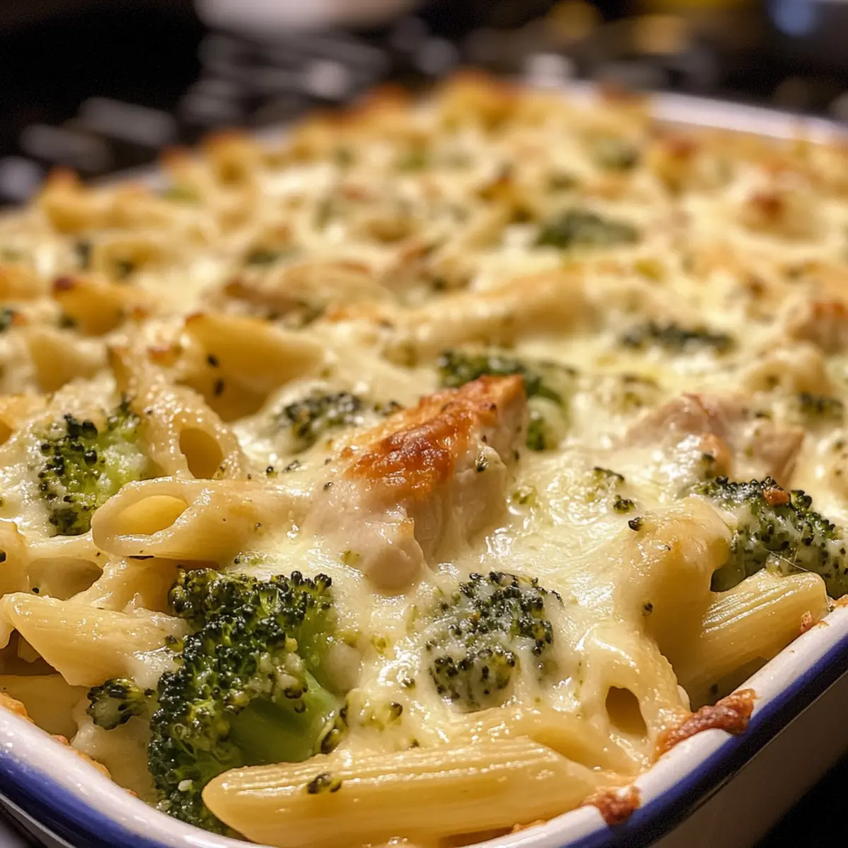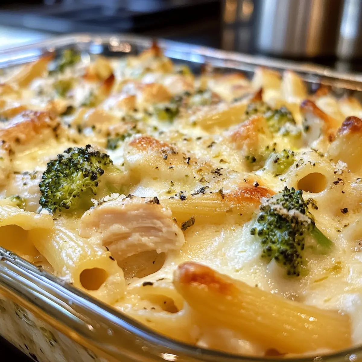 Jump to Recipe Print RecipeAs I rummage through my pantry, I stumble upon a box of penne pasta that sparks a delicious idea: Chicken-Alfredo Baked Penne! This creamy casserole has become a steadfast family favorite, effortlessly combining tender chicken, vibrant broccoli, and rich Alfredo sauce, all blanketed under a dreamy layer of bubbling mozzarella. What I love about this quick and easy dish is that it’s not only a crowd-pleaser, but it also caters to busy weeknights with minimal ingredients and prep time—ready in under an hour! Each bite promises comfort, and even my pickiest eaters keep coming back for seconds. Are you curious to whip up this delightful meal that’s bound to become a staple in your kitchen? Let’s dive into the recipe together! Why is Chicken-Alfredo Baked Penne a Must-Have? Family-Friendly: This dish is perfect for everyone, from kids to adults, ensuring a satisfying dinner that everyone will love. Quick Prep: With just 10 minutes of prep time, you can have dinner in the oven before you know it! Comforting Flavors: The creamy Alfredo sauce paired with tender chicken and cheese creates a symphony of deliciousness that warms the soul. Versatile: Customize it by swapping out veggies or protein—try making it with spinach or even shrimp for a new twist! If you’re looking for more veggie options, check out these amazing Baked Asparagus Fries to complement your meal. One-Dish Wonder: Easy clean-up means more time to enjoy each other’s company around the dinner table. This recipe truly is a go-to for busy weeknights! Chicken-Alfredo Baked Penne Ingredients Ready to create a comforting Chicken-Alfredo Baked Penne that your family will adore? Here’s what you’ll need: For the Casserole Chicken – Use rotisserie or cooked chicken for a quick, convenient option that adds heartiness to your dish. Penne Pasta – This classic shape holds up beautifully when baked; feel free to swap for whole grain or gluten-free pasta as needed. Broccoli – Fresh or frozen works well, adding vibrant color and nutrition to your casserole. Alfredo Sauce – Store-bought offers ease, but homemade can really elevate the flavors in your Chicken-Alfredo Baked Penne. Mozzarella Cheese – Shredded is best for an even melt that blankets your casserole in cheesy goodness. Olive Oil – Perfect for sautéing your chicken and broccoli, providing a healthy fat source. Salt and Pepper – Essential seasonings that enhance every delicious bite of this comforting dish. Feel empowered to craft your own flavorful masterpiece with these simple ingredients! Step‑by‑Step Instructions for Chicken-Alfredo Baked Penne Step 1: Preheat the Oven Begin by preheating your oven to 350°F (175°C). This ensures a perfect baking environment for your Chicken-Alfredo Baked Penne, allowing the cheese to melt beautifully and the casserole to heat evenly. While your oven warms up, you can focus on cooking the pasta and preparing the other ingredients. Step 2: Cook the Pasta In a large pot, bring salted water to a boil, then add your penne pasta. Cook it according to the package instructions until al dente, about 8-10 minutes. Once done, drain the pasta and return it to the pot. This step is crucial for achieving the ideal texture, as the penne will continue to cook in the oven. Step 3: Sauté the Chicken and Broccoli Next, heat a tablespoon of olive oil in a large skillet over medium heat. Add your chopped chicken and cook for approximately 5-7 minutes until heated through and lightly browned. Stir in fresh or frozen broccoli, sautéing for an additional 3-4 minutes until the broccoli is bright green and tender. Step 4: Add the Alfredo Sauce Pour the creamy Alfredo sauce into the skillet with the chicken and broccoli mixture. Stir well to ensure that every piece of chicken and broccoli is coated in that luscious sauce for your Chicken-Alfredo Baked Penne. Allow it to simmer for about 2-3 minutes, so the flavors meld together perfectly. Step 5: Combine with Pasta Add the cooked penne pasta into the skillet with the chicken and Alfredo sauce mixture. Gently stir everything together until the pasta is evenly coated and well mixed. This step is essential to ensure that every bite of your Chicken-Alfredo Baked Penne is bursting with flavor. Step 6: Transfer to Baking Dish Grease a baking dish, then carefully transfer the Chicken-Alfredo mixture into it. Spread the pasta evenly in the dish, ensuring that it’s fully packed. This helps the casserole cook uniformly and allows the cheesy topping to melt beautifully over the top. Step 7: Add Mozzarella Topping Generously sprinkle shredded mozzarella cheese over the entire surface of the Chicken-Alfredo Baked Penne. Ensure an even layer for that deliciously gooey, golden finish. The mozzarella will melt and bubble as it bakes, creating a delightful crust that elevates the dish. Step 8: Bake the Casserole Place the baking dish in your preheated oven and bake for 25-30 minutes. Keep an eye on it—the dish is done when the cheese is bubbling and turns a beautiful golden brown. Be patient, as this step is where the magic happens, and your home fills with warm, inviting aromas. Step 9: Cool and Serve Once baked, remove your Chicken-Alfredo Baked Penne from the oven and allow it to cool for about 5 minutes. This cooling time helps the casserole set, making it easier to serve. Afterwards, dish it out and enjoy the comforting flavors that are sure to bring everyone to the table! How to Store and Freeze Chicken-Alfredo Baked Penne Fridge: Store leftovers in an airtight container for up to 3 days. This keeps the Chicken-Alfredo Baked Penne fresh and ready for your next meal. Freezer: For longer storage, freeze the casserole in a well-sealed container or wrap tightly with plastic wrap and aluminum foil for up to 2-3 months. Reheating: To enjoy, thaw overnight in the fridge and reheat in the oven at 350°F (175°C) for about 20–25 minutes, or until heated through. Avoid Overloa