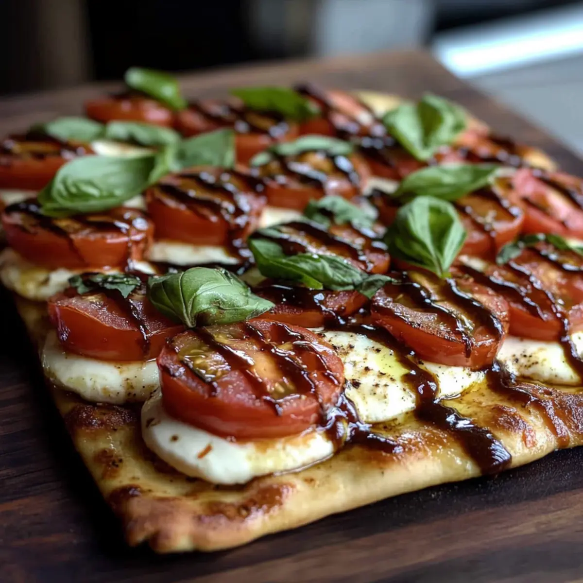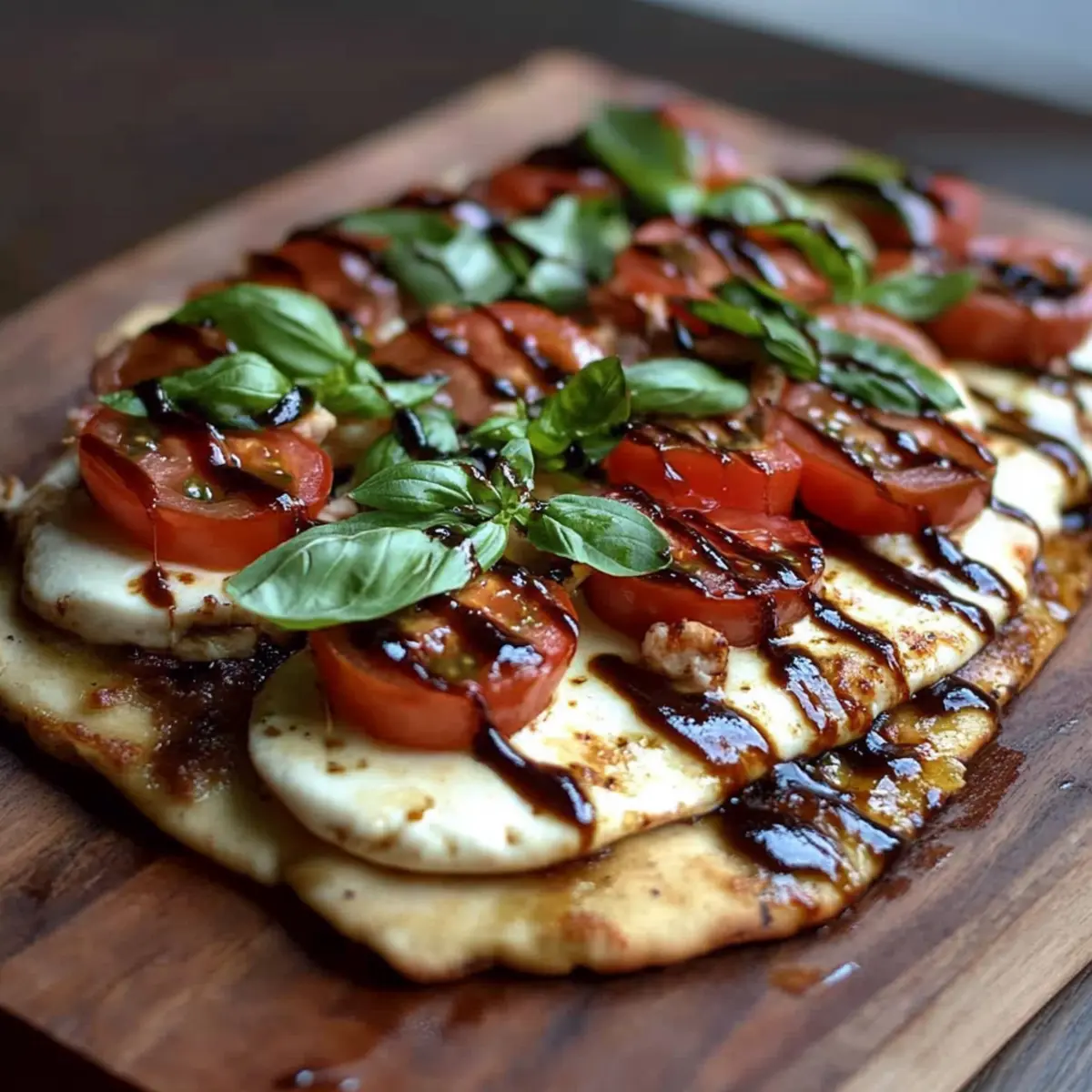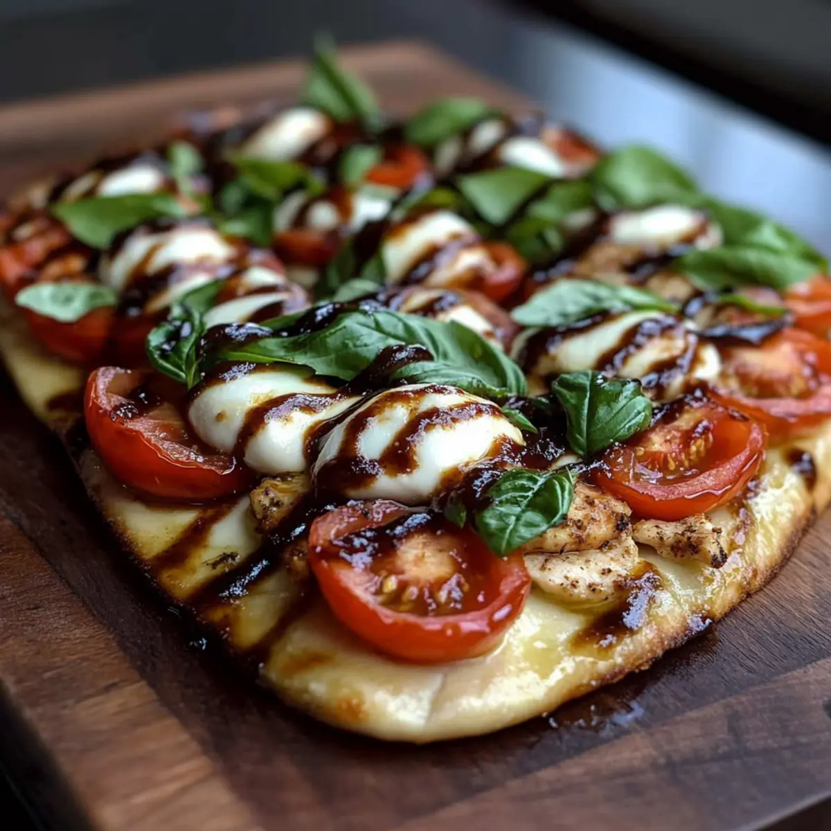 Jump to Recipe Print RecipePicture this: a busy weeknight, the clock ticking, and all you crave is a flavorful meal that won’t keep you in the kitchen for hours. That’s where my Easy Chicken Caprese Flatbread comes in—a delightful combination of juicy chicken, creamy mozzarella, and vibrant tomatoes, all served atop a crispy flatbread base. This dish not only transforms the classic Caprese salad into a satisfying, pizza-like experience but also does it in just 30 minutes! It’s a perfect, family-friendly solution for those evenings when you want something delicious without the fuss. Plus, the customizable nature means you can easily swap in your favorite toppings or even make it vegetarian. Curious how this simple recipe can elevate your dinner routine? Let’s dive in! Why is Chicken Caprese Flatbread a Must-Make? Speedy Preparation: Ready in just 30 minutes, this dish is designed for busy weeknights when you need a flavorful meal fast. Flavor Explosion: Expect a delightful medley of juicy chicken, creamy mozzarella, and fresh basil, creating a dish that’s bursting with classic Italian flavors. Family-Friendly: It’s a dish everyone will adore—perfect for picky eaters since you can customize toppings to suit different tastes. Versatile Options: Going vegetarian? Simply swap out the chicken for grilled veggies or beans—this recipe easily adapts to your dietary needs! Impressive Yet Simple: This Chicken Caprese Flatbread is an impressive dish to serve guests, yet it’s so simple you won’t hesitate to whip it up for a casual dinner. Chicken Caprese Flatbread Ingredients For the Flatbread Base • Flatbread – Use store-bought for ease or homemade for added flavor. • Olive Oil – Brush some on for a golden, crispy crust. For the Chicken Topping • Rotisserie Chicken – Ideal for speedy prep; shred or chop for quick assembly. • Fresh Mozzarella – Offers a luscious texture; use block mozzarella for the best melt. For the Veggie Layering • Ripe Tomatoes – Freshness is key; roasting beforehand enhances their natural sweetness. • Basil Pesto – Adds a depth of flavor; substitute with a sun-dried tomato version for a twist. For Garnishing • Fresh Basil Leaves – A must for that vibrant green touch and aromatic flair. • Balsamic Glaze – Optional but recommended for a sweet, tangy finish that complements the dish beautifully. • Garlic Powder – Sprinkle it on for an extra hint of flavor if desired. Feel free to mix and match ingredients based on what you have—customizing your Chicken Caprese Flatbread is part of the fun! Step‑by‑Step Instructions for Easy Chicken Caprese Flatbread Step 1: Preheat the Oven Begin by preheating your oven to 400°F (200°C). This ensures a perfectly crispy flatbread base. While it heats up, place a baking sheet or pizza stone inside to warm as well, helping to achieve that delightful golden crust when you lay down your flatbread. Step 2: Prepare the Flatbread Base Once the oven is preheated, carefully remove the baking sheet or pizza stone. Lay the flatbread on the hot surface, brushing it generously with high-quality olive oil. For an extra flavor twist, sprinkle a light dusting of garlic powder over the top. This will create a fragrant foundation for your Chicken Caprese Flatbread. Step 3: Add the Pesto Layer Spread a generous amount of basil pesto over the oiled flatbread, ensuring an even coating. This herby base will infuse the dish with delightful flavor. Next, take the shredded rotisserie chicken and evenly distribute it over the pesto, making sure every bite has a tender piece of chicken. Step 4: Layer on the Cheese and Tomatoes Now it’s time to enhance your Chicken Caprese Flatbread with creamy fresh mozzarella. Tear or slice the mozzarella and scatter it generously over the chicken. Follow this by layering ripe tomato slices on top, as they contribute both freshness and juiciness to each bite, making the flatbread even more irresistible. Step 5: Bake to Perfection Carefully slide the flatbread back into the oven and bake for 10–15 minutes. Keep an eye on it; you want the cheese to become bubbly and slightly browned, while the edges of the flatbread crisp up beautifully. The enticing aroma should fill your kitchen, signaling that dinner is almost ready! Step 6: Garnish and Serve Once baked, remove the Chicken Caprese Flatbread from the oven and let it cool for a moment. Garnish with fresh basil leaves for that vibrant green touch, and drizzle a little balsamic glaze over the top for a sweet, tangy finish. Slice into squares and serve warm, enjoying this fresh culinary delight! How to Store and Freeze Chicken Caprese Flatbread Fridge: Store leftover Chicken Caprese Flatbread in an airtight container for up to 3 days. This will help maintain its flavor and texture. Freezer: For longer storage, wrap individual slices in plastic wrap and aluminum foil, then place them in an airtight container. They can be frozen for up to 2 months. Reheating: Reheat the flatbread in the oven at 350°F (175°C) for about 10-15 minutes to restore that crispy crust and melty cheese. Avoid the microwave, as it can make the flatbread soggy. Make-Ahead: Prep individual components like shredded chicken and chopped tomatoes in advance, storing them separately in the fridge. Assemble and bake the Chicken Caprese Flatbread just before serving for the best results. Chicken Caprese Flatbread Variations Feel free to unleash your creativity in the kitchen with these fun twists on the classic Chicken Caprese Flatbread! Vegetarian Delight: Omit chicken and top with grilled veggies like zucchini, bell peppers, and mushrooms for a hearty, meatless version. This not only increases the flavor profile but also gives a vibrant color to your flatbread. Spicy Kick: Add red pepper flakes to the cheese layer or drizzle chili oil on top after baking. This will bring a wonderful heat that complements the creamy mozzarella. Perfect for spice lovers! Cheese