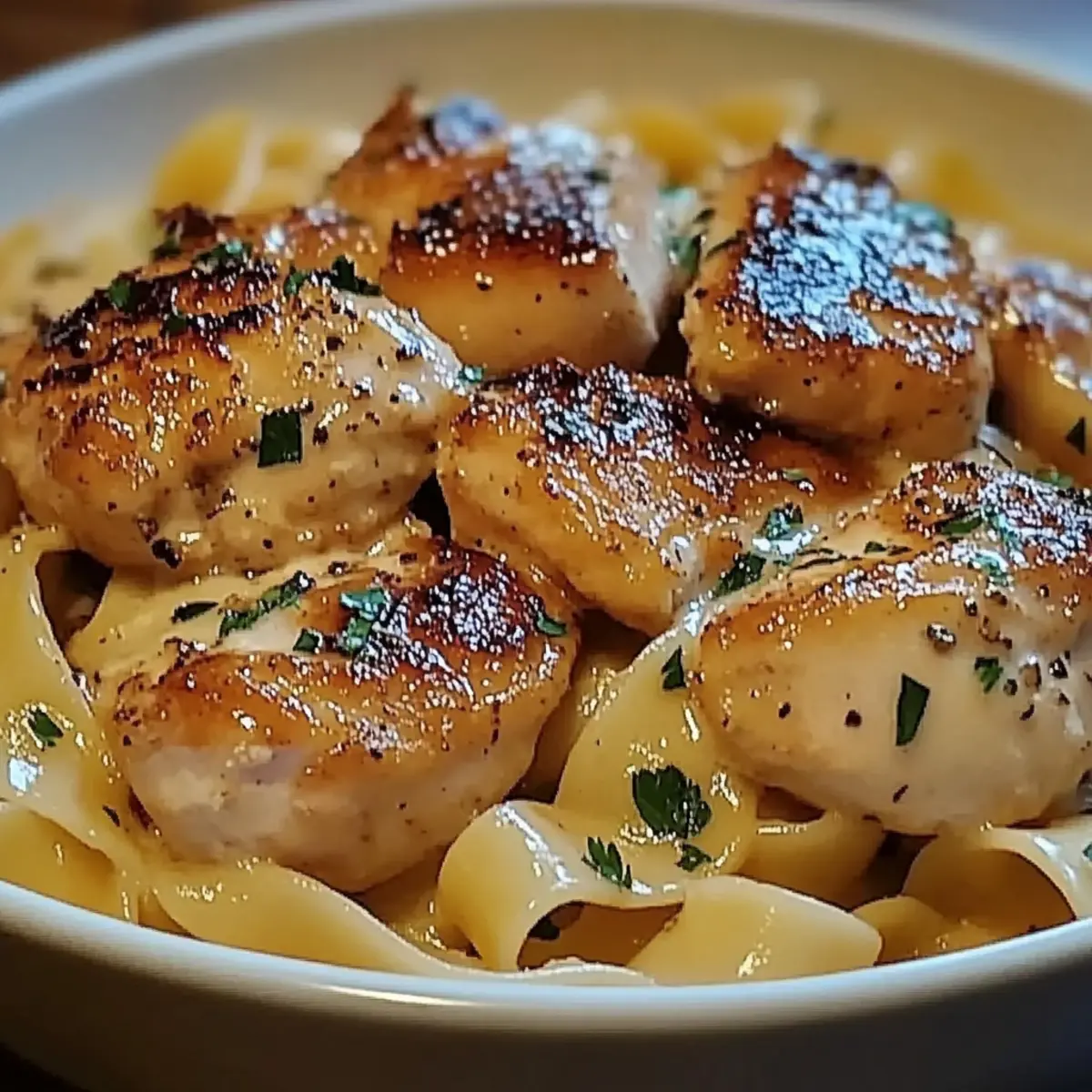 Jump to Recipe Print RecipeSteam wafted through the kitchen, wrapping me in a familiar embrace that instantly evoked memories of family dinners. There’s something undeniably satisfying about whipping up a comforting dish like Chicken with Buttered Noodles; it’s a meal that feels like home, yet allows for just enough creativity to keep things interesting. This quick dinner not only satisfies those cravings for hearty flavors but also invites you to experiment with your favorite seasonings, making it as simple or as elevated as you desire. Whether you’re cooking for a busy weeknight or a cozy family gathering, this recipe is a true crowd-pleaser that promises seconds—and maybe even thirds. Ready to spark some joy in your kitchen with a bowl of silky noodles and juicy chicken? Let’s dive in! Why Is Chicken with Buttered Noodles So Loved? Comforting and hearty, this dish wraps you in warmth, making it perfect for any family gathering or weeknight meal. Customizable with your favorite herbs and spices, it invites creativity, ensuring every bite is tailored to your taste. Quick to prepare, it’s ideal for busy evenings when you crave a home-cooked meal without the fuss. Plus, the rich, buttery flavor elevates everyday ingredients, transforming them into something special. Pair it with a fresh side like a Rainbow Chicken Salad or a scoop of creamy Garlic Parmesan Chicken for a complete, satisfying dinner that will please every palate. Chicken with Buttered Noodles Ingredients • Note: Gather these key components for the ultimate comfort experience! For the Chicken Chicken breasts – juicy and tender, the main protein that provides a heartwarming base for this dish. Salt and pepper – essential seasonings that enhance the natural flavors of the chicken. For the Noodles Long pasta (spaghetti or linguine) – the comforting base of the dish, offering a satisfying texture. Butter – adds that rich, buttery flavor; use unsalted for better seasoning control. For the Seasonings Herbs (like thyme or rosemary) – elevate the dish with aromatic flavors; feel free to mix and match! Optional spice blend – customize with red pepper flakes or garlic powder for a flavorful twist. For Optional Vegetables Peas or broccoli – nutritious additions that provide color and a hint of sweetness to balance the richness of the noodles. Embrace the magic of Chicken with Buttered Noodles and enjoy the heartwarming embrace of home-cooked goodness! Step‑by‑Step Instructions for Chicken with Buttered Noodles Step 1: Cook the Noodles Begin by bringing a large pot of salted water to a boil over high heat. Add your long pasta, such as spaghetti or linguine, and cook according to the package directions until al dente, about 8-10 minutes. Stir occasionally to prevent sticking. Reserve about 1 cup of the pasta water before draining the noodles in a colander. Set the noodles aside while you prepare the chicken. Step 2: Season the Chicken While the noodles are cooking, take your chicken breasts and season them generously with salt and pepper or your favorite spices. Make sure to coat all sides for even flavor. This step is crucial to enhance the taste of your Chicken with Buttered Noodles, ensuring it’s deliciously fragrant and satisfying. Step 3: Cook the Chicken In a large skillet, melt 3 tablespoons of unsalted butter over medium heat until bubbly and slightly browned, about 2 minutes. Carefully add the seasoned chicken breasts to the hot skillet. Cook for approximately 6-7 minutes on each side until the chicken is golden brown and reaches an internal temperature of 165°F, ensuring it’s juicy and flavorful. Step 4: Slice the Chicken Once cooked, remove the chicken from the skillet and place it on a cutting board. Allow it to rest for about 5 minutes to retain its juices. With a sharp knife, slice the chicken into strips or bite-sized pieces, and set it aside. This will enable the flavors to meld beautifully when mixed with your noodles. Step 5: Combine Noodles and Chicken In the same skillet with the remaining butter and delicious chicken drippings, add the drained noodles. Toss the noodles well to coat them in the buttery goodness, adding in a splash of the reserved pasta water if needed to achieve your desired creaminess. Mix until every strand is adequately coated, making your Chicken with Buttered Noodles irresistibly rich. Step 6: Final Mixing and Serving Add the sliced chicken back into the skillet, gently toss everything together to combine the chicken and noodles evenly. Taste and adjust the seasoning to your preference with more salt, pepper, or desired herbs. Serve immediately, perhaps garnished with freshly chopped parsley for a pop of color and flavor. Enjoy your heartwarming Chicken with Buttered Noodles! How to Store and Freeze Chicken with Buttered Noodles Fridge: Store any leftovers in an airtight container for up to 3 days, ensuring they stay fresh and flavorful for easy meals later. Freezer: For longer storage, freeze Chicken with Buttered Noodles in an airtight container for up to 2 months. Flash freeze on a baking sheet first for easier portioning. Reheating: When ready to enjoy, thaw in the refrigerator overnight and reheat gently on the stovetop with a splash of water to revive the buttery sauce. Avoid Soggy Noodles: To prevent the noodles from getting mushy during storage, consider storing the chicken and noodles separately if possible. Chicken with Buttered Noodles Variations Feel free to make this comforting dish uniquely yours by exploring these delightful twists! Protein Switch: Replace chicken with shrimp for a delightful seafood twist or tofu for a vegetarian option that’s just as satisfying. Whole Grain Upgrade: Try whole wheat or gluten-free noodles to cater to different dietary preferences while still enjoying the rich flavors. Herb Medley: Add a mix of fresh herbs like basil or parsley to elevate the dish with a burst of fresh flavor that brightens each bite. Creamy I