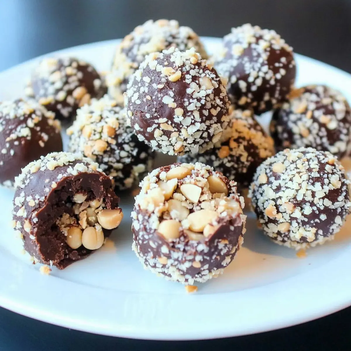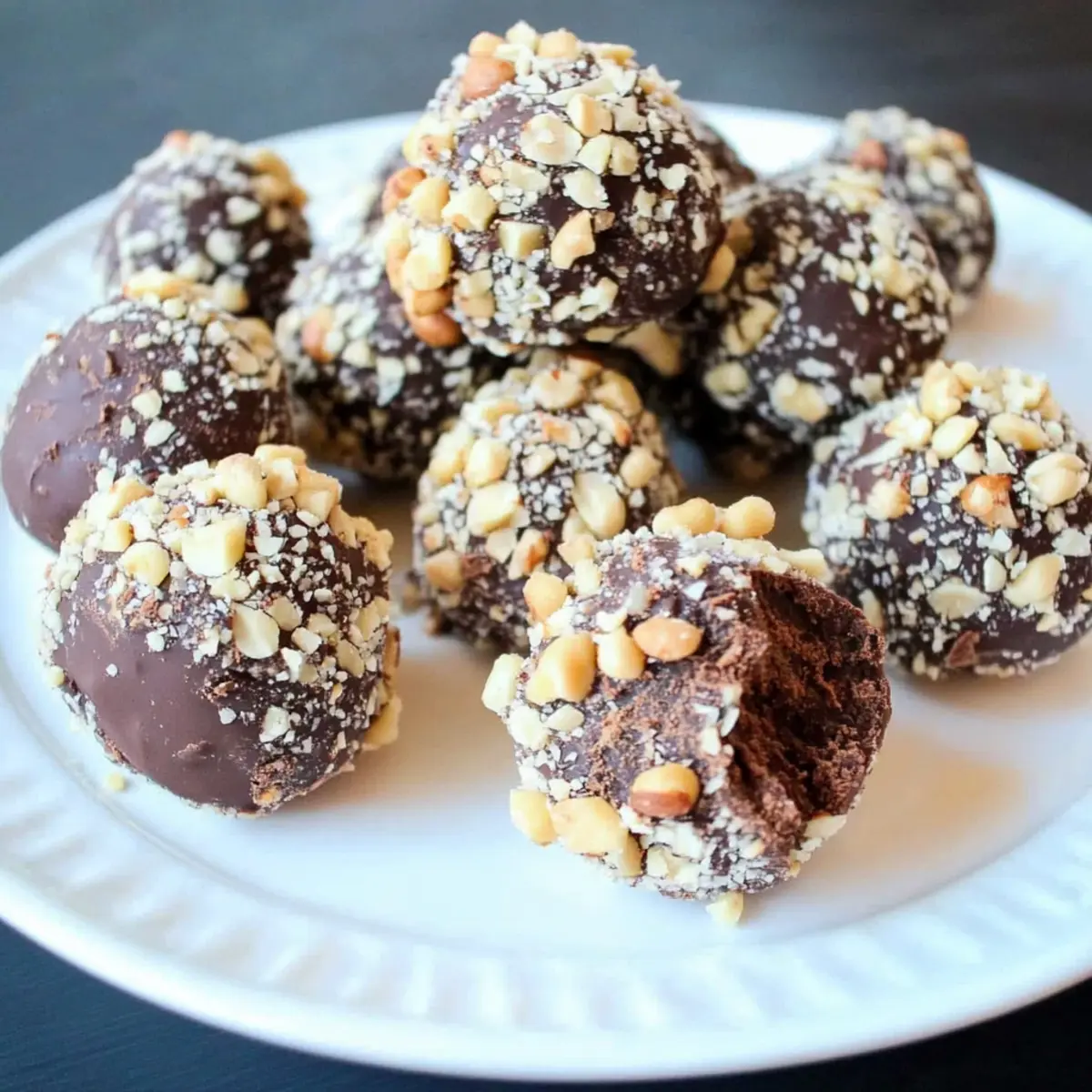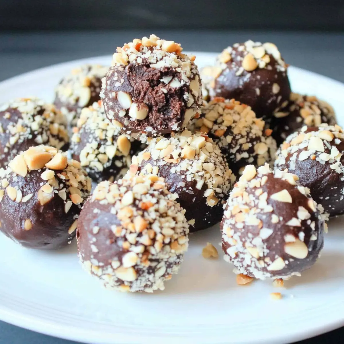 Jump to Recipe Print RecipeAs I sunk my teeth into the first Healthy Chocolate Chickpea Truffle, a wave of pure bliss swept over me—who knew healthy could taste this good? These delightful morsels combine the rich essence of chocolate with the nutritious benefits of chickpeas, creating a mouthwatering guilt-free treat. Not only are they quick to whip up, but they also serve as a fantastic energy boost that satisfies those chocolate cravings without the usual remorse. Whether you’re looking for a snack on the go or a delightful dessert to impress your friends, these Chocolate Chickpea Truffles are bound to become a staple in your kitchen. Intrigued? Let’s dive into the recipe and transform your snacking game! Why You’ll Love Chocolate Chickpea Truffles Deliciously Healthy: Each truffle is a delightful blend of chocolate and chickpeas, making indulgence guilt-free. Nutritious Powerhouse: Packed with protein and fiber, they energize your day while satisfying sweet cravings. Versatile Options: Customize your truffles with varying coatings like crushed coconut or dark chocolate for unique flavors. Quick and Simple: Ready in under an hour, they’re perfect for busy schedules or last-minute gatherings. Crowd-Pleasing Treat: These morsels are sure to impress family and friends, making them a hit at any gathering. Make-Ahead Convenience: Store them in the fridge or freezer, ensuring a healthy snack is always on hand. Try pairing them with a hot cup of coffee for that extra indulgence! Chocolate Chickpea Truffles Ingredients Get ready to create these delightful morsels! For the Truffles Chickpeas – Provides the nutritious base rich in protein and fiber. Dates – Adds natural sweetness; soak in hot water to easily blend into a smooth mixture. Cocoa Powder – Delivers the rich chocolate flavor that makes these truffles irresistible. Peanut Butter – Contributes creaminess and healthy fats; feel free to substitute with sunflower seed butter for nut-free truffles. Salt – Balances the sweetness and enhances the overall flavor profile. Agave Syrup – Offers additional sweetness; can be replaced with maple syrup if desired. For Coating Peanuts – Adds a crunchy texture on the outside; switch to crushed dark chocolate or coconut for a different twist. Step‑by‑Step Instructions for Chocolate Chickpea Truffles Step 1: Soak the Dates Begin by placing the pitted dates in a bowl and pour hot water over them, allowing them to soak for about 5 minutes. This softening process makes them easier to blend in with other ingredients. While the dates are soaking, prepare your food processor—this is the next step in crafting your delightful Chocolate Chickpea Truffles. Step 2: Blend the Ingredients Once the dates are softened, drain the water and add them to the food processor along with the chickpeas, cocoa powder, peanut butter, salt, and agave syrup. Blend these ingredients on high speed until you achieve a smooth and creamy mixture, about 1-2 minutes. The resulting dough should be rich and cohesive—your base for the tasty Chocolate Chickpea Truffles is ready! Step 3: Chill the Mixture Transfer the blended truffle mixture into a bowl, then cover it with plastic wrap or a lid. Place it in the refrigerator for about 20 minutes, allowing it to firm up slightly. This chilling makes rolling the truffles a much easier process, ensuring that they hold their shape beautifully when you start forming them into bites. Step 4: Shape the Truffles After 20 minutes of chilling, remove the mixture from the fridge. Using your hands, scoop out small portions of the chilled mixture and roll them into uniform balls, roughly 1 inch in diameter. You should be able to create about 16–18 truffles, each a satisfying and healthy treat to enjoy later. Step 5: Prepare the Coating While you shape your Chocolate Chickpea Truffles, take this time to prepare your coating. Chop the peanuts into small, crunchy pieces and transfer them to a shallow bowl. This will make it easy to roll each truffle into the peanuts, giving them a delightful texture and added flavor in every bite. Step 6: Coat the Truffles Now it’s time to give your truffles their delicious exterior! Take each rolled Chocolate Chickpea Truffle one by one, and gently roll it in the chopped peanuts until fully coated. This adds a satisfying crunch to each truffle. Continue this process until all truffles are beautifully coated, adding a visually appealing finish to your delicious snacks. Step 7: Store and Serve Once coated, place your Chocolate Chickpea Truffles on a plate or in an airtight container. For optimal freshness, store them in the refrigerator until you’re ready to serve. These delightful morsels can last up to a week in the fridge or can be frozen for up to 3 months. Simply let them sit at room temperature for a few minutes to soften before enjoying. Expert Tips for Chocolate Chickpea Truffles Smooth Texture: Use a food processor for blending; it ensures a creamy consistency that may not be achieved with a blender. Chill Well: Allow the mixture to chill for at least 20 minutes; this step is crucial for easy rolling and prevents stickiness. Uniform Size: Roll the truffles into uniform balls for even coating; consistently sized bites create a better presentation. Experiment with Coatings: Try different toppings like crushed coconut or dark chocolate to add variety to your Chocolate Chickpea Truffles. Storage Tips: Keep them in an airtight container in the fridge for up to a week or freeze for longer enjoyment. Make Ahead Options These Healthy Chocolate Chickpea Truffles are perfect for meal prep enthusiasts looking to save time during busy weeks! You can prepare the truffle mixture up to 24 hours in advance by blending together all ingredients and chilling it in the refrigerator. Once chilled, roll the mixture into balls and coat them in your desired topping up to 3 days before serving. To maintain their deliciousness, store the truffles in an air