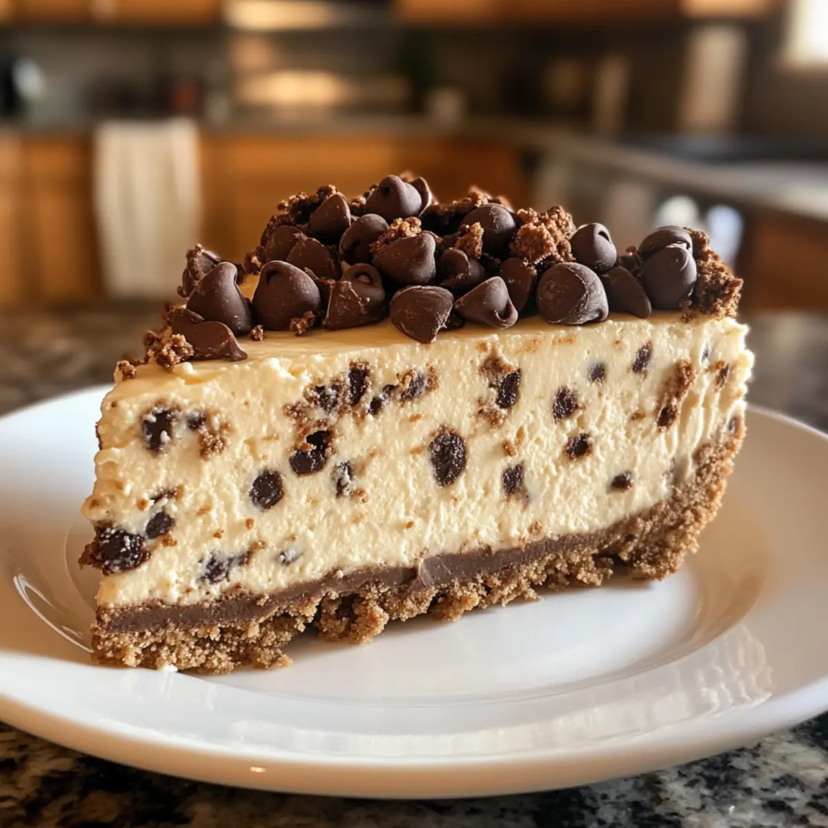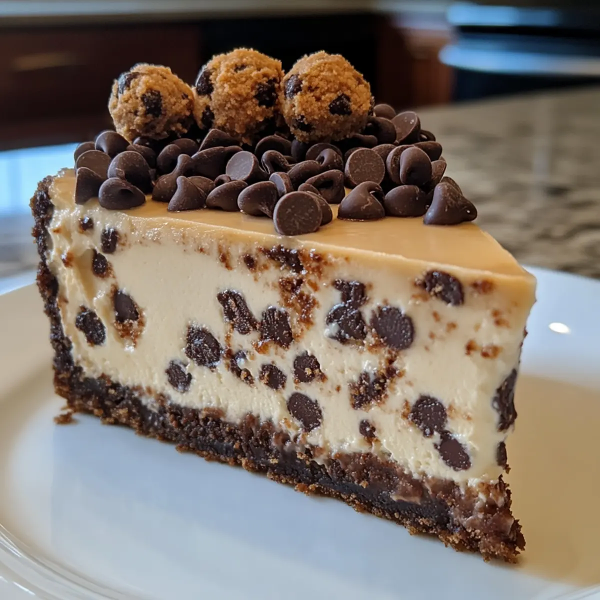 Jump to Recipe Print RecipeAs I stood in my kitchen, the warm smell of baked cookies wafting through the air, a delicious idea struck me: why not combine the creamy indulgence of cheesecake with the playful delight of cookie dough? That’s how my Indulgent Chocolate Chip Cookie Dough Cheesecake was born. This recipe is the perfect sweet treat for anyone looking to impress family and friends, or simply craving a little comfort food. With a buttery cookie crust and pockets of gooey cookie dough nestled in a velvety cheesecake, every slice promises to satisfy your sweet tooth. Plus, it’s easily adaptable for gluten-free diets, making it a crowd-pleaser for all occasions. Are you ready to dive into this dreamy dessert that will have everyone asking for seconds? Why is this cheesecake so irresistible? Indulgence at its peak: This Chocolate Chip Cookie Dough Cheesecake merges two beloved desserts into one delectable treat. Rich layers of creamy cheesecake and buttery cookie crust come together in absolute bliss. Unique textures bring joy to every bite, with gooey pockets of cookie dough adding a fun surprise. Easily customizable, you can switch to gluten-free ingredients without sacrificing flavor. Perfect for gatherings, this crowd-pleaser is bound to impress at your next event, just like my Honey Cheesecake does every time! Chocolate Chip Cookie Dough Cheesecake Ingredients Indulge in every flavor of this delightful cheesecake with these essential components! For the Crust • All-purpose flour – Provides structure for both the crust and cookie dough; substitute with a gluten-free flour blend for a gluten-free option. • Unsalted butter – Ensures a rich and moist texture; bring it to room temperature for easy mixing. • Baking soda – Adds lightness to the cookie crust for that perfect bite. • Salt – Brings out the flavors in the entire dessert. • Brown sugar – Offers moisture and depth of flavor to the crust. • Granulated sugar – Sweetens both the crust and cheesecake filling. • Vanilla extract – Enhances the flavor profile in both layers beautifully. • Egg – Acts as a binding agent for the crust ingredients. For the Cheesecake Filling • Cream cheese – The creamy base of your cheesecake; ensure it’s softened to achieve a smooth mixture. • Sour cream – Adds a hint of tanginess and creaminess to balance the sweetness. • Heavy whipping cream – Infuses richness into both the filling and chocolate ganache. • Semi-sweet chocolate chips – Delivers delightful bursts of chocolate flavor throughout the cheesecake. • Mini chocolate chips – For added texture and chocolatey goodness in the filling. For the Edible Cookie Dough • Heat-treated all-purpose flour – Important for making the edible cookie dough safe to eat raw; crucial for the cookie dough balls. • Unsalted butter (for cookie dough) – Keeps the dough rich and creamy. • Granulated sugar (for cookie dough) – Sweetens the cookie dough. • Brown sugar (for cookie dough) – Adds moisture and depth to the cookie dough. • Milk – Balances the cookie dough texture; can be substituted with a non-dairy milk if needed. • Semi-sweet chocolate chips (for cookie dough) – Enhances the cookie dough flavor. For the Ganache • Heavy cream – Needed to create a silky ganache that drapes beautifully over the cheesecake. • Semi-sweet chocolate chips (for ganache) – The luxury topping that adds decadence and richness to your cheesecake. This Chocolate Chip Cookie Dough Cheesecake is a divine combination of flavors, textures, and indulgence—perfect for satisfying your dessert cravings! Step‑by‑Step Instructions for Chocolate Chip Cookie Dough Cheesecake Step 1: Preheat and Prepare Begin by preheating your oven to 350°F (175°C). While the oven warms up, grease a 9-inch springform pan and line the bottom with parchment paper for easy removal. This will ensure your crust stays intact when you unveil your beautiful Chocolate Chip Cookie Dough Cheesecake later on. Step 2: Make the Crust In a mixing bowl, cream together ½ cup of unsalted butter with ⅓ cup of brown sugar and ⅓ cup of granulated sugar until light and fluffy. Add in a splash of vanilla extract and an egg, mixing thoroughly. Then, combine 1 cup of all-purpose flour, ½ teaspoon of baking soda, and a pinch of salt, folding in ½ cup of semi-sweet chocolate chips. Press this dough into the prepared pan and bake for 18-23 minutes until golden and set. Step 3: Prepare Cookie Dough Balls To create edible cookie dough, heat-treat ½ cup of all-purpose flour by spreading it on a baking sheet and placing it in the oven at 300°F (150°C) for 7-8 minutes. Let it cool slightly, then beat together ¼ cup of unsalted butter, ¼ cup of granulated sugar, and ¼ cup of brown sugar until creamy. Mix in a teaspoon of vanilla extract and 2 tablespoons of milk, followed by the cooled flour, ¼ teaspoon of salt, and ½ cup of semi-sweet chocolate chips. Roll the dough into 1½ teaspoon-sized balls and freeze for 10 minutes. Step 4: Prepare the Cheesecake Filling Lower the oven temperature to 325°F (163°C). In a large mixing bowl, beat 16 ounces of softened cream cheese until smooth and creamy. Gradually add in ¾ cup of sugar and mix until well combined. Incorporate ½ cup of sour cream, ½ cup of heavy whipping cream, and a teaspoon of vanilla extract, blending until smooth. Beat in 3 eggs one at a time, ensuring each is fully incorporated before adding the next. Step 5: Combine Ingredients Gently fold in ½ cup of mini chocolate chips and two-thirds of the frozen cookie dough balls into the cheesecake mixture, ensuring an even distribution of flavors. This will create enticing pockets of cookie dough throughout your rich cheesecake, making each bite a delightful surprise. Step 6: Assemble and Bake Pour the cheesecake batter over the cooled crust in the springform pan. For a water bath, wrap the bottom of the pan in aluminum foil to pr
