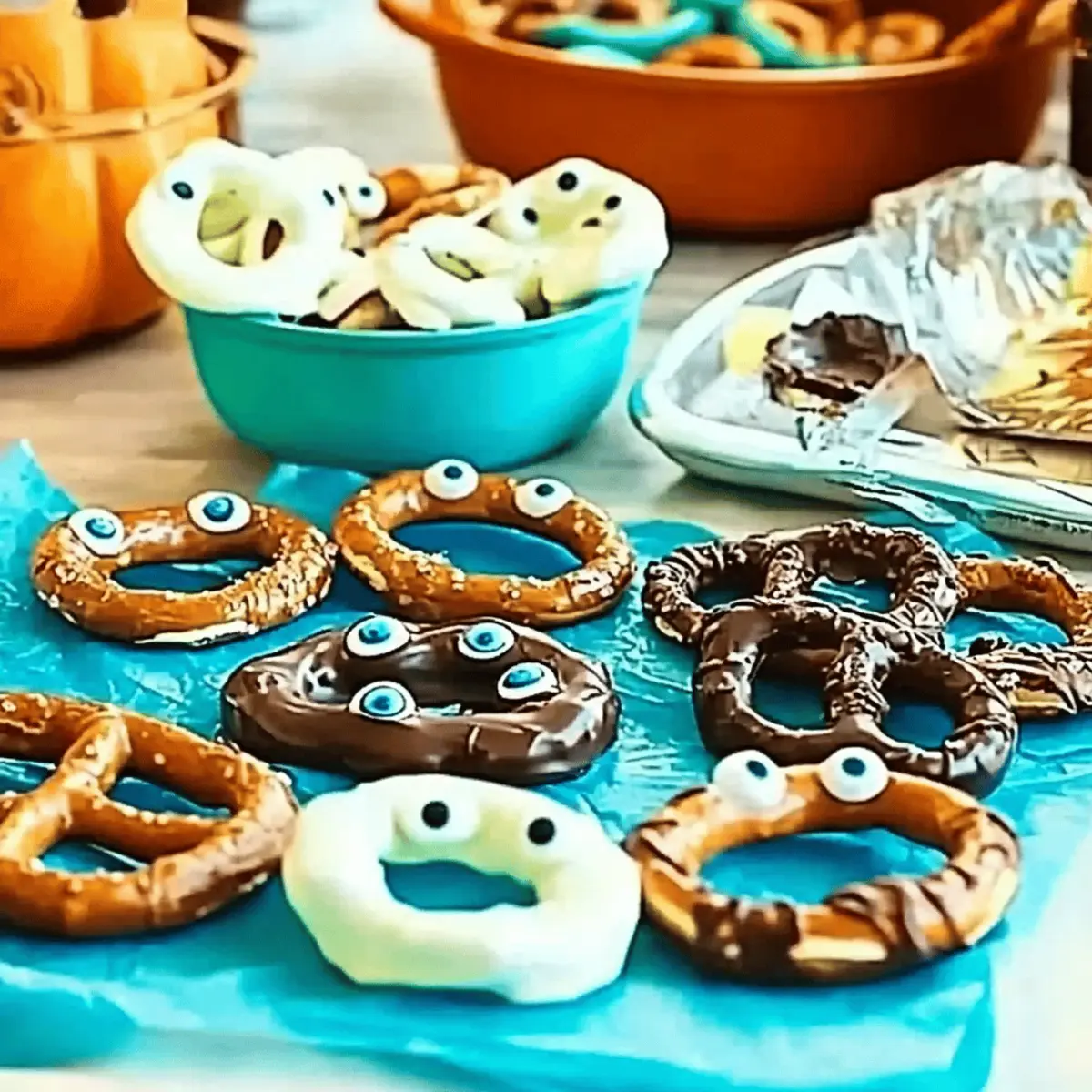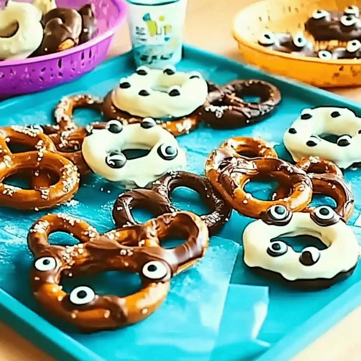 Jump to Recipe Print RecipeAs I stood in my kitchen, the familiar scents of melting chocolate wrapped around me like a warm hug. It’s that magical time of year again—Halloween is just around the corner! What’s a better way to celebrate than with these delightful chocolate-covered Halloween pretzels? They’re the perfect combination of sweet and salty, making them an irresistible snack for both kids and adults. Not only are these treats incredibly easy to whip up, but they also bring a fun and festive vibe to any gathering. Whether you’re throwing a spooky soirée or just want to add some Halloween cheer to your family’s snack routine, these pretzels will surely be a hit. So, are you ready to transform plain pretzels into a candy-coated treat that will make everyone smile? Let’s dive into the delightful world of Halloween snacks! Why are these pretzels a must-try? Sweet and Salty: The perfect blend of crunchy giant pretzels and smooth, creamy chocolate creates an irresistibly delightful bite. Quick and Easy: In just a few steps, you can create a festive treat that will impress both kids and adults alike, making them perfect for any Halloween gathering. Customizable Decor: Let your creativity shine! With options like colored sprinkles or edible eyes, you can easily create spooky variations that are as fun to make as they are to eat. Fun Family Activity: Involving family or friends in the decorating process makes for enjoyable bonding moments, turning these pretzels into a memorable holiday tradition. Visually Striking: The colorful presentation of these chocolate-covered Halloween pretzels ensures they’ll catch everyone’s eye at parties, standing out among other treats. Chocolate-Covered Halloween Pretzels Ingredients For the Chocolate Coating • White Chocolate Chips – Provides sweetness and a creamy texture; you can also use colored white chocolate for an enhanced Halloween appearance. • Dark Chocolate Chips – Adds a rich, slightly bitter flavor that beautifully balances the sweetness. • Milk Chocolate Chips – Contributes a smooth, sweet taste that appeals to most palates. For the Base • Giant Pretzels – The sturdy base of the treat, providing a satisfying crunch; ensure you use large pretzels for optimal coating. For Decoration • Edible Eyes – Perfect for bringing a spooky touch to your treats; these can be found in baking aisles or made at home using chocolate or icing. Transform simple pretzels into delightful chocolate-covered Halloween pretzels that are sure to thrill both kids and adults! Step‑by‑Step Instructions for Chocolate-Covered Halloween Pretzels Step 1: Melt the Chocolates Begin by setting up three separate microwave-safe bowls. Measure out your white, dark, and milk chocolate chips, and place each type in its respective bowl. Microwave each bowl individually for 30 seconds on high, then stir the chocolate. Continue this process in 30-second intervals until the chocolates are completely melted and smooth, which should take about 1 to 2 minutes in total. Let them cool slightly until thickened. Step 2: Dip the Pretzels Take your giant pretzels and dip them into the melted chocolates. Use a fork to fully coat about one-third of each pretzel in white chocolate, then place the dipped pretzels on a parchment-lined baking sheet. Repeat this process for the milk and dark chocolate, ensuring you have a delightful variety of chocolate-covered Halloween pretzels to share. Step 3: Decorate with Edible Eyes While the chocolate coating is still soft, it’s time to get creative! Gently place three edible eyes on each pretzel. Arrange the eyes so they are evenly spaced and playful, giving your pretzels a fun and spooky appearance. This step allows your Halloween treats to come to life and adds that extra festive charm they need. Step 4: Allow to Set Once decorated, it’s essential to let the chocolate-covered Halloween pretzels set properly. Leave them on the parchment paper at room temperature for about 30 to 60 minutes or until the chocolate is fully hardened. This waiting time ensures that each pretzel retains its shape and the chocolate coating has a delightful snap when bitten into. Step 5: Store Properly After your pretzels have set, carefully transfer them to an airtight container for storage. If you’re not serving them immediately, keep the container at room temperature for up to a week, ensuring they stay fresh and ready for all your Halloween festivities. Now you have a fantastic batch of chocolate-covered Halloween pretzels to enjoy or share! Expert Tips for Chocolate-Covered Halloween Pretzels Fresh Chocolate: Use fresh chocolate chips for better melting and a shiny finish that makes your chocolate-covered Halloween pretzels look professionally done. Temperature Matters: Always let pretzels cool to room temperature before dipping; warm pretzels can cause the chocolate to melt unevenly and lose its shine. Sprinkle Variety: Consider mixing colored sprinkles with edible eyes for an even more festive look. Just make sure to add them while the chocolate is still soft! Thick Coats: Don’t rush the dipping process; a thick chocolate coating ensures a satisfying crunch and enhances the overall flavor experience. Chill Out: If in a hurry, place the pretzels in the fridge for a few minutes after decorating to help the chocolate set faster. Just be careful not to keep them too long, or they may lose their crunch! What to Serve with Spooky Chocolate-Covered Halloween Pretzels Imagine a festive gathering filled with laughter, spooky decorations, and tempting treats that tantalize your taste buds and ignite joyful memories. Pumpkin Spice Hot Chocolate: This creamy drink brings warmth and a perfect blend of flavors to complement the chocolatey sweetness of the pretzels. Caramel Apple Slices: Crisp apples dipped in rich caramel provide a crunchy contrast, adding freshness to your dessert table. Ghostly Marshmallow Treats: These fun, marshmallow-bas
