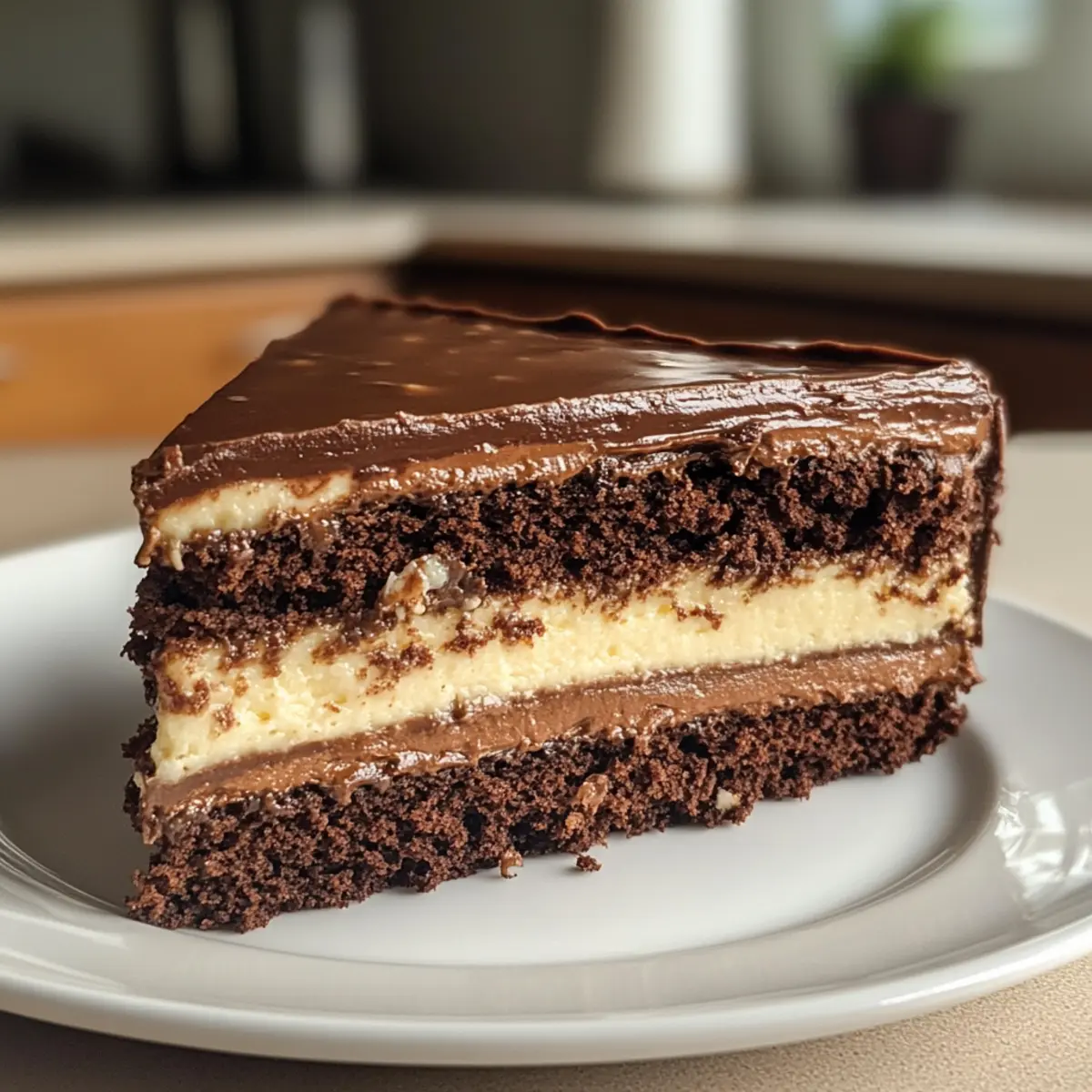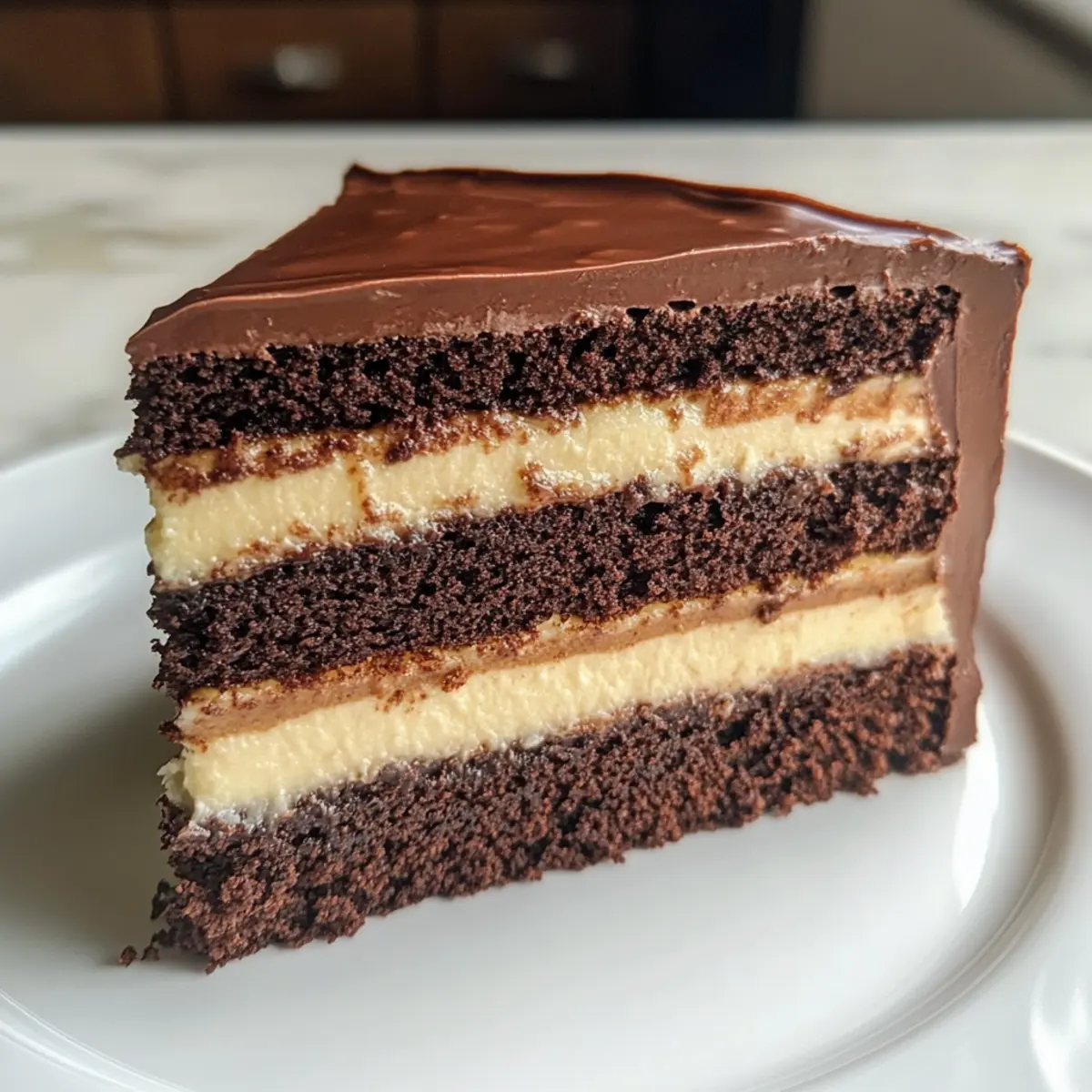 Jump to Recipe Print RecipeTurning simple ingredients into a masterpiece is one of the greatest joys in the kitchen, especially when it involves chocolate! Let me introduce you to my favorite indulgence, the Chocolate Custard Cake. This eggless delight is not just creamy and satisfying; it’s also incredibly versatile, making it perfect for anyone, whether you’re vegan, gluten-free, or simply looking to impress guests with something truly special. The best part? It’s surprisingly easy to whip up, ideal for those busy days when you want a crowd-pleaser without the fuss. With layers of moist cake and a rich, velvety custard filling, this cake is sure to win hearts and satisfy cravings. Are you ready to dive into a delicious adventure that will make your taste buds sing? Let’s get baking! Why is Chocolate Custard Cake a Must-Try? Indulgent Flavor: Each bite of this Chocolate Custard Cake promises a rich chocolate experience that’s too good to resist! Versatile Options: With its eggless and gluten-free adaptations, this cake caters to everyone, ensuring that no one misses out on the joy of dessert. Simple Steps: The preparation is straightforward and perfect for all skill levels—ideal for home chefs looking to impress without extensive planning. Impressive Presentation: The layers of custard and cake not only taste divine but also present beautifully, making it a showstopper for gatherings. Make-Ahead Friendly: Prepare this cake ahead of time and avoid last-minute stress, just like with my famous Mint Chocolate Chip treats or Double Chocolate Muffins. This cake is a lifesaver on busy days! Say goodbye to boring desserts and elevate your baking game with this delightful Chocolate Custard Cake! Chocolate Custard Cake Ingredients • Discover the essential components for a delectable Chocolate Custard Cake that everyone will love! For the Custard 480 ml Chocolate Milk or Plain Milk – Adds moisture and rich flavor; substitute with any dairy-free milk for a vegan option. 70 g Cane Sugar or Castor Sugar – Sweetens the custard; feel free to use granulated sugar if needed. 1 tbsp Dutch Processed Cocoa Powder – Boosts the chocolate flavor; you can swap it with unsweetened cocoa powder. 45 g Cornstarch – Thickens the custard filling; ensure this is fully cooked to prevent a runny consistency. 60 g Unsalted Butter – Brings richness to the custard; use dairy-free butter for a vegan-friendly version. 1 tsp Vanilla Extract – Adds warmth and enhances the overall flavor. ¼ tsp Salt – Balances and enhances the flavor profile. 125 g Dark Chocolate (55% – 60%) – The key flavor component in the custard; opt for dairy-free chocolate to keep it vegan. For the Cake 240 ml Milk (Room Temperature) – Essential for the cake’s moisture; you can use buttermilk or dairy-free alternatives. 1 tbsp White Vinegar or Lemon Juice – Helps to curdle the milk for a richer texture. 300 g Cane Sugar or Castor Sugar – Sweetens the cake; ensure it’s vegan-friendly! 2 tsp Vanilla Extract – Enhances the cake’s flavor. 130 ml Vegetable Oil or Neutral Oil – Provides moisture in the cake; olive oil can be used if preferred. 225 g All-Purpose Flour – Gives structure to the cake; substitute with a 1:1 gluten-free flour mix if needed. 60 g Dutch Processed Cocoa Powder – Adds depth to the chocolate flavor. ¾ tsp Baking Soda – Assists the cake in rising. 1½ tsp Baking Powder – Aids with leavening for a fluffy texture. ½ tsp Salt – Perfectly balances the sweetness. 195 ml Boiling Water or Freshly Brewed Coffee – Moistens the batter and enhances the chocolate flavor. Get ready to create a Chocolate Custard Cake that invites everyone to indulge! Step‑by‑Step Instructions for Chocolate Custard Cake Step 1: Prepare the Custard In a medium pot over medium heat, combine the chocolate milk, 70 g of sugar, 1 tablespoon of cocoa powder, and 45 g of cornstarch. Whisk constantly until the mixture thickens and reaches a pudding-like consistency, about 2-3 minutes. Remove from heat and stir in 60 g of butter, 1 teaspoon of vanilla, ¼ teaspoon of salt, and 125 g of dark chocolate until smooth. Cool the mixture, then cover and refrigerate for 2-3 hours. Step 2: Bake the Cake Preheat your oven to 350°F (175°C) and grease two 8-inch round cake pans, lining the bottoms with parchment paper. In a mixing bowl, combine 240 ml of room temperature milk and 1 tablespoon of vinegar, allowing it to sit for 5 minutes to curdle. Mix in 130 ml of vegetable oil, 2 teaspoons of vanilla, and 300 g of sugar until well combined, creating a sweet and creamy base for your Chocolate Custard Cake. Step 3: Mix the Dry Ingredients Sift together 225 g of all-purpose flour, 60 g of cocoa powder, ¾ teaspoon of baking soda, 1½ teaspoons of baking powder, and ½ teaspoon of salt directly into the wet mixture. Carefully fold these dry ingredients into the wet ingredients until just combined. This will create a velvety batter that will form the cake’s structure, essential for supporting the luscious custard. Step 4: Add Boiling Liquid Next, gradually stir in 195 ml of boiling water or freshly brewed coffee into the batter. This step is crucial for enhancing the chocolate flavor and moisture of the Chocolate Custard Cake. Mix until the batter is smooth, ensuring there are no lumps remaining. You should have a thin, pourable batter ready for the oven. Step 5: Bake and Cool Cakes Pour the cake batter evenly into the prepared pans and place them in the preheated oven. Bake for 25-30 minutes, or until a toothpick inserted into the center of each cake comes out clean. Once baked, remove from the oven and allow the cakes to cool in the pans for about 10 minutes before transferring them to a wire rack to cool completely. Step 6: Prepare for Assembly Once the cakes have cooled down, use a serrated knife to carefully trim the tops of each layer to create even surfaces. This will help your Chocolate Custard Cake layers stack neatl