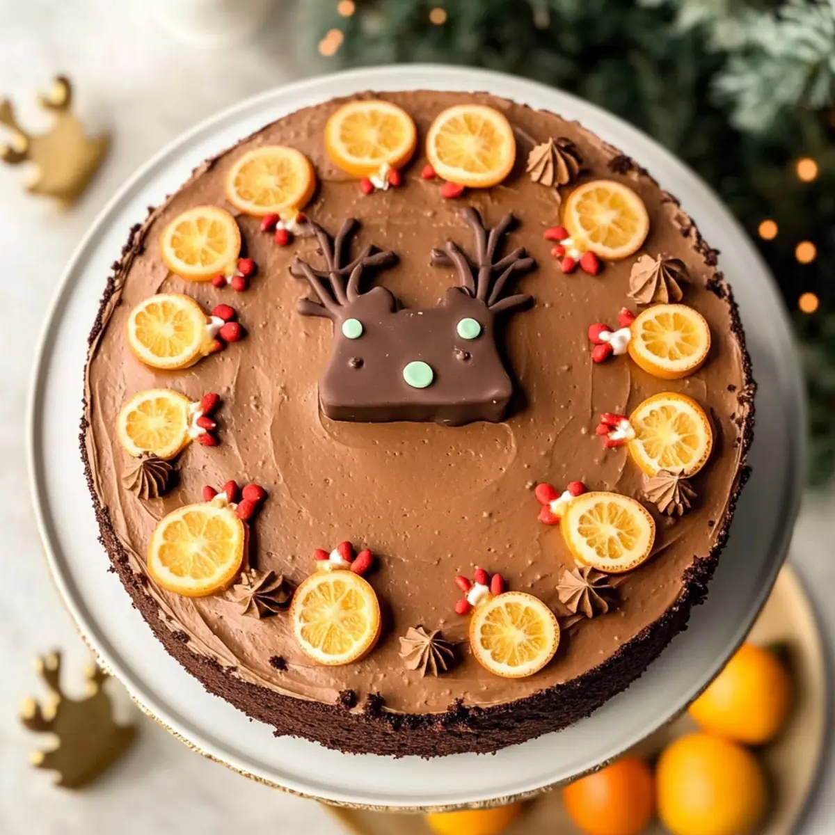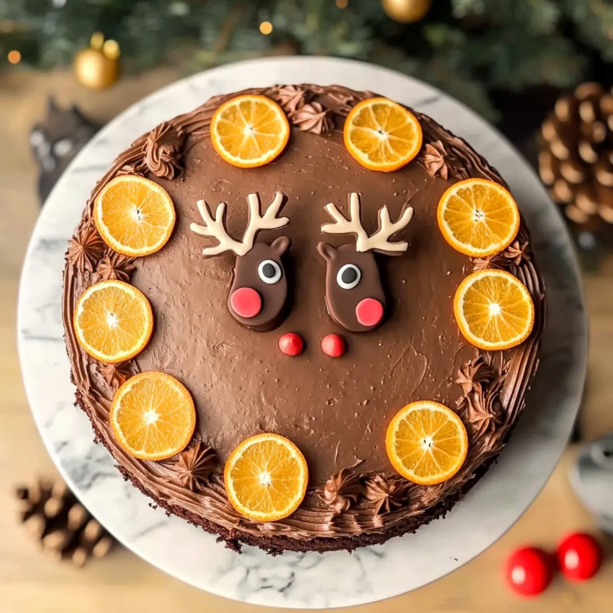 Jump to Recipe Print RecipeWalking through a winter wonderland, the scent of orange and chocolate wafts through the air, reminding me of favorite holiday gatherings. This Chocolate Orange Reindeer Cake brings that festive spirit right into your kitchen, making it the ultimate centerpiece for your celebrations. With its fudgy yet airy sponge and creamy buttercream, it promises to be a showstopper that’s easy to whip up. Not only is it a delightful treat that pleases the palate, but its charming reindeer decorations will bring smiles to both kids and adults alike. So, whether you’re looking to impress at a holiday party or craving something sweet to cozy up with, this cake is just what you need. Ready to create some holiday magic? Why is this cake a festive favorite? Delightful Flavors: The combination of rich chocolate and vibrant orange elevates this cake, creating a unique taste experience. Easy to Make: With simple ingredients and straightforward steps, anyone can bake this lovely cake at home. Festive Charm: Its whimsical reindeer decorations make it the perfect centerpiece for holiday gatherings, delighting guests of all ages. Versatile Texture: The moist sponge paired with creamy buttercream offers a delightful melt-in-your-mouth experience. Make Ahead: Prep this cake a day in advance, ensuring your holiday dessert is both stress-free and scrumptious. Top it off with a dollop of whipped cream for an extra touch of indulgence, making this Chocolate Orange Reindeer Cake a must-try for the season! Chocolate Orange Reindeer Cake Ingredients For the Sponge • White or Golden Caster Sugar – Adds sweetness and helps with cake structure. Substitution: Granulated sugar may be used but may alter texture slightly. • Self-Raising Flour – Provides lift and fluffiness to the cake. Substitution: All-purpose flour can be used with added baking powder (1 tsp per cup). • Cocoa Powder – Imparts a rich chocolate flavor. Substitution: Dutch-processed cocoa for a smoother taste. • Vegetable or Sunflower Oil – Keeps the cake moist. Substitution: Melted butter for richer flavor but may affect texture. • Whole Milk – Adds moisture and richness. Substitution: Any non-dairy milk can work. • Eggs (3 large) – Binds ingredients and contributes to the cake’s structure. Note: Use at room temperature for best results. • Orange (1 large) – Fresh juice and zest provide vibrant flavor. Note: For best results, use fresh, organic oranges. For the Buttercream • Dairy Milk Chocolate Orange (100g, chopped) – Main ingredient for buttercream, gives flavor and sweetness. • Salted Butter (100g, at room temperature) – Base for the buttercream, adds creaminess. Substitution: Unsalted butter with a pinch of salt. • Icing Sugar (180g) – Sweetens and thickens buttercream. Note: Sift before using to avoid lumps. • Cocoa Powder (1 tbsp) – Enhances chocolate flavor in buttercream. • Boiling Water (1 tbsp) – Helps with texture of buttercream, ensuring a glossy finish. For Decoration • Dairy Milk Chocolate Orange Buttons (7) – Used for reindeer decoration. • Red Smarties (7) – Serve as noses for reindeer. • Pretzels (7) – Cut for antlers, adding a fun touch. • Edible Eyes (14) – Decorative element for reindeer. This Chocolate Orange Reindeer Cake is not only a treat for the taste buds but also a delight to the eyes! Step‑by‑Step Instructions for Chocolate Orange Reindeer Cake Step 1: Preheat the Oven Start by preheating your oven to 160°C (fan) or 180°C (conventional). While it warms up, take a 9-inch round cake tin and generously grease it with butter or line it with parchment paper for easy release later. This ensures that your delicious Chocolate Orange Reindeer Cake comes out perfectly without sticking. Step 2: Mix the Sponge Ingredients In a large mixing bowl, combine the white or golden caster sugar, self-raising flour, and cocoa powder. Whisk them together until evenly mixed. Next, add in the vegetable oil, whole milk, and three beaten eggs, stirring gently until the mixture is smooth and free of lumps. Take a moment to appreciate the rich batter that will soon become your delightful cake. Step 3: Incorporate Orange Flavors Zest the large orange directly over your cake batter to capture all those lovely oils. Then, squeeze in its juice, making sure to avoid any seeds. Stir the mixture gently once more until the orange flavor is well embedded. This step truly elevates your Chocolate Orange Reindeer Cake, giving it a fresh, zesty lift that complements the rich chocolate. Step 4: Bake the Cake Pour the chocolate-orange batter into your prepared tin, spreading it evenly. Place it in the oven and bake for 45-50 minutes, or until the cake has risen and springs back when gently pressed. To test for doneness, insert a toothpick—it should come out clean. Once baked, allow the cake to cool in the tin for 20 minutes before transferring it to a wire rack. Step 5: Make the Buttercream While your cake cools, prepare the buttercream. Melt the chopped dairy milk chocolate orange in the microwave, checking frequently to prevent burning. In a bowl, cream the room temperature salted butter until light and fluffy. Gradually sift in the icing sugar, blending until smooth, then fold in the melted chocolate, cocoa powder, and boiling water until you achieve a glossy texture. Step 6: Frost the Cake Once your Chocolate Orange Reindeer Cake is completely cooled, take your prepared buttercream and spread it evenly across the top using a palette knife. Don’t hesitate to add a thicker layer for that rich and indulgent experience! The creamy buttercream complements the moist cake beautifully, making it even more enticing. Step 7: Add Festive Decorations To create your cheerful reindeer, arrange the dairy milk chocolate orange buttons as the eyes on the frosted cake. Use red Smarties for the noses and place edible eyes for a fun touch. Finally, break pretzels in half to create antle