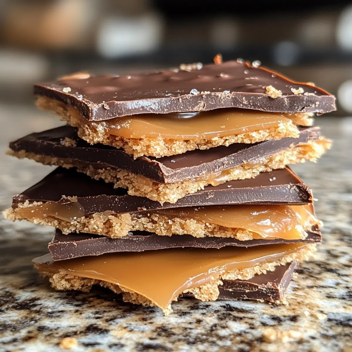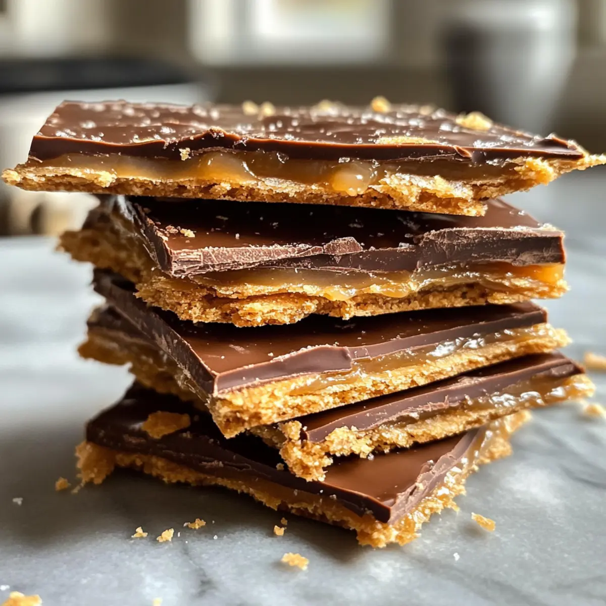 Jump to Recipe Print RecipeAs I sat by the twinkling lights of my Christmas tree, the delightful scent of melting chocolate wafted through the air, instantly transporting me to holiday gatherings past. This 4-Ingredient Christmas Crack, often referred to as Chocolate Toffee Crack, is my go-to treat for festive moments, combining crunchy saltines with a luscious caramel and a rich chocolate layer that’s simply irresistible. The beauty of this recipe lies not just in its simplicity—whipping it up is a breeze—but also in its adaptability. You can customize your toppings to reflect the season, making it a fun activity for all ages. Whether you’re hosting a holiday party or looking to impress friends with homemade treats, this no-bake wonder delivers on taste and satisfaction. Ready to dive into a crunchy, sweet delight that’s sure to be the talk of your next gathering? Let’s get started! Why Is This Chocolate Toffee Crack So Addictive? Simplicity makes this treat a breeze to prepare—just four ingredients are all you need! Rich, luscious flavor comes from the combination of buttery caramel and smooth chocolate, creating a perfect sweet treat. Customizable toppings let you get creative for every season, whether it’s crushed peppermint for winter or colorful sprinkles for birthday parties. Crowd-pleaser status is guaranteed; everyone loves the delightful mix of salty and sweet! Plus, with a no-bake finish, it’s a time-saving solution for those busy holiday gatherings. This Chocolate Toffee Crack is sure to become a cherished recipe in your festive lineup! Chocolate Toffee Crack Ingredients For the Base • Ritz Crackers – These create a crispy, salty foundation for your Chocolate Toffee Crack. Substitution: Saltine crackers can be used instead if you prefer a different texture. For the Caramel • Butter (1/2 cup, 1 stick) – This is essential for a rich caramel layer that holds everything together. No substitutes suggested; the butter is key to achieving that luscious taste. • Brown Sugar (1/2 cup) – Provides the sweetness and depth needed for the caramel. Light or dark brown sugar can be used interchangeably based on your preference. For the Topping • Chocolate Chips (1 cup) – These melt perfectly to create a smooth chocolate topping over your Crack. You can choose semi-sweet or dark chocolate chips, depending on how rich you like it. • Candy of Choice (optional) – Add a festive touch with toppings like crushed peppermint, M&Ms, or sprinkles. Customize based on your seasonal inspirations or what you have on hand—get creative! Step‑by‑Step Instructions for Chocolate Toffee Crack Step 1: Preheat and Prepare Begin by preheating your oven to 425°F (220°C). While the oven heats up, grab an 8×8-inch baking dish and line it with parchment paper to ensure easy removal later. This sturdy base is essential for your Chocolate Toffee Crack, as it will support the layers you create. Step 2: Arrange the Crackers Once the baking dish is ready, arrange Ritz crackers in a single layer at the bottom. Be sure to cover the entire surface, allowing the crunchy, salty goodness to be the foundation of your Chocolate Toffee Crack. The crackers will provide a delightful contrast to the sweet caramel topping that follows. Step 3: Make the Caramel Mixture In a medium saucepan, combine the butter and brown sugar over medium heat. Stir continuously until the butter melts completely, then bring the mixture to a gentle boil. Allow it to bubble while stirring for about 3 minutes until it reaches that perfectly thick consistency, resembling a rich golden caramel. Step 4: Pour Over Crackers Immediately and carefully pour the bubbling caramel mixture over the arranged Ritz crackers. Use a spatula to spread the caramel evenly across the crackers, ensuring every piece is well-coated. The warmth of the caramel will start to soften the crackers, making them even more deliciously irresistible. Step 5: Bake to Set Place the baking dish in the preheated oven and bake for about 5 minutes. You’ll notice the caramel bubbling up around the edges, indicating it’s thickening and starting to set. This brief baking time ensures that your chocolate toffee crack has the perfect texture by melding the layers together. Step 6: Add Chocolate Chips After removing the dish from the oven, sprinkle the chocolate chips generously over the hot caramel layer. Return the dish to the oven for an additional 2 minutes, allowing the chocolate chips to soften and melt. Keep an eye on them; they should be just melted enough to spread smoothly. Step 7: Spread the Chocolate Using a spatula, gently spread the melted chocolate evenly over the caramel layer, creating a luscious topping for your Chocolate Toffee Crack. Take your time with this step, ensuring the chocolate covers all surfaces for maximum flavor in every bite. Step 8: Top with Extras If desired, sprinkle your choice of festive toppings, such as crushed peppermint, nuts, or colorful sprinkles, over the melted chocolate layer. This step adds not only flavor but visual appeal, making your Chocolate Toffee Crack even more inviting for those special gatherings. Step 9: Cool and Break Apart Allow the Chocolate Toffee Crack to cool at room temperature for several hours until completely set. For quicker results, you can refrigerate it for up to 30 minutes. Once fully cooled, break it into bite-sized pieces, and enjoy the satisfying crunch of this addictive holiday treat! Expert Tips for Chocolate Toffee Crack Caramel Consistency: Ensure the caramel boils gently for 3 minutes without stirring; this helps achieve the perfect thickness and texture. Cooling Time: Allow the Chocolate Toffee Crack to cool completely for easier breaking; quick refrigeration can speed up the cooling process if you’re short on time. Even Spreading: When spreading the melted chocolate, use a soft touch to avoid mixing it into the caramel layer, ensuring distinct flavors in every bite. Hol