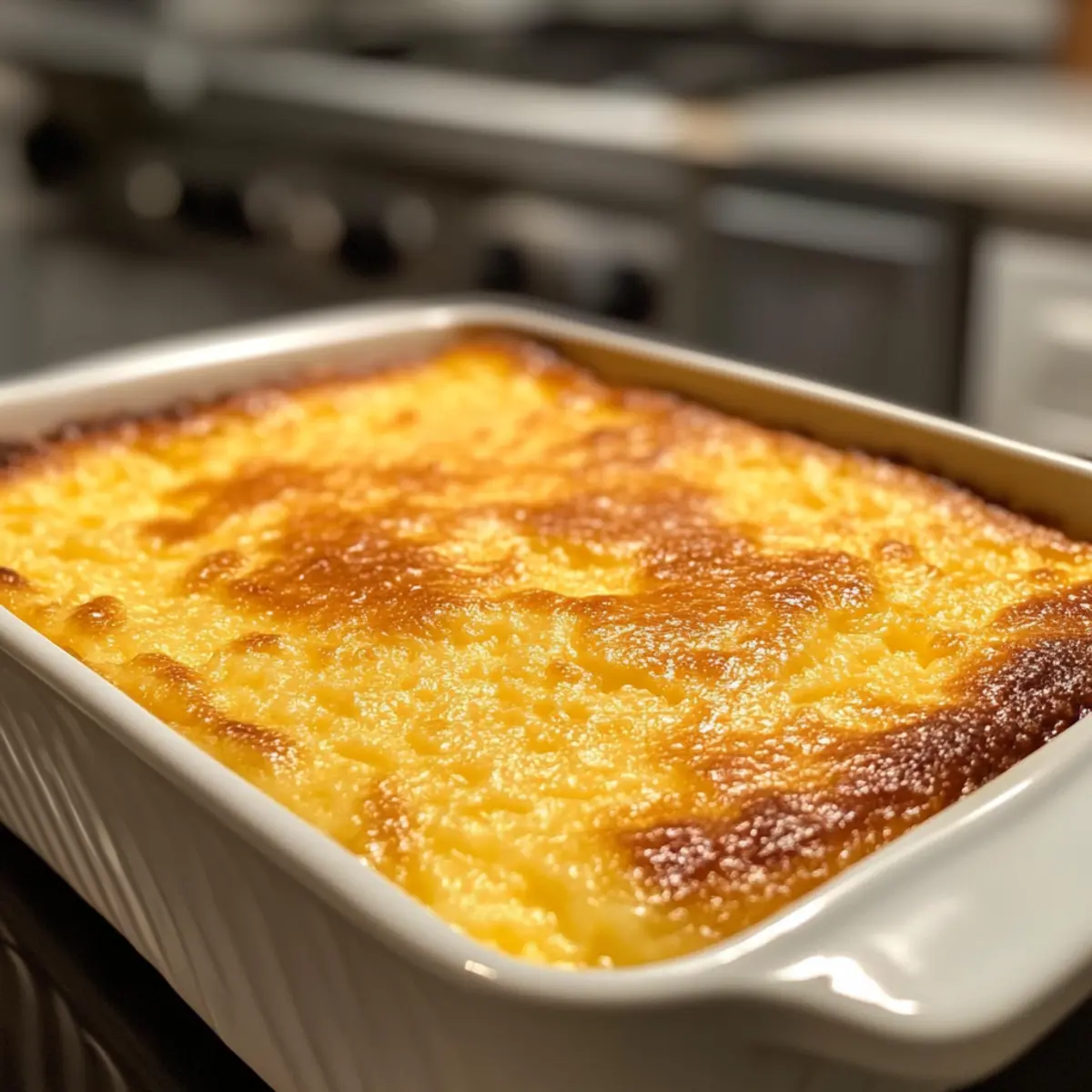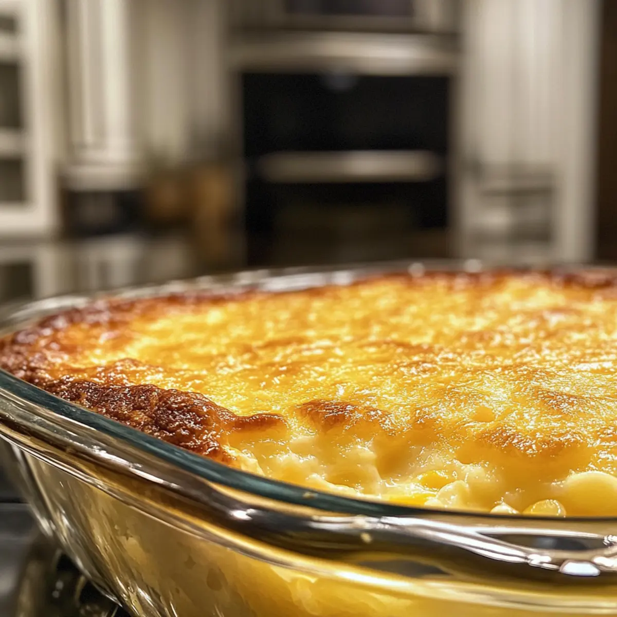 Jump to Recipe Print RecipeAs I stood in my kitchen, the warm aroma of corn wafting through the air transported me back to my grandmother’s home, where her comforting Corn Pudding was the star of every family gathering. This dish, with its rich custardy texture and hints of sweetness, isn’t just food; it’s a warm embrace that brings loved ones together. What I adore about this Southern classic is not just its nostalgic flavor, but also its quick prep time and adaptability—perfect for busy weeknights or festive celebrations alike. Whether you’re looking to impress at a holiday feast or simply craving a cozy meal, Grandmother’s Corn Pudding is your go-to comfort food. Are you ready to bring a taste of tradition to your table? Why Is Corn Pudding So Special? Comforting, this dish wraps you in nostalgia, making every bite a warm reminiscence of family gatherings. Versatile, it easily adapts to your taste—add cheese for creaminess or spice it up with cayenne. Quick prep saves time on busy weekdays while ensuring a special touch for festive occasions. Crowd-pleaser, it pairs exquisitely with roasted meats or stands out solo at a potluck. And if you love creative twists, don’t miss our Jalapeno Cheddar Cornbread as a sidekick! Corn Pudding Ingredients For the Pudding Base Eggs – Provide structure and richness to the pudding. Note: Whisk until well combined for a smooth texture. Melted Butter – Adds moisture and richness. Substitution: Can use vegetable oil for a lighter option. Sugar – Offers sweetness and balances the savory flavors. Substitution: Reduce to 1 tablespoon for a less sweet version or use a natural sweetener like honey. Milk – Contributes to the custardy consistency. Substitution: Any non-dairy milk can work as a replacement. Cornstarch – Ensures gluten-free texture and aids in thickening. Note: Essential for maintaining structure without gluten. For the Corn Mixture Whole-Kernel Corn – Provides texture and sweetness. Substitution: Fresh or frozen corn can be used instead of canned. Cream-Style Corn – Adds moisture and enhances corn flavor. Note: Gives the pudding its characteristic creaminess. Optional Add-Ins Cheddar Cheese – Adds flavor and creaminess. Note: Use ½ to 1 cup for a cheesy variation. Cayenne Pepper – Provides heat and depth of flavor. Note: Adjust to taste for a spicier kick. Step‑by‑Step Instructions for Grandmother’s Corn Pudding Step 1: Preheat the Oven Begin by preheating your oven to 400°F (200°C). While the oven heats up, take a 2-quart casserole dish and generously grease it with butter or non-stick spray. This will ensure that your Corn Pudding releases easily once it’s baked and will develop a beautiful, golden crust on the outside. Step 2: Whisk the Eggs In a large mixing bowl, crack open the eggs and whisk them together until well combined and slightly frothy. This should take about a minute. The eggs provide the essential structure to the Corn Pudding, so make sure they’re thoroughly mixed to achieve a smooth custard-like base. Step 3: Mix in the Wet Ingredients To the bowl with the eggs, add the melted butter, sugar, milk, and cornstarch. Whisk the mixture until it’s completely smooth and free of lumps, which will keep your Corn Pudding light and fluffy. Take your time to blend the ingredients well, ensuring a creamy texture for your delightful dish. Step 4: Fold in the Corn Once your mixture is smooth, gently fold in both types of corn: the whole-kernel corn and cream-style corn. Use a spatula to carefully combine the corn into the mixture, ensuring even distribution, which is key to enhancing the flavor and texture of your Corn Pudding. Step 5: Transfer to Casserole Dish Pour the well-blended corn mixture carefully into the prepared casserole dish. Use a spatula to smooth out the top evenly, allowing it to bake uniformly. The creamy mixture will soon transform into a comforting pudding as it bakes, so make sure it is evenly distributed in the dish. Step 6: Bake the Pudding Place the casserole dish in your preheated oven and bake the Corn Pudding for about 1 hour. Keep an eye on it as it approaches the end of the baking time; you’ll know it’s ready when the top is golden brown and a toothpick inserted into the center comes out clean, indicating it’s perfectly set. Step 7: Cool Before Serving Once baked, remove the Corn Pudding from the oven and let it rest for 5-10 minutes before serving. This resting period allows it to set further, enhancing its creamy texture. As it cools slightly, the warm aroma will envelop your kitchen, inviting everyone to the table for a serving of this delightful comfort food. Tips for the Best Corn Pudding Room Temperature Ingredients: Ensure all ingredients are at room temperature before mixing to achieve a creamy and smooth Corn Pudding texture. Watch the Baking Time: Keep an eye on the pudding toward the end of the baking time to prevent overbaking. The perfect consistency is golden brown with a just-set center. Fresh Corn Adjustments: If using fresh or frozen corn, you might need to extend the baking time slightly—check that the center is firmly set before removing from the oven. Add Flavor Wisely: Experiment with savory add-ins like sautéed onions or spices to customize your Corn Pudding while being mindful not to overpower the classic taste. Cheesy Delight: If adding cheese, use mild Cheddar for a creamy touch; just remember not to overdo it to maintain the pudding’s fluffy nature. Storage Tips for Corn Pudding Refrigerator: Store leftover Corn Pudding in an airtight container for up to 4 days, ensuring it stays fresh and delicious for your next craving. Freezer: Wrap tightly in plastic wrap and foil before freezing for up to 3 months. Thaw overnight in the fridge and reheat at 350°F (175°C) for 15–20 minutes before enjoying. Make-Ahead: Prepare the Corn Pudding mixture a day in advance, store in the fridge, and bake just before serving for a fresh, home-c