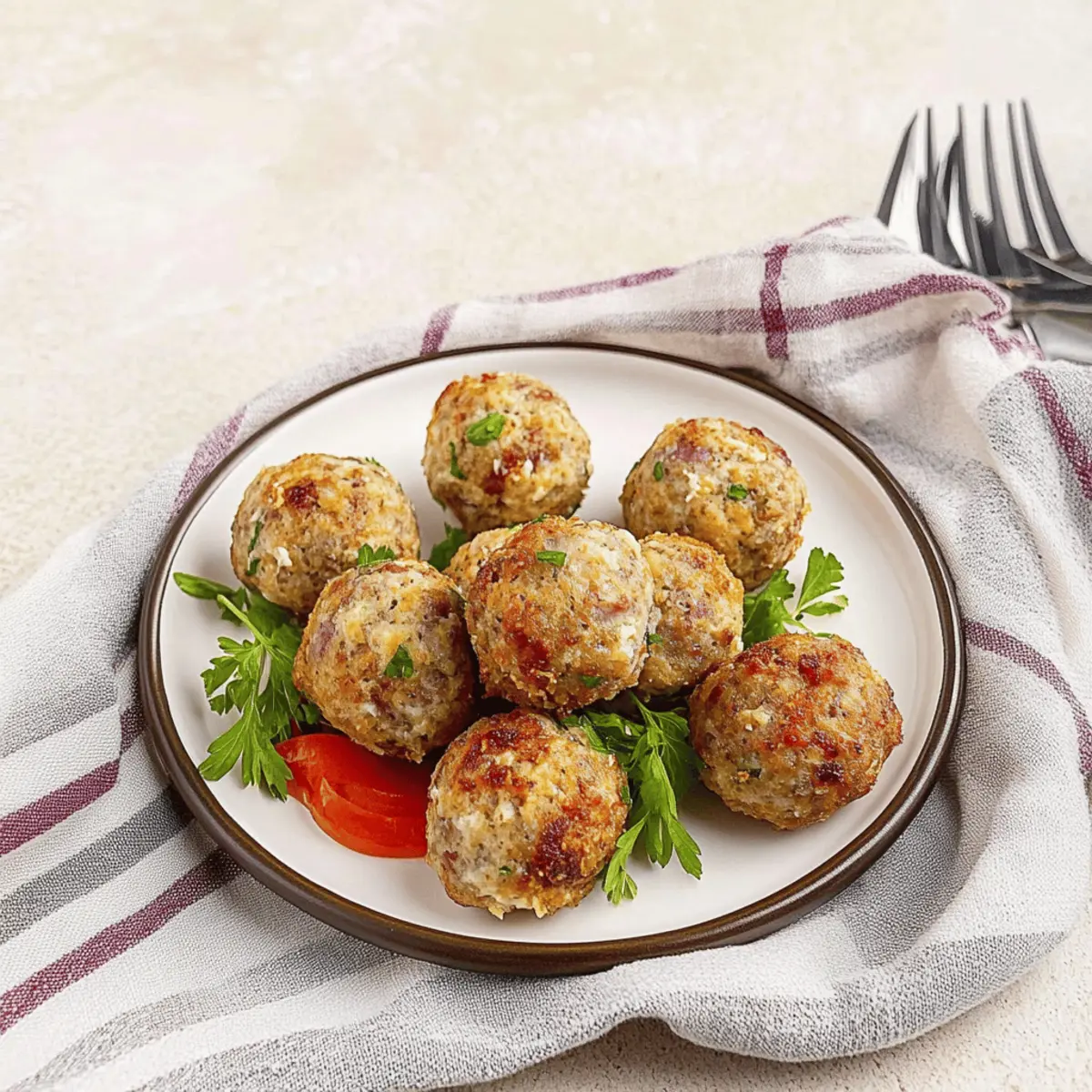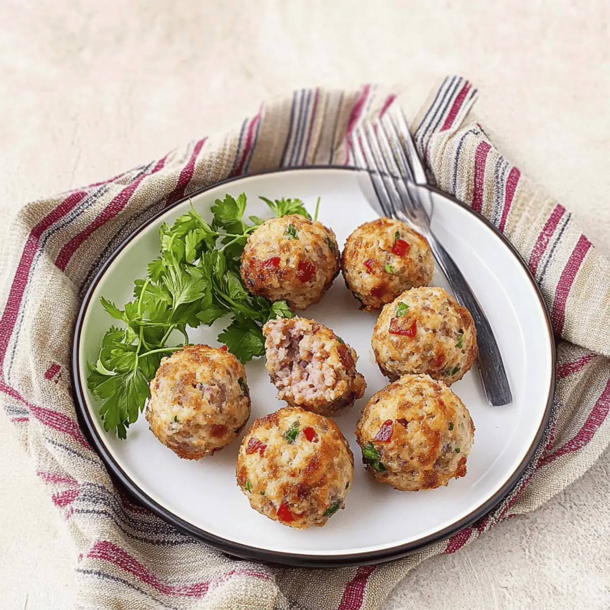 Jump to Recipe Print RecipeAmid the hustle of party prep, there’s nothing quite like uncovering a recipe that packs flavor into minimal effort. My 4-Ingredient Cream Cheese Sausage Balls are the ultimate game-changer when you’re craving a quick and easy appetizer. With just four simple ingredients—hot pork sausage, cream cheese, a baking mix, and cheddar cheese—you’ll have a delightful finger food that’s sure to impress. Not only do they come together in a single bowl, making cleanup a breeze, but they’re also adaptable—swap in your favorite sausage or cheese for a fun twist! Whether you’re hosting a casual gathering or just want a cozy snack, these savory bites will have everyone reaching for seconds. Curious how to bring these cheesy, meaty morsels to life? Let’s get started! Why Are Cream Cheese Sausage Balls So Great? Simplicity at Its Finest: With only four ingredients, these Cream Cheese Sausage Balls come together effortlessly, making them a perfect choice for busy cooks. Flavor Explosion: The rich blend of savory sausage and creamy cheese creates a flavor that keeps everyone coming back for more. Versatile Options: Feel free to get creative! You can easily substitute the sausage or cheese to suit your taste—try Italian sausage or Gruyere for a new twist! Crowd-Pleasing Appeal: Perfect for parties or game day, these bite-sized treats are guaranteed to delight guests and disappear quickly, much like my Potato Cheese Sticks! Quick and Easy: You’ll have these golden-brown delights ready in about 30 minutes—ideal for when you need an impressive snack without the fuss! Cream Cheese Sausage Balls Ingredients For the Sausage Mixture • Hot Pork Sausage – Adds a robust flavor; feel free to swap for Italian or breakfast sausage for a milder taste. • Cream Cheese – Ensures a moist, tender texture; make sure to soften it before mixing for the best results. For the Binding • Baking Mix (e.g., Bisquick) – Acts as a binder to hold everything together; buttermilk pancake mix can work as a substitute if needed. For the Flavor • Cheddar Cheese (shredded) – Provides a sharp, tangy kick; try Gruyere or Colby Jack for a delicious twist in your Cream Cheese Sausage Balls! Step‑by‑Step Instructions for Cream Cheese Sausage Balls Step 1: Preheat the Oven Begin by preheating your oven to 350°F (175°C). While it’s heating, take a baking sheet and line it with parchment paper to prevent sticking. This step ensures your Cream Cheese Sausage Balls come out perfectly golden and easy to clean up afterward. Step 2: Combine Sausage and Cream Cheese In a large mixing bowl, combine the hot pork sausage and softened cream cheese. Use a sturdy fork or your hands to mix them together until the ingredients are evenly blended. This should take about 2-3 minutes. The mixture should be smooth and creamy, creating a flavorful base for your Cream Cheese Sausage Balls. Step 3: Add Baking Mix and Cheese Next, sprinkle in the baking mix and gently fold it into the sausage and cream cheese mixture using a spatula. Once it’s just combined, stir in the shredded cheddar cheese until thoroughly mixed. This step adds the all-important fluffy texture to your sausage balls, so ensure no streaks of dry mix remain. Step 4: Chill the Mixture To create firmer sausage balls, cover the mixing bowl with plastic wrap and place it in the refrigerator for about 10 minutes. Chilling the mixture helps it hold its shape better during baking, leading to perfectly round Cream Cheese Sausage Balls that won’t spread out. Step 5: Form the Balls After chilling, remove the sausage mixture from the fridge. Using a tablespoon or a small cookie scoop, scoop the mixture and roll it into 1-inch balls. Place each ball on the prepared baking sheet, leaving a little space between each one for even cooking. Visual cues indicate readiness when they are nicely shaped and firm to the touch. Step 6: Bake the Sausage Balls Place the baking sheet in the preheated oven and bake for 22-25 minutes. You’ll know the Cream Cheese Sausage Balls are ready when they turn a beautiful golden brown and feel firm. To ensure food safety, check that their internal temperature reaches at least 160°F (71°C) with a meat thermometer. Step 7: Serve and Enjoy Once fully baked, remove the sausage balls from the oven and allow them to cool for a few minutes on the baking sheet. Garnish with fresh chopped parsley for added color and flavor. Serve your Cream Cheese Sausage Balls warm, accompanied by your favorite dipping sauces or alongside a fresh salad for a delightful appetizer! Expert Tips for Perfect Cream Cheese Sausage Balls Optimal Cream Cheese: Ensure your cream cheese is softened at room temperature for easier mixing; this prevents lumps and promotes a smooth consistency. Avoid Sticky Mixture: If the mixture feels too sticky while forming balls, resist adding more baking mix. Instead, use wet hands for easier handling. Chill for Firmness: Don’t skip the chilling step! Refrigerating the mixture helps maintain shape while baking, ensuring your Cream Cheese Sausage Balls hold together beautifully. Using a Thermometer: Always check the internal temperature of the sausage balls with a meat thermometer to ensure they reach 160°F for safe consumption. Extra Flavor: Enhance your sausage ball experience by adding chopped herbs like parsley or green onions to the mixture for an added burst of freshness! Variations & Substitutions for Cream Cheese Sausage Balls Feel free to get creative with your Cream Cheese Sausage Balls! Let your taste buds guide you in making these savory bites uniquely yours. Milder Sausage: Substitute hot pork sausage with breakfast sausage or Italian sausage for a more subtle flavor. This creates a delightful balance that even the kids will enjoy! Spicy Kick: Add some jalapeños or swap in chorizo for an extra kick of heat. Bring some excitement to your dish with a fiery twist! Dairy-Free: Use a dairy-free crea