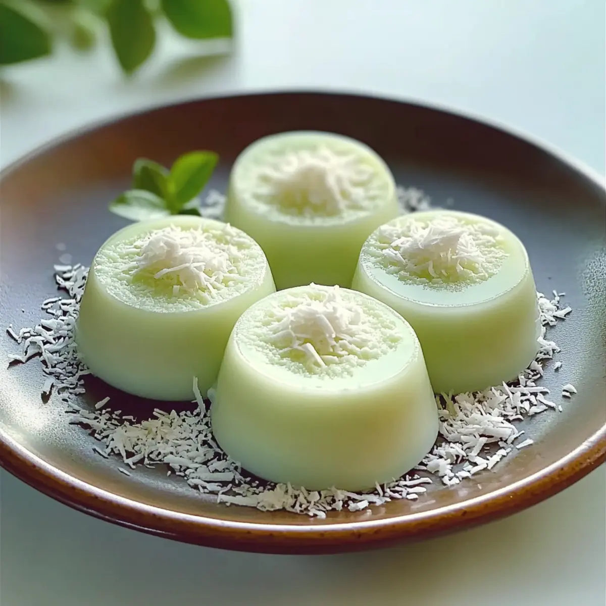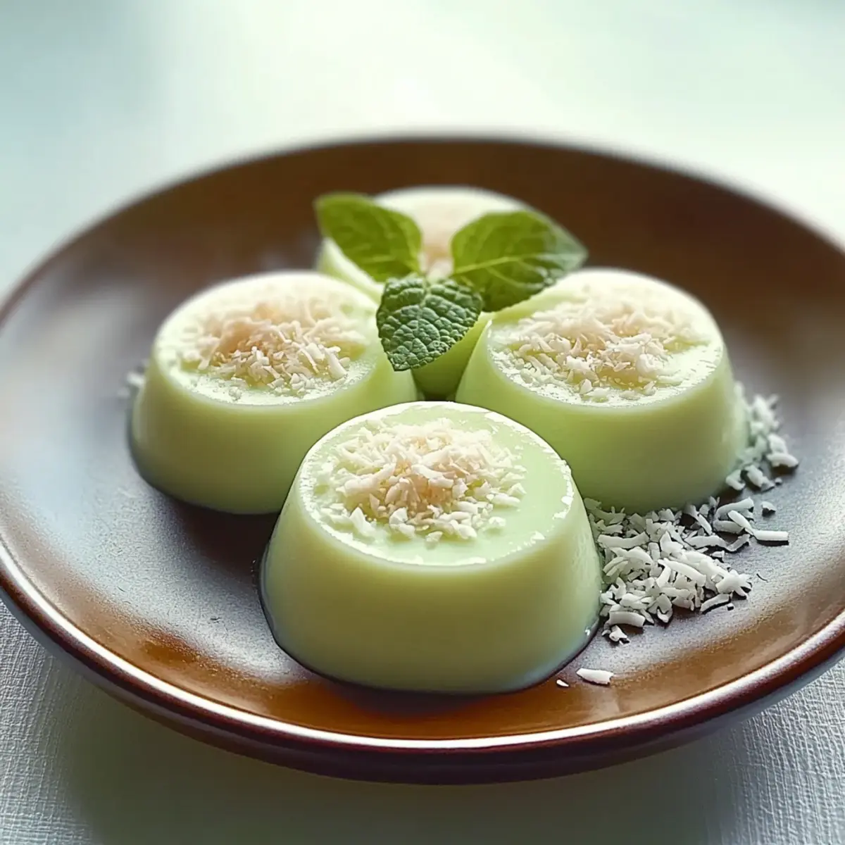 Jump to Recipe Print RecipeAs I stirred the vibrant green pandan powder into the milk, the air filled with a subtle yet alluring fragrance that whisked me straight to a tropical paradise. This Creamy Pandan Coconut Panna Cotta is not just a dessert; it’s an escape from the ordinary, offering a bite of indulgence with every silky spoonful. With its simple ingredients and minimal preparation time, this delightful treat is perfect for both easing your sweet cravings and impressing your guests. Plus, it’s easily adaptable for those looking for a dairy-free option without sacrificing that luxurious texture. Are you ready to transform your dessert game with this elegant panna cotta? Let’s dive into the recipe! Why is Pandan Coconut Panna Cotta Special? Exquisite Flavor: The tropical fusion of pandan and coconut creates a luxuriously creamy dessert that dances on your palate, transporting you to a beachside retreat with every bite. Easy Preparation: This panna cotta calls for simple ingredients and is easy to whip up, making it perfect for chefs of all skill levels. Dairy-Free Option: With a quick swap of almond milk and agar-agar, you can enjoy this dish as a dairy-free delight, perfect for those with dietary restrictions. Impressive Presentation: The gorgeous green color and silky texture make this dessert visually stunning, sure to wow your guests at any gathering. Kid-Friendly Fun: This panna cotta is a crowd-pleaser, making it a hit with both adults and kids alike. Pair it with a fresh fruit salad for a refreshing twist, or enjoy it alone! For more inspirations that play with tropical flavors, check out my Creamy Tomato Pasta or consider making a unique twist on traditional dishes like Herby Ricotta Stuffed Peppers. Creamy Pandan Coconut Panna Cotta Ingredients • To create this delightful panna cotta, gather the following ingredients for a tropical taste. For the Base Whole Milk – Provides a creamy foundation for your panna cotta. Granulated Sugar – Sweetens the mixture and balances the overall flavors. Coconut Milk – Infuses the panna cotta with rich, tropical goodness. Heavy Cream – Ensures a luxuriously silky texture that melts in your mouth. For the Setting Gelatin Sheets – Essential for achieving that perfect creamy pandan coconut panna cotta consistency. Pandan Powder – Adds a unique, sweet flavor and vibrant green color to your dessert. For the Garnish Shredded Coconut – Used to sprinkle on top as a delightful finishing touch. This combination of ingredients will ensure you enjoy a taste of the tropics with each spoonful of your creamy panna cotta! Step‑by‑Step Instructions for Creamy Pandan Coconut Panna Cotta Step 1: Combine Milk and Sugar In a medium saucepan, combine whole milk and granulated sugar. Heat the mixture over low heat for about 5 minutes, stirring gently until the sugar completely dissolves. You’ll know it’s ready when the milk is warm but not boiling, providing the perfect base for your Creamy Pandan Coconut Panna Cotta. Step 2: Mix Pandan Powder In a small bowl, take 55g of the warm milk from the saucepan and add the pandan powder. Stir until you achieve a smooth paste, ensuring there are no lumps. This will infuse your panna cotta with that vibrant green color and tropical taste, so smoothly blend it before adding it to the main mixture. Step 3: Soak Gelatin Sheets While your pandan mixture is coming together, take the gelatin sheets and soak them in cold water for about 5-10 minutes. This will soften them, allowing for easy incorporation into your creamy mixture later. Make sure the sheets are fully submerged for the best results in your Creamy Pandan Coconut Panna Cotta. Step 4: Heat and Combine Once the gelatin has soaked, gently heat the milk mixture again to around 50°C (122°F). Remove it from the heat right away to avoid cooking the cream. The warmth will help the gelatin dissolve smoothly when added, creating that luscious texture characteristic of a perfectly set panna cotta. Step 5: Dissolve Gelatin Squeeze any excess water from the gelatin sheets, then stir them into the warm milk mixture until fully dissolved. You will notice that the mixture thickens slightly. This is essential for achieving that delightful consistency in your Creamy Pandan Coconut Panna Cotta. Stir gently to ensure even incorporation. Step 6: Incorporate Coconut Milk and Cream Next, add the coconut milk and heavy cream to your gelatin-infused milk mixture. Use a whisk to gently combine everything until the mixture is smooth and well-mixed. This step enriches your panna cotta with that signature coconut flavor, enhancing its tropical allure and creamy texture. Step 7: Strain for Smoothness To ensure your Creamy Pandan Coconut Panna Cotta is flawlessly silky, strain the mixture through a fine mesh sieve into a clean bowl. This eliminates any tiny lumps and guarantees a smooth finish. Once strained, it’s ready to be poured into molds, giving you an elegant presentation. Step 8: Mold and Refrigerate Pour the silky mixture into individual molds or ramekins, filling each one almost to the top. Place them in the refrigerator for at least 4 hours or until set firm. Keep an eye on your panna cotta’s jiggle, which signals that it’s ready for serving. The chill will help develop the delightful flavors. Step 9: Garnish Before Serving When ready to serve, carefully unmold the panna cotta onto plates or serve it directly in the ramekins. Garnish with shredded coconut or fresh pandan leaves for a pretty and inviting touch. This simple decoration adds a delightful texture and elevates the presentation of your Creamy Pandan Coconut Panna Cotta. Creamy Pandan Coconut Panna Cotta Variations Feel free to explore a world of delicious possibilities with these delightful twists on the original recipe! Dairy-Free: Swap whole milk for almond milk to create a luscious, dairy-free panna cotta that doesn’t sacrifice creaminess. Vegan: Use agar-agar instead of gelatin, foll