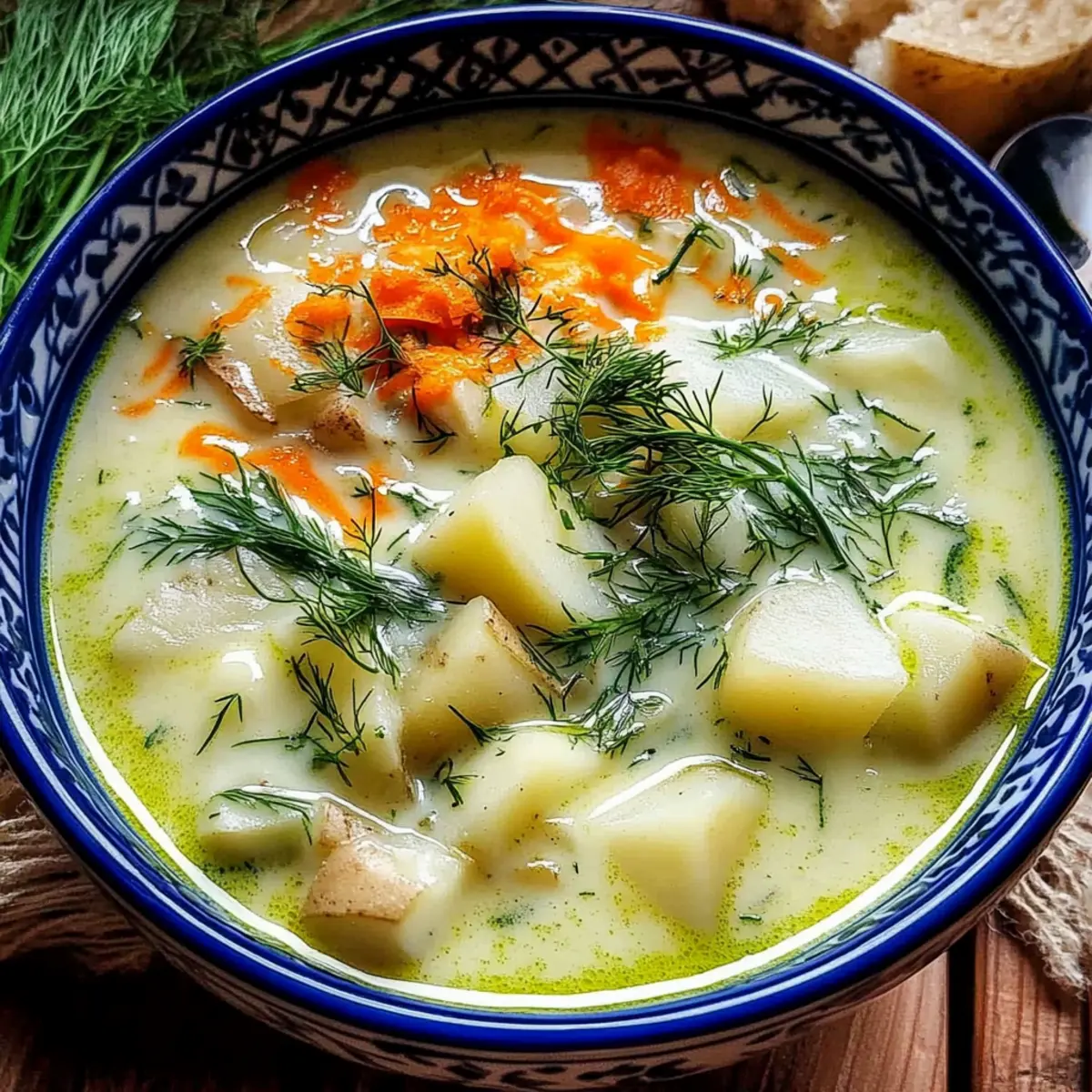 Jump to Recipe Print RecipeAs the sun sets and the chill in the air nudges me toward the kitchen, there’s something inexplicably comforting about a steaming bowl of Creamy Potato Dill Soup (‘Zupa Koperkowa’). This Polish classic offers that cozy embrace we all crave, blending the hearty flavor of tender potatoes with the bright, grassy notes of fresh dill. Not only is this soup delightfully easy to whip up, but it also serves as a gluten-free and vegetarian option that beautifully satisfies both the soul and the stomach. Whether it’s a soothing lunch or a light dinner, this recipe is sure to win over even the pickiest eaters in your home. Curious to discover how creamy bliss comes together in just a few simple steps? Let’s dive into the warmth of this delicious dish! Why Is This Soup So Irresistible? Comforting Warmth: There’s nothing like a hot bowl of creamy potato soup to wrap you in coziness on chilly days. Flavorful Dill: Fresh dill offers a burst of vibrant flavor, elevating this classic recipe beyond the ordinary. Versatile Delight: Easily adjustable for dietary needs, you can switch to coconut milk and vegetable stock for a vegan twist! Quick and Simple: With just a few ingredients, it’s perfect for a last-minute meal after a busy day. Crowd-Pleasing Appeal: Whether it’s lunch with friends or dinner with family, this soup will certainly impress everyone at the table! Pair it with some Crusty Bread for a complete comfort meal. Creamy Potato & Dill Soup Ingredients For the Soup Base Fresh Dill (3.5 ounces / 100 g) – Vital for that fresh, citrusy flavor; don’t skimp on this herb as it is the heart of the Creamy Potato Dill Soup! Potatoes – A hearty base that creates a filling, comforting soup; for a twist, try using sweet potatoes for added sweetness. Stock (homemade or store-bought) – Acts as the flavorful liquid foundation; switch it for vegetable stock if you’re after a vegetarian delight. Onion – Adds depth and aroma when sautéed until soft; don’t rush this step for the best flavor outcome. For Creaminess Cream – This ingredient contributes a luxurious, silky texture; omit it if you prefer a lighter, dairy-free alternative. Feel free to explore the variations for this creamy delight, making it your own! Step‑by‑Step Instructions for Creamy Potato & Dill Soup Step 1: Sauté Aromatics In a large, heavy-bottomed pot, heat a drizzle of oil over medium heat. Add finely chopped onions and sauté them for about 5 minutes, stirring occasionally, until they become translucent and fragrant. The aromatics are the foundation of your Creamy Potato & Dill Soup, so take your time to ensure they are well-cooked without browning. Step 2: Cook Potatoes Next, add diced potatoes to the pot and give them a good stir to coat with the onions. Sauté for another 2-3 minutes, allowing them to soak in the flavor. This step adds depth to your soup before you proceed to the next; ensure the potatoes are slightly softened but still firm, which will help create the perfect texture later. Step 3: Simmer Pour in your choice of stock, bringing the mixture to a boil over high heat. Once boiling, reduce the heat to low and let it simmer gently for about 15-20 minutes. The goal is to cook until the potatoes are fork-tender but not falling apart. Keep the pot covered to maintain moisture and flavor, creating a delicious base for your Creamy Potato & Dill Soup. Step 4: Incorporate Dill After the potatoes are tender, stir in the freshly chopped dill and heavy cream. Let the soup simmer for an additional 5 minutes, allowing the flavors to meld beautifully. This is the moment where your Creamy Potato & Dill Soup truly takes shape, transforming into a comforting and fragrant dish that envelops the senses. Step 5: Blend (optional) For those who prefer an ultra-smooth texture, take an immersion blender and blend the soup directly in the pot until you reach your desired consistency. If you don’t have an immersion blender, carefully transfer the soup in batches to a countertop blender. This optional step adds a luxurious creaminess to your soup, enhancing its comforting and elegant qualities. Step 6: Serve Ladle the hot Creamy Potato & Dill Soup into bowls, garnishing with additional dill if desired. Serve it warm alongside crusty bread for a delightful meal that will surely please family and friends. Relish the silky texture and vibrant flavors—this comforting soup provides the ultimate hug in a bowl! Make Ahead Options Creamy Potato Dill Soup is a fantastic choice for meal prep, allowing you to savor its delightful flavors with minimal effort during busy weekdays. You can chop the onions and dice the potatoes up to 24 hours in advance, storing them in an airtight container in the refrigerator to maintain their freshness. Additionally, you can prepare the soup base (steps 1 through 3) and refrigerate it for up to 3 days before finishing. When you’re ready to enjoy your soup, simply reheat the base gently on the stove, stir in the dill and cream, and blend if desired. This way, you’ll enjoy a comforting bowl of Creamy Potato Dill Soup, just as delicious as it was fresh! Storage Tips for Creamy Potato & Dill Soup Fridge: Store your Creamy Potato Dill Soup in an airtight container for up to 3 days. Make sure it’s completely cooled before sealing to maintain freshness. Freezer: For longer storage, freeze the soup in airtight containers or freezer bags. It’s best consumed within 3 months for optimal flavor and texture. Reheating: When you’re ready to enjoy, reheat gently on the stove over low heat, stirring frequently. Avoid boiling to prevent the cream from separating and maintain that silky texture. Thawing: If frozen, transfer the soup to the fridge to thaw overnight. For quick defrosting, place the sealed container in a bowl of cold water until pliable. Expert Tips for Creamy Potato Dill Soup Use Fresh Dill: Ensure your dill is fresh for an impactful flavor; dried dill does