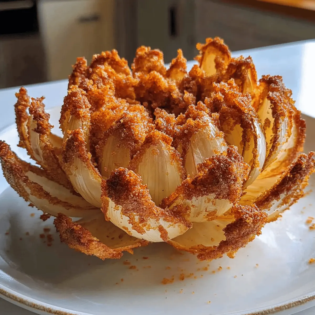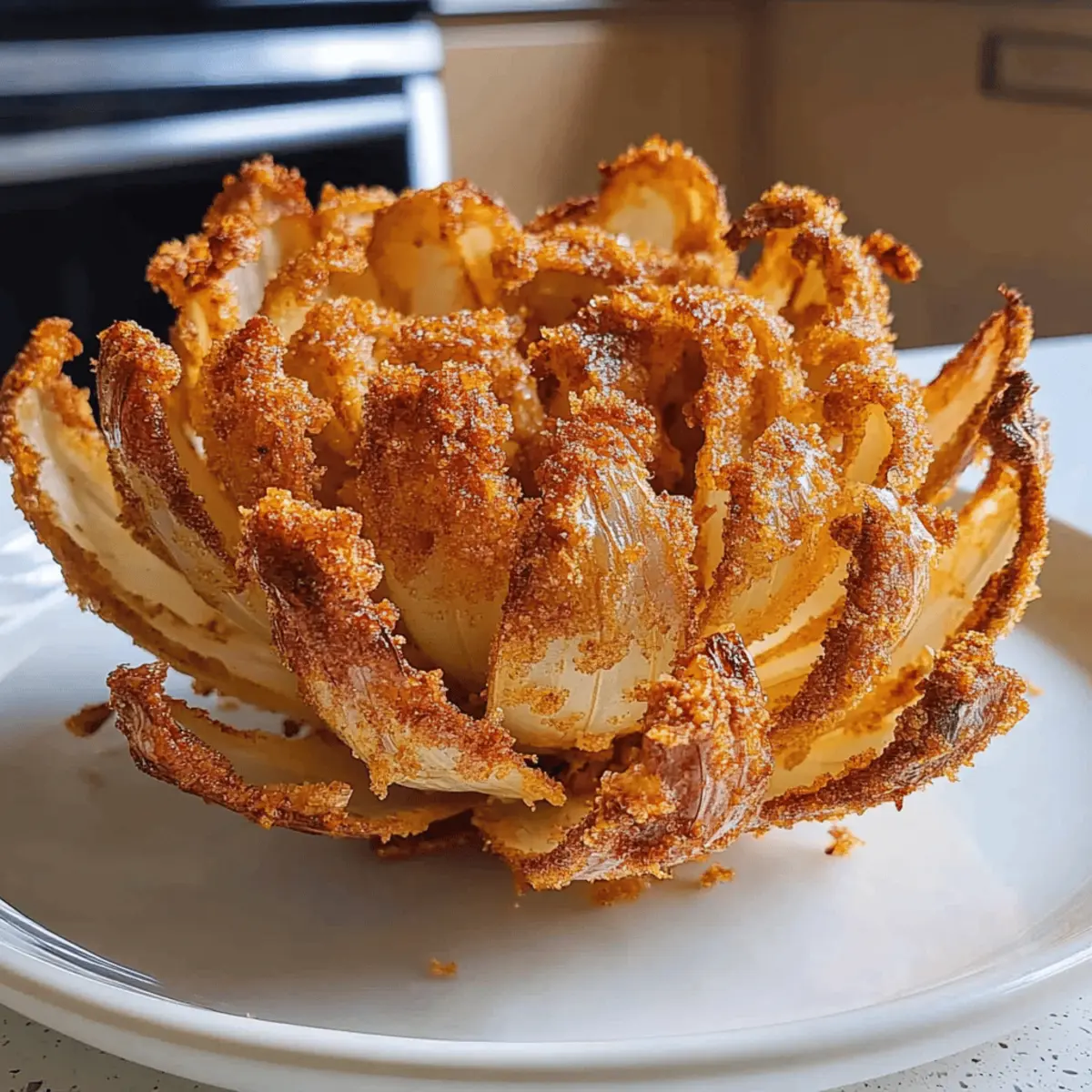 Jump to Recipe Print RecipeEvery time I crunch into a blooming onion, I’m transported to a summer night at a lively restaurant, filled with laughter and good company. This Crispy Air Fryer Blooming Onion replicates that joyful experience right in your kitchen, minus the deep-frying fuss. With a significantly lighter touch, this recipe creates a beautiful appetizer that’s not only stunning to present but also a healthier option for those who crave comfort food. Plus, the air fryer cuts down on prep time and mess, making it perfect for gatherings or cozy nights at home. Whether you’re looking to impress guests or treat yourself, this blooming onion is bound to be a crowd-pleaser. Are you ready to create a dish that will leave everyone coming back for seconds? Why is This Blooming Onion a Must-Try? Easy Preparation: This Crispy Air Fryer Blooming Onion is a breeze to make, even for rookie cooks. Just a few simple steps lead to a stunning result! Healthier Choice: With significantly less oil than traditional recipes, you’ll enjoy all that crispy goodness without the guilt. Impressive Presentation: The beautiful flower-like shape is sure to catch everyone’s eye on the table, perfect for gatherings and parties! Customizable Flavors: Feel free to switch up the spices or experiment with different dipping sauces like a zesty ranch or spicy ketchup for a delightful twist! Quick Cooking Time: This dish cooks in just 12-15 minutes, making it a time-saver when hosting guests or wanting a quick indulgence. Dive into this delicious recipe, and for more crunchy delights, check out our Air Fryer Buffalo or Baked Asparagus Fries for your next crispy craving! Crispy Air Fryer Blooming Onion Ingredients For the Onion • Vidalia or Sweet Onion – The sweetest option for a delightful bloom, yellow onions can work in a pinch. For the Coating • All-Purpose Flour – Essential for achieving that crispy texture; use a gluten-free blend for a dietary alternative. • Eggs – These help the flour stick; consider flax or chia eggs for a vegan version. For Flavor • Cayenne Pepper – Adds a kick; adjust according to your spice tolerance for your crispy air fryer blooming onion. • Seasoned Salt – Enhance the flavor profile with a sprinkle for a savory element. For Cooking • Oil Spray – A generous amount ensures your onion crisps beautifully in the air fryer; don’t hold back! Step‑by‑Step Instructions for Crispy Air Fryer Blooming Onion Step 1: Preheat the Air Fryer Start by preheating your air fryer to 375°F. This step is crucial for achieving that desired golden crunch on your crispy air fryer blooming onion. Allow about 5 minutes for your air fryer to reach the perfect temperature while you prepare your onion. Step 2: Prepare the Onion Take a large Vidalia or sweet onion and slice off the top 1/2 inch. Then, carefully make vertical cuts around the onion, about 1/4 inch apart, stopping before you reach the root to form blooming petals. As you chop, envision the beautiful presentation that awaits! Step 3: Separate the Layers Gently pull apart the layers of the onion to create space between each petal. Be careful to avoid tearing the onion too much, as maintaining its shape is key for the crispy air fryer blooming onion. Set it aside on a clean surface while you gather the flour mixture. Step 4: Coat with Seasoned Flour In a bowl, combine all-purpose flour with seasoned salt and cayenne pepper for extra flavor. Carefully dip the onion into the flour, making sure to coat it thoroughly and getting the flour between the petals. This coating forms the crispy shell you’ll love. Step 5: Dip in Egg Wash Prepare an egg wash by whisking eggs in a bowl. Now, dunk the floured onion into the egg wash, allowing any excess to drip off. This step ensures the second layer of flour adheres well, which is essential for a delightful crunch on your crispy air fryer blooming onion. Step 6: Final Flour Coating Return the egg-dipped onion to the flour mixture for a final coating. Press gently to ensure the flour sticks, creating a thicker crust that’ll turn wonderfully crispy while cooking. This extra layer is vital for that irresistible crunch we’re aiming for! Step 7: Oil It Up Generously spray the coated onion with oil, ensuring each petal is well-covered. This vital step helps the onion crisp up beautifully in the air fryer without soaking in grease. Place the onion upright in the air fryer basket for even cooking. Step 8: Air Fry the Onion Cook the prepared onion in the air fryer for 12-15 minutes, checking halfway to gently separate any stuck petals. When golden brown and crispy, your crispy air fryer blooming onion is ready to impress. Keep an eye out for that heavenly color! Step 9: Serve and Enjoy Carefully remove the blooming onion from the air fryer and let it cool for a minute. Serve it whole for a stunning presentation alongside your favorite dipping sauces like ranch or sriracha mayo. Gather friends and family around to revel in this crispy creation! Crispy Air Fryer Blooming Onion Variations Feel free to let your creativity shine by customizing this recipe to suit your tastes and dietary needs! Spicy Kick: Increase the cayenne pepper or add chili powder for a fiery touch that brings the heat to your crispy air fryer blooming onion. Fire up your taste buds with every bite! Herb-Infused: Mix in fresh or dried herbs like parsley, garlic powder, or Italian seasoning to the flour for added flavor. This twist allows every petal to burst with delightful aromas! Gluten-Free: Substitute all-purpose flour with a gluten-free blend to accommodate dietary restrictions without sacrificing crunch. Experience the same heavenly texture while enjoying a gluten-free indulgence! Vegan Delight: Replace the eggs with flax or chia eggs to make a totally vegan crispy air fryer blooming onion. You won’t even miss the eggs, as the flavors still shine through beautifully! Cheesy Twist: Incorporate grated Parmesan 