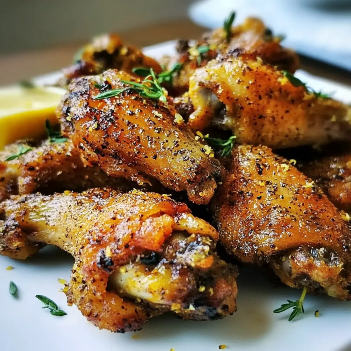 Jump to Recipe Print RecipeAs I watched the golden wings sizzle in the oven, a familiar wave of anticipation washed over me. Today, we’re diving into a crowd favorite: Crispy Baked Lemon Pepper Wings. This delightful recipe offers a light yet indulgent way to enjoy wings without dealing with the frying mess. It’s astonishing how simple pantry staples like fresh lemon juice and garlic powder can create such a burst of flavor. Not only are these wings effortlessly crisp, but they also embrace that juicy tenderness you crave. Perfect for game nights or cozy evenings at home, these baked wings are a fantastic way to switch up your usual routine. Ready to give your taste buds a zesty kick? Let’s uncover the secrets to achieving that irresistible crunch! Why Are These Wings So Irresistible? Crispy Crunch: These wings deliver an addictive texture that’s perfectly crispy without the need for frying. Bright Flavor: Fresh lemon juice brings a zesty brightness that elevates every bite, making these wings a flavor sensation. Simple Ingredients: Made with everyday pantry staples, this recipe ensures you can whip them up anytime. Versatile Variations: Love a kick? Try adding cayenne for a spicy twist, or experiment with different oils for unique flavor profiles. Crowd Pleaser: Perfect for gatherings or cozy dinners, they are guaranteed to impress both family and friends. Want more delicious recipes? Don’t miss our Lemon Pizza Zesty or Ricotta Stuffed Peppers for more fresh, vibrant flavors! Crispy Baked Lemon Pepper Wings Ingredients • Prepare to elevate your wings! For the Wings Chicken Wings – The heart of the recipe, choose a mix of flats and drumettes for variety. Olive or Avocado Oil – Essential for achieving that mouthwatering crispy texture; ghee can provide a buttery alternative. Fresh Lemon Juice – Adds a vital burst of brightness; avoid bottled varieties for the best flavor. For the Seasoning Lemon Pepper Seasoning – Key to the recipe’s signature taste; you can easily make your own at home! Garlic Powder – This enhances the savory profile of the wings beautifully. Baking Powder (optional) – If you want wings with extra crispiness, this secret ingredient will help! Finishing Touches Melted Butter – Tossed with the wings post-baking, it amps up the flavor while helping the seasonings stick. Fresh Parsley or Chives – For dazzling presentation and a fresh hint of flavor. With these Crispy Baked Lemon Pepper Wings, you’re equipped to impress anyone who craves delightful, homemade comfort food! Step‑by‑Step Instructions for Crispy Baked Lemon Pepper Wings Step 1: Preheat the Oven Begin by preheating your oven to a toasty 425°F (220°C). This high temperature is vital for achieving the crispy skin that makes these Crispy Baked Lemon Pepper Wings so delightful. While the oven heats, prepare to get your wings ready! Step 2: Dry the Wings Pat the chicken wings dry using paper towels, ensuring to eliminate any excess moisture. This step is crucial as moisture can lead to steaming rather than crisping during baking. A dry surface allows for maximum crispiness, setting the stage for deliciously golden wings. Step 3: Mix the Marinade In a large mixing bowl, combine your choice of olive or avocado oil with fresh lemon juice, lemon pepper seasoning, and garlic powder. Stir well until fully blended. This flavorful marinade will not only coat the wings but also infuse them with irresistible lemony goodness, making every bite a taste sensation. Step 4: Toss the Wings Add the prepared wings to the bowl and toss them thoroughly, ensuring each piece is well-coated in the zesty mixture. If you’re using baking powder, sprinkle it over the wings now for an extra crispy finish. This step ensures that the delightful flavors adhere perfectly to each wing. Step 5: Arrange for Baking Line a baking sheet with parchment paper or foil for easy cleanup and place a wire rack on top if available. Spread the wings in a single layer on the rack, ensuring there’s space between each piece for optimal airflow. This arrangement promotes even cooking and crispiness for your wings. Step 6: Bake to Perfection Slide the baking sheet into your preheated oven and bake the wings for 40-45 minutes. Halfway through, flip the wings to ensure they are golden and crispy on all sides. Keep an eye out for that perfect golden brown color, indicating they are ready to come out of the oven. Step 7: Toss in Butter and Lemon Juice Once baked, remove the wings from the oven and place them in a clean large bowl. Pour melted butter over the hot wings along with a drizzle of fresh lemon juice. Toss gently to coat evenly, enhancing the flavor and helping the seasoning stick beautifully. Step 8: Garnish and Serve Finally, transfer your Crispy Baked Lemon Pepper Wings to a serving platter. Garnish with freshly chopped parsley or chives for a pop of color and freshness. Serve warm, and prepare for the compliments as everyone digs into these enticing, crispy wings! Crispy Baked Lemon Pepper Wings Variations Customize your wings to suit your taste buds; the possibilities are endless. Spicy Kick: Add cayenne pepper or use spicy lemon pepper seasoning for a fiery twist that packs a punch! Trust me, this brings a whole new level of heat, perfect for spice lovers. Different Oils: Swap olive or avocado oil for melted coconut oil to introduce a delightful tropical flavor to your wings. This subtle change can make a significant difference in taste. Herb Blends: Experiment with your favorite dried herb blends like Italian seasoning or ranch for a unique flavor profile. These options can add complexity and freshness to your wings. Zesty Citrus: Mix in some orange juice or zest alongside the lemon for a lovely citrusy twist. The combination of citrus flavors creates a refreshing nuance that’s truly irresistible. Garlic Lovers: Increase the garlic powder or add fresh minced garlic for an extra savory depth. This adjustment is per