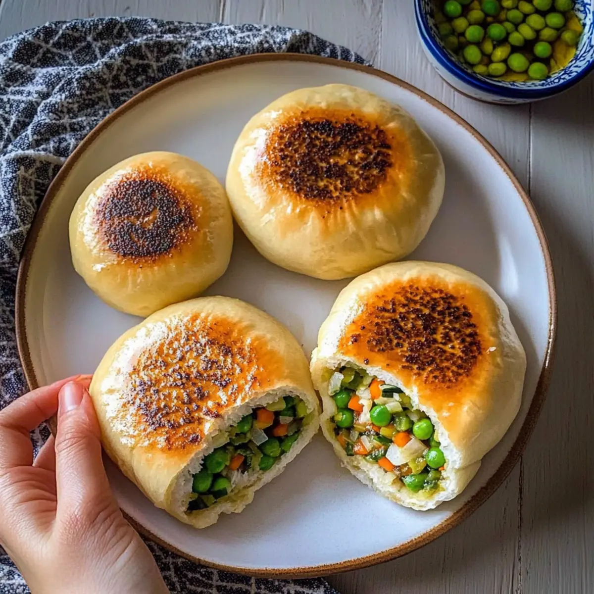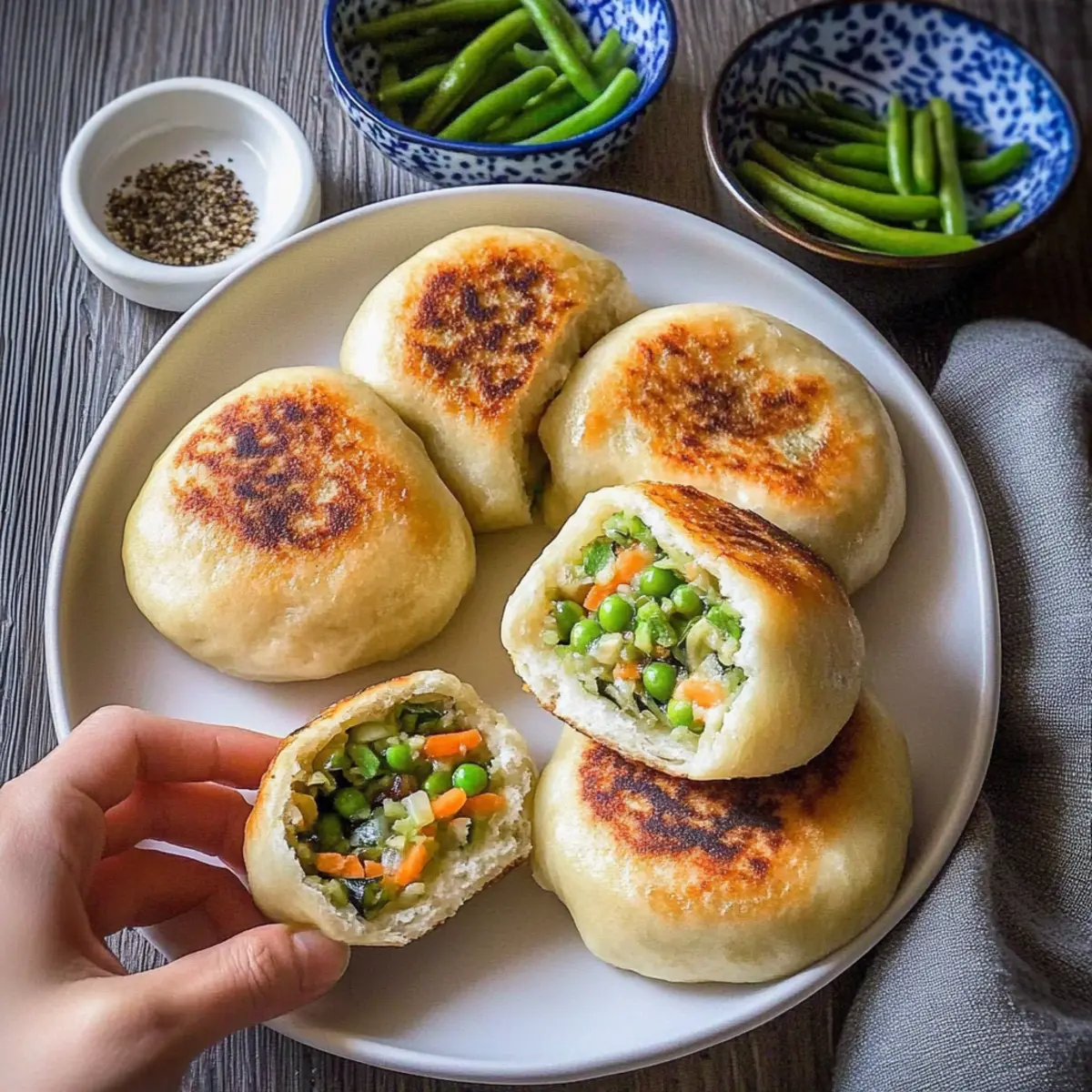 Jump to Recipe Print RecipeAs I stood there in my cozy kitchen, I could feel the warmth of nostalgia washing over me. The aroma of sizzling vegetables and toasty sesame oil transported me to bustling street markets, where vendors dish out crispy, golden delights. This brings us to my latest creation: Crispy Bottom Veggie Buns. These delightful buns are not just a feast for the senses but also a quick and satisfying option for anyone seeking a plant-based snack or appetizer that doesn’t skimp on flavor. The crispy base and lush veggie filling make them a crowd-pleaser for friends and family alike. Plus, they’re incredibly versatile, allowing you to adapt the filling with whatever fresh vegetables you have on hand. Ready to dive into the joy of cooking these flavorful bites? Let’s get started! Why Are These Buns So Irresistible? Crispy texture: The secret lies in their unique preparation, giving you that satisfying crunch with every bite. Flavorful filling: A delightful medley of tofu and fresh veggies ensures each mouthful bursts with savory goodness. Versatile options: Feel free to mix and match your favorite seasonal vegetables or protein substitutes. Quick cooking: Perfect for busy weeknights, these buns come together in no time. For a delicious twist, you might also enjoy making Baked Asparagus Fries as a side dish, or try pairing them with Chickpea Vegetable Nuggets for a fun appetizer spread. Crowd-pleaser appeal: Whether hosting a dinner party or a casual get-together, these buns are bound to impress! Crispy Bottom Veggie Buns Ingredients For the Dough All-Purpose Flour – Forms the structure of the dough; can substitute with gluten-free flour if needed. Hot Boiling Water – Activates the flour for a pliable dough; must be hot for the best texture. Salt – Enhances the flavor in the dough. For the Filling Firm Tofu – Provides a protein base and creaminess when mashed; can replace with mashed black beans for a different flavor. Green Beans – Adds color and crunch; substitute with vegetables like broccoli or bell peppers based on your preference. Carrot – Offers sweetness and texture; you can use other finely chopped vegetables too. Cilantro – Adds fresh flavor; feel free to omit or swap with parsley if desired. Toasted Sesame Oil – Introduces a delightful nutty flavor; can switch to vegetable oil or olive oil for allergies. Salt and White Pepper – Seasoning elements to elevate filling taste. For Cooking Oil for Cooking – Used for frying the buns; a neutral oil like sunflower or canola works best. Sesame Seeds – For garnishing the buns; optional but highly recommended for added crunch and aesthetic. Chopped Green Onion – Adds freshness and flavor; great for serving alongside the buns. These Crispy Bottom Veggie Buns offer a delightful blend of texture and taste, making them a perfect addition to your next meal! Step‑by‑Step Instructions for Crispy Bottom Veggie Buns Step 1: Make the Dough In a large mixing bowl, combine all-purpose flour and a pinch of salt. Create a well in the center and carefully pour in about 1 cup of hot boiling water, stirring continuously until a shaggy dough forms. Transfer the dough onto a floured surface and knead for approximately 10 minutes until it becomes smooth and elastic. Cover it with a damp cloth, allowing it to rest for 30 minutes. Step 2: Prepare Filling While the dough rests, prepare the veggie filling for your Crispy Bottom Veggie Buns. Start by pressing firm tofu to remove excess moisture and then crumble it into a mixing bowl. In a hot skillet, sauté the chopped green beans for 1-2 minutes until slightly tender. Combine the sautéed beans with the crumbled tofu, grated carrot, chopped cilantro, toasted sesame oil, salt, and white pepper, mixing well to create a flavorful filling. Step 3: Form Buns Once the dough has rested, roll it into a log and divide it into 10 equal pieces. Take each piece and flatten it out into a round wrapper. Place a small portion of the veggie filling into the center of each wrapper. Carefully pleat the edges to seal the bun, ensuring it’s tightly closed to avoid spilling during cooking. Optionally, sprinkle sesame seeds on top for added texture. Step 4: Cook Buns Heat a non-stick pan over medium heat and add a few tablespoons of oil. Once hot, arrange the formed buns in the pan, slightly flattening each one with a spatula. Cook for about 3-4 minutes until the bottoms are golden brown. Flip the buns gently, then add enough water to cover about a third of their height. Cover the pan to steam for 3-5 minutes until the water evaporates and the buns are tender. Step 5: Serve Warm Once cooked, carefully transfer the crispy bottom veggie buns to a serving plate. You can garnish them with chopped green onions for an extra pop of flavor. These delightful buns are best enjoyed warm, served with soy sauce or your favorite dipping sauce for a delicious snack or appetizer. Make Ahead Options These Crispy Bottom Veggie Buns are perfect for busy home cooks looking to save time! You can prepare the dough and filling up to 24 hours in advance. Simply make the dough and store it wrapped tightly in plastic wrap in the refrigerator to maintain its texture. The veggie filling can also be made ahead and kept in an airtight container for up to 3 days. When you’re ready to serve, take the dough out to come to room temperature, then form and cook the buns as instructed. This way, you’ll enjoy fresh, warm buns with all their delightful crunch, without the last-minute rush! Crispy Bottom Veggie Buns Variations Feel free to let your culinary creativity flow as you customize these delightful buns to suit your taste buds! Gluten-Free: Substitute all-purpose flour with a gluten-free blend for a celiac-friendly option that still delivers crispiness. Protein Swap: Replace firm tofu with mashed chickpeas for a different flavor profile, adding a bit of earthiness to the filling. Spicy Kick: Add chopped jalapeños