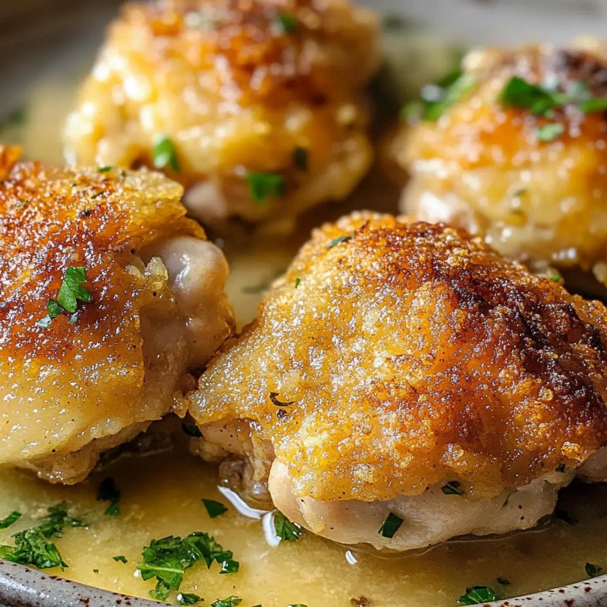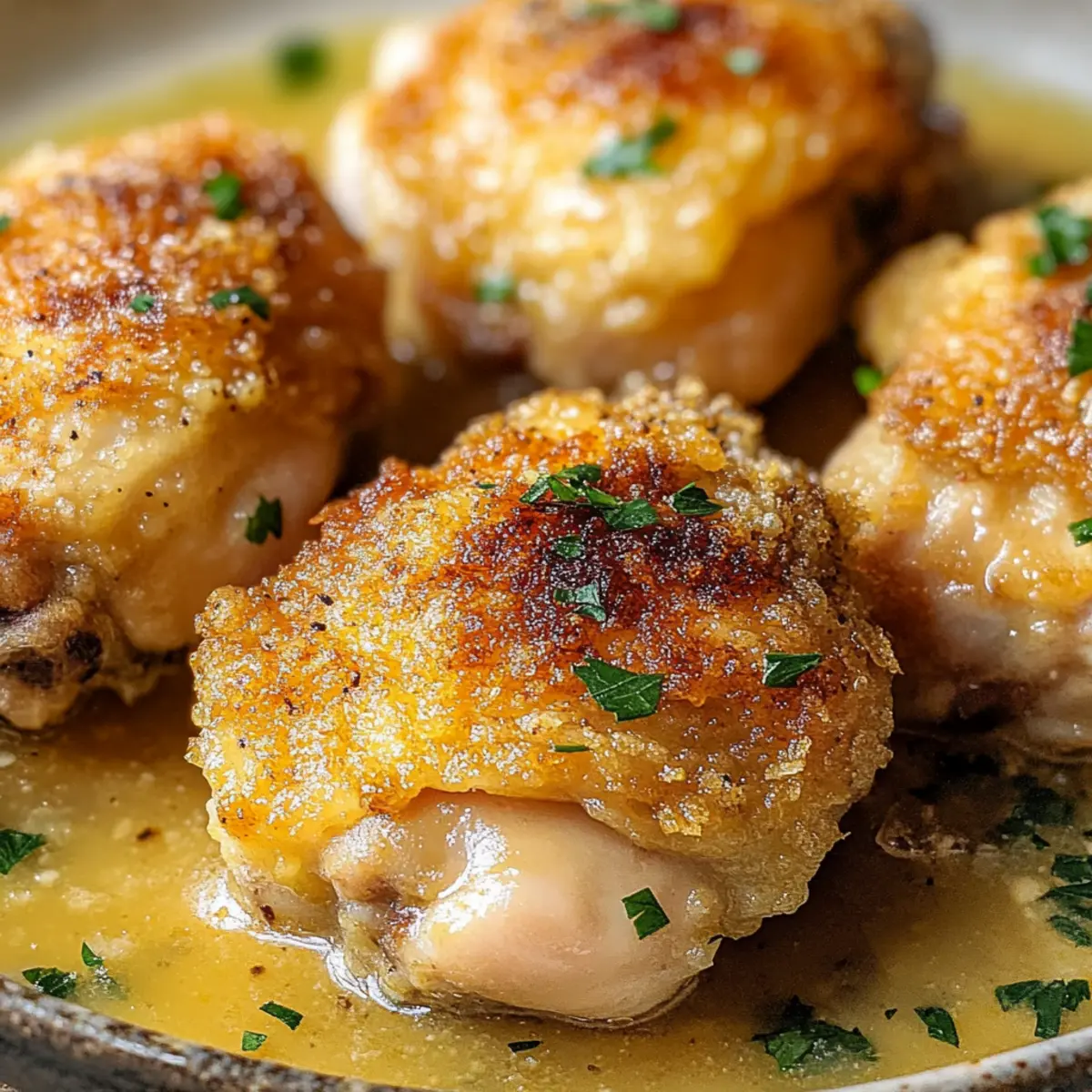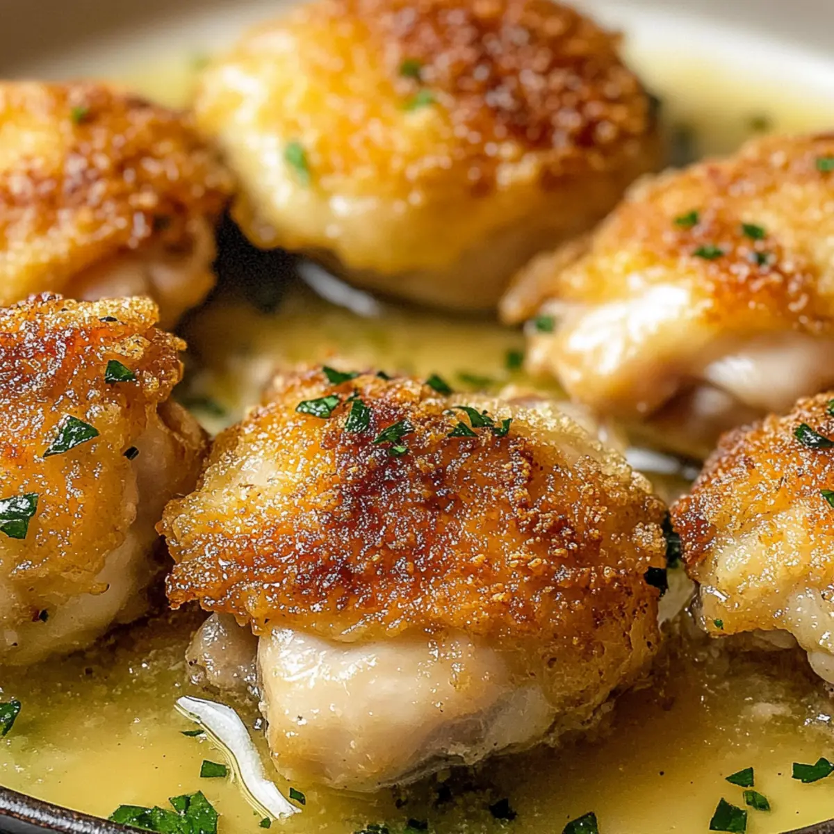Jump to Recipe Print RecipeAs the savory scent of ranch seasoning wafts through my kitchen, I can’t help but smile. Tonight, we’re enjoying Irresistibly Crispy Ranch Chicken Thighs, a dish that’s fast becoming a family favorite at our table. The magic lies in that perfect balance of crispy skin and juicy meat, making this recipe not only a crowd-pleaser but also a quick and easy weeknight meal. Whether you opt for bone-in thighs for extra flavor or choose boneless for speed, the zesty ranch coating creates a delightful flavor experience with every bite. Plus, with gluten-free options available, it’s a dish that everyone can enjoy without compromise. Curious about how to bring this deliciousness to your dinner table? Let’s dive into the crispy goodness! Why Are Crispy Ranch Chicken Thighs a Must-Try? Crispy perfection: Imagine sinking your teeth into juicy chicken thighs, enveloped in a crackling, golden-brown skin that’s bursting with flavor. Quick and easy: This recipe is perfect for busy weeknights, transforming simple ingredients into an unforgettable meal in under an hour. Adaptable options: Whether you prefer bone-in for a robust taste or boneless for a speedy cook, there’s a version for everyone. Flavor explosion: The zesty ranch seasoning elevates the dish, alongside garlic and smoky paprika, making every bite a delight. Gluten-free alternative: Enjoy this recipe worry-free, as it caters to various dietary needs while still delivering on taste. Pair with a refreshing salad or roasted vegetables for a well-rounded meal! Crispy Ranch Chicken Thighs Ingredients Get ready to create a flavor-packed delight! For the Chicken • Chicken Thighs – Juiciness and flavor base for the dish; boneless thighs can be used for quicker cooking times. For the Coating • Ranch Seasoning – Provides the signature tangy flavor; consider using a homemade mix for a personal touch. • Olive Oil – Aids in crisping the skin while cooking; substitute with melted butter or bacon fat for extra richness. • Garlic Powder – Essential for aroma and taste, enhancing the overall seasoning blend. • Smoked Paprika – Adds a subtle smoky depth; can be replaced with regular paprika if needed. • Cayenne Pepper (optional) – Introduces a spicy element; adjust to your heat preference for the Crispy Ranch Chicken Thighs. With just these key ingredients, you’re on your way to an irresistible dinner that will have everyone asking for seconds! Step‑by‑Step Instructions for Crispy Ranch Chicken Thighs Step 1: Preheat the Oven Begin by preheating your oven to 425°F (220°C). This high temperature is crucial for achieving the crispy skin and juicy meat that characterize your Crispy Ranch Chicken Thighs. Preheating ensures that the chicken will cook evenly, so take your time with this step while you prepare the chicken. Step 2: Prepare the Chicken Pat the chicken thighs dry using paper towels, removing excess moisture that could hinder crispiness. Ensuring the surface is dry helps achieve that glorious golden-brown crust as the chicken bakes in the oven. This quick step is vital for the best texture and flavor in your Crispy Ranch Chicken Thighs. Step 3: Season the Chicken In a mixing bowl, combine olive oil and your ranch seasoning mix. Toss the chicken thighs in this flavorful blend, making sure each piece is evenly coated. This seasoning not only infuses the chicken with a zesty kick but also promotes crispiness in the oven. Ensure every inch of the chicken thighs is covered for maximum flavor! Step 4: Arrange on Baking Sheet Line a baking sheet with parchment paper or aluminum foil for easy cleanup. Place the seasoned chicken thighs on the sheet, skin-side up, ensuring they are spaced apart to allow even cooking. This arrangement helps the hot air circulate around each thigh, contributing to that beautiful, crispy exterior you’re aiming for with your Crispy Ranch Chicken Thighs. Step 5: Bake the Chicken Slide the baking sheet into the oven and bake the chicken for 35-40 minutes. Keep an eye on it as it cooks; the skin should turn a rich, golden-brown color when done. Use a meat thermometer to check that the internal temperature has reached 165°F (73.9°C) for safe eating. This is the perfect time to prepare any sides you wish to serve! Step 6: Rest & Serve Once fully cooked, remove the chicken from the oven and let it rest for a few minutes. This allows the juices to redistribute within the meat, preventing dryness. After resting, serve your Crispy Ranch Chicken Thighs with your favorite sides, such as roasted vegetables or a fresh salad, and delight in the deliciousness! What to Serve with Irresistibly Crispy Ranch Chicken Thighs Create a well-rounded meal that elevates the flavorful experience of crispy chicken thighs! Creamy Mashed Potatoes: These buttery, smooth potatoes soak up the savory juices from the chicken, creating a comforting side that’s hard to resist. Garlic Roasted Broccoli: With its tender-crisp texture and garlic aroma, this veggie side adds a fresh note, balancing the richness of the chicken. Zesty Coleslaw: A crunchy, tangy coleslaw complements the crispy chicken beautifully, adding a refreshing crunch with every bite. This playful texture contrast makes each mouthful delightful. Cornbread Muffins: Sweet, moist cornbread muffins are perfect for sopping up any sauce or juices leftover on your plate. Plus, they provide a lovely sweetness that balances the savory chicken. Refreshing Cucumber Salad: Bright and crisp, this salad adds a burst of freshness to your meal. Tossed in a light vinaigrette, it serves as a delightful palate cleanser between bites of rich chicken. Icy Lemonade: Keep it cool with icy lemonade that complements the savory flavors of the chicken perfectly—its bright acidity and sweetness are incredibly refreshing. Savory Green Beans Almondine: These sautéed green beans with toasted almonds elevate the meal, adding contrast with their crispy texture