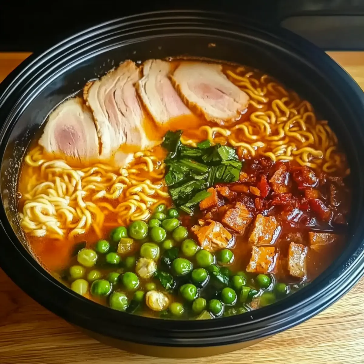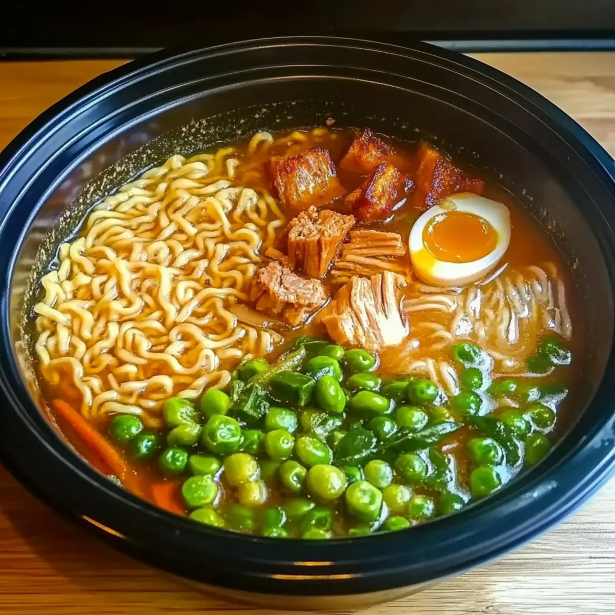 Jump to Recipe Print RecipeA gentle hum of the Crock Pot in the corner of my kitchen is a comforting sound, signaling a hearty meal coming together effortlessly. Today, I’m excited to share my take on Crock Pot Ramen—a bowl of pure warmth that transforms a busy evening into something special. With just five simple ingredients, this recipe is customizable to fit your family’s preferences, whether you prefer chicken, beef, or tofu as your protein. Not only does it promise a low-effort preparation, but it also delivers a healthier alternative to takeout, packed with vibrant vegetables and a rich, savory broth. As the aromas fill the kitchen, I can’t help but wonder: what creative twist will you add to your own bowl of ramen? Why Is Crock Pot Ramen a Must-Try? Comforting Simplicity: This recipe only requires five ingredients, making it a breeze to whip up on busy nights. Customizable Taste: Select your favorite protein and vegetables, easily tailoring each bowl to everyone’s preferences. Hearty Nutrition: Packed with fresh veggies and wholesome noodles, it provides a healthier alternative to fast food. Time-Saving Magic: Let the Crock Pot do the work while you enjoy your evening, cooking for four hours with minimal effort. Family-Friendly Favorite: Kids and adults alike will love this dish, turning mealtime into a joyous and shared experience. If you’re looking for more quick and satisfying meals, check out this delightful Crock Pot Cheeseburger or a comforting Sweet Potato Breakfast! Crock Pot Ramen Ingredients • Create your own delicious bowl with these essential ingredients! For the Broth Chicken Broth – This savory base enhances the ramen flavor; opt for low-sodium for a healthier choice. Soy Sauce – Adds a rich umami depth to your broth; consider using tamari for a gluten-free version. For the Noodles Ramen Noodles – The heart of this dish; use straight ramen noodles without seasoning packets for best results. For the Veggies Mixed Vegetables (e.g., bok choy, bell peppers, carrots) – Fresh veggies bring nutrition and color to your bowl; choose seasonal produce for optimal flavor. For the Protein Protein (chicken, pork, beef, or tofu) – Choose your favorite protein to make the dish satisfying and tailored to your dietary needs. Feel free to experiment with different broths or add spice for a unique take on your Crock Pot Ramen! Step‑by‑Step Instructions for Crock Pot Ramen Step 1: Prepare Cookware Begin by spraying the inside of your Crock Pot with non-stick cooking spray to ensure easy cleanup later. This small step prepares your pot to hold all the delicious ingredients you’re about to add, making it a vital part of your Crock Pot Ramen experience. Step 2: Combine Broth and Protein Pour 4 cups of chicken broth into the slow cooker, creating a warm and savory base for your ramen. Next, add your choice of protein—chicken, pork, beef, or tofu—ensuring it’s evenly submerged in the broth. This layering of flavors will set the stage for a hearty meal. Step 3: Add Vegetables and Season Gently stir in 2 cups of your pre-chopped mixed vegetables, such as bok choy, bell peppers, or carrots, and pour in 2 tablespoons of soy sauce. This combination not only adds vibrant color but also boosts nutritional value, ensuring your Crock Pot Ramen is both delicious and nourishing. Step 4: Slow Cook Cover the Crock Pot and set it on low heat for 4 hours. As it cooks, the ingredients will meld beautifully, transforming into a rich and inviting broth. Keep an eye on the clock and let the magic happen while you enjoy your evening! Step 5: Cook Noodles After 4 hours, it’s time to introduce the ramen noodles to the party! Add the noodles directly into the broth and let them cook for an additional 10-15 minutes. Stir occasionally, ensuring they become tender but not mushy—perfectly cooked noodles are key to the ultimate Crock Pot Ramen. Step 6: Serve Once the noodles are tender, taste your delightful Crock Pot Ramen and adjust the seasoning if needed. Ladle the steaming soup into bowls and garnish with optional toppings like sliced green onions or sesame seeds for that extra flair. Get ready to savor each warm and comforting bite! What to Serve with Crock Pot Ramen Elevate your meal experience with delightful sides and drinks that perfectly complement your comforting bowl of ramen. Soft-Boiled Eggs: These rich, creamy eggs add a luxurious texture and taste, enhancing the overall flavor profile of your ramen. Drizzle with soy sauce for an extra umami hit! Cucumber Salad: Light and refreshing, a crisp cucumber salad with sesame dressing brings a lovely crunch and balances the warm, savory broth of the ramen. Spicy Edamame: Serving spicy edamame gives a fun pop of flavor that pairs wonderfully with the hearty richness of the ramen. The added spice will awaken your taste buds in a delightful way. Apple Slices with Peanut Butter: For a sweet contrast, serve crisp apple slices dipped in creamy peanut butter. This combination delights with its crunchy and smooth textures. Green Tea: A steaming cup of green tea adds a soothing touch that complements the umami notes of your broth. It’s not just refreshing but also enhances the meal experience. Mochi Ice Cream: For dessert, treat yourself to sweet, chewy mochi ice cream. The flavors will contrast beautifully against your savory ramen, leaving your palate satisfied and delighted. How to Store and Freeze Crock Pot Ramen Fridge: Store leftovers in an airtight container for up to 3 days. This helps maintain the flavors and keeps everything fresh for your next meal. Freezer: For longer storage, freeze the broth and vegetables together without the noodles for up to 1 month. This keeps everything tasting great when reheated. Reheating: Thaw in the fridge overnight, then reheat on the stovetop or in the microwave. Add freshly cooked ramen noodles to your reheated broth for perfect texture. Avoid Overcooking: When reheating, warm the broth