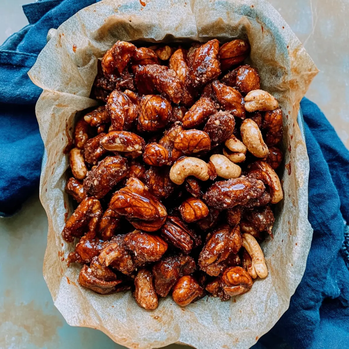Jump to Recipe Print RecipeIn a cozy corner of my kitchen, the warm, aromatic blend of spices danced through the air, wrapping me in a nostalgic embrace. These Weasleys’ Dragon Roasted Nuts invite you to embark on a flavorful adventure with a magical mix of cashews, almonds, pecans, and more, all finished with a touch of honey. Perfect for anyone craving a quick, crowd-pleasing snack, this gluten-free recipe is ideal for gatherings or a cozy night in. Plus, it’s delightfully versatile—feel free to swap in your favorite nuts or spice levels to match your taste! Are you ready to take your snacking to the next level? Why are Dragon Roasted Nuts irresistible? Crunchy, Flavor-Packed Delight: These Weasleys’ Dragon Roasted Nuts are the perfect snack—combining warm spices and a hint of sweetness that will have your taste buds singing. Versatile Varieties: With options for nut substitutions, you can create your own blend according to what you have on hand or what you love best. Crowd-Pleasing Snack: Whether for game day or a cozy gathering at home, these nuts are sure to be a hit with everyone, young and old. Quick to Prepare: Spend just a few minutes mixing and baking—perfect for busy days when you need a delicious snack in no time. Healthier Snacking: Gluten-free, refined sugar-free, and Paleo-friendly, these nuts make for a guilt-free indulgence that’s both tasty and nutritious. Harness the magic of flavor by trying these alongside other delights like Radish Salad Roasted or pair with our delightful Blueberry Cake Donuts for a perfect gathering spread! Dragon Roasted Nuts Ingredients • Gather everything for your fiery snack! For the Nut Blend Cashews – Adds creaminess and crunch. Substitution: Can use macadamia nuts for a richer flavor. Almonds – Provides a robust nutty flavor and crunch. Substitution: Can be replaced with hazelnuts or Brazil nuts. Pecans – Contributes richness and a chewy texture. Substitution: Can substitute with walnuts for a similar texture. Walnuts – Offers slight bitterness and depth. Substitution: Leave out if not preferred. Peanuts – Adds sweetness and a classic nut flavor. Substitution: Omit for a strict Paleo version; replace with an extra crunchy nut. For the Sweet Coating Honey – Sweetens and helps bind the spices to the nuts. Substitution: Maple syrup can be used as a vegan alternative. Egg White – Acts as a binder for the spices and nuts. Substitution: Use aquafaba whipped until frothy for an egg-free version. For the Spice Medley Cinnamon – Brings warmth and sweetness to the blend. Ginger – Adds a zesty kick that pairs perfectly with honey. Cloves – Introduces a rich, aromatic depth. Cumin – Provides a savory contrast to the sweetness. Chili Powder – Adds a mild heat that enhances flavor complexity. Red Pepper Flakes – Offers a touch of fiery warmth. Black Pepper – A little bite that elevates the overall profile. Cayenne Pepper – Delivers a spicy punch; adjust to taste! Note: Adjust spice levels according to personal heat preference. With these Dragon Roasted Nuts ingredients, you’re all set to embark on a crunchy, flavorful adventure that’s sure to please everyone! Step‑by‑Step Instructions for Weasleys’ Dragon Roasted Nuts Step 1: Preheat Oven Preheat your oven to 350°F (175°C) to ensure it reaches the perfect roasting temperature. While the oven warms up, gather your mixing bowls and baking sheet lined with parchment paper. This preparation will set the stage for your tasty Dragon Roasted Nuts. Step 2: Prepare Nuts In a large mixing bowl, combine your choice of nuts, such as cashews, almonds, pecans, walnuts, and peanuts. The blend provides a delightful texture and flavor. Stir gently to mix them thoroughly, making sure you have a variety of shapes and sizes for a beautifully crunchy final result. Step 3: Make Spice Mixture In a separate bowl, whisk together the honey, egg white (or your egg alternative), and a medley of spices, including cinnamon, ginger, cloves, and chili powder. Mix until you achieve a smooth, well-blended consistency. This fragrant coating will elevate your Dragon Roasted Nuts with warmth and sweetness. Step 4: Coat Nuts Pour the spice mixture over your prepared nuts and use a spatula or your hands to ensure each nut is evenly coated. This step is crucial for achieving that flavorful crunch that makes these Dragon Roasted Nuts irresistible. Take your time to coat each nut perfectly. Step 5: Spread on Baking Sheet Transfer the coated nuts onto the lined baking sheet, spreading them into an even layer. This allows for uniform roasting and prevents the nuts from clumping together. If needed, gently rearrange any nuts that are stuck together for optimal baking results. Step 6: Bake Roast the nuts in your preheated oven for 30-45 minutes, stirring every 15 minutes to promote even cooking. You’ll know they’re done when they are golden brown and emit a delightful nutty aroma. Keep an eye on them to prevent burning, especially due to the spices. Step 7: Cool Once the nuts are perfectly roasted, remove the baking sheet from the oven and allow them to cool completely. Leaving them on the sheet helps to maximize their crunchiness, transforming your Dragon Roasted Nuts into a snack that’s hard to resist. Storage Tips for Dragon Roasted Nuts Room Temperature: Store your Dragon Roasted Nuts in an airtight container at room temperature for up to 2 weeks, keeping them crunchy and fresh. Fridge: If you prefer a longer shelf life, you can refrigerate the nuts for up to 1 month. Make sure they are sealed tight to prevent moisture. Freezer: For even longer storage, freeze the Dragon Roasted Nuts in a freezer-safe bag or container for up to 3 months. Thaw at room temperature before enjoying. Reheating: If you want to refresh the crunch, briefly reheat the nuts in the oven at 300°F (150°C) for about 5-10 minutes, ensuring they don’t burn. Expert Tips for Dragon Roasted Nuts Nut Selection: Cho