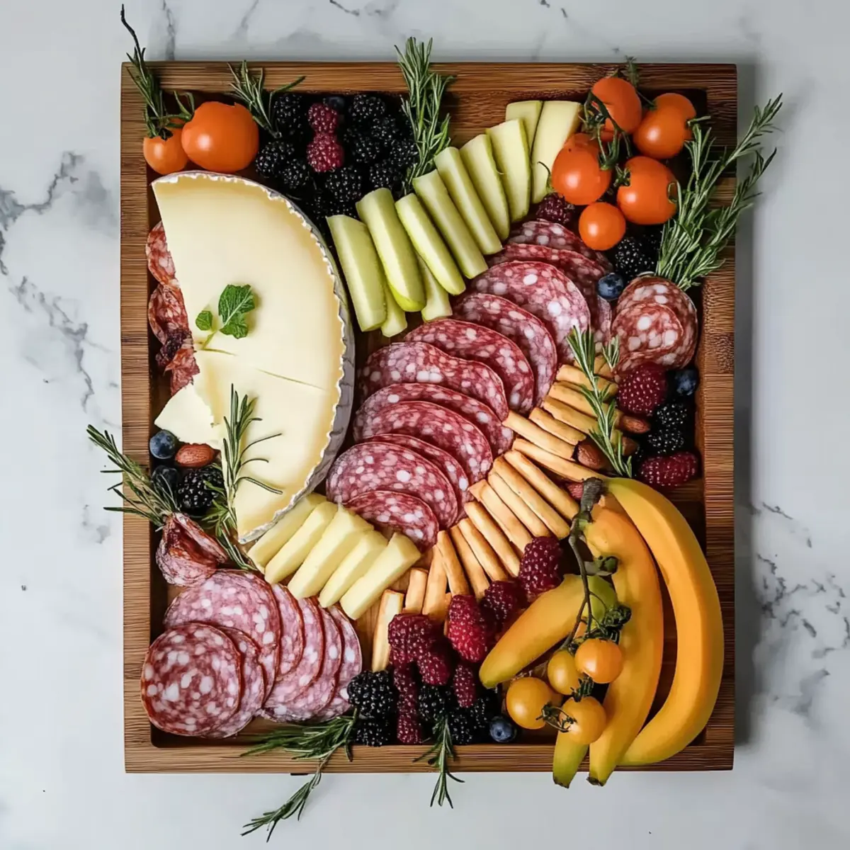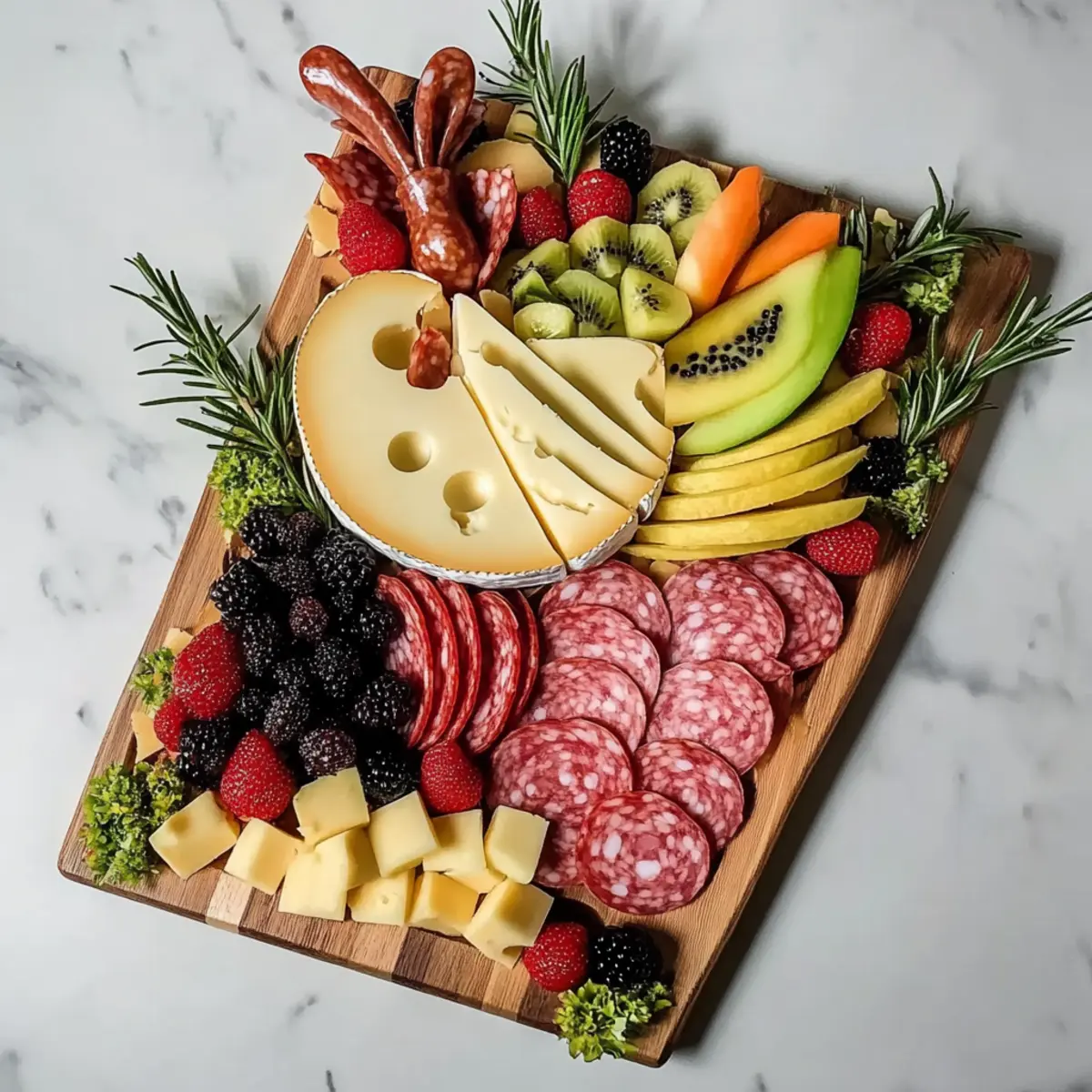 Jump to Recipe Print RecipeSpring has arrived, and with it comes the delightful chance to gather with loved ones over a beautiful spread! As I was preparing for our Easter celebration, I felt inspired to create an Easter Charcuterie Board that would not only be eye-catching but also incredibly easy to assemble. This festive display perfectly balances sweet and savory elements, allowing everyone to graze and enjoy at their leisure. Plus, it’s a wonderful way to showcase seasonal fruits and vibrant colors that will leave your guests in awe. Whether you’re a seasoned home chef or just looking to elevate your holiday table, these charcuterie ideas are sure to impress. So, are you ready to unlock the secrets to assembling a stunning spread that captures the joy of the season? Why is this Easter Charcuterie Board a Must-Try? Visual Appeal: This board is a feast for the eyes, showcasing a rainbow of colors and textures. Easy Assembly: Forget complicated recipes! This charcuterie board comes together quickly and effortlessly, making it perfect for busy hosts. Crowd-Pleasing: With a mix of flavors, it caters to everyone—vegetarians, meat lovers, and sweet-tooths alike. Seasonal Freshness: Celebrate spring using seasonal fruits and herbs that bring the essence of the season right to your table. Versatile Themes: Customize your board with various themes, from classic elegance to playful festive hints, making each gathering unique. Elevate your gathering with a stunning spread that combines the joy of Easter with a delightful culinary experience! For more tips on creating visual masterpieces in the kitchen, check out my post on beautifully arranged cheese boards. Easter Charcuterie Board Ingredients • Delight in assembling your festive spread with these essential elements that will make your Easter Charcuterie Board truly shine! For the Cheese Brie – Creamy and luxurious, perfect for spreading on crackers. Cheddar – A sharp contrast that adds depth of flavor to your board; try aged cheddar for an extra punch. For the Meats Salami – Salty and slightly spicy, it adds a savory touch to each bite. Prosciutto – Thin and delicate, it pairs beautifully with sweet fruits for balance. For the Fruits Grapes – Sweet and juicy, these are ideal for quick snacking and add great color. Berries – Raspberries or strawberries bring a vibrant touch and fresh flavor; they’re also low in calories. Apples – Crisp and refreshing, perfect for balancing the richness of cheese and meats. For the Vegetables Carrots – Bright orange and crunchy, they offer a satisfying texture and pair well with dips. Cucumbers – Cool and crisp, they add a refreshing crunch, balancing the richness of other ingredients. For the Crackers/Bread Assorted Crackers – Choose a variety to offer different textures and flavors; whole grain often adds a nutty note. Bread Sticks – Great for dipping and adding a rustic element to your board. For the Dips Hummus – Creamy and flavorful, perfect for pairing with veggies or spreading on crackers. Jams – Sweet jams like fig or raspberry enhance both cheese and meats wonderfully. For the Garnish Edible Flowers – Add a pop of color and sophistication to your board; they’re a delightful way to elevate presentation. Fresh Herbs – Rosemary or thyme not only boosts the visual appeal but also adds fragrant notes to your spread. With these ingredients at your fingertips, you’re well on your way to crafting a stunning Easter Charcuterie Board that is both festive and delicious! Step‑by‑Step Instructions for Easter Charcuterie Board Step 1: Prepare Your Board Begin by selecting a large wooden or marble serving board as the canvas for your Easter Charcuterie Board. Ensure it’s clean and dry, as this will showcase your colorful ingredients beautifully. If you like, you can line the board with parchment paper for easy cleanup. Aim for a size that allows plenty of room for arrangement without overcrowding. Step 2: Arrange the Cheeses Place the larger items, such as wedges of Brie and blocks of Cheddar, in the center of your board first. Cut a few slices from the cheeses to entice guests and create a fresh, inviting look. Aim for a variety of shapes and heights to add visual interest. The cheeses will serve as focal points for your Easter Charcuterie Board, so make sure they are easily accessible from all sides. Step 3: Add the Meats Next, take your salami and prosciutto, and arrange them creatively around the cheese portion. You can fold the salami into quarters or create lovely pinwheels with prosciutto for an eye-catching display. The rich, savory elements of the meats will complement the cheeses beautifully, introducing both flavor and texture variations. Leave some space for other ingredients to keep the board from feeling cluttered. Step 4: Fill in with Fruits and Vegetables Now, it’s time to add color! Cluster grapes, berries, and apple slices strategically in the gaps between cheese and meats. For vegetables, insert carrot sticks and cucumber slices in the mix; their crunch and freshness will balance out the richness of the board. Consider varying the colors and textures to create a vibrant presentation that draws the eye—each element should shine. Step 5: Incorporate Crackers and Bread Around the edges of your Easter Charcuterie Board, layer an assortment of crackers and breadsticks. Opt for gluten-free options if needed, and arrange them in small stacks or fanned out for easy grabbing. This will encourage guests to explore and enjoy combinations of cheese and meats with the crunchy elements of the board. Step 6: Add Dips and Garnishes In small bowls, pour your chosen dips, such as creamy hummus or sweet jam, and place these strategically across the board. Sprinkle in some edible flowers or fresh herbs like rosemary in empty spots to enhance the presentation with fresh aromas and vibrant colors. The dips not only elevate flavors but also add moisture, making every 