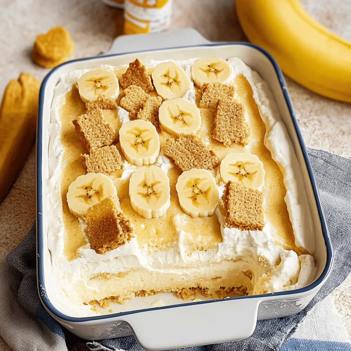 Jump to Recipe Print RecipeIn the heart of every southern kitchen lies a treasure, and I’m excited to share mine: the Ultimate Classic Banana Pudding. This easy banana pudding is a light, no-bake dessert that’s perfect for any gathering, making it a true crowd-pleaser. With layers of creamy vanilla pudding, ripe bananas, and crunchy vanilla wafers, this recipe is not only simple to prepare but also skips the fuss of cooking. You’ll love how quickly it comes together, allowing you to spend more precious time with loved ones around the table. And let’s not forget—it’s a family-friendly treat that pleases even the pickiest eaters. Curious to learn just how easy it is to whip up this delightful dish? Let’s dive into the recipe! Why Is This Banana Pudding So Special? Simplicity: This recipe boasts an easy, no-bake preparation that allows you to create a stunning dessert with minimal effort. Crowd-Pleasing: With its light, fluffy layers of pudding bursting with ripe bananas and crunchy vanilla wafers, it’s a classic that everyone adores. Versatile Additions: Feel free to mix it up by adding Chessman cookies or drizzling caramel sauce for a touch of luxury. Make-Ahead Magic: Ideal for busy days, assembling it the night before allows flavors to meld beautifully, saving you time on the day of your event. Family Favorite: It’s a dessert that caters to all ages, ensuring even the pickiest eaters will be reaching for seconds! For more delicious recipes that are just as easy, check out this delightful Banana Pudding Parfait or try a refreshing Watermelon Banana Smoothie alongside your pudding! Easy Banana Pudding Ingredients For the Pudding Cold Milk – This is the liquid base for your pudding; feel free to substitute oat or almond milk for a dairy-free option. Instant Pudding Mix – The key to a creamy texture and sweet flavor; consider using vanilla or French vanilla for a twist. Sweet Condensed Milk – Adds a rich, sweet depth that makes this easy banana pudding unforgettable. Cream Cheese – Essential for creaminess; remember to soften it for easier mixing! Vanilla Extract – It elevates the flavor to new heights; don’t skip this ingredient! Cool Whip – Provides a light, fluffy finish; homemade whipped cream can even be used for a fresher taste. For the Layers Vanilla Wafers – These iconic cookies create the beautiful layers; use a mix of whole and crushed for texture. Ripe Bananas – The star of this dessert; choose bananas that are just ripe for the best flavor in your easy banana pudding. Chessman Cookies (optional) – These add a delightful crunch and a unique twist to your dessert. Caramel Sauce (optional) – Drizzle this on top right before serving for an extra layer of sweetness that impresses everyone! Now that you have all the ingredients, you’re just a whisk and a layer away from creating this crowd-pleasing dessert that will have your guests raving! Step‑by‑Step Instructions for Easy Banana Pudding Step 1: Combine the Base In a large mixing bowl, whisk together 2 cups of cold milk and the instant pudding mix for about 2 minutes, or until fully blended and creamy. The mixture should look thick and smooth. Cover the bowl with plastic wrap and refrigerate for at least 30 minutes to allow it to set while you prep the other ingredients. Step 2: Mix the Creamy Filling In a separate bowl, beat together the sweet condensed milk, softened cream cheese, and vanilla extract using an electric mixer until fully combined and smooth, which will take about 2-3 minutes. Once mixed, gently fold in 8 ounces of Cool Whip until the filling is light and fluffy, ensuring all ingredients are well incorporated without deflating the whipped cream. Step 3: Assemble the Layers Grab a 9×13-inch dish and start layering. Begin by placing one-third of the whole vanilla wafers on the bottom, followed by half of the crushed cookies. Spoon one-third of the creamy pudding mixture over the wafers, spreading it evenly with a spatula for a smooth surface. Step 4: Add the Bananas Next, layer half of the ripe banana slices over the pudding, distributing them evenly. After that, add a layer of the remaining whole vanilla wafers, positioning them neatly for a beautiful presentation. This combination of flavors adds freshness and texture to your easy banana pudding. Step 5: Repeat the Layering Continue layering by repeating the previous steps: add another third of the pudding mixture, then the rest of the banana slices, and finally the remaining crushed cookies. Finish with a final layer of pudding on top, smoothing it out for an inviting look. This process creates the deliciously tempting layers everyone loves in banana pudding. Step 6: Chill for Perfection Cover the assembled banana pudding with plastic wrap and refrigerate overnight. Chilling allows the flavors to meld beautifully, resulting in a perfectly set dessert. When you’re ready to serve, the pudding should be firm yet creamy, with a lovely bounce when gently tapped. Step 7: Garnish and Serve Before serving, take the pudding out of the refrigerator and optionally garnish the top with whole vanilla wafers, Chessman cookies, and a drizzle of caramel sauce for an extra touch of indulgence. This finishing touch not only enhances the presentation but adds a delightful crunch to each serving of your easy banana pudding. Expert Tips for Easy Banana Pudding Chill Overnight: Ensure you refrigerate the pudding overnight to allow the flavors to meld and develop fully. Skipping this step may lead to a less flavorful dessert. Use Ripe Bananas: Opt for fully ripe, slightly speckled bananas for your easy banana pudding. They provide the best balance of sweetness and flavor for your dessert. Layer Wisely: Distribute the pudding and cookie layers evenly; this ensures that every serving has a delightful mix of flavors and textures. Avoid overcrowding layers, which can lead to uneven setting. Crispy Wafers: For the best texture, add whole vanilla
