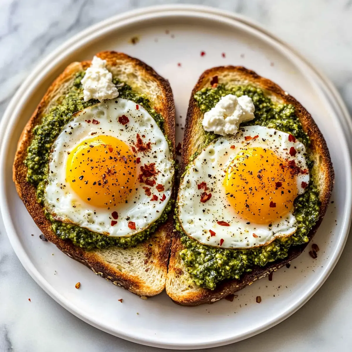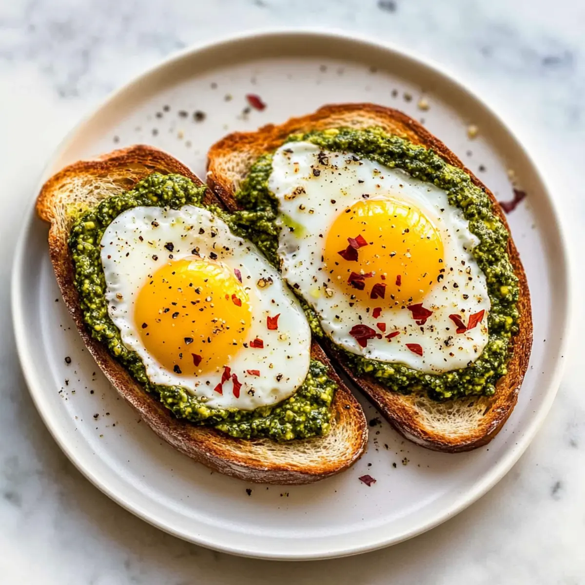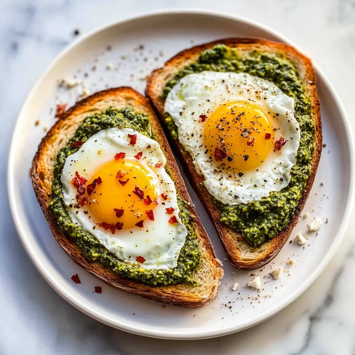 Jump to Recipe Print RecipeAs I was fiddling with jars of vibrant green pesto, a burst of inspiration hit me. What if I combined those herby flavors with morning’s quintessential delight—eggs? Enter Easy Pesto Eggs on Toast, a quick breakfast that has become my go-to for busy mornings. This dish transforms simple sunny-side-up eggs into a savory masterpiece, nurtured in a fragrant layer of pesto. With just minutes of prep, you can savor a satisfying brunch that rivals any café offering. Plus, it’s easily customizable; feel free to swap goat cheese for creamy avocado for a dairy-free twist. If you’re on the hunt for a fuss-free, crowd-pleasing meal that’s both healthy and delicious, stick around—your taste buds are in for a treat! Why Are Easy Pesto Eggs a Must-Try? Simplicity at its Best: This recipe takes minutes to prepare, making it ideal for busy mornings. Rich, Savory Flavor: Combining fresh eggs with aromatic pesto creates a delightful taste explosion that brightens your breakfast. Versatile Options: Easily customize these eggs with your favorite toppings, like avocado for a dairy-free version or sriracha for a spicy kick. Healthy & Delicious: Packed with protein and healthy fats, these Easy Pesto Eggs keep you satisfied without the guilt. Pair them with a refreshing side like Cucumber Sandwiches Refreshing for a complete brunch! Easy Pesto Eggs Ingredients • Let’s gather the essentials for these mouthwatering Easy Pesto Eggs! For the Base Pesto – Adds a rich, herby flavor; you can substitute with homemade or any herb sauce you prefer. Eggs – Provides protein and structure; fresh eggs yield the best results. Kosher Salt – Enhances flavor; adjust to taste, and feel free to use sea salt as an alternative. Ground Black Pepper – Adds mild heat; freshly cracked pepper is recommended for better flavor. Red Pepper Flakes – For a hint of heat; omit if you prefer a milder taste. For Serving Sourdough Bread – Serves as a delicious base; can be substituted with gluten-free bread for dietary needs. Goat Cheese – Offers creaminess and tang; swap it with mashed avocado for a dairy-free option. With these ingredients, you are all set to whip up your own Easy Pesto Eggs, ensuring a quick, satisfying breakfast every time! Step‑by‑Step Instructions for Easy Pesto Eggs Step 1: Heat the Pan Begin by placing a medium-sized frying pan over medium heat. Add about three tablespoons of your vibrant pesto to the pan and let it warm up for 1-2 minutes. Stir occasionally until the pesto is fragrant and starts to bubble slightly, ensuring it coats the bottom of the pan evenly and creates a flavorful base for your Easy Pesto Eggs. Step 2: Add the Eggs Carefully crack two fresh eggs directly into the warm pesto, ensuring not to break the yolks. Season the eggs with a pinch of kosher salt, freshly cracked black pepper, and a sprinkle of red pepper flakes for an added kick. Let them cook undisturbed for about 4-5 minutes, or until the egg whites turn opaque and the edges begin to crisp up, while the yolks remain runny and golden. Step 3: Toast the Bread While the eggs are cooking, take two slices of sourdough bread and toast them to your desired level of crispness. You can use a toaster or a separate pan; either way, aim for a golden-brown finish. Once toasted, spread a generous layer of rich goat cheese onto the warm bread, allowing it to melt slightly for added creaminess, enhancing your Easy Pesto Eggs. Step 4: Combine and Serve Once the eggs have reached your preferred doneness, gently slide them onto the prepared sourdough toast, spooning some of the flavorful pesto over the top. The dish should look vibrant and inviting, with the creamy yolks nestled in the herby sauce. Serve your Easy Pesto Eggs immediately to ensure they maintain their beautiful texture and warmth, and get ready to enjoy a delightful breakfast! What to Serve with Savory Easy Pesto Eggs on Toast? Elevate your breakfast game by pairing these delightful eggs with scrumptious sides that complement their rich, herby flavors. Fresh Fruit Salad: A medley of seasonal fruits adds a refreshing balance to the savory elements of the dish, invigorating your palate with every bite. Mixed Greens Salad: A light salad with a zesty vinaigrette provides a crunchy contrast, enhancing the meal’s overall texture and leaving you feeling nourished. Avocado Toast: For an extra creamy experience, top another slice of bread with smashed avocado, creating layers of flavor and texture that harmonize beautifully. Crispy Hash Browns: Golden brown, crispy hash browns offer a satisfying crunch, complementing the soft eggs while providing a hearty touch to your brunch. Roasted Tomatoes: Juicy, roasted cherry tomatoes bring a sweet acidity, harmonizing with the pesto’s herbs while adding a splash of color to your plate. Smoothie: A chilled, fruity smoothie is a perfect drink to wash down this savory breakfast, refreshing your senses without overpowering the flavors of the eggs. Herbed Yogurt Dip: Lightly seasoned Greek yogurt served as a dip can add a tangy touch, bringing out the pesto’s flavors while fostering a delightful creaminess. Coffee or Herbal Tea: Sip on a rich, aromatic coffee or a soothing herbal tea to complete your breakfast, enhancing your morning experience with warmth and comfort. Make Ahead Options These Easy Pesto Eggs are perfect for meal prep enthusiasts looking to save time on busy mornings! You can whisk together your eggs and seasonings and refrigerate them for up to 24 hours in advance, ensuring your morning is breezy and effortless. The pesto can also be prepared ahead and stored in the fridge for up to 3 days, just remember to keep it covered to maintain freshness and flavor. To finish, simply warm the pesto in a pan, crack in your prepared eggs, and cook until done. This way, you’ll have a delightful breakfast ready in a matter of minutes, bringing the joy of homemade meals to your mornings with minimal