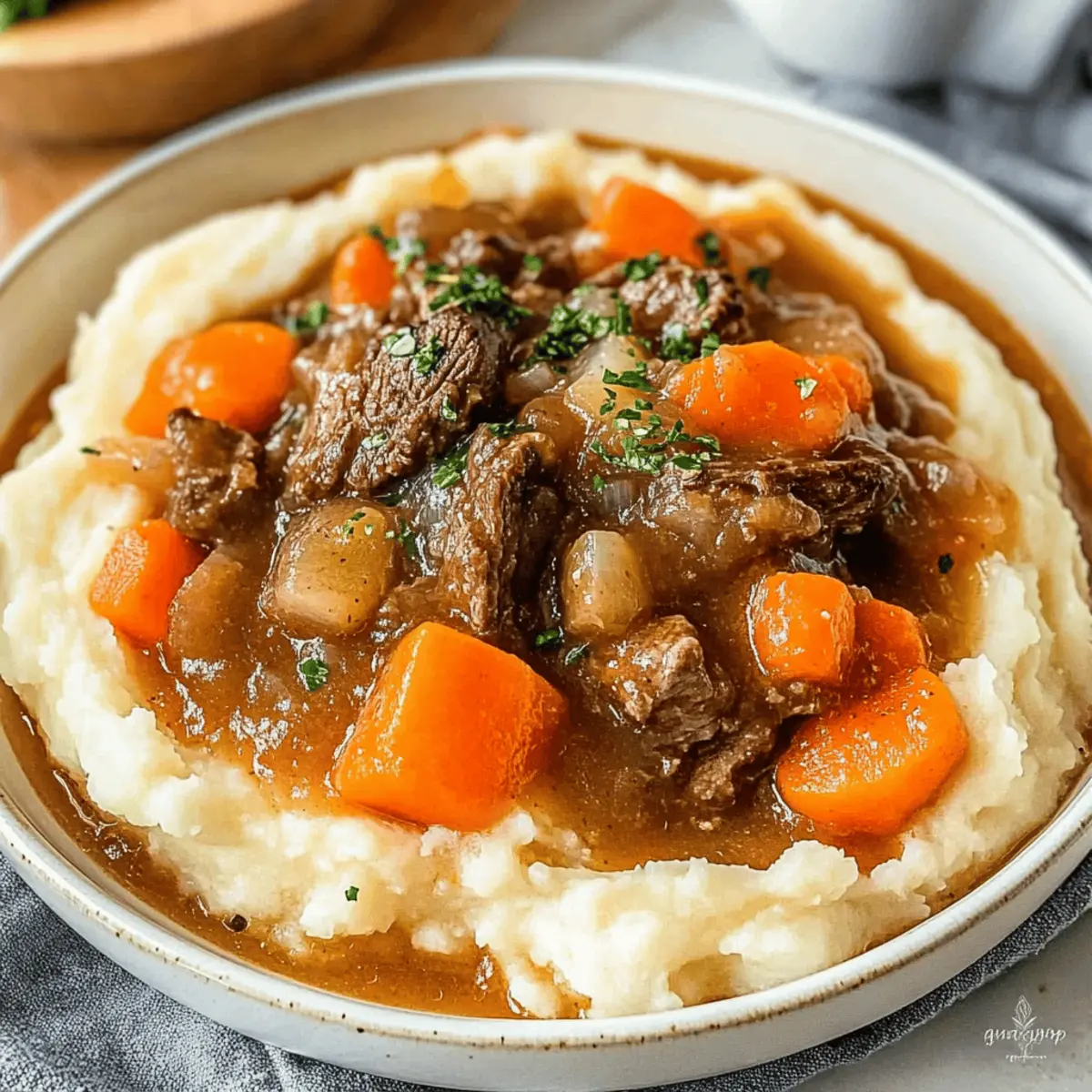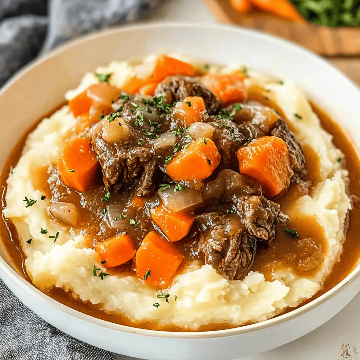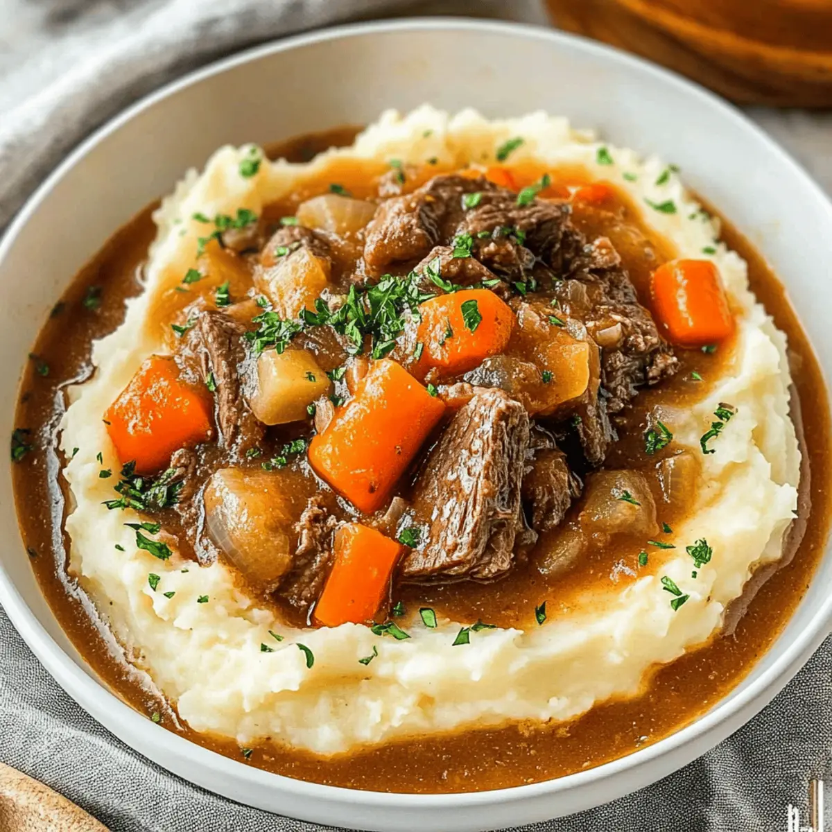 Jump to Recipe Print RecipeAs the chill of autumn sweeps in, my kitchen becomes a sanctuary filled with the inviting aroma of simmering spices and hearty flavors. It’s the perfect time to cozy up with a bowl of Fall Apple Cider Stew Mash. This incredible dish features tender sirloin cubes bathed in a luscious apple cider broth, mingling with sweet onions and carrots for an irresistible comfort food experience. Not only is it a crowd-pleaser, but it’s also rooted in the season’s finest flavors, truly embodying the essence of harvest. And let’s not forget about the creamy cheddar mashed potatoes, making it a delightful meal that warms the heart and soul. Ready to dive into this fall favorite? Let’s uncover how to bring this cozy stew to your dinner table! Why is this stew perfect for fall? Comforting Warmth: This stew delivers the ultimate cozy experience, ideal for crisp autumn nights. Sweet and Savory: The blend of apple cider with hearty beef creates a uniquely delightful flavor profile. Creamy Satisfaction: Paired with sharp cheddar mashed potatoes, it’s the perfect comfort food combo. Easily Customizable: Feel free to substitute ingredients like chuck roast or even toss in some diced apples. Crowd Appeal: It’s a family-friendly meal that guarantees second helpings! For a delightful side, consider pairing with a refreshing Smashed Potato Salad. Fall Apple Cider Stew Mash Ingredients For the Stew Top Sirloin – A tender and flavorful beef cut ideal for stews; chuck roast can be a more budget-friendly option. Apple Cider – Adds a distinct sweetness and flavor; unsweetened apple juice or beef broth can be a substitute if needed. Beef Broth – Enhances the depth of flavor in the stew; chicken or vegetable broth can lighten the dish up. Onion – Introduces a hint of sweetness and depth; be sure to chop finely for even cooking. Carrots – Adds natural sweetness and texture; peel and chop them into small pieces for better integration. Flour – Thickens the stew as it cooks; sprinkle it evenly over the meat and veggies before adding the liquids. For the Cheddar Mashed Potatoes Potatoes – Forms a hearty base for the dish; try using parsnips or sweet potatoes for a different flavor twist. Milk – Contributes creaminess to the mashed potatoes; heavy cream can provide a richer texture if desired. Sour Cream – Brings a delightful tang and creaminess; Greek yogurt is a great lower-fat alternative. Cheddar Cheese – Sharpness elevates the mashed potatoes; remember to shred it before mixing for optimal melt. Chives – Offers a fresh flavor boost; chop finely for a beautiful garnish. Enjoy crafting your Fall Apple Cider Stew Mash – it’s pure autumn comfort in every bite! Step‑by‑Step Instructions for Fall Apple Cider Stew Mash Step 1: Prepare Beef Preheat your oven to 375°F (190°C). In a large skillet, heat a tablespoon of olive oil and a tablespoon of butter over medium-high heat. Season the top sirloin with salt and pepper, then sear the cubes in the hot skillet until browned on all sides, about 6–8 minutes. This process locks in flavor and adds a lovely color to the meat. Step 2: Sauté Vegetables Once the beef is nicely browned, add in the chopped onions and carrots to the skillet. Sauté the mixture for 4–5 minutes, stirring occasionally, until the onions become translucent and fragrant. This step builds depth in your Fall Apple Cider Stew Mash and perfectly complements the rich beef flavor. Step 3: Thicken Gravy Sprinkle two tablespoons of flour evenly over the meat and vegetable mixture. Stir well to combine and cook for an additional 1–2 minutes, allowing the flour to absorb the juices and thicken slightly. This will give your stew a rich, hearty texture as it cooks further. Step 4: Create Stew Pour in the apple cider and beef broth, scraping any browned bits from the bottom of the skillet. Bring the mixture to a gentle boil before transferring everything into a Dutch oven. Cover it tightly and bake in the preheated oven for 60–90 minutes, or until the beef is fork-tender and the flavors meld beautifully. Step 5: Cook Potatoes While the stew bakes, peel and chop your potatoes into even chunks. Boil them in a large pot of salted water for 20–25 minutes, or until they are fork-tender. Drain the potatoes well, then return them to the pot and start mashing with milk, sour cream, cheddar cheese, and chopped chives until smooth and creamy. Step 6: Serve To serve your comforting Fall Apple Cider Stew Mash, spoon a generous portion of the creamy cheddar mashed potatoes onto plates. Top each mound with the hearty stew, ensuring some of that luscious broth cascades onto the potatoes. Finish with a sprinkle of additional chives for a fresh touch. Make Ahead Options These cozy Fall Apple Cider Stew Mash components are perfect for meal prep enthusiasts! You can prepare the stew up to 3 days in advance. Simply follow the first four steps of the recipe, letting the stew cool completely before transferring it to an airtight container; this helps maintain its rich flavor and texture. Additionally, the cheddar mashed potatoes can be made ahead and stored in the fridge for up to 24 hours. When it’s time to serve, reheat both the stew and potatoes gently on the stove, adding a splash of broth to the stew to keep it moist. You’ll enjoy delicious, home-cooked comfort food on busy weeknights with minimal effort! Fall Apple Cider Stew Mash Variations Feel free to tailor this comforting stew to suit your taste and dietary needs. Let your creativity flourish in the kitchen! Beef Cut Swap: Opt for Chuck Roast instead of top sirloin for a budget-friendly yet just as flavorful choice. This cut simmers beautifully and becomes wonderfully tender. Broth Choice: Use Vegetable Broth instead of beef for a lighter and vegetarian-friendly option. It will still enrich the stew but with a different flavor profile. Apple Twist: Add Diced Apples to the stew for a delightful burst of 