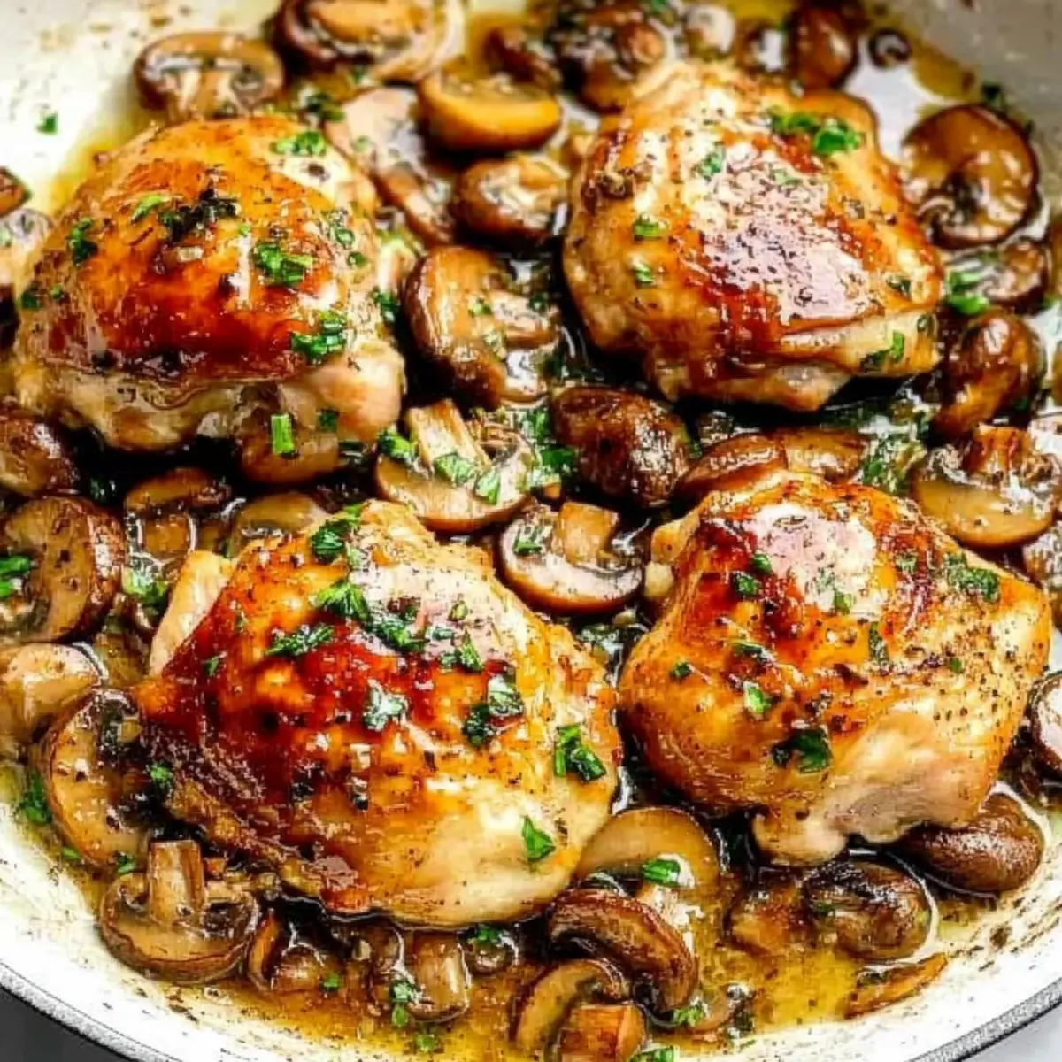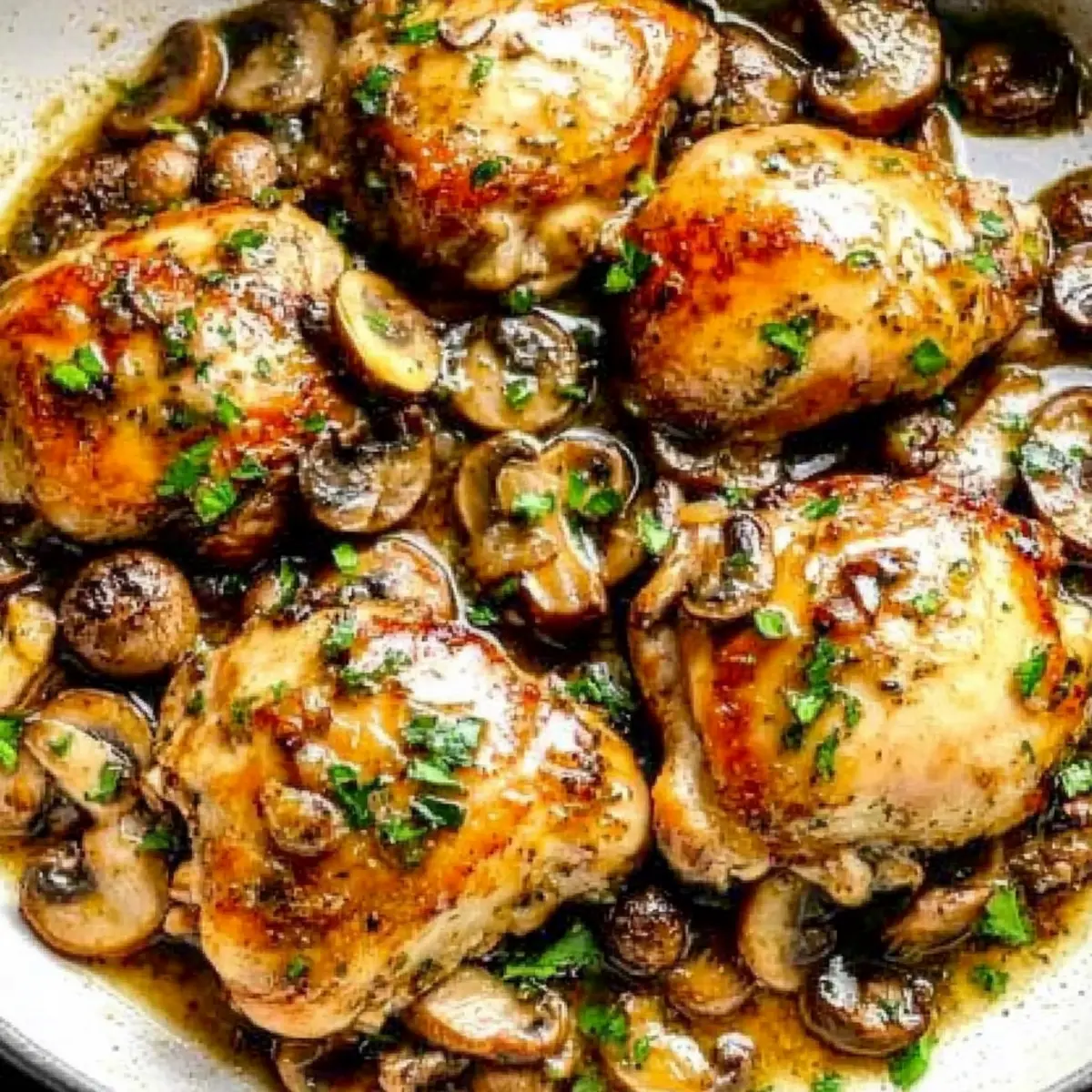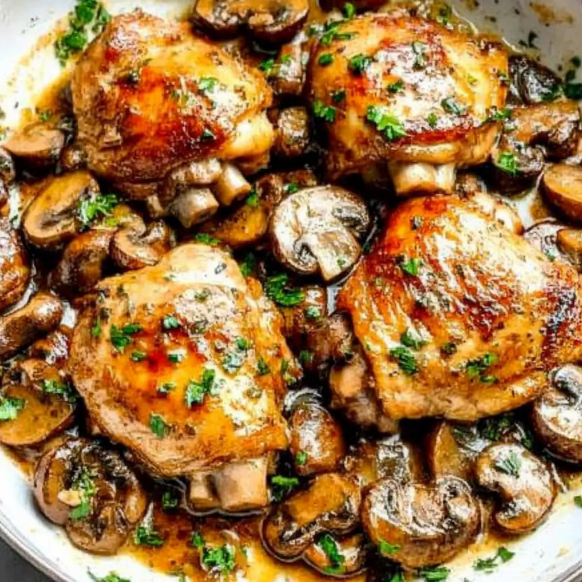 Jump to Recipe Print RecipeAs I stirred the fragrant aroma wafting from the stovetop, I couldn’t help but feel a wave of comfort wash over me. This isn’t just dinner; it’s a promise of a cozy evening, wrapped in the delightful essence of Garlic Mushroom Chicken Thighs. Perfectly golden-browned chicken thighs bathed in a rich garlic butter mushroom sauce brings together simplicity and indulgence. This quick low-carb recipe transforms a hectic weeknight into an effortless culinary adventure with just one pan. The beauty lies not only in its straightforward preparation but also in the versatility—serve it over low-carb options like zucchini noodles or alongside fluffy rice, and you’ve got a dinner that feels like a warm hug. Ready to dive into this savory delight and elevate your weeknight meals? Why Are Garlic Mushroom Chicken Thighs So Special? Comforting, Bold Flavors: With the rich combination of garlic and mushrooms, this dish elevates everyday chicken to an extraordinary experience. One-Pan Wonder: Clean-up is a breeze—everything cooks in a single pan! Spend less time washing and more time enjoying your meal. Quick to Prepare: Ideal for busy weeknights, this recipe comes together in under 30 minutes, making dinner a snap. Who needs takeout when you have flavors like this? Low-Carb Goodness: Perfect for those watching their carbs, it seamlessly fits into a low-carb diet while still feeling indulgent. Serve it over [mashed cauliflower](https://recipeinternational.com/g garlic-parmesan-chicken-meatloaves/) or zucchini noodles for a guilt-free treat! Crowd-Pleasing Appeal: Whether it’s a family dinner or a gathering with friends, this dish satisfies everyone’s cravings, making it a go-to favorite. Dive into this cozy recipe and find out just how delightful weeknight cooking can be! Garlic Mushroom Chicken Thighs Ingredients • Get ready to cook up a storm with these simple yet flavorful ingredients! For the Chicken Boneless Skinless Chicken Thighs – Tender and juicy, perfect for this dish; feel free to swap with breasts or tenders if you prefer! Salt – Essential for enhancing the flavors; opt for kosher or sea salt for the best results. Cracked Pepper – Adds warmth and depth; freshly cracked is preferred for optimal taste. For the Seasoning Onion Powder – Delivers a rich depth of flavor; if you want a fresh twist, swap in finely chopped onion. Garlic Powder – Boosts the aromatic garlic essence; fresh minced garlic is another great option—use 1-2 cloves! Dried Thyme – Infuses an earthy note; use double the amount of fresh thyme for a lovely herby profile. Dried Rosemary – Brings a fragrant touch; substitute with fresh rosemary as desired. Paprika – Provides color and subtle sweetness; consider using smoked paprika for a touch of smokiness. For the Sauce Olive Oil – Prevents sticking and helps brown the chicken beautifully; avocado oil is an excellent alternative. Butter – Gives the sauce a rich flavor; swap with ghee or plant-based butter for a dairy-free option. Brown Mushrooms – The star of the sauce, delivering umami goodness; cremini or white mushrooms work well too. Garlic – Freshly minced is key for a punch of flavor; more garlic equals more savory goodness! For Finishing Touches Fresh Parsley – Adds a bright pop of flavor; chives or green onions can be substituted if parsley is unavailable. Dry White Wine or Chicken Broth – Introduces depth and richness to the sauce; broth is a perfect non-alcoholic choice. Salt and Pepper – Adjust to taste as the final seasoning touch; remember, every dish benefits from a little taste check! Get ready to savor the delightful Garlic Mushroom Chicken Thighs and turn your weeknight dinner into a memorable culinary delight! Step‑by‑Step Instructions for Garlic Mushroom Chicken Thighs Step 1: Prepare the Chicken Begin by patting the boneless skinless chicken thighs dry with paper towels, ensuring they achieve a lovely golden-brown color when cooked. Trim any excess fat, then season both sides of the thighs generously with onion powder, garlic powder, dried thyme, dried rosemary, salt, cracked pepper, and paprika to create a flavorful base. Step 2: Sear the Thighs In a large skillet, heat 1 tablespoon of olive oil over medium-high heat until shimmering. Carefully add the seasoned chicken thighs to the pan, searing them for about 8 minutes on each side until they develop a crispy, golden-brown exterior. Once cooked through, with an internal temperature of 165°F (75°C), transfer the thighs to a plate and cover them to keep them warm. Step 3: Cook the Mushrooms In the same pan, reduce the heat to medium and melt a tablespoon of butter. Add the brown mushrooms and sauté them for about 3 minutes, stirring occasionally until they become tender and start to release their moisture. The mushrooms should appear soft and slightly caramelized, adding depth to the Garlic Mushroom Chicken Thighs. Step 4: Infuse the Sauce Next, add minced garlic, a pinch of fresh parsley, and a sprinkle of thyme and rosemary to the pan with the mushrooms. Sauté the mixture for approximately 1 minute until fragrant, stirring continuously to prevent burning. This aromatic blend will enhance the sauce’s flavor, bringing the dish to life with its savory notes. Step 5: Create the Sauce Pour in dry white wine or chicken broth, scraping the bottom of the skillet to deglaze and incorporate all the flavorful bits left from the chicken. Let the mixture simmer for about 5 minutes until it reduces by half, concentrating the flavors. You’ll notice a thicker, silky sauce forming, perfect for the Garlic Mushroom Chicken Thighs. Step 6: Combine and Serve Return the seared chicken thighs to the pan, allowing them to soak up the delicious sauce. Taste and adjust the seasoning with more salt and pepper if needed. To finish, garnish the dish with freshly chopped parsley for a vibrant pop of color and flavor, then serve the Garlic Mushroom Chicke