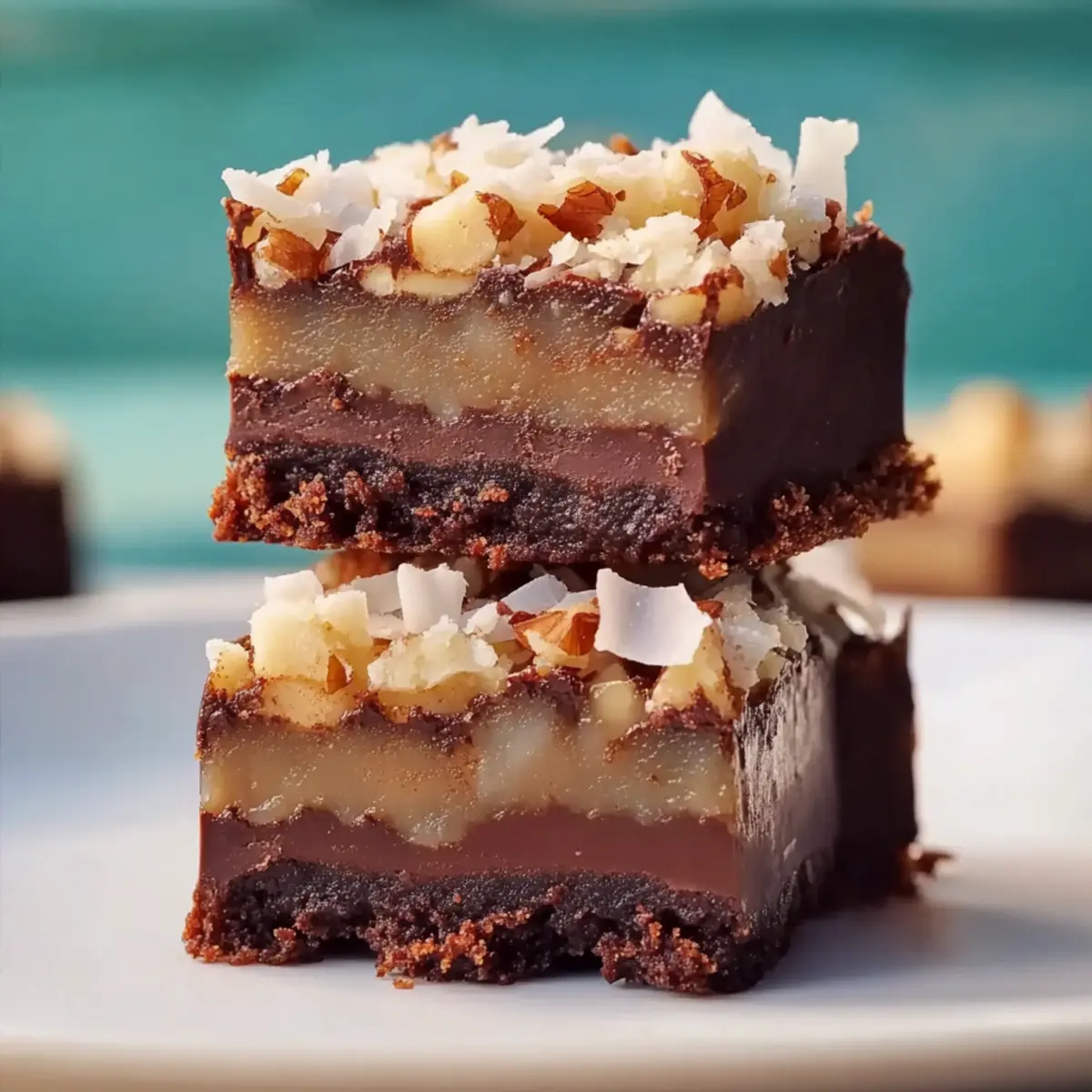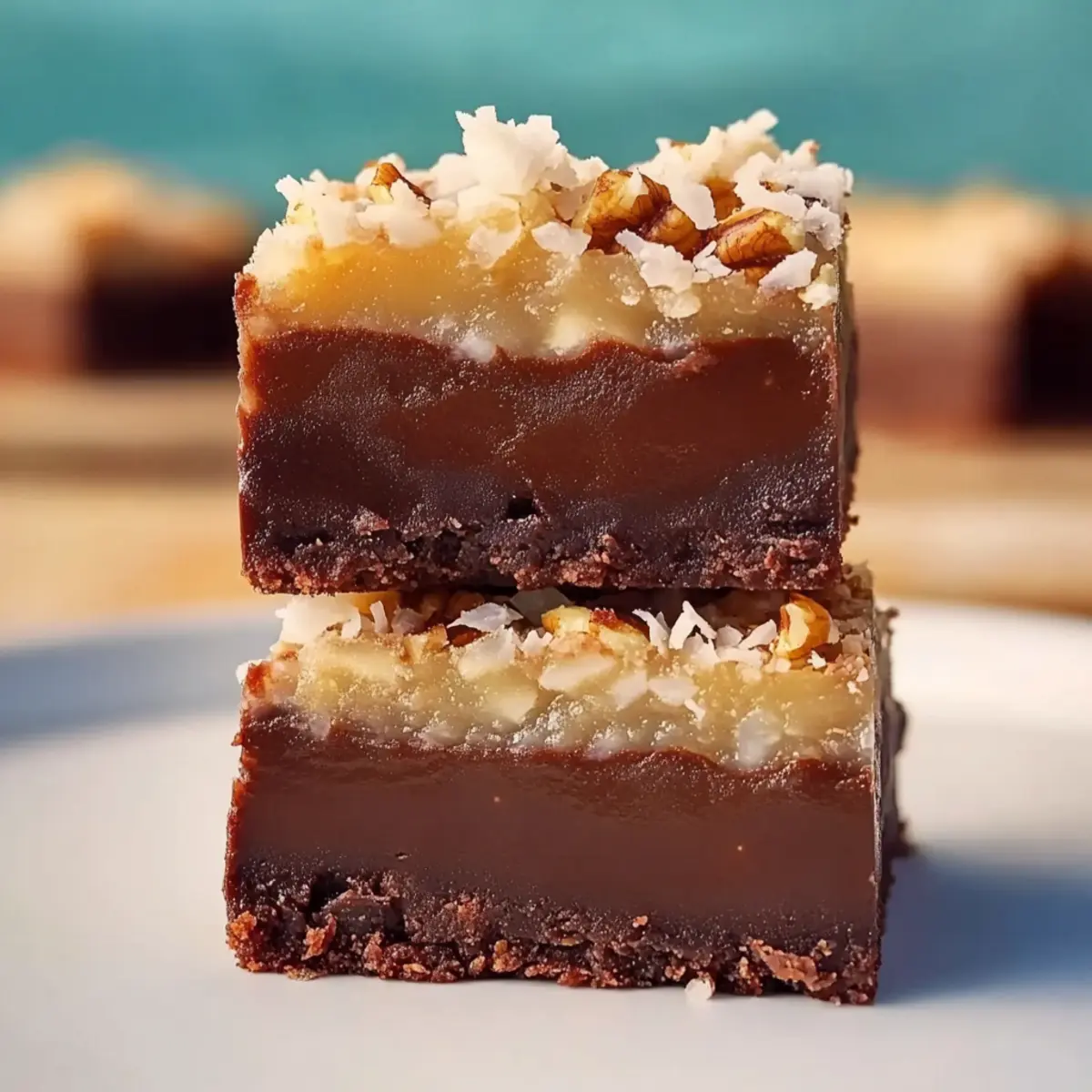 Jump to Recipe Print RecipeAs I stood in my kitchen, a heavenly aroma filled the air, instantly transporting me to a cozy German bakery. It’s moments like these that inspire me to whip up a batch of German Chocolate Fudge with Coconut & Walnuts, a classic dessert that never fails to impress. This rich and creamy fudge is not only a delightful treat to soothe your sweet cravings but also a perfect way to showcase your culinary skills. With its luscious layers and satisfying crunch from walnuts, it’s a fun twist on traditional fudge that friends and family will adore. Whether you’re seeking a quick indulgence after a busy day or a standout dessert to bring to gatherings, this recipe has you covered. Are you ready to delight your taste buds? Why is German Chocolate Fudge a Must-Try? Decadence Redefined: The rich, chocolatey layers combined with coconut and walnuts offer a treat that’s utterly indulgent. Simplicity at Its Core: This recipe is easy to make, requiring just a handful of ingredients and straightforward steps. Guilty Pleasures: Perfect for sweetening up your evenings, a batch of this fudge will satisfy every sweet tooth. Impress Your Guests: Serve it at gatherings or bring it along for potlucks, and watch it disappear in no time—just like the delicious Double Chocolate Chip Cookies your friends love! Versatility Awaits: Feel free to switch up the nuts or add a scoop of vanilla ice cream on the side for a truly comforting dessert experience! German Chocolate with Coconut & Walnuts Ingredients For the Fudge Semi-Sweet Chocolate – This main chocolate flavor base provides richness; choose high-quality chocolate for the best results. Milk Chocolate Chips – Adds creaminess and sweetness for that indulgent taste. Condensed Milk – Essential for a smooth, fudgy texture; it binds all ingredients together perfectly. Sugar – Offers sweetness and structure; consider using less if you’re aiming for a less sweet fudge. Fresh Cream – Contributes to a creamy, custard-like topping that elevates the dessert. Egg Yolks – Helps thicken the topping; be sure to stir constantly to avoid scrambling. Butter – A flavor enhancer that adds richness; using unsalted gives you better control over sweetness. For the Topping Shredded Coconut – Adds delightful texture and flavor; you can substitute sweetened coconut for a sweeter profile. Chopped Walnuts – Provides crunch and traditional flavor; alternatives include pecans or almonds for a different twist. This German Chocolate with Coconut & Walnuts fudge is sure to become a household favorite! Step‑by‑Step Instructions for German Chocolate with Coconut & Walnuts Step 1: Melt Chocolate Mixture In a medium saucepan, combine semi-sweet chocolate, milk chocolate chips, and condensed milk. Melt over low heat, stirring continuously for about 5–7 minutes until the mixture is glossy and smooth. Be patient to prevent scorching; you want a creamy, luscious base for your German Chocolate with Coconut & Walnuts fudge. Step 2: Prepare Pan While the chocolate mixture is melting, line a rectangular baking pan with parchment paper, leaving some overhang for easy removal. This step ensures that your fudge can be lifted out easily once set. Set the prepared pan aside and get ready to build those delicious layers! Step 3: Layer 1 Pour half of the melted chocolate mixture into the lined pan, using a spatula to spread it evenly across the bottom. Your first layer should look shiny and slightly thick. This base will provide a rich foundation for the other layers of your German Chocolate with Coconut & Walnuts fudge. Step 4: Prepare Topping In another saucepan, combine sugar, fresh cream, egg yolks, and butter over low heat. Stir the mixture continuously for about 5–10 minutes, or until it thickens and becomes creamy. Make sure to keep stirring constantly to prevent the egg yolks from scrambling as this will create an irresistible topping for your fudge. Step 5: Add Coconut and Walnuts Once the topping has thickened, remove it from heat and fold in the shredded coconut and chopped walnuts. Stir well to combine, ensuring that every piece of the mixture is coated. This delightful blend adds a crunchy texture and rich flavor, making your German Chocolate with Coconut & Walnuts fudge absolutely irresistible. Step 6: Layer 2 Spoon the coconut-walnut mixture gently over the first chocolate layer. Spread it out evenly with your spatula, making sure to cover the entire layer. This will create a beautiful contrast of textures in your fudge, enhancing both its flavor and appeal as it sets. Step 7: Final Layer Pour the remaining melted chocolate mixture over the coconut-walnut layer, smoothing the top with a spatula. This final layer seals in all that deliciousness underneath, ensuring that each bite of your German Chocolate with Coconut & Walnuts fudge is a perfect fusion of flavors and textures. Step 8: Chill Refrigerate the assembled fudge for about 2–3 hours or until it is firm and fully set. Once chilled, you can lift the fudge out of the pan using the parchment overhang. Cut into squares for serving, showcasing your beautiful creation that is sure to tempt anyone’s sweet tooth! Make Ahead Options Creating your German Chocolate with Coconut & Walnuts fudge ahead of time can save you valuable moments during busy weeknights or special gatherings! You can prepare the chocolate mixture up to 24 hours in advance; simply melt the chocolate and condensed milk, then store it in an airtight container in the refrigerator. The coconut-walnut topping can also be made ahead and kept in the fridge for up to 3 days. Just reheat it gently before layering it onto the fudge. When you’re ready to serve, pour the remaining melted chocolate over the top and chill until firm. With these make-ahead strategies, you’ll ensure your fudge is just as delicious, saving you time and stress! Expert Tips for German Chocolate Fudge Quality Chocolate Matters: Choose high-quality