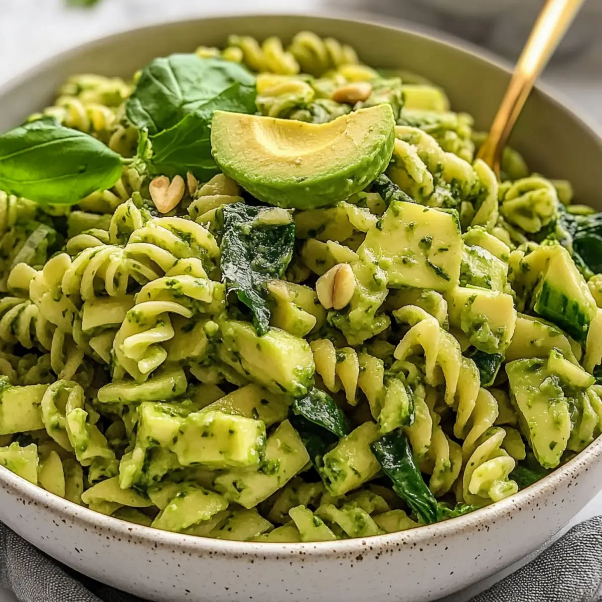 Jump to Recipe Print RecipeAs I savored a bustling summer afternoon, a bright idea struck me: why not whip up a quick and delightful meal that embodies the season? Enter my 20-Minute Green Goddess Pasta Salad, a vibrant, nutrient-packed dish that brings the essence of fresh greens and herbs straight to your table. This salad isn’t just a feast for the eyes; it’s exceptionally easy to prepare and perfect for anyone looking to escape the fast-food routine. With creamy avocado and crisp veggies, it’s both a satisfying main dish or a gorgeous side for summer gatherings. Plus, it’s vegan, dairy-free, and nut-free, catering to a variety of dietary needs without skimping on flavor. Are you ready to elevate your salad game? Let’s dive in! Why is this pasta salad a must-try? Simplicity: This Green Goddess Pasta Salad is quick, ready in just 20 minutes, making it perfect for busy weeknights or spontaneous picnics. Colorful & Vibrant: Fresh greens and herbs create a stunning visual appeal, guaranteeing it will be the star of your table. Nutrient-Packed: With creamy avocado and loads of veggies, this salad is both delicious and satisfying, perfect for fueling your day. Versatile: Easily customize with your favorite vegetables or pasta types—gluten-free options are a breeze! Try it alongside a refreshing Radish Salad Roasted for a complete meal. Flavorful Dressing: The smooth, herb-infused dressing enhances every bite, making this salad a hit with guests and family alike. Green Goddess Pasta Salad Ingredients • Here’s everything you need to create this delicious dish. For the Salad Pasta – The base for the salad; feel free to swap for gluten-free pasta if needed. Avocado – Adds creaminess; choose a slightly ripe avocado for the best color and texture. Spinach – A fresh leafy green; fresh is ideal, but thawed frozen spinach works fine too. Green Onions – Provides crunch; can be replaced with shallots if green onions are unavailable. Chickpeas – Adds protein; consider using canned for convenience or cooked dried ones for a personal touch. For the Dressing Fresh Herbs (Basil, Dill) – Flavor boosters that can be adjusted based on your palate; feel free to mix or substitute. White Wine Vinegar – Adds a touch of acidity; apple cider or rice vinegar can serve as great alternatives. Garlic – Adds depth of flavor; adjust the quantity to fit your taste preferences. Nutritional Yeast – Delivers umami; this ingredient can be omitted or swapped with vegan parmesan or miso paste if desired. Bring the vibrant flavors of summer to your table with this Green Goddess Pasta Salad—a quick and easy dish to brighten any meal! Step‑by‑Step Instructions for Green Goddess Pasta Salad Step 1: Cook the Pasta Start by bringing a large pot of salted water to a rolling boil. Add your preferred pasta and cook according to package instructions, typically 8-10 minutes, until al dente. Once cooked, drain the pasta and set aside, allowing it to cool slightly while you prepare the rest of your ingredients. Step 2: Cool the Pasta To quickly cool the pasta, drizzle a tablespoon of olive oil over it and toss gently to coat. Add a few ice cubes to the pasta to help lower the temperature, ensuring it remains fresh and doesn’t stick together. Set aside for a few moments while you gather the other ingredients for your Green Goddess Pasta Salad. Step 3: Prepare the Dressing In a food processor, combine the ripe avocado, fresh herbs, white wine vinegar, garlic, and nutritional yeast. Blend until the mixture is smooth and creamy, scraping down the sides as needed. This luscious dressing will coat your pasta beautifully, so taste and adjust seasoning to your preference before proceeding. Step 4: Combine Ingredients In a large mixing bowl, add the cooled pasta, chickpeas, and any crunchy vegetables you’d like—sliced bell peppers work wonderfully here. Pour the creamy dressing over the pasta mixture, then gently toss everything together until the pasta is well coated and all ingredients are evenly distributed. Step 5: Garnish and Serve Finish off your Green Goddess Pasta Salad by garnishing with sliced green onions, adding an extra pop of color and crunch. Serve immediately for a refreshing treat or refrigerate for a bit to meld the flavors together. This salad is perfect for summer gatherings or as a quick weeknight meal! Expert Tips for Green Goddess Pasta Salad Perfect Avocado: Choose a slightly ripe avocado to ensure creaminess without browning. Adding lemon juice to the blend helps maintain its vibrant green color. Cooling Technique: After cooking the pasta, drizzle olive oil and add ice cubes to cool it quickly. This prevents sticking and keeps the salad fresh. Customize Greens: If you’re out of spinach, try using arugula or kale for an exciting twist. Each leafy green brings its unique flair and flavor to the Green Goddess Pasta Salad. Nutritional Yeast Alternatives: Don’t have nutritional yeast? Feel free to substitute with vegan parmesan or even a bit of miso paste to capture that delightful umami essence in your dressing. Leftover Storage: To keep leftovers fresh, store in an airtight container with plastic wrap pressed against the surface to minimize browning. Enjoy within three days for optimal taste! How to Store and Freeze Green Goddess Pasta Salad Fridge: Store in an airtight container for up to 3 days. To prevent the avocado from browning, cover the surface with plastic wrap before sealing the container. Freezer: For best quality, avoid freezing this pasta salad as the texture may change; however, if needed, freeze without the avocado dressing for up to 1 month, then freshen it up when you’re ready to serve. Reheating: While it’s best enjoyed chilled, you can lightly warm leftover pasta in a microwave for about 30 seconds if preferred. Just remember, avoid overheating to keep the salad fresh. What to Serve with 20-Minute Vegan Green Goddess Pasta Salad Looking to create a full me