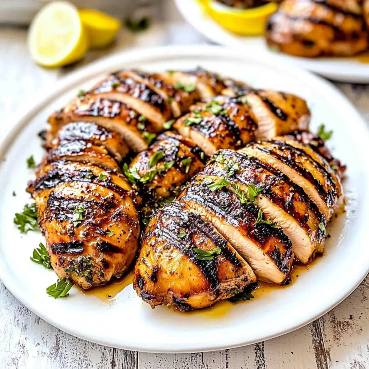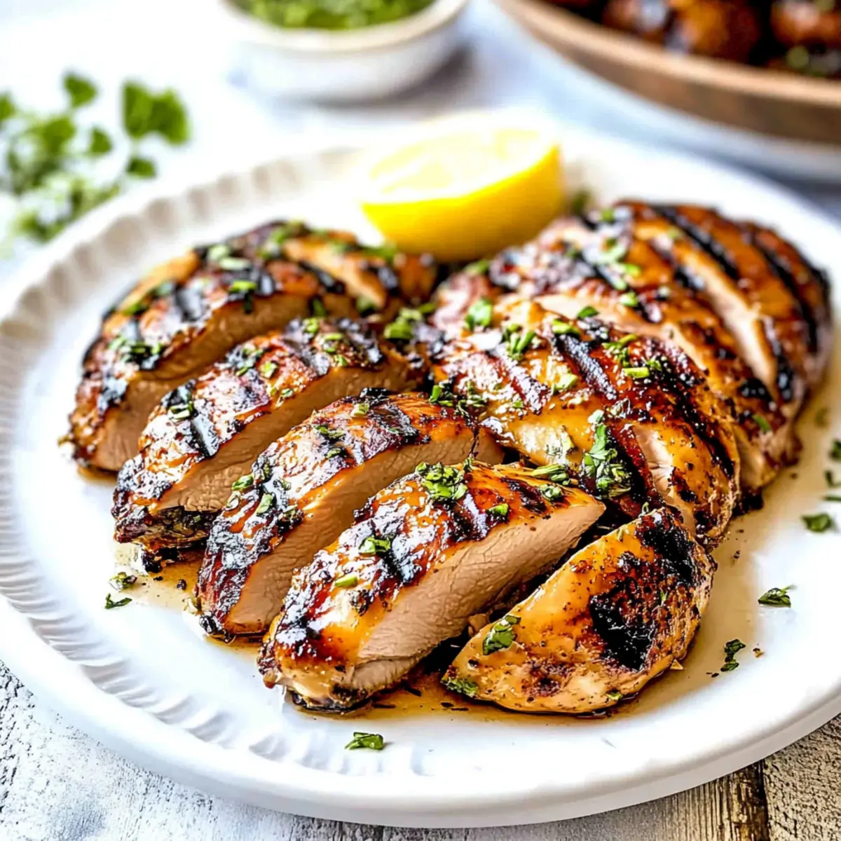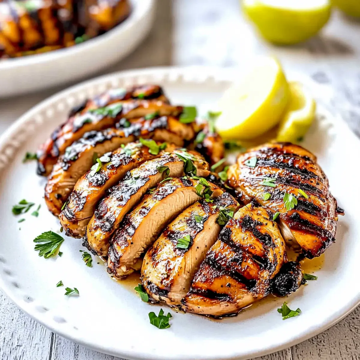 Jump to Recipe Print RecipeWhile marinating chicken might seem like a simple step in cooking, choosing the right grilled chicken marinade can transform your dish from ordinary to extraordinary. This Best Grilled Chicken Marinade is a game changer, packed with the perfect balance of savory and tangy flavors that create juicy, mouthwatering chicken every time. Not only is it incredibly versatile, working beautifully with any cut of chicken—whether you’re grilling, baking, or stovetop cooking—but it also saves you time, making it ideal for weeknight dinners or summer BBQs. Plus, it’s gluten-free, ensuring everyone at the table can enjoy. Ready to make your chicken the star of the meal? Let’s dive into how to whip up this easy marinade that will keep everyone coming back for seconds! Why is this marinade a must-try? Versatile: This marinade is your go-to for any chicken cut—breasts, thighs, or even wings! Flavor Explosion: With a mix of savory, tangy, and sweet elements, your taste buds will dance with delight. Time-Saving: Marinate ahead or freeze for quick dinners anytime. Crowd-Pleaser: Perfect for summer BBQs, everyone will rave about your juicy chicken! If you’re looking for more grilling inspiration, don’t miss out on the Bbq Chicken Sweet or Tandoori Chicken Tikka recipes for your next gathering. Grilled Chicken Marinade Ingredients For the Marinade • Olive Oil – adds moisture and richness; you can substitute with avocado oil for a similar effect. • Lemon Juice – provides acidity that tenderizes chicken; lime juice or vinegar works well as substitutes. • Reduced Sodium Soy Sauce – offers savory depth and saltiness; use tamari for a gluten-free option or coconut aminos for a low-sodium alternative. • Balsamic Vinegar – contributes tanginess and sweetness; if unavailable, apple cider vinegar can be used. • Brown Sugar – adds sweetness to balance the acidity; honey or maple syrup can be great substitutes. • Dijon Mustard – enhances flavor with a bit of tang; swap for stone-ground mustard to change the texture. • Onion Powder – enhances base flavor; feel free to use fresh onion if preferred. • Garlic Powder – adds depth; fresh minced garlic is a fantastic alternative. • Salt – crucial for seasoning; adjust as needed based on your taste. • Dried Basil – brings a lovely herby note; fresh basil can be used in a pinch. • Oregano – complements other spices beautifully; it can be substituted with Italian seasoning. • Thyme – balances flavor; try rosemary for a different herbaceous note. • Paprika – adds color and smokiness; use smoked paprika for extra depth. • Pepper – gives a kick; adjust level according to your heat preference. • Red Pepper Flakes – add heat; you can omit them for a milder marinade. This grilled chicken marinade will elevate your summer dishes and keep your mealtime vibrant and delicious! Step‑by‑Step Instructions for Best Grilled Chicken Marinade Step 1: Prepare the Marinade In a medium bowl, whisk together all the ingredients for the grilled chicken marinade: olive oil, lemon juice, reduced sodium soy sauce, balsamic vinegar, brown sugar, Dijon mustard, onion powder, garlic powder, and your chosen spices. Ensure a well-combined mixture, creating a beautiful emulsified dressing, rich in color and aroma. This step should take about 5 minutes, and it sets the flavor foundation for your chicken. Step 2: Marinate the Chicken Next, place your chicken—whether breasts, thighs, or drumsticks—into a large, resealable plastic bag or an airtight container. Pour the freshly prepared marinade over the chicken, making sure every piece is thoroughly coated. Seal the bag or container securely, then refrigerate for at least 4 hours, or ideally 12 hours, allowing the marinade to work its magic. The chicken should absorb the flavors beautifully during this time. Step 3: Let Chicken Rest When you’re ready to cook, take the marinated chicken out of the fridge and allow it to rest at room temperature for approximately 15 to 30 minutes. This step is crucial for even cooking, as it helps the chicken cook more consistently. Additionally, while the chicken sits, gather your grilling equipment and prepare your grill for a perfect cook. Step 4: Preheat the Grill Preheat your grill to a temperature of 400°F. This ensures that when the marinated chicken touches the grill grates, it sears beautifully, creating a delicious crispy exterior while retaining its juicy interior. While waiting for the grill to heat, you can oil the grates lightly to prevent sticking. Step 5: Grill the Chicken Once the grill is hot, place the marinated chicken on the grates. Grill each piece for about 5 to 7 minutes on one side, flipping them when they develop nice grill marks and color. Use a meat thermometer to ensure the internal temperature of the chicken reaches 165°F for safe and juicy results. Monitor closely to avoid any overcooking. Step 6: Rest Before Serving After grilling, remove the chicken from the grill and let it rest on a plate for about 5 minutes. This crucial resting period allows the juices to redistribute throughout the meat, ensuring every bite is tender and flavorful. While resting, you can brush any reserved marinade on the chicken for an extra flavor boost, enhancing your grilled chicken dish beautifully. Grilled Chicken Marinade Variations Feel free to take this marinade and make it your own with these delightful twists! Gluten-Free: Use tamari or coconut aminos in place of soy sauce to keep it gluten-free while still achieving that savory depth. Herb-Infused: Try adding fresh herbs like parsley or cilantro for a refreshing twist on flavor, brightening up your chicken dish. Citrus Burst: Swap out lemon juice for orange or lime juice for a fruity zing that complements the other flavors wonderfully. Sweet & Spicy: Introduce a tablespoon of sriracha or hot sauce for a spicy kick. Pair this with the sweetness of brown su