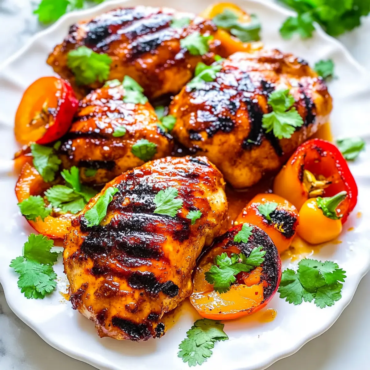 Once fully cooked, remove the chicken from the grill and let it rest for a few minutes to allow the juices to redistribute, ensuring each bite is juicy and tender. Garnish with fresh cilantro and sliced peppers for an added kick and a pop of color. Serve it immediately to relish the flavors and enjoy a delightful meal bursting with summer vibes!