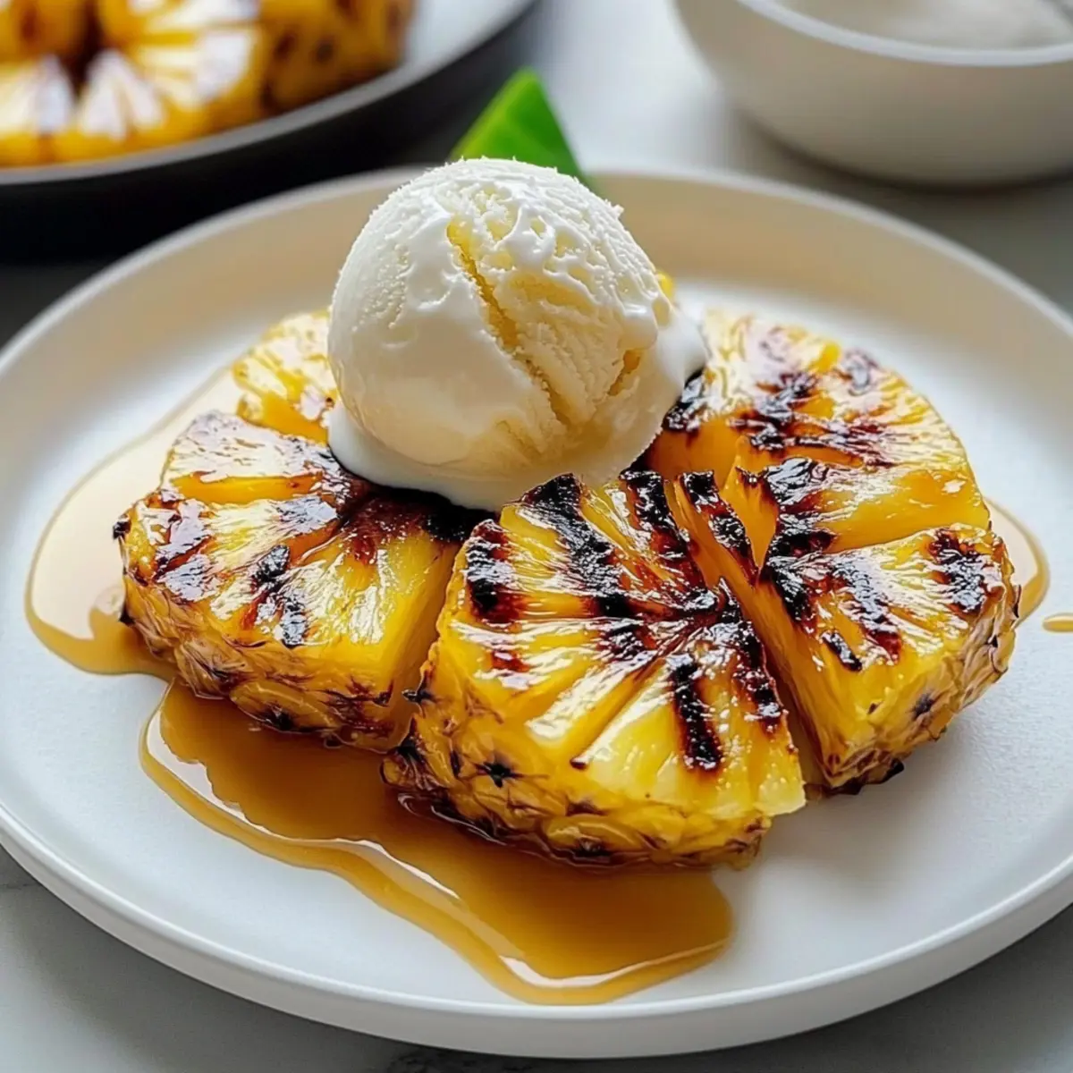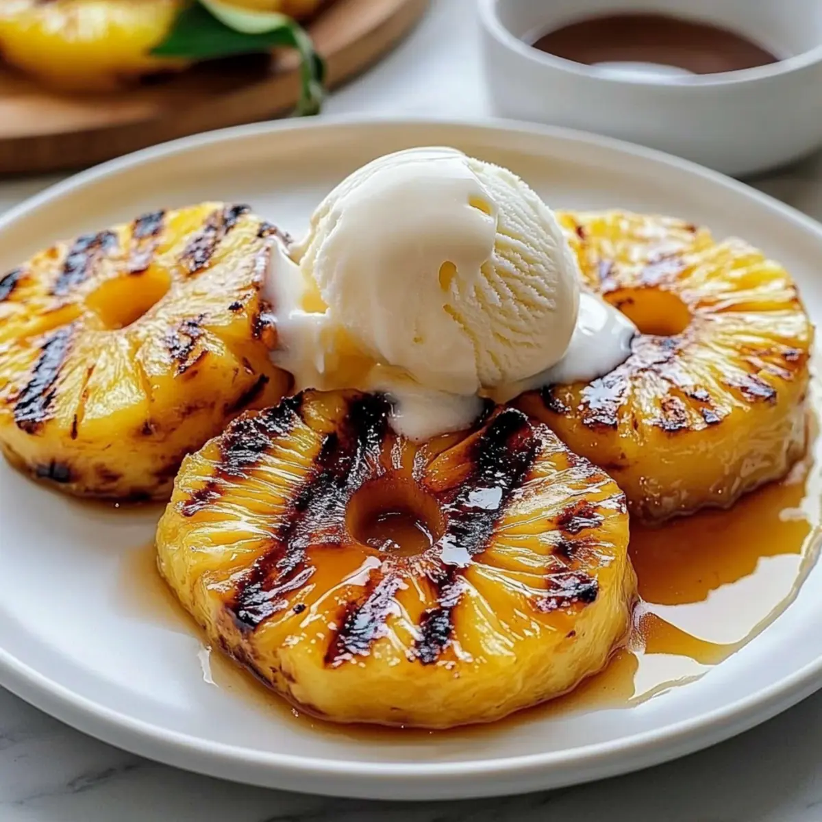 Jump to Recipe Print RecipeStanding by the grill, a tantalizing aroma wafts through the air, beckoning those nearby. I find myself often reminiscing about warm summer evenings when the sizzle of juicy fruit filled our backyard with excitement. This 5-Ingredient Grilled Pineapple Recipe is my go-to for those lazy afternoons or impromptu gatherings. Not only is it quick and easy to prepare, but it also brings a burst of tropical flavor that can elevate any meal—from barbecues to casual family dinners. With its subtle caramelization and delightful sweetness, this dessert becomes an irresistible treat everyone will love. Whether you choose to indulge in the optional hint of rum or keep it simple, your taste buds are in for a real delight. Curious to see how easy it is to create this stunning dish? Let’s fire up that grill and dive in! Why is Grilled Pineapple a Must-Try? Simplicity at Its Best: With only five ingredients, this recipe is incredibly easy to whip up—even for novice cooks. Tropical Flavor: The sweet and smoky profile of grilled pineapple transports you straight to a beach paradise, making it perfect for summer gatherings. Versatility: Enjoy it solo as a dessert, or pair it with savory dishes, like grilled meats or ice cream—it complements any meal! Quick Preparation: Ready in under 30 minutes, making it a fantastic option when time is of the essence. Crowd-Pleasing: Impress your guests with a unique, delicious treat that everyone will be talking about long after the gathering. For another flavor-packed recipe, check out this delightful Korean Ramen Grilled dish that brings a fun twist to dinner! Grilled Pineapple Recipe Ingredients • Give your taste buds a tropical adventure with these simple ingredients! For the Marinade Fresh Pineapple – Use ripe pineapples for the best sweetness and texture. Butter (1/4 cup, melted) – Adds richness and helps caramelize the sugars beautifully. Dark Brown Sugar (1/4 cup) – Deepens the flavor and enhances sweetness; light brown sugar works, too! Dark Rum (1/4 cup, optional) – Provides depth and enhances caramelization; opt for pineapple juice for a non-alcoholic treat. Ground Cinnamon (1 teaspoon) – Infuses warmth and spice; consider ginger for a fragrant alternative. Pinch of Salt – Elevates the overall flavor profile of this delicious grilled pineapple recipe. Embrace the tropical essence of summer with this simple, mouthwatering dessert that is sure to impress! Step‑by‑Step Instructions for Grilled Pineapple Recipe Step 1: Prepare Pineapple Start by cutting off the top and bottom of a fresh pineapple to create a stable base. Carefully slice off the tough rind, then cut the fruit into either thick spears or rings, ensuring even pieces for consistent grilling. The vibrant yellow should be visible, indicating a sweet, ripe fruit ready for grilling. Step 2: Marinade In a bowl, combine melted butter, dark brown sugar, optional dark rum, ground cinnamon, and a pinch of salt, stirring until smooth. Place the cut pineapple in a zip-top bag and pour the marinade over it, ensuring all pieces are coated. Seal the bag and let it chill in the refrigerator for 20-30 minutes to allow the flavors to meld beautifully. Step 3: Preheat Grill While the pineapple marinates, preheat your grill or a grill pan over medium-high heat. Aim for a temperature around 400°F (200°C) for perfect grilling. You can test readiness by holding your hand an inch above the grill; if you can only hold it there for a couple of seconds, it’s hot enough for grilling your delicious pineapple. Step 4: Grill Pineapple Carefully place the marinated pineapple onto the grill. Grill each side for 4-6 minutes, until golden brown grill marks appear and the sugars begin to caramelize. The surface should become glossy and slightly charred, releasing a tantalizing aroma that signals your grilled pineapple is nearly ready. Step 5: Serve Once grilled, remove the pineapple from the grill and let it rest for a minute to lock in the juices. Serve warm for an irresistible treat, and consider pairing with a scoop of vanilla ice cream or coconut ice cream. This easy Grilled Pineapple Recipe is perfect for elevating summer gatherings or satisfying your sweet cravings any time of year. Grilled Pineapple Recipe Variations Feel free to let your culinary creativity shine as you customize this delightful dish! Herb Infusion: Add fresh mint or basil to the marinade for a refreshing herbal twist that brightens each bite. A sprinkle of chopped mint on top truly elevates the grilled pineapple, adding a delightful aroma and flavor. Spicy Kick: Incorporate a dash of cayenne pepper or chili flakes to the marinade for a spicy contrast to the sweetness. The heat pairs surprisingly well with the caramelized sugars, creating a dynamic flavor profile that’ll tingle your taste buds. Tropical Partner: Serve with a drizzle of coconut cream to heighten the tropical experience and add creaminess. The rich texture and subtle sweetness of coconut cream will take your grilled pineapple to a whole new level. Cinnamon Twist: Use nutmeg or allspice instead of cinnamon for a different aromatic effect. These spices bring warmth and depth to the grilled pineapple, perfect for cozy evenings year-round. Fruit Medley: Mix in other fruits like peaches or nectarines for a vibrant grilled fruit platter. Combining different fruits enhances flavor diversity, ensuring every bite is a delightful surprise! Dessert Duo: Serve with a scoop of your favorite ice cream or whipped cream for enhanced indulgence. A luscious topping can transform this dish from simple to sensational, especially when paired with vanilla or coconut ice cream. Caramel Drizzle: Once grilled, finish with a drizzle of caramel sauce for an extra layer of sweetness. This gives the dish a decadent touch, making it ideal for special occasions or those sweet-tooth cravings. For more flavor-packed ideas, you might also enjoy these Grilled Teriyaki Tofu 