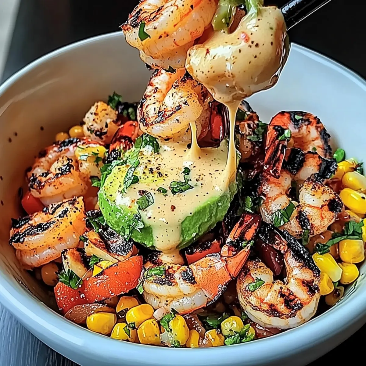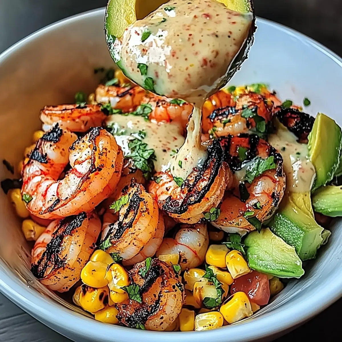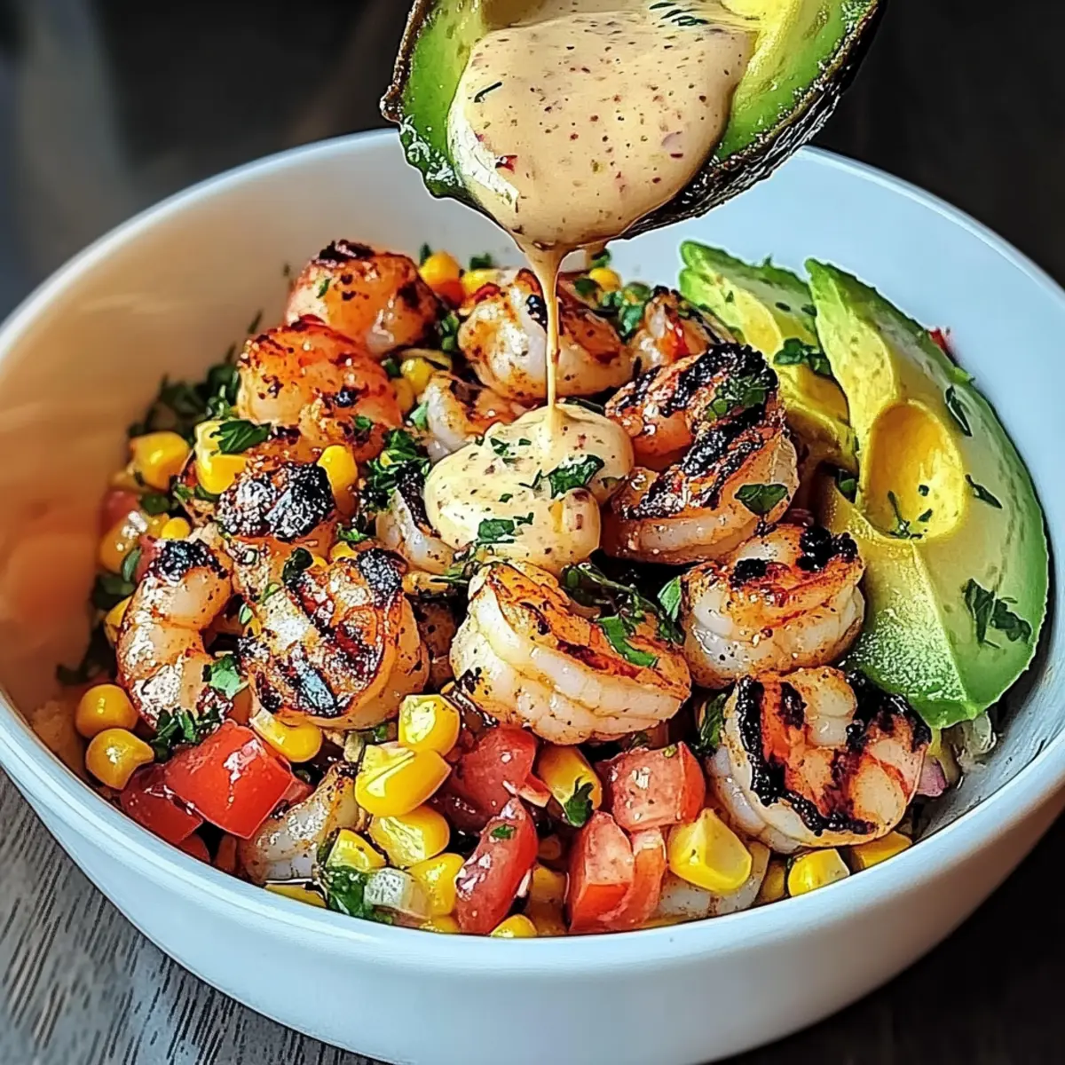 Jump to Recipe Print RecipeOn a sun-soaked afternoon, the aroma of grilled seafood wafted through the air, reminding me that summer dining is all about vibrant flavors and fresh ingredients. That’s how I fell in love with the Grilled Shrimp Bowl, a dish bursting with juicy shrimp, zesty corn salsa, and a creamy garlic sauce that comes together in just under 30 minutes! This easy dinner option is as versatile as it is delightful—perfect for novice cooks eager to impress or busy weeknights when cooking feels like a chore. Plus, it’s not just a meal; it’s a celebration of the season, ready to bring friends and family together. What twists will you add to make it your own? Why is this Grilled Shrimp Bowl a must-try? Bright, fresh ingredients: Each bite bursts with summer flavors, featuring succulent shrimp and lively corn salsa. Quick preparation: Ready in under 30 minutes, it’s perfect for busy weeknights or unexpected guests. Versatile options: Easily swap shrimp for grilled chicken, creating a delightful new variation for any palate. Crowd-pleaser: This bowl is sure to impress friends and family with its vibrant colors and delicious textures. Healthy and hearty: With a well-balanced combination of protein and healthy fats from avocado, it’s a nourishing meal everyone will love! Grilled Shrimp Bowl Ingredients For the Shrimp Shrimp – This protein source provides the main flavor; opt for large, peeled, and deveined shrimp for the best taste. Olive Oil – Helps in cooking and adds moisture to keep the shrimp juicy. Paprika – Infuses a smoky flavor and enhances the dish’s vibrant color. Garlic Powder – Adds depth of flavor that pairs perfectly with the grilled shrimp. Salt & Black Pepper – Essential for seasoning, enhancing all the flavors in the bowl. Cayenne Pepper – Optional for an additional kick; adjust based on your spice preference. For the Corn Salsa Corn – The base for salsa, adding sweetness and crunch; thawed frozen corn works wonders here. Red Onion – Brings a sharp flavor that complements the corn’s sweetness. Cilantro – Offers freshness and enhances the overall flavor profile. Jalapeño – Optional for a spicy kick; remember to seed and mince for a controlled heat. Lime Juice – Brightens the salsa and balances the flavors beautifully. For the Creamy Garlic Sauce Mayonnaise – Forms the creamy base that brings richness to the sauce. Sour Cream – Adds tanginess and creaminess, making the sauce irresistibly smooth. Lemon Juice – Boosts acidity and brightness for a well-rounded flavor. Fresh Garlic – Enhances the sauce with its aromatic flavor. For the Bowl Assembly Avocado – Provides creaminess and healthy fats; you can slice or mash it to your preference. Sesame Seeds – Optional for a delightful crunch as a garnish. Green Onions – Adds a fresh finish as a colorful garnish atop your delicious creation. Each ingredient plays a vital role in making your Grilled Shrimp Bowl a must-try summer dish! Step‑by‑Step Instructions for Grilled Shrimp Bowl Step 1: Prepare the Shrimp In a mixing bowl, toss the peeled and deveined shrimp with olive oil, paprika, garlic powder, salt, and pepper. Ensure every shrimp is well-coated for maximum flavor. Let this sit for about 10 minutes while you prepare the rest of the ingredients, allowing the spices to infuse into the shrimp. Step 2: Make the Corn Salsa In another bowl, combine the thawed corn, finely diced red onion, jalapeño (if using), chopped cilantro, lime juice, and a pinch of salt. Mix everything together until well combined. Set this refreshing corn salsa aside to let the flavors meld while you get ready to grill the shrimp. Step 3: Grill the Shrimp Preheat your grill or grill pan to medium-high heat, around 400°F (200°C). Once hot, add the seasoned shrimp in a single layer. Grill for 2-3 minutes on each side until they turn a vibrant pink and opaque, indicating they’re perfectly cooked. Remove the shrimp from the heat and let them rest for a moment. Step 4: Prepare the Creamy Garlic Sauce In a small bowl, whisk together mayonnaise, sour cream, freshly squeezed lemon juice, minced garlic, salt, and pepper. Blend until smooth and creamy, adjusting the seasoning to your taste. This sauce will add a rich flavor to your Grilled Shrimp Bowl, enhancing its overall deliciousness. Step 5: Assemble the Bowl Begin layering your Grilled Shrimp Bowl by first adding a generous scoop of corn salsa to the bottom of each bowl. Next, place the grilled shrimp on top, ensuring they’re evenly distributed for everyone to enjoy. For the finishing touch, add slices or a scoop of mashed avocado, creating a beautiful presentation. Step 6: Finish with Sauce and Garnish Drizzle the creamy garlic sauce generously over the shrimp and avocado. For added texture and visual appeal, sprinkle sesame seeds and chopped green onions on top of the bowls. Serve immediately to savor the fresh flavors and enticing aromas of your Grilled Shrimp Bowl! What to Serve with Grilled Shrimp Bowl The vibrant and fresh flavors in this dish set the stage for a delightful meal that brings everyone together. Crispy Tortilla Chips: Perfect for scooping up the zesty corn salsa, these crunchy chips add a fun texture to your meal. Grilled Vegetables: A side of charred zucchini, bell peppers, and asparagus elevates the freshness and offers a satisfying crunch. Coconut Rice: The subtly sweet and fragrant nature of coconut rice complements the dish beautifully and enhances the tropical vibe. Fresh Garden Salad: Light and refreshing, a salad with mixed greens, cherry tomatoes, and a citrus vinaigrette brightens your plate. Spicy Mango Salsa: This sweet and spicy companion mirrors the salsa flavors, adding a layer of extravagance to each bite. Sparkling Lemonade: A bubbly, zesty drink refreshes your palate, perfectly pairing with the ocean-inspired notes of shrimp. Berry Parfait: End on a sweet note with layers of yogurt and fresh berries to c