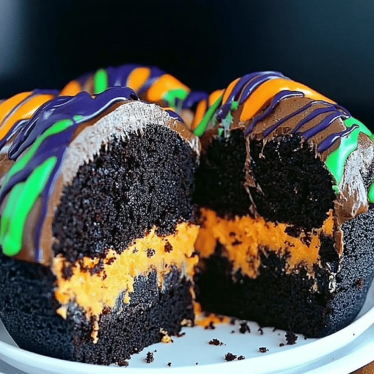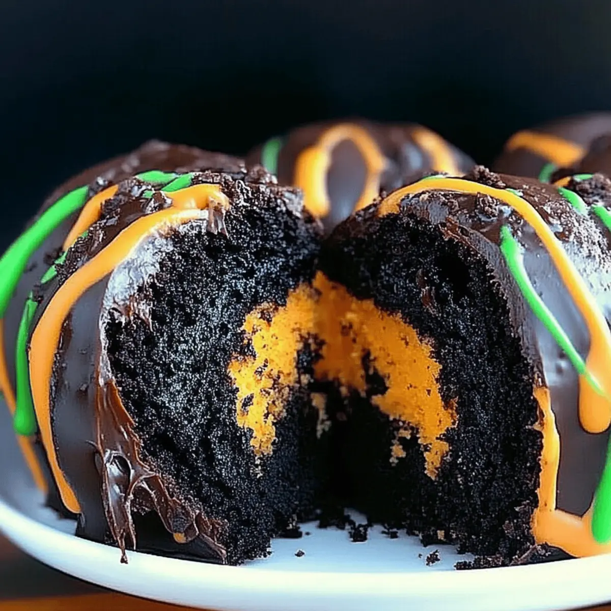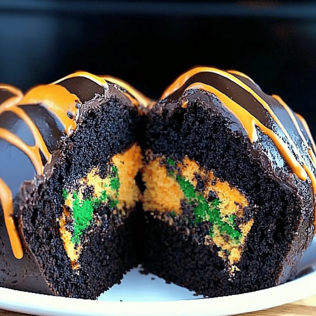 Jump to Recipe Print Recipe“What if I told you that Halloween can be filled with sweet surprises beyond candy?” Welcome to the world of the Halloween Chocolate Tunnel Cake. This enchanting dessert pairs a moist, from-scratch dark chocolate cake with a zesty orange cream cheese filling, creating a flavor combo that’s nothing short of spellbinding. Not only is this cake a visual centerpiece for your spooky celebrations, but it’s also a crowd-pleaser that’s sure to impress your family and friends. Quick to whip up yet packed with indulgent flavors, it’s perfect for those times when you seek homemade comfort without sacrificing time in the kitchen. Imagine serving this showstopper at your next gathering—are you ready to impress? Why Choose This Halloween Chocolate Cake? Irresistible Flavor: The rich dark chocolate cake paired with the vibrant orange cream cheese filling is a perfect match for Halloween, balancing sweetness with a zesty twist. Easy-to-Make: With no complicated techniques, you’ll be able to whip up this cake from scratch effortlessly—perfect for those busy days leading up to the festivities. Showstopper Presentation: The colorful frosting drizzled over the cake not only makes it visually stunning but will also have your guests reaching for seconds! Versatile Options: Whether you want to switch out the cream cheese filling for fruit preserves or add spices for seasonal flair, this recipe is easy to customize. And if you’re looking for more dessert inspiration, don’t miss out on my Mint Chocolate Chip treats or delightful Double Chocolate Chip Cookies. Halloween Chocolate Tunnel Cake Ingredients For the Cake All-Purpose Flour – Provides the structure essential for a moist cake. Dark Chocolate Cocoa Powder – Adds a rich chocolate depth; consider using Hershey’s Special Dark for an intense flavor. Granulated Sugar – Sweetens the cake; white sugar is best, or opt for brown sugar for a hint of caramel. Baking Soda – Essential for a light and fluffy texture; don’t substitute it with baking powder. Baking Powder – Works with baking soda for proper leavening; ensure it’s fresh for optimal results. Salt – Brightens all the flavors; regular table salt or kosher salt will work well. Eggs – Bind the ingredients together and add moisture; room temperature eggs yield better results. Vegetable Oil – Keeps the cake incredibly moist; melted coconut oil or unsweetened applesauce can be used as lighter alternatives. Vanilla Extract – Infuses a lovely flavor complexity; pure extract is best, but imitation is fine in a pinch. Whole Milk – Adds moisture and richness; feel free to substitute with almond or oat milk for a dairy-free option. Hot Water – Helps activate the cocoa powder for a deeper flavor profile; always use just-boiled water for best outcomes. For the Cream Cheese Filling Cream Cheese – Provides a rich, creamy texture; ensure it’s at room temperature for easy mixing. Granulated Sugar – Sweetens the filling perfectly for that delightful cheesecake taste. Egg – Adds stability to the filling; room temperature is ideal for mixing. Vanilla Extract – Enhances the overall flavor; essentially elevates the cream cheese filling. Food Coloring – An optional treat for adding festive colors like orange, green, or purple to your frosting. For the Frosting Cream Cheese – For a deliciously creamy frosting base; let it sit out to soften before mixing. Confectioners’ Sugar – Sweetens the frosting and contributes to its light texture; sift it for a smoother blend. Whole Milk – Adds the right consistency to your frosting; adjust based on your desired thickness. Vanilla Extract – Provides an additional layer of sweetness and flavor to your frosting. Food Coloring – Use to create fun, seasonal shades in your frosting drizzle. This Halloween Chocolate Tunnel Cake is sure to enhance your festive table, bringing joy and delight that goes beyond traditional candy! Step‑by‑Step Instructions for Halloween Chocolate Tunnel Cake Step 1: Preheat and Prepare Begin by preheating your oven to 350°F (175°C). While it’s heating, generously spray a bundt pan with non-stick baking spray to prevent sticking. This step is essential for ensuring your Halloween Chocolate Tunnel Cake releases nicely, allowing you to achieve that perfect presentation later on. Step 2: Mix Dry Ingredients In a large mixing bowl, whisk together 2 cups of all-purpose flour, ¾ cup of dark chocolate cocoa powder, 1 ½ cups of granulated sugar, 1 ½ teaspoons of baking soda, 1 teaspoon of baking powder, and ½ teaspoon of salt. Ensure all the dry ingredients are thoroughly combined; this will create a solid foundation for your cake’s rich flavor and fluffy texture. Step 3: Combine Wet Ingredients Add 2 large room-temperature eggs, 1 cup of vegetable oil, 2 teaspoons of vanilla extract, and 1 cup of whole milk to the dry ingredient mixture. Mix gently until just combined, being careful not to overmix. This will help maintain the moisture and fluffiness of your Halloween Chocolate Tunnel Cake, resulting in a decadent final product. Step 4: Incorporate Hot Water Gradually stir in 1 cup of hot water into the cake batter until it’s smooth and well combined. The batter will be thin, which is perfectly fine as it helps to create the moist texture of the cake. This step also enhances the flavor of the cocoa, ensuring every bite is rich and delicious. Step 5: Prepare Cream Cheese Filling In a separate bowl, beat together 8 ounces of room-temperature cream cheese, ½ cup of granulated sugar, 1 large egg, 1 teaspoon of vanilla extract, and a few drops of orange food coloring until the mixture is smooth and creamy. This luscious filling will be the highlight of your Halloween Chocolate Tunnel Cake, elevating it to a festive treat. Step 6: Layer the Batter Pour half of the chocolate batter into the prepared bundt pan, ensuring it’s spread evenly across the bottom. Then, spoon 