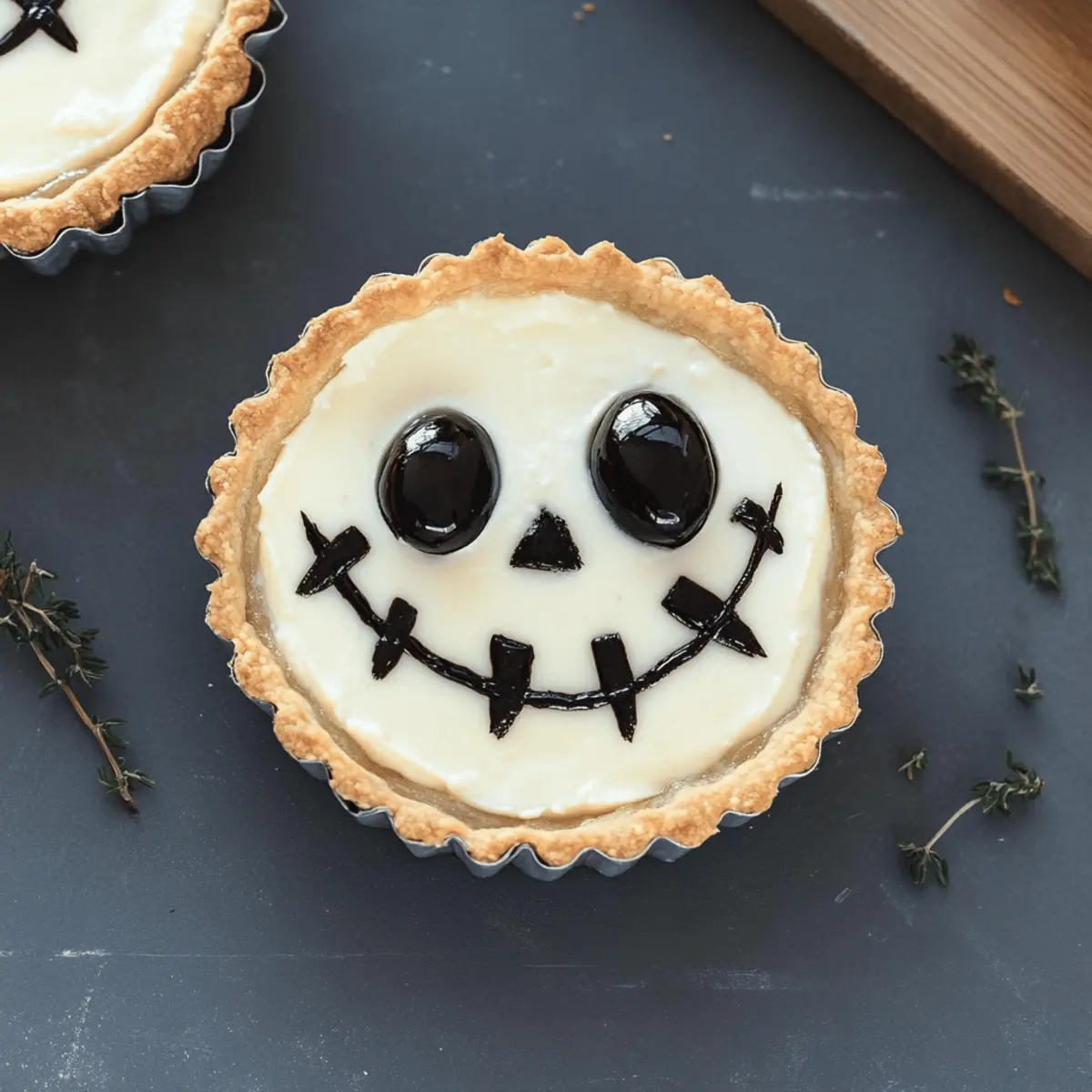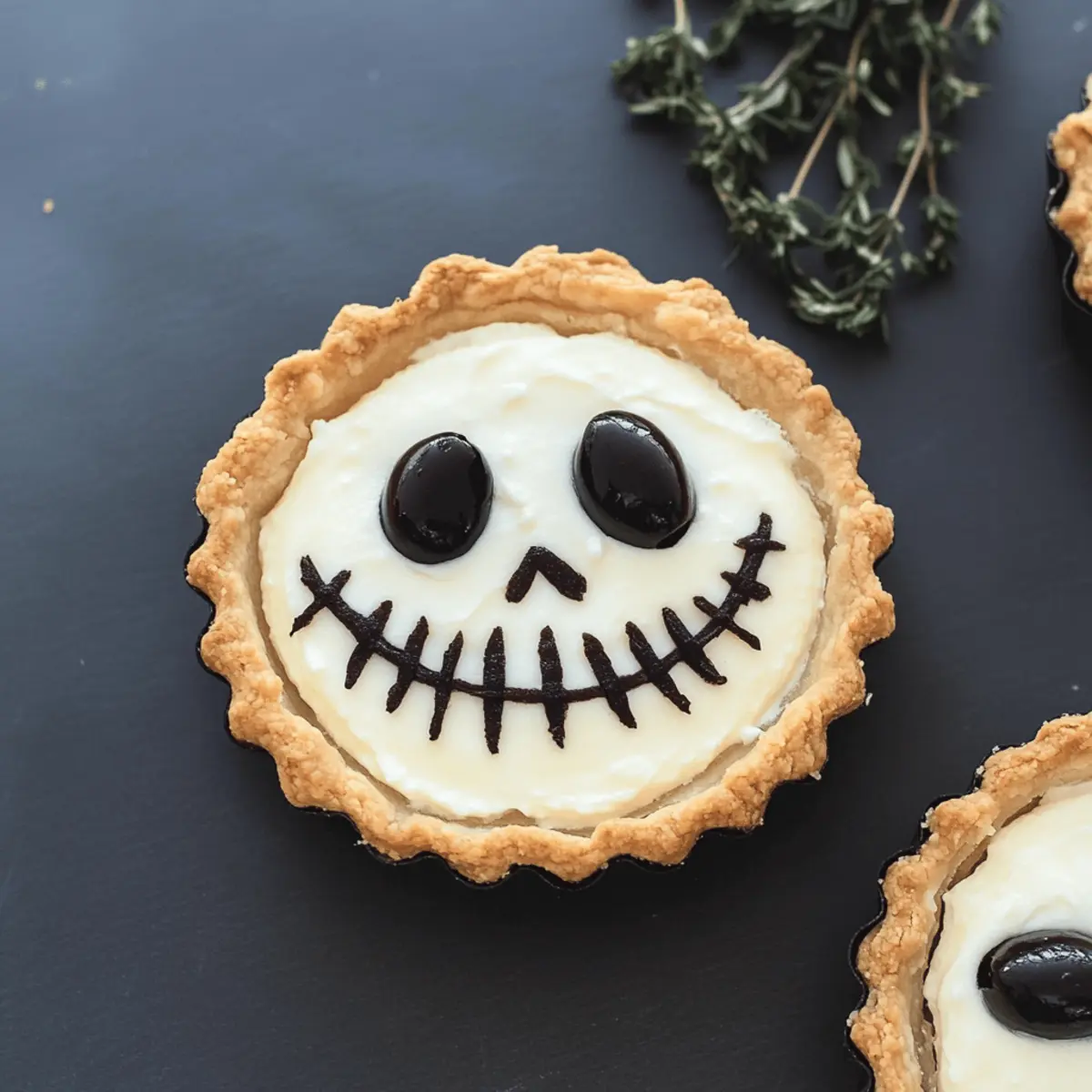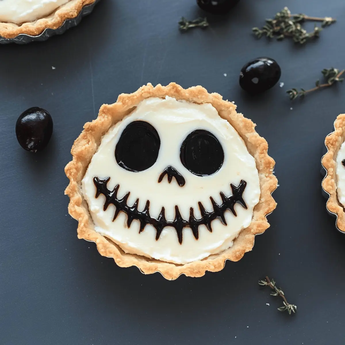 Jump to Recipe Print RecipeAs I wandered through a vibrant pumpkin patch the other day, I couldn’t help but daydream of Halloween treats that blend a bit of creativity with culinary charm. Enter the Halloween Jack Skellington Ricotta Olive Tarts—a savory delight that turns a classic spooky character into a party centerpiece! This recipe is not only gluten-free, making it accessible to everyone at your table, but it also comes together quickly, letting you focus on the fun. With rich ricotta and briny olives coming together in a whimsical design, these tarts will impress your guests and satisfy your craving for something homemade. Ready to create a dish that’s both a treat for your taste buds and a feast for the eyes? Let’s dive into this deliciously frightful adventure! Why Make Jack Skellington Tarts? Irresistible Flavor: The sweet and savory balance of creamy ricotta and tangy olives ensures a taste that will excite your palate. Halloween Spirit: Fun and festive, these tarts bring a playful theme to your gathering, perfect for impressing guests. Quick Preparation: With simple steps and lower prep time, you’ll have more moments to enjoy the festivities. Gluten-Free Goodness: Everyone deserves a delicious treat, and this gluten-free recipe accommodates dietary preferences without sacrificing flavor. Eye-Catching Presentation: Adorned like Jack Skellington, these tarts double as a stunning centerpiece that will leave guests in awe, just like Herby Ricotta Stuffed peppers at your table! Versatile Options: Feel free to mix the filling; consider adding spinach or artichokes for extra nutrition and taste. Halloween Jack Skellington Ricotta Olive Tarts • Get ready for a spook-tacular treat everyone will love! For the Tart Crust Gluten-Free Tart Crust – Provides structure and a flaky texture for the tarts; you can use a premade gluten-free crust for convenience. Sweet Rice Flour – Adds chewiness to the crust; this ingredient has no direct substitute. Millet Flour – Contributes a mild flavor; if needed, almond flour can serve as a replacement. Gluten-Free Oat Flour – Gives a soft texture; you can make your own by grinding oats if necessary. Tapioca Flour – Acts as a binder for the crust; cornstarch can substitute if you’re in a pinch. Kosher Salt – Enhances overall flavor; any salt can be used, just adjust the measurement if needed. Unsalted Butter – Creates a rich, flaky crust; substitute with vegan butter for a dairy-free option. Ice Water – Necessary for the perfect dough consistency; remember to keep it cold. For the Filling Black Olives – These provide the main decoration and a briny contrast; feel free to use your preferred variety. Sun-Dried Tomatoes – Adds richness and tang; ensure they’re packed in oil for enhanced flavor. Fresh Thyme Leaves – Provides herbaceous notes; dried thyme can be a substitute, just adjust the quantity. Parmesan Cheese – Adds savory depth; swap with nutritional yeast for a vegan alternative. Ricotta Cheese – Creamy base filling that’s essential for taste and texture; cottage cheese or dairy-free ricotta can be used instead. Greek Yogurt – Contributes tanginess and creaminess; sour cream can replace it if needed. Egg Whites – Provides structure to the filling; for a vegan version, consider flax eggs or aquafaba. Garlic – Infuses the filling with flavor; garlic powder can be used as an optional substitute. With these delightful ingredients, your Halloween Jack Skellington Ricotta Olive Tarts will be the highlight of any spooky celebration! Step‑by‑Step Instructions for Halloween Jack Skellington Ricotta Olive Tarts Step 1: Prepare the Crust In a large mixing bowl, whisk together the sweet rice flour, millet flour, gluten-free oat flour, tapioca flour, and kosher salt. Cut in the cold unsalted butter until the mixture resembles coarse crumbs, about the size of peas. Gradually add ice water, mixing until the dough just holds together. Shape into a disc, wrap in plastic, and chill in the fridge for 30 minutes to firm up. Step 2: Preheat Oven While the dough chills, preheat your oven to 400°F (200°C). This ensures the oven reaches the optimal temperature for baking, allowing your Halloween Jack Skellington Ricotta Olive Tarts to get that perfect golden-brown crust. Meanwhile, gather your tart pans and prepare them with a light coat of cooking spray to prevent sticking. Step 3: Roll Out Dough Once chilled, place the dough between two sheets of parchment paper. Roll it out to about ⅛ inch thick, aiming for circles that are slightly larger than your tart pans. Gently transfer each dough circle into the pans, pressing it into the edges. Trim any excess dough hanging over the sides, and prick the bottoms with a fork to prevent bubbling. Step 4: Bake the Crusts Place the filled tart pans into your preheated oven and bake for 12 minutes or until just lightly cooked and set. The crust should be pale and starting to firm up – this initial baking step helps create a foundation for the savory filling. Keep an eye on them to ensure they do not brown too much at this stage. Step 5: Prepare Filling In a mixing bowl, combine the ricotta cheese, Greek yogurt, egg whites, minced garlic, and a pinch of salt. Stir until the mixture is smooth and creamy, ensuring there are no lumps. This savory mix will provide a rich contrast to the briny toppings. Taste and adjust seasoning as desired before filling the tarts. Step 6: Fill and Decorate Tarts Once the crusts are pre-baked and cool enough to handle, fill each tart shell generously with the ricotta mixture, smoothing it out evenly. Take the black olives and artfully place them on top for Jack Skellington’s eyes and nose, using julienned olive strips to create a spooky smile. Get creative; make each tart a unique masterpiece! Step 7: Bake Return the decorated tarts to the oven and bake for an additional 20-25 minutes, or until the filling is set and slightly puffed. The tops sho